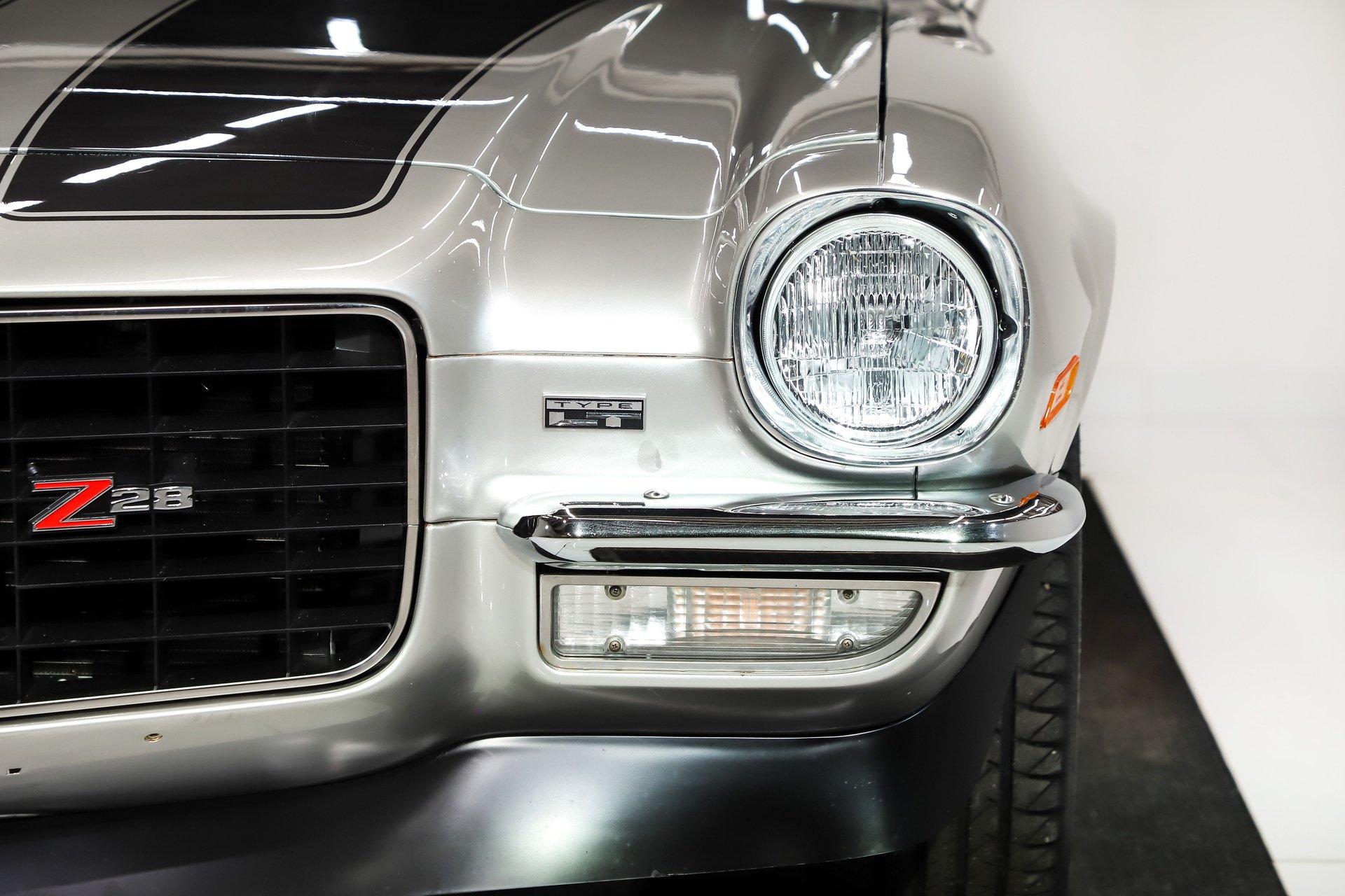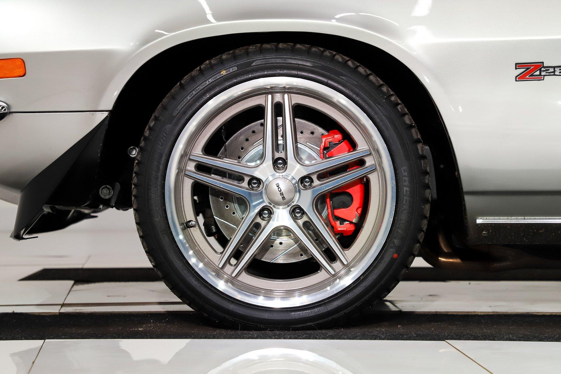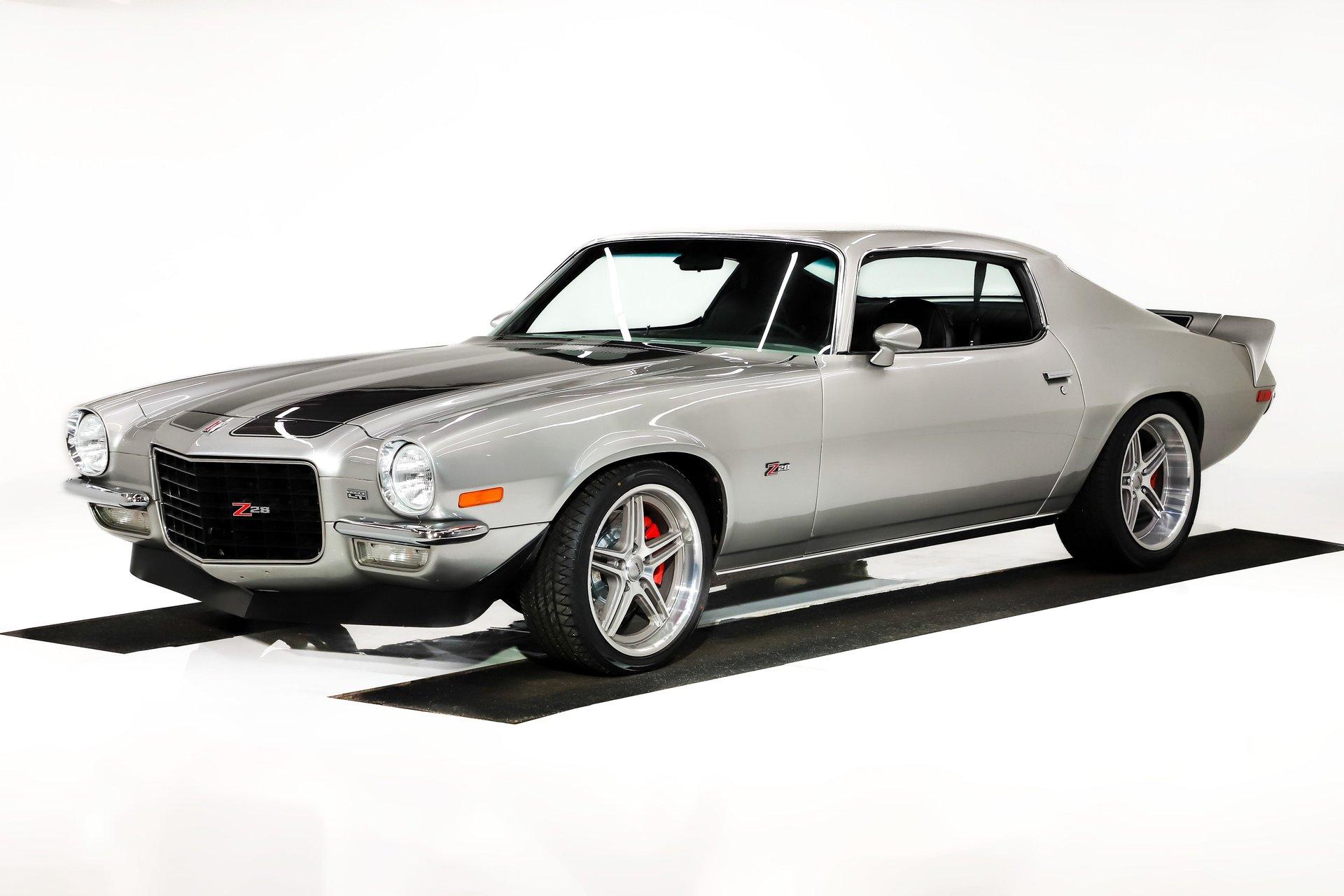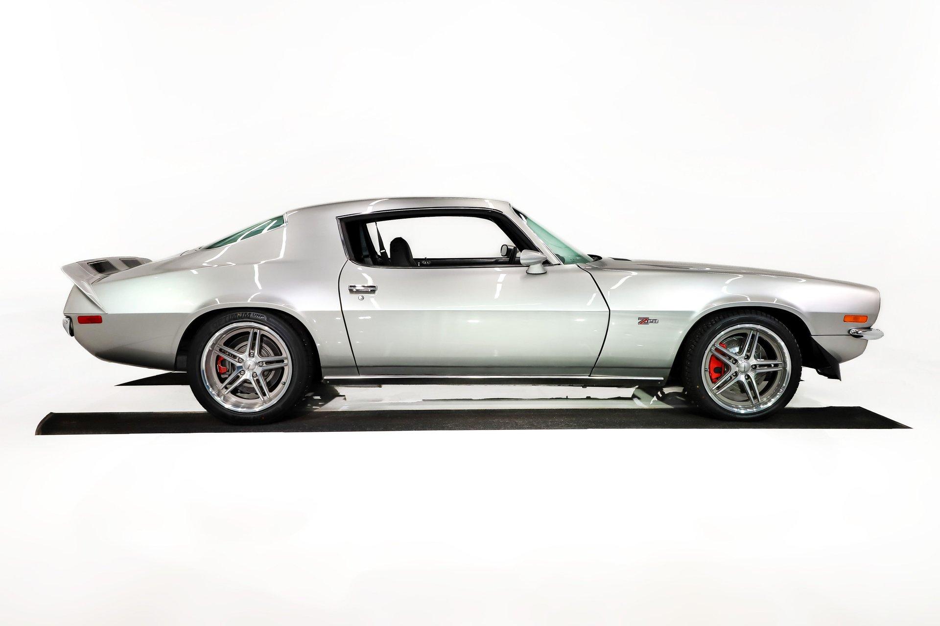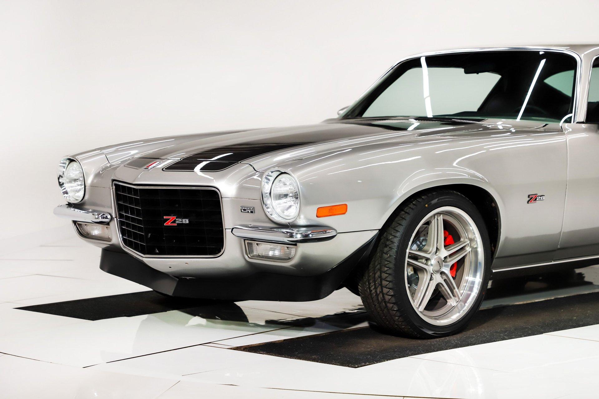 INTRODUCTION: Only 300 miles on a pro touring build! This Camaro blends iconic styling with contemporary performance and drivability. EXTERIOR: Sleek looking second gen design and this one is clean. From the rockers to the roof it is smooth and fits right. Finished in a sleek pewter metallic with bold black Z-28 stripes, the clear is polished to a high gloss. Its muscle is indicated by the spoilers, sport mirrors and Z-28 emblems. It has split bumpers in front, the chrome, weatherstrips and glass were replaced. It sits perfectly on 18 inch Boze wheels wrapped in performance tires, wider in the back. INTERIOR: Restored from carpet to headliner! It's lit up bright with LED lights but even what you can't see was redone including new wiring harness and sound deadener. The seats are recushioned and upholstered, upfront was upgraded with 3 point retractable seatbelts. The center console has the vintage staple shifter along with an updated overdrive shift indicator. The door panels and dash area are in great shape. Upgraded with a great looking set of gauges, electric slide climate controls and a retro stereo powering kick panel speakers. The rear shelf, headliner and visors were replaced. ENGINE COMPARTMENT: This is where modern performance and technology is front and center! The 6.0 LS motor is making about 400hp with a hotter cam, Holley intake, Holley EFI and stainless long tube headers. I love the finned Holley coil covers looking like vintage valve covers! The front of the motor has a serpentine belt system with a polished A/C compressor, modern power steering and modern alternator. It also features a hydro boost power brake system. It runs cool with an aluminum radiator and dual electric fans. It's looking good with a smooth firewall, custom fender supports and matching front filler panel. The CVF billet hinges not only look good, but also work nice and smooth. It's a fresh and proper looking compartment. TRUNK COMPARTMENT: Clean, solid metal with a nice spatter finish. It opens with the help of a gas strut. UNDERSIDE: It was frame off restored, every component rebuilt or replaced and mostly upgraded! Completely rebuilt front suspension and upgraded with CPP tubular control arms, coil over adjustable gas shocks and drop spindles. In back it has a 4 link system with tubular control arms and QA1 coilover adjustable gas shocks. The custom exhaust has stainless mufflers and an X-Pipe. Upgraded with drilled disc brakes at all four wheels. All new fuel system including the tank and it is compatible with the fuel injection system. Looking up at the motor it has an aluminum Holley oil pan and a high torque starter. The trans is a 4L60E overdrive. An aluminum driveshaft connects to the rear end which has a finned aluminum cover. Everything looks very tidy and clean under this car. SERVICE: We take pride in our cars and reputation. Therefore, we built a 2 million dollar, 10,000 square ft service center, and hired a team of technicians to service the essentials on every car we sell. CONCLUSION: Why spend more money building one? This car is fresh with only 300 miles and it is ready to start putting big smiles on your face right away! Vehicles are displayed in a museum setting. Admission applies without an appointment and is refunded with purchase, including a one-year museum membership. 815 385 3644 9-5 central Sales@volocars.com Answered ASAP Air conditioning Fuel injection Power steering Power brakes 4 wheel disc Console Tilt wheel Custom gauges Retro stereo Spoilers Sport mirrors Stripes Boze wheels