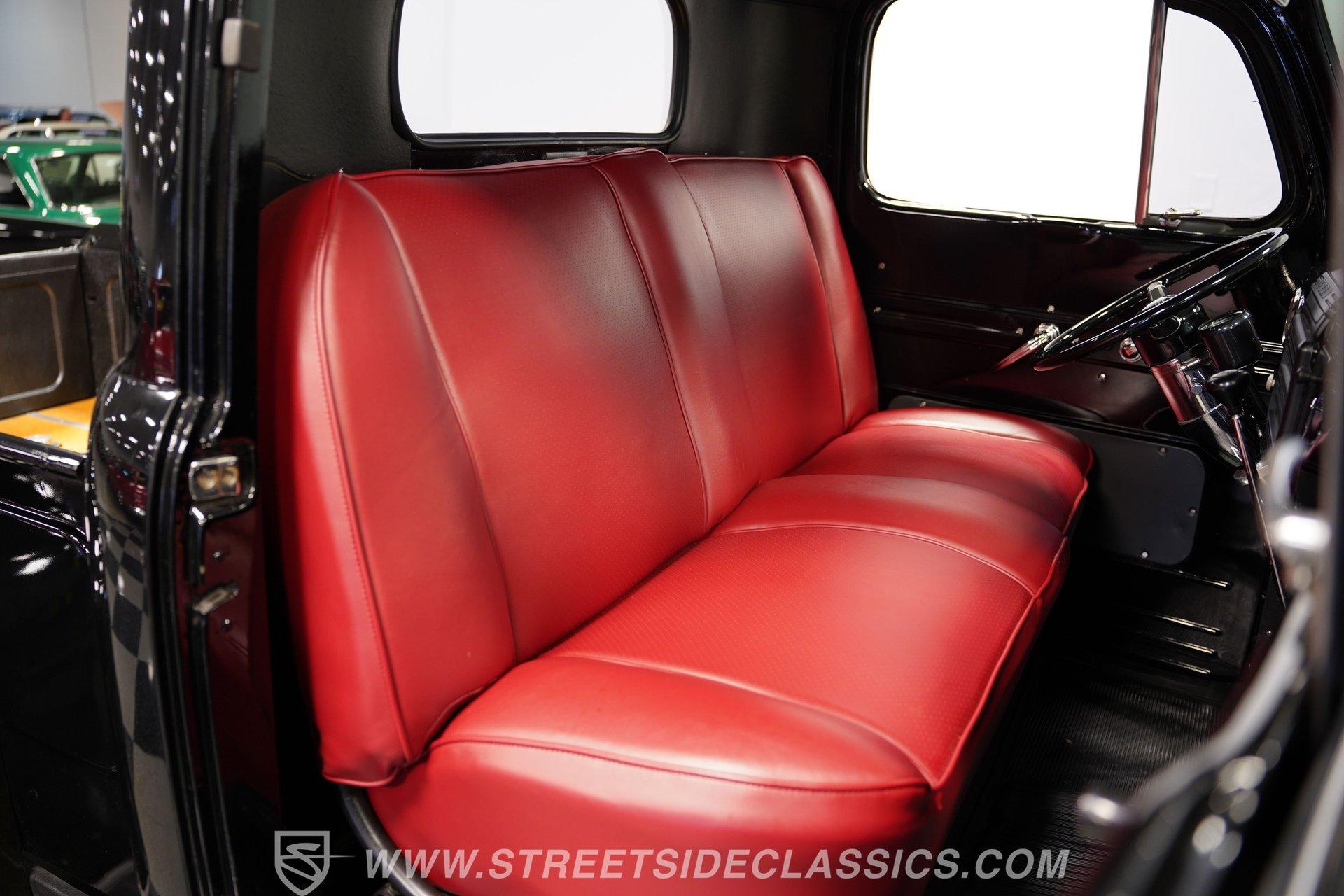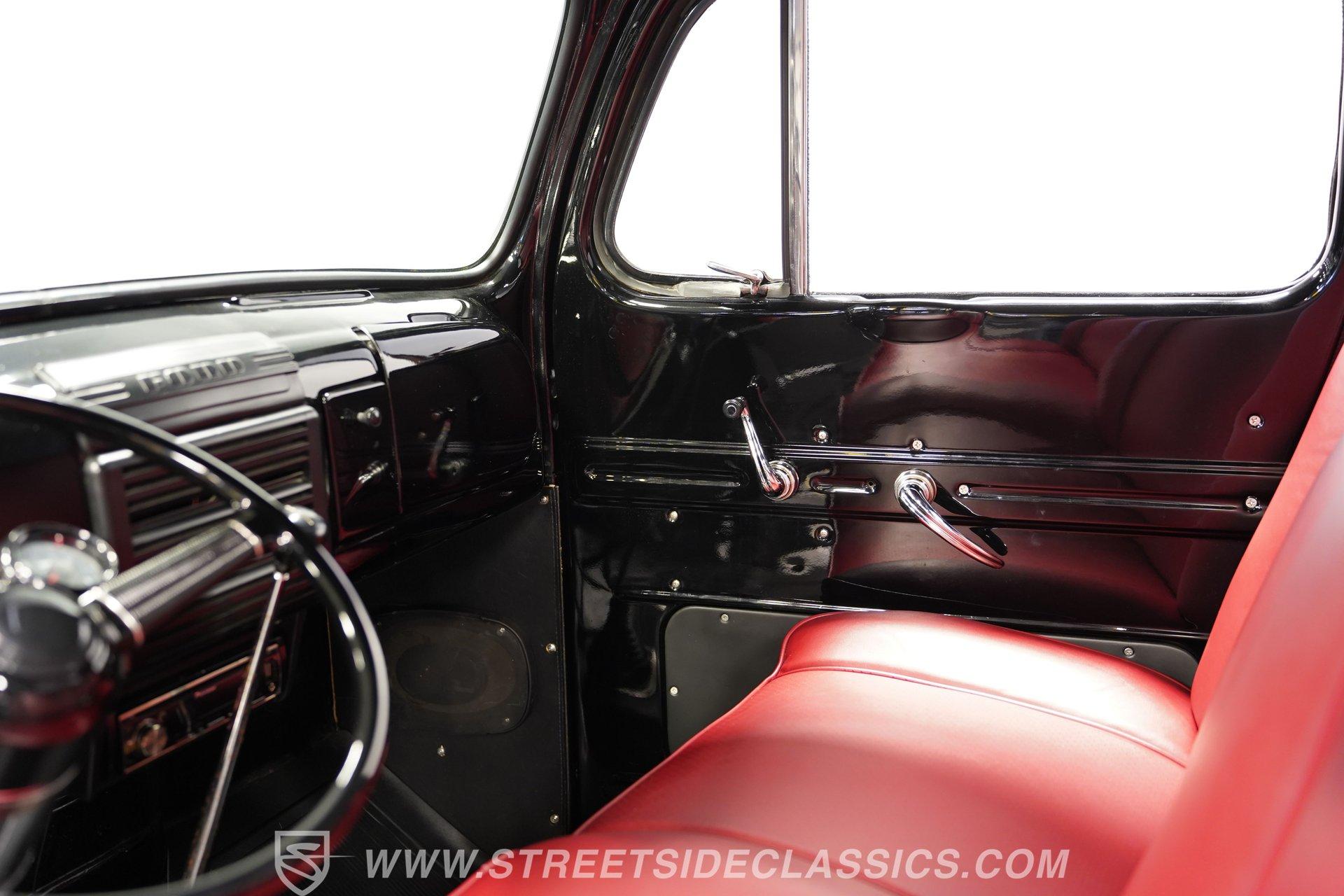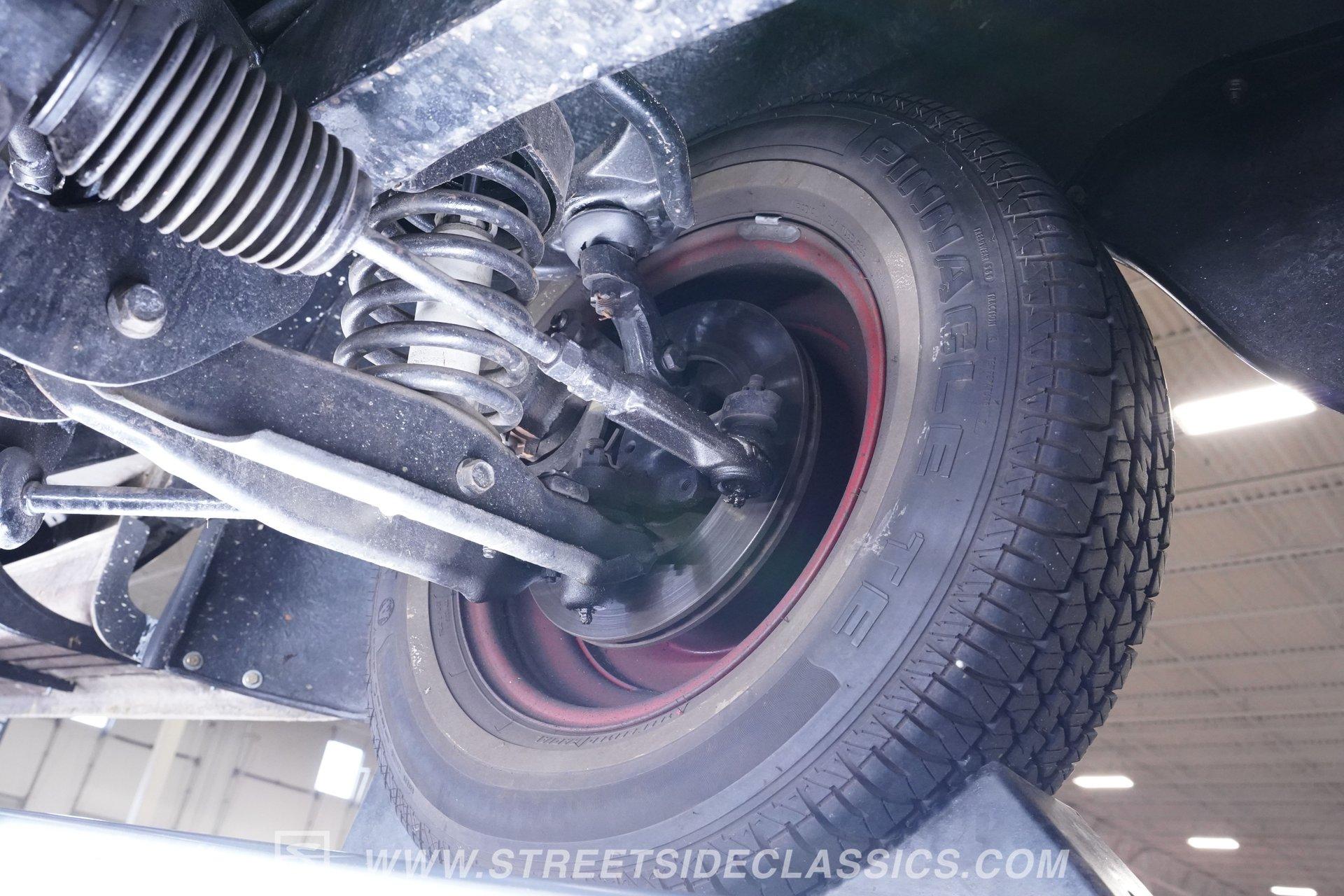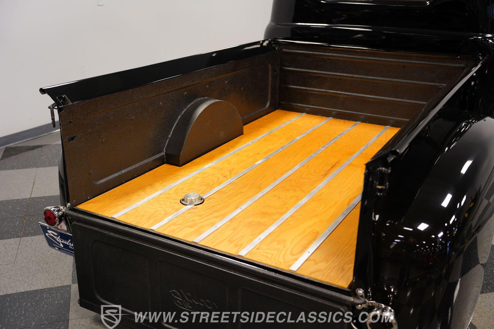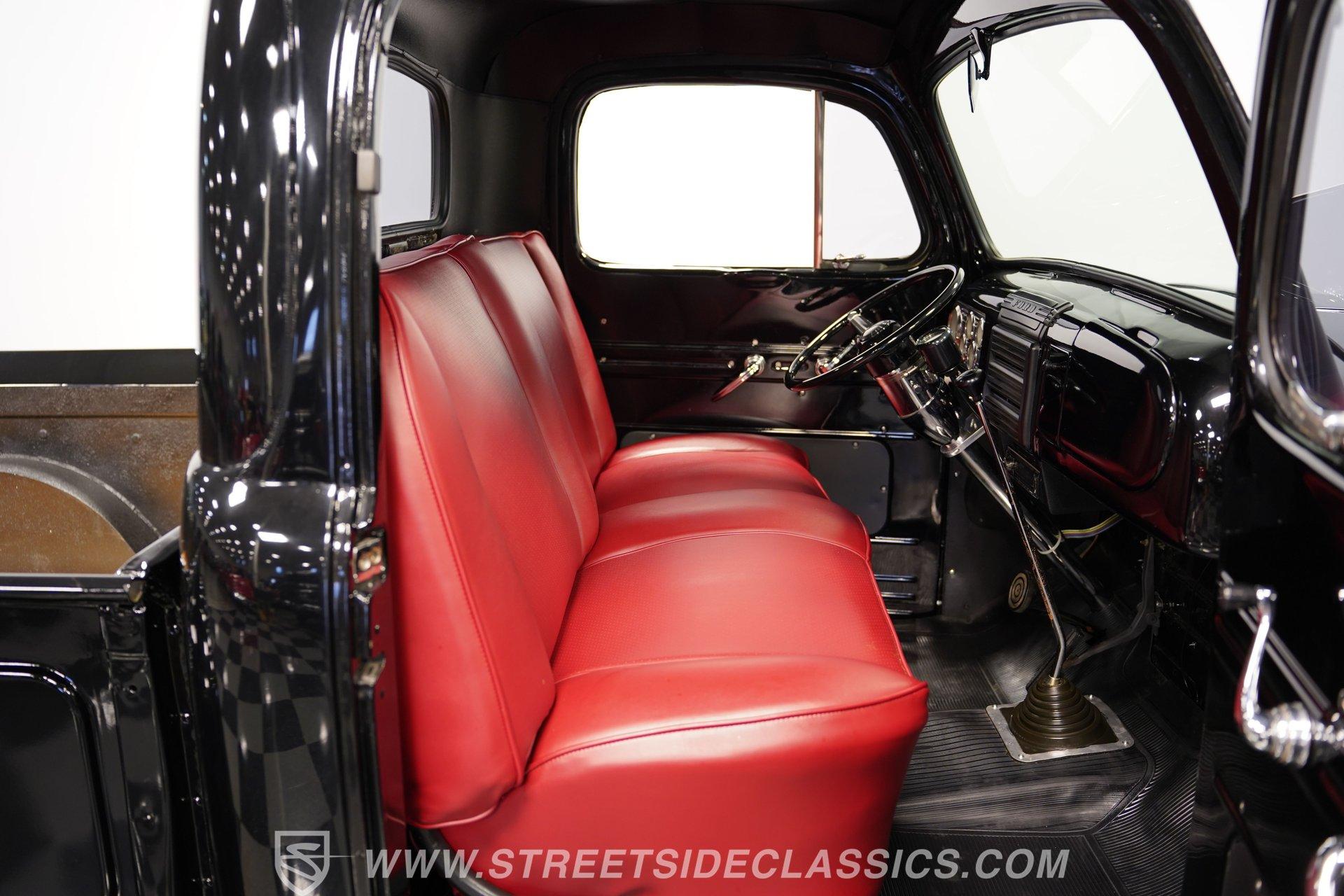 Dressed in attention-commanding black paint and wearing an assembly of bright work that's in consistently good shape, this 1950 Ford F-1 is an outstanding representative of the class of working trucks that rolled off the assembly line to recapture the enthusiasm of the public as WWII drew to a close. It's a sharp-looking pickup, with a subtly lowered stance and painted steel wheels that complement its shortbed configuration nicely. Even better, this classic has been upgraded with some key mechanical components that put its drivability on a par with its timeless good looks, so you'll enjoy taking this venerable truck on the road every bit as much as you will gazing at it as it holds court in your garage. You wouldn't necessarily expect comfort to be a defining feature in a truck that began its service more than 75 years ago, but a combination of planning and top-tier aftermarket components has yielded that very result for this F-1. The interior on this classic is in fine shape, featuring a comfortable bench seat that's draped in red vinyl. As you climb into the cockpit and glance forward, you'll find a collection of Dolphin gauges that look particularly sharp with their chrome bezels, surrounded by painted steel surfaces that still have their fresh, glossy appearance. In the back, the bed area has been refurbished with a combination of solid wood with aluminum trim, and its sides are covered with bedliner to protect them from shifting cargo. Unlike many of its counterparts, this vintage pickup is no "project car". It's ready to hit the asphalt just as soon as you bring it home, powered by a 302-cubic-inch V8 that's fed by a 4-barrel Edelbrock carburetor and running in good form. The engine sits in a well-organized compartment and is joined by a 3-speed automatic C4 with a strong reputation for durability. The surrounding hoses and wires are well-routed, and an aluminum radiator sits front and center to help keep operating temperatures under control. The added Mustang II front end brings a number of welcome benefits, including precise rack-and-pinion steering, a lowered stance, and better ride quality. Take a look below, and you'll likely be impressed by the clean underside on this classic. The work on the dual exhaust really looks solid, and the bushings and steering components are in good shape. HIGHLIGHTS 302-CUBIC-INCH H.O. V8 4-BARREL EDELBROCK CARBURETOR 3-SPEED AUTOMATIC C4 TRANSMISSION DUAL EXHAUST, WITH FLOWMASTER MUFFLERS MUSTANG II FRONT END KYB REAR SHOCKS POWER BRAKES, WITH DISCS UP FRONT AGGRESSIVE, LOWERED STANCE RED VINYL UPHOLSTERY DOLPHIN GAUGES STEEL WHEELS FLOOR SHIFTER AM/FM STEREO WITH BLUETOOTH CONNECTIVITY Whether your plans call for getting behind the wheel of a well-restored weekend cruiser or taking your place among the entrants at a local car show, this great-looking, strong-running 1950 Ford F-1 has you covered. Call today!