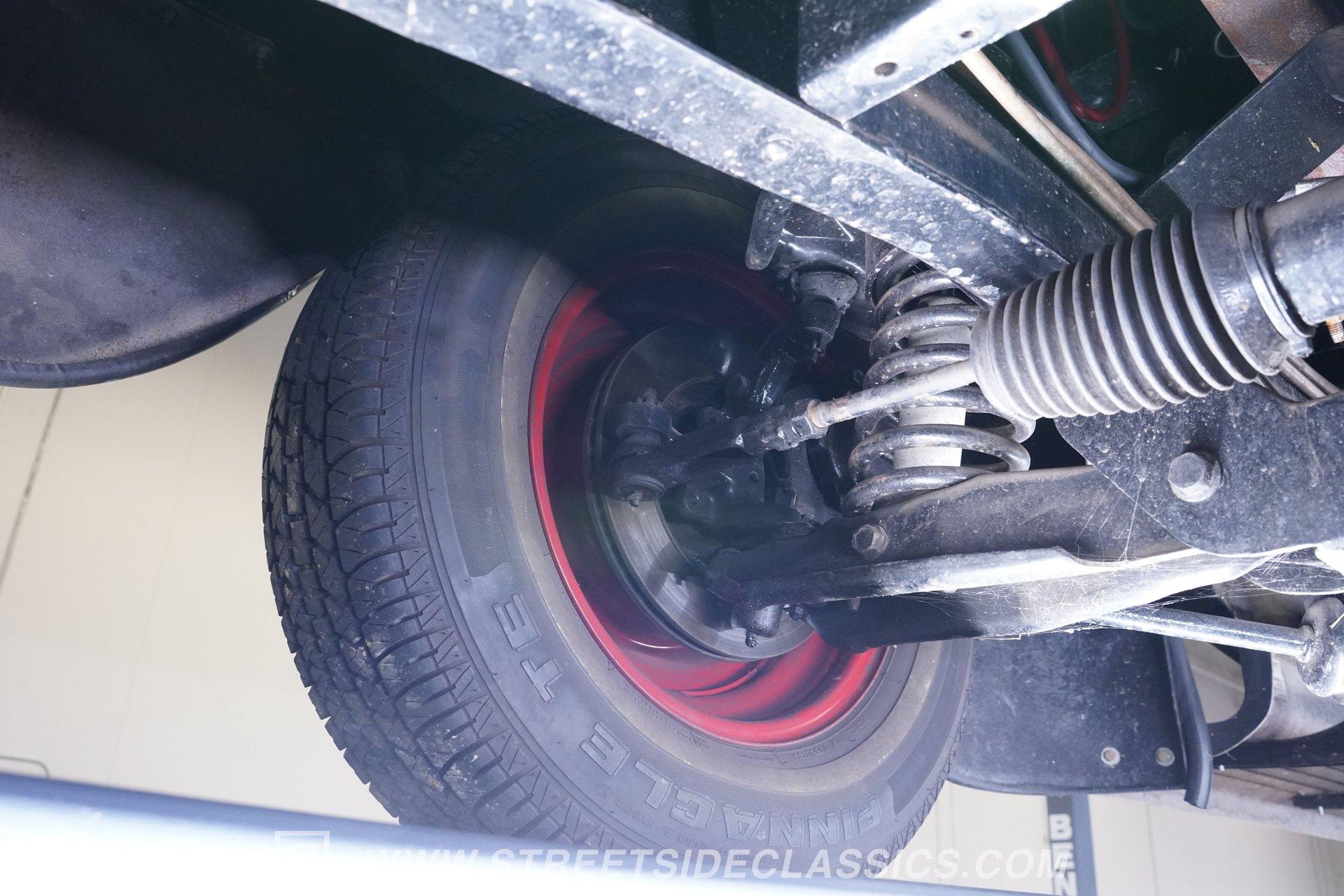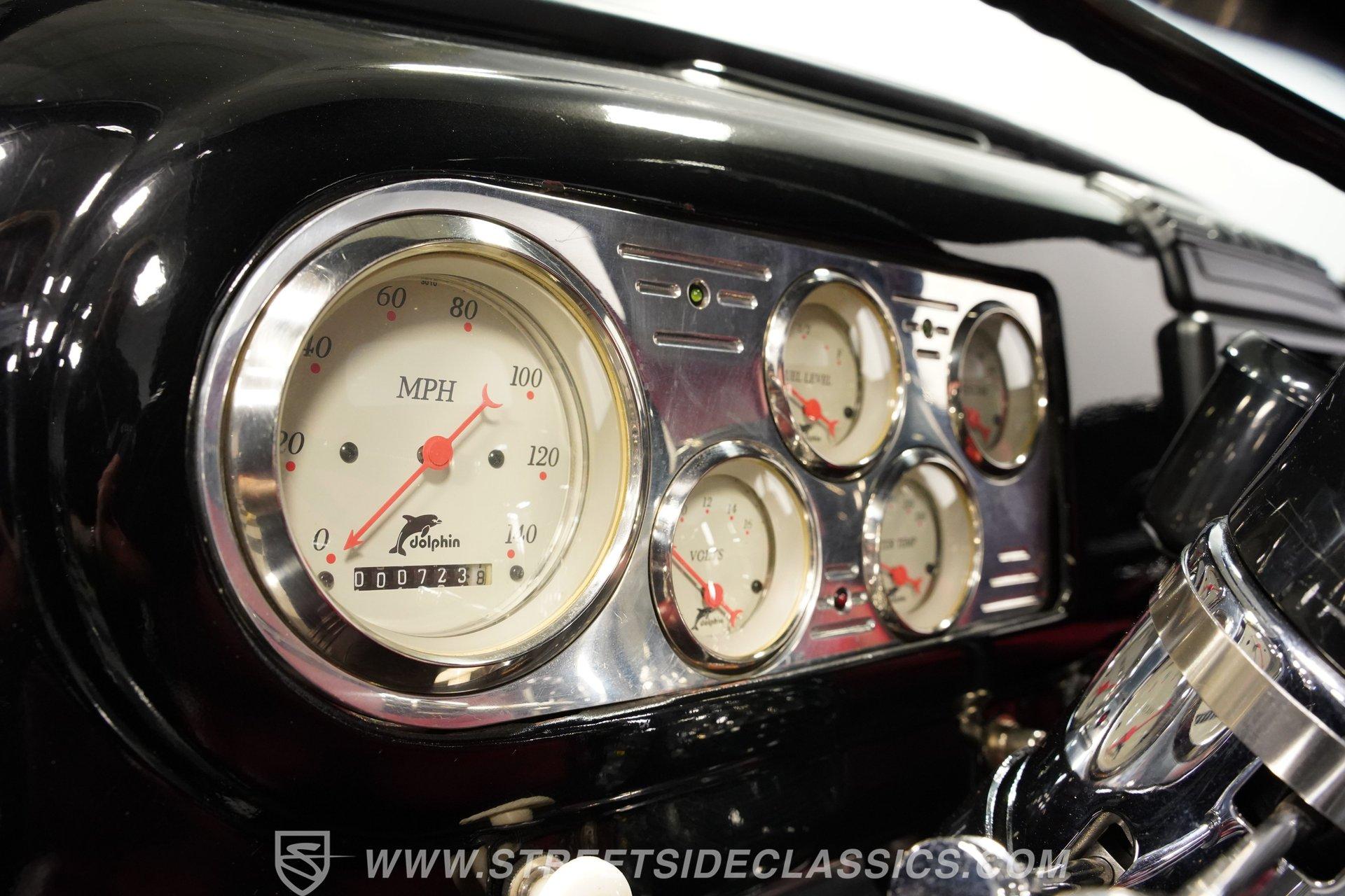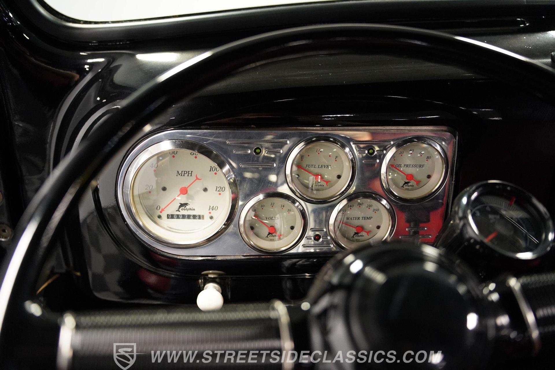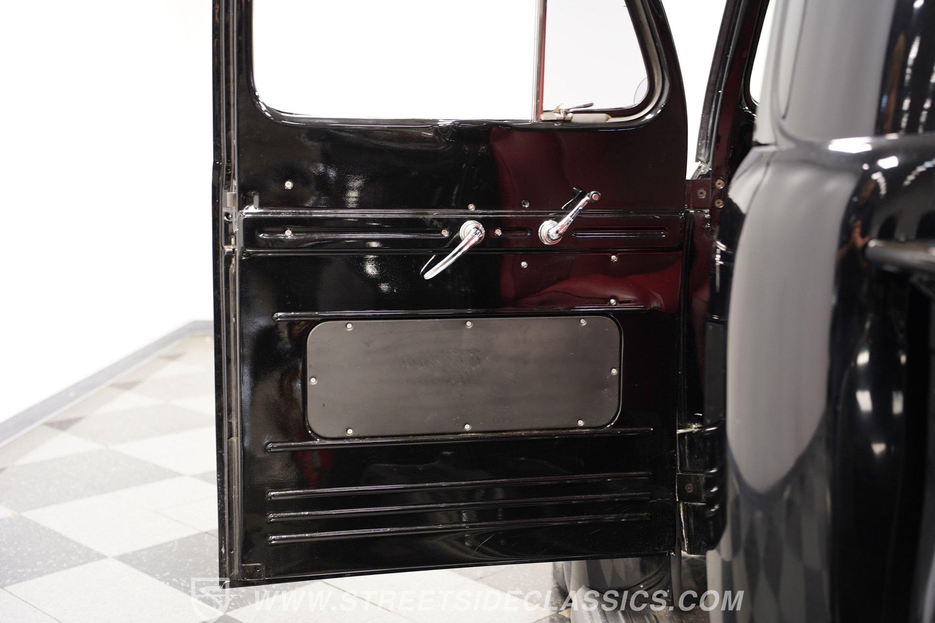 Dressed in attention-commanding black paint and wearing an assembly of bright work that's in consistently good shape, this 1950 Ford F-1 is an outstanding representative of the class of working trucks that rolled off the assembly line to recapture the enthusiasm of the public as WWII drew to a close. It's a sharp-looking pickup, with a subtly lowered stance and painted steel wheels that complement its shortbed configuration nicely. Even better, this classic has been upgraded with some key mechanical components that put its drivability on a par with its timeless good looks, so you'll enjoy taking this venerable truck on the road every bit as much as you will gazing at it as it holds court in your garage. You wouldn't necessarily expect comfort to be a defining feature in a truck that began its service more than 75 years ago, but a combination of planning and top-tier aftermarket components has yielded that very result for this F-1. The interior on this classic is in fine shape, featuring a comfortable bench seat that's draped in red vinyl. As you climb into the cockpit and glance forward, you'll find a collection of Dolphin gauges that look particularly sharp with their chrome bezels, surrounded by painted steel surfaces that still have their fresh, glossy appearance. In the back, the bed area has been refurbished with a combination of solid wood with aluminum trim, and its sides are covered with bedliner to protect them from shifting cargo. Unlike many of its counterparts, this vintage pickup is no "project car". It's ready to hit the asphalt just as soon as you bring it home, powered by a 302-cubic-inch V8 that's fed by a 4-barrel Edelbrock carburetor and running in good form. The engine sits in a well-organized compartment and is joined by a 3-speed automatic C4 with a strong reputation for durability. The surrounding hoses and wires are well-routed, and an aluminum radiator sits front and center to help keep operating temperatures under control. The added Mustang II front end brings a number of welcome benefits, including precise rack-and-pinion steering, a lowered stance, and better ride quality. Take a look below, and you'll likely be impressed by the clean underside on this classic. The work on the dual exhaust really looks solid, and the bushings and steering components are in good shape. HIGHLIGHTS 302-CUBIC-INCH H.O. V8 4-BARREL EDELBROCK CARBURETOR 3-SPEED AUTOMATIC C4 TRANSMISSION DUAL EXHAUST, WITH FLOWMASTER MUFFLERS MUSTANG II FRONT END KYB REAR SHOCKS POWER BRAKES, WITH DISCS UP FRONT AGGRESSIVE, LOWERED STANCE RED VINYL UPHOLSTERY DOLPHIN GAUGES STEEL WHEELS FLOOR SHIFTER AM/FM STEREO WITH BLUETOOTH CONNECTIVITY Whether your plans call for getting behind the wheel of a well-restored weekend cruiser or taking your place among the entrants at a local car show, this great-looking, strong-running 1950 Ford F-1 has you covered. Call today!