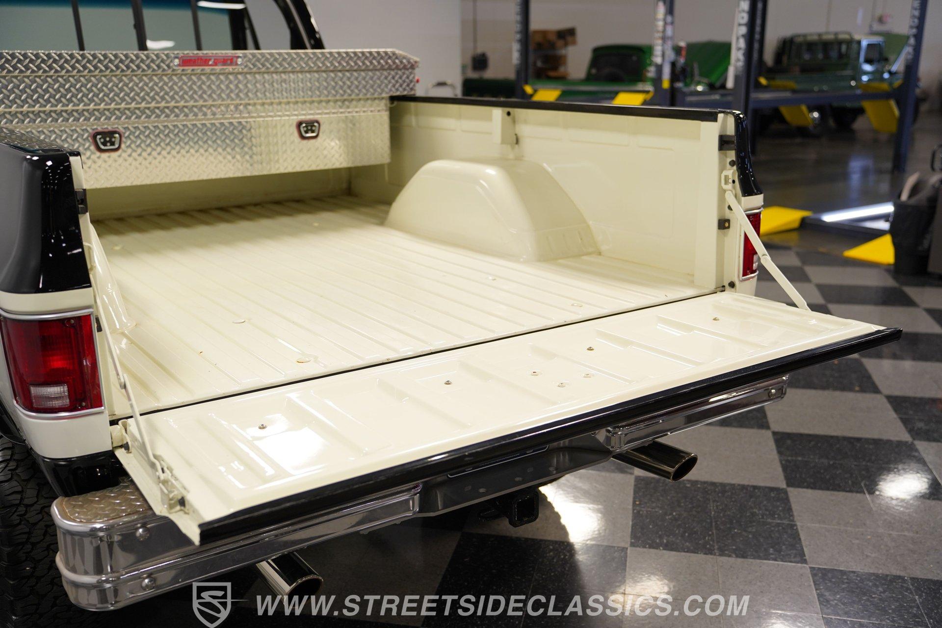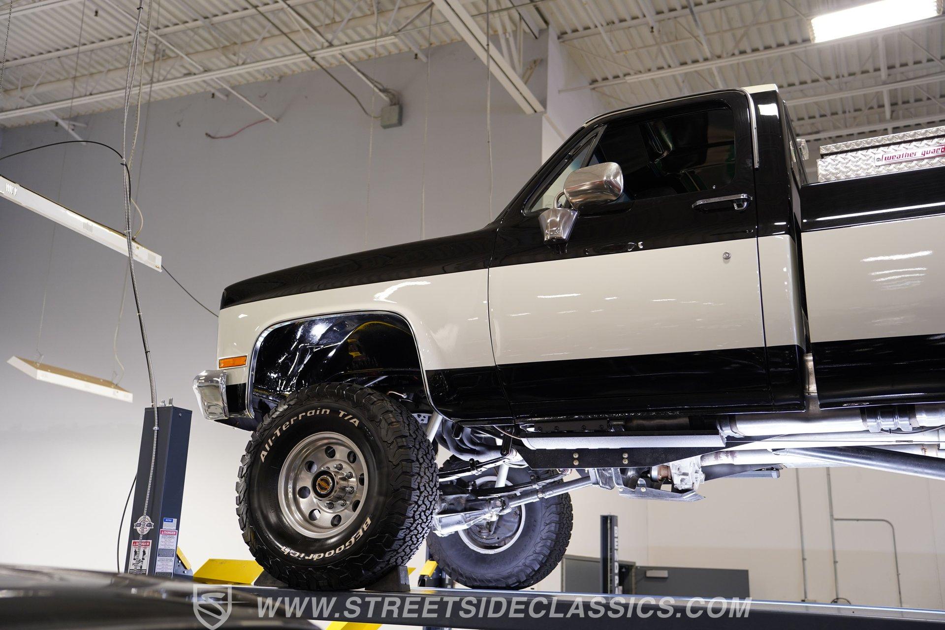 There's something undeniably special about a classic truck that stands tall in both spirit and stature. It's the feeling of adventure calling as soon as you fire up the engine, the memory of summer nights cruising with friends, and the pride that comes from driving a piece of American history. This 1986 Chevrolet K20 4x4 is more than just a truck... it's a statement, a workhorse, and a conversation starter rolled into one. If you've ever dreamed of owning a vintage pickup that turns heads and carries stories, this restored K20 is ready to become the next chapter in your journey. Step inside and you'll find a cabin that balances rugged charm with comfort. The custom bench seat with cupholders offers a clean and inviting look, showing minimal wear and providing plenty of space for you and your passengers. Durable rubber flooring is ready for any adventure, while the dash and gauge cluster maintain their original appeal. Newer door cards blend nicely with the classic design, and the overhead paint matches the truck's pristine exterior, creating a cohesive and stylish interior environment. Under the hood, the heart of this truck is a smooth-running, 350 V8 engine that fires up easily and delivers a satisfying idle. Paired with a 4-speed automatic transmission, this drivetrain is designed to handle both highway cruising and off-road excursions. Performance upgrades include an Edelbrock intake, chrome Chevy valve covers, headers, and a chrome air cleaner. The Skyjacker lift, heavy-duty sway bar, and aftermarket shocks work together for a confident ride, while power steering and well-sorted brakes ensure a responsive and enjoyable driving experience. Highlights 350 V8 Engine With Edelbrock Intake 4 Speed Automatic Transmission Skyjacker Lift Leaf Springs Heavy Duty Sway Bar Power Steering Power Front Disc Brakes Dual Functional Fuel Tanks Pacer Eight Lug Wheels Davis Off-Road Retractable Steps Weather Guard Tool Box Custom Bench Seat With Cupholders Clean Engine Bay With Chrome Accessories Financing Available Vehicle Protection Plans Available Worldwide Shipping This 1986 Chevrolet K20 4x4 is the perfect blend of classic style and modern capability, ready for shows, cruises, or wherever your next adventure takes you. If you're looking for a truck that's as bold and reliable as it is iconic, this K20 is calling your name. Call, email, or come visit our showroom today!