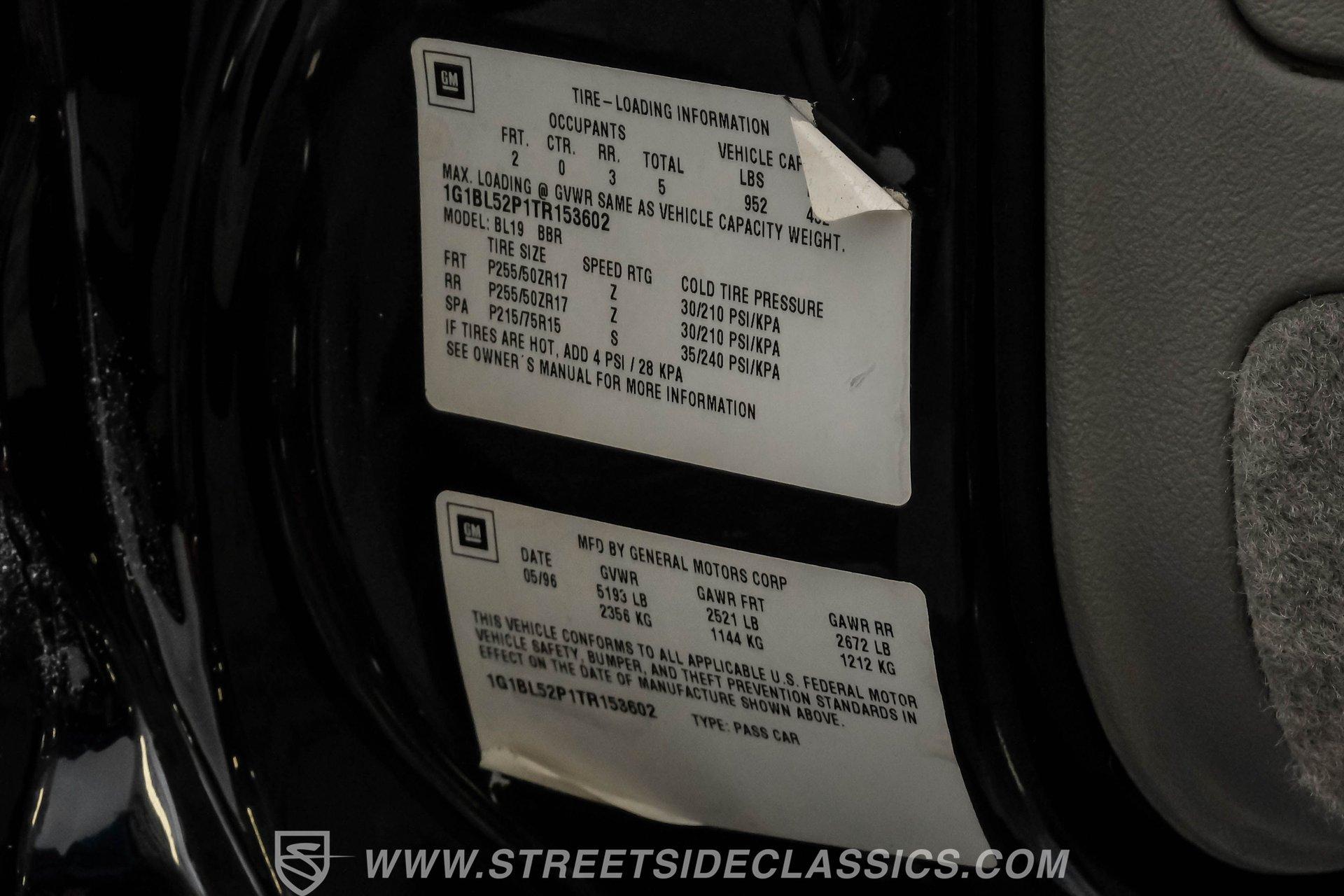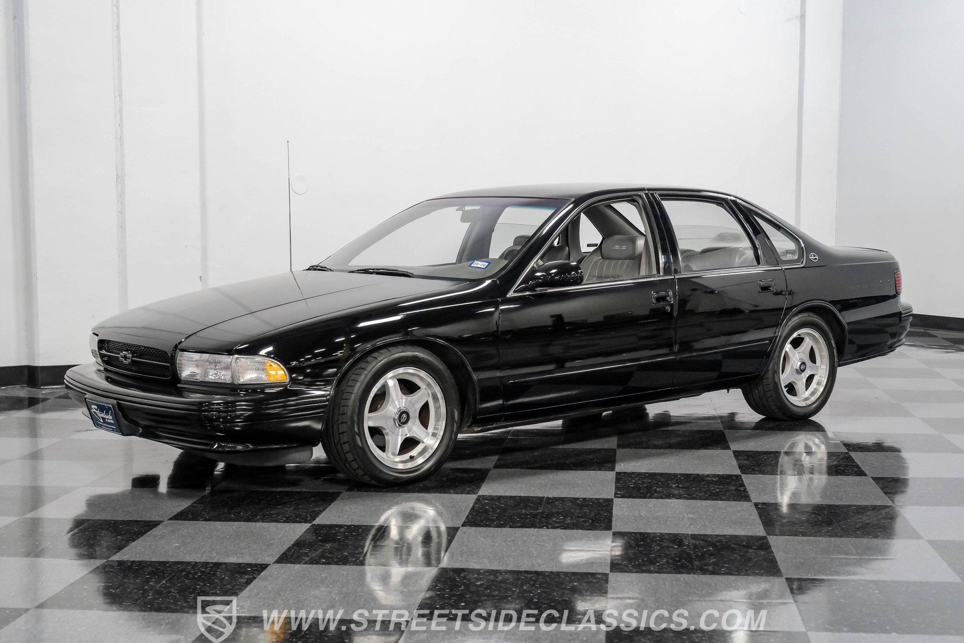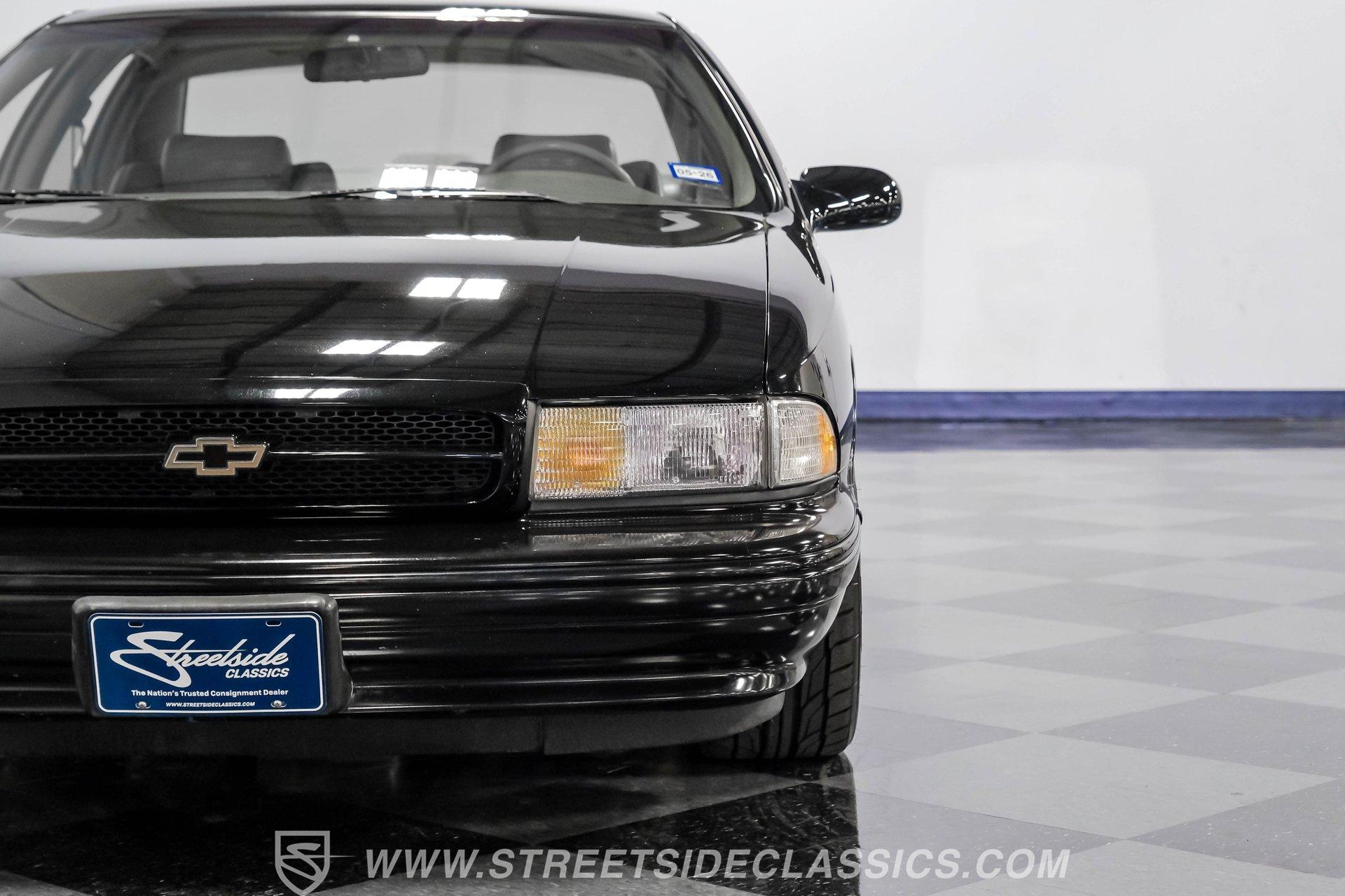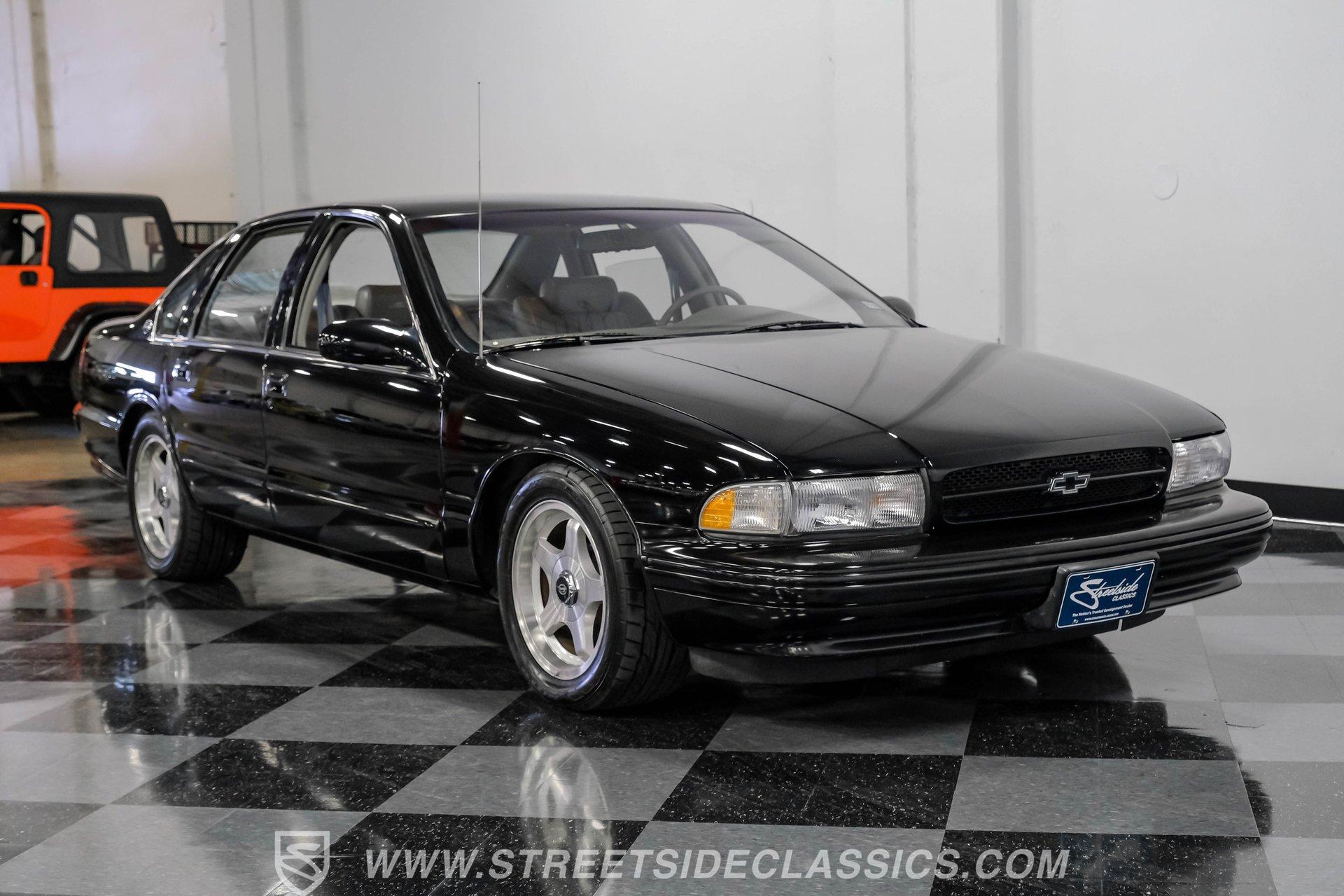 When you slip behind the wheel of a true American icon, you are not just driving, you are making a statement. The 1996 Chevrolet Impala SS is more than a car-it is a time capsule of 1990s performance and luxury, wrapped in a sleek, Onyx Black silhouette that commands attention at every stoplight. This legendary sedan speaks to an era when muscle met refinement, where every journey became a memorable event. Whether you are rekindling memories or making new ones, the Impala SS offers an irresistible blend of nostalgia and excitement. Now is your chance to own the 1996 Chevrolet Impala SS, a classic that continues to turn heads and stir hearts. Step inside and discover a well-preserved gray leather interior that radiates comfort and style. Bucket seats with a center console and shifter deliver a sporty feel, while power windows, locks, and mirrors add modern convenience. Enjoy dual power seats, a tilt wheel, and cruise control for effortless long drives. The factory AM/FM/CD radio and rear window defogger round out a cabin designed for both relaxation and driving pleasure. Under the hood, you will find a clean and stock 5.7-liter LT1 V8 engine paired with a smooth-shifting four-speed automatic transmission, offering factory reliability and performance. Power steering and power disc brakes at all four corners ensure confidence and control, while the car's clean underbody and suspension promise a comfortable, composed ride every time you hit the road. HIGHLIGHTS 62,699 Believed Actual Miles 5.7 Liter LT1 V8 Engine Four Speed Automatic Transmission Factory Onyx Black Paint Original Factory Gray Leather Interior Power Windows, Locks, and Mirrors Dual Power Seats and Center Console Factory 17 Inch Wheels with Nitto Tires Power Four Wheel Disc Brakes Power Steering Cold R-134A Air Conditioning Factory AM/FM/CD Radio Financing Available Vehicle Protection Plans Available Worldwide Shipping If you are searching for a well-cared-for modern classic that blends performance, comfort, and unmistakable style, the 1996 Chevrolet Impala SS is the perfect choice. This is your opportunity to own a piece of automotive history that is ready for the road or your collection. Call, email, or come visit our showroom today!