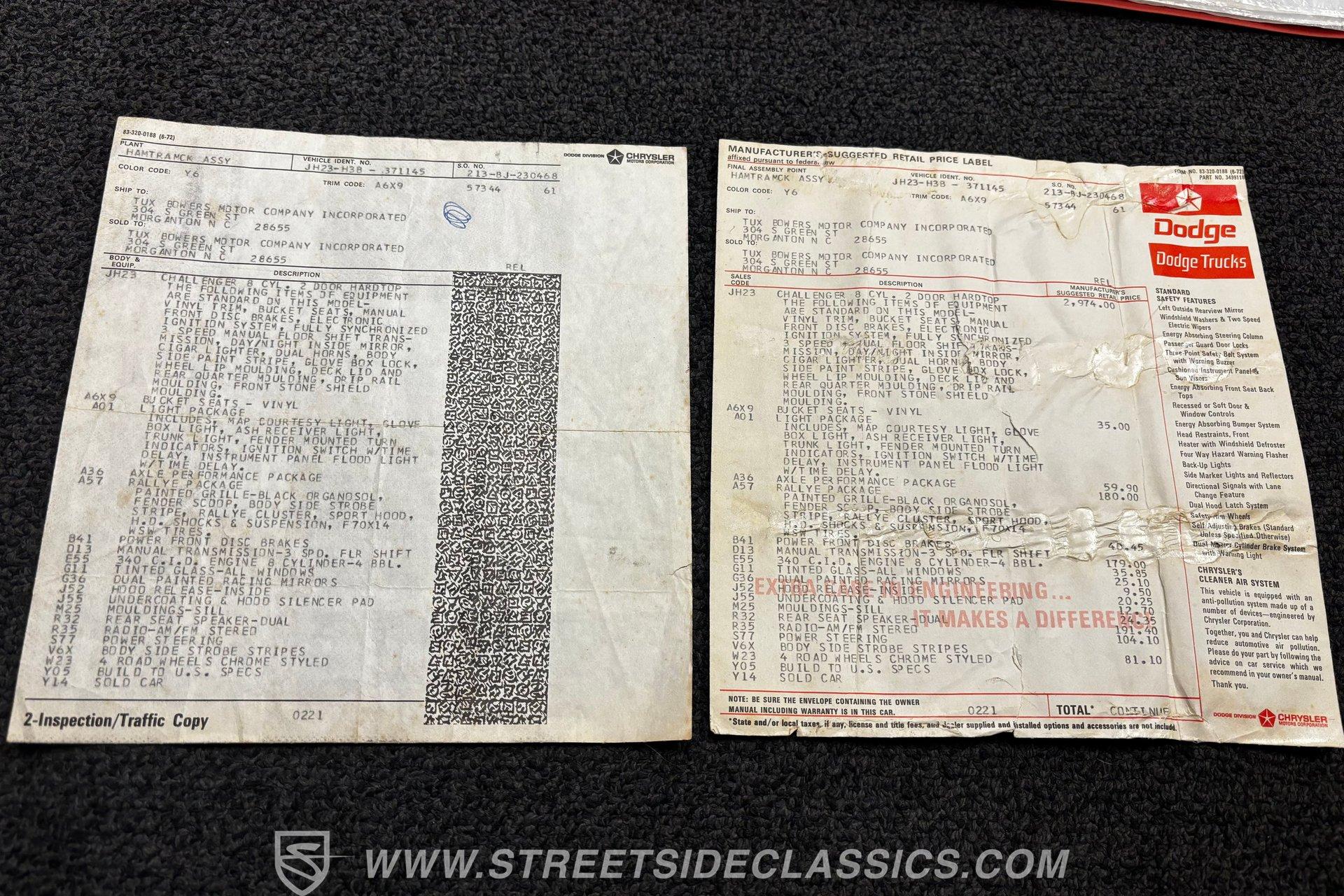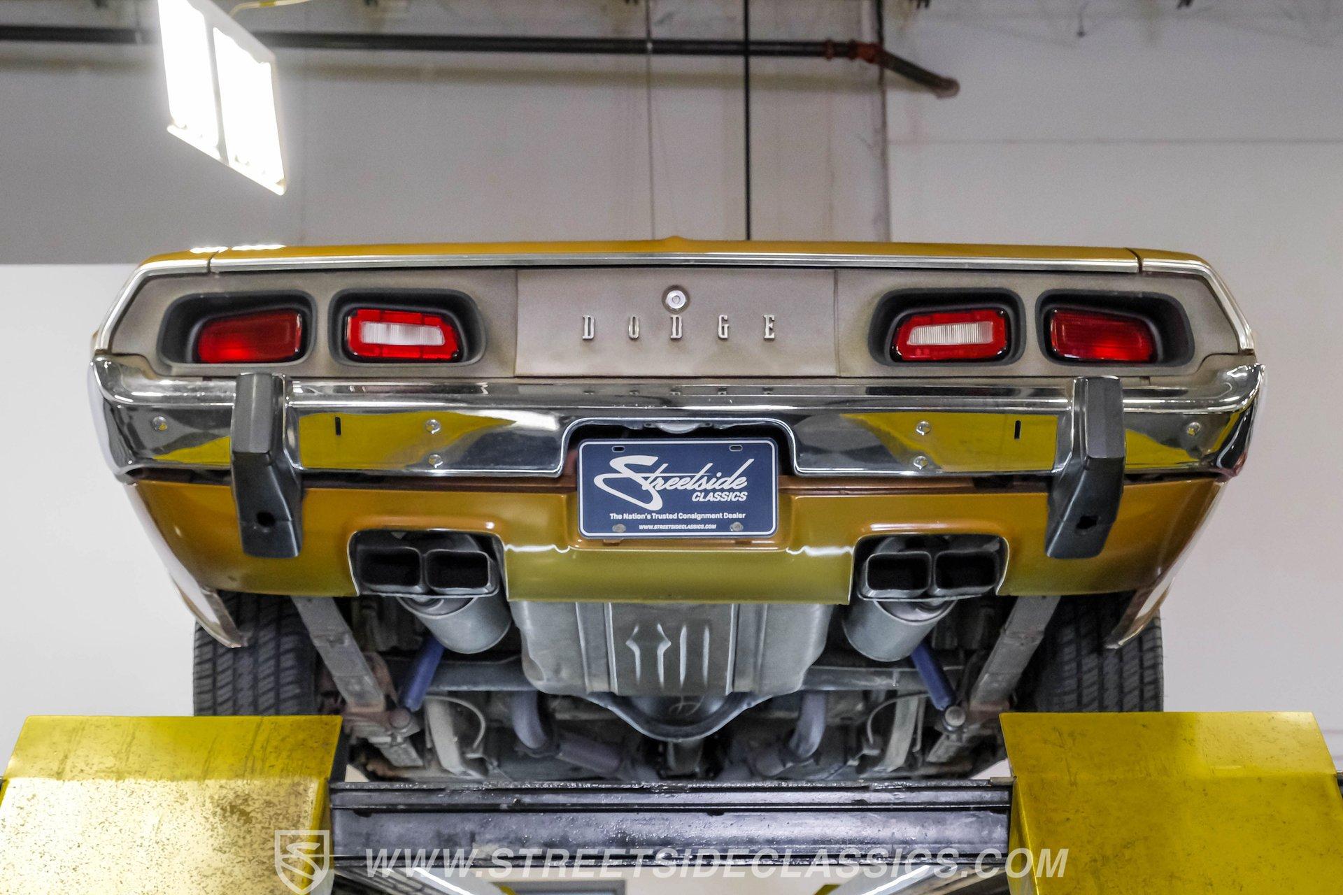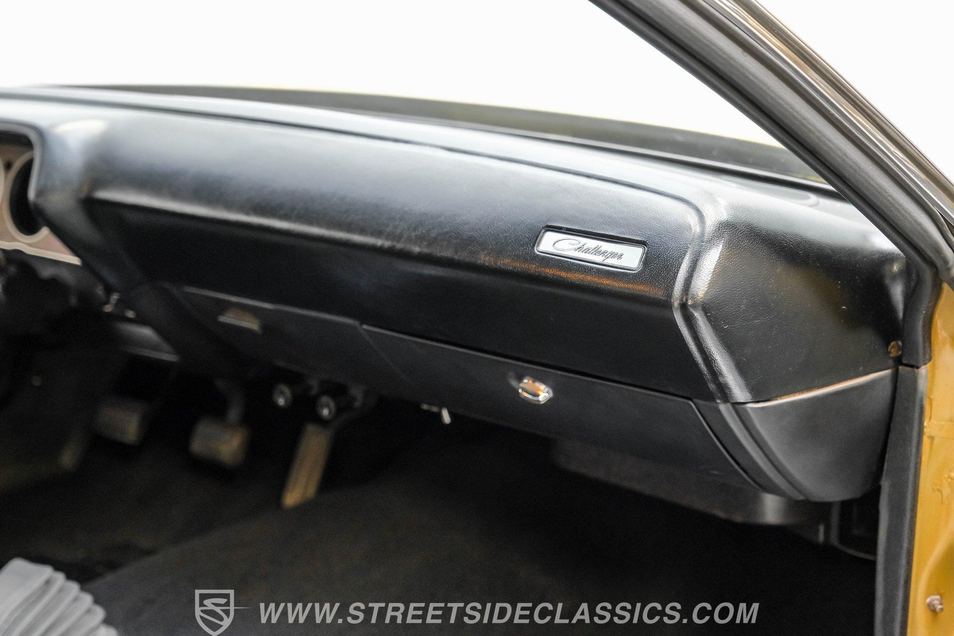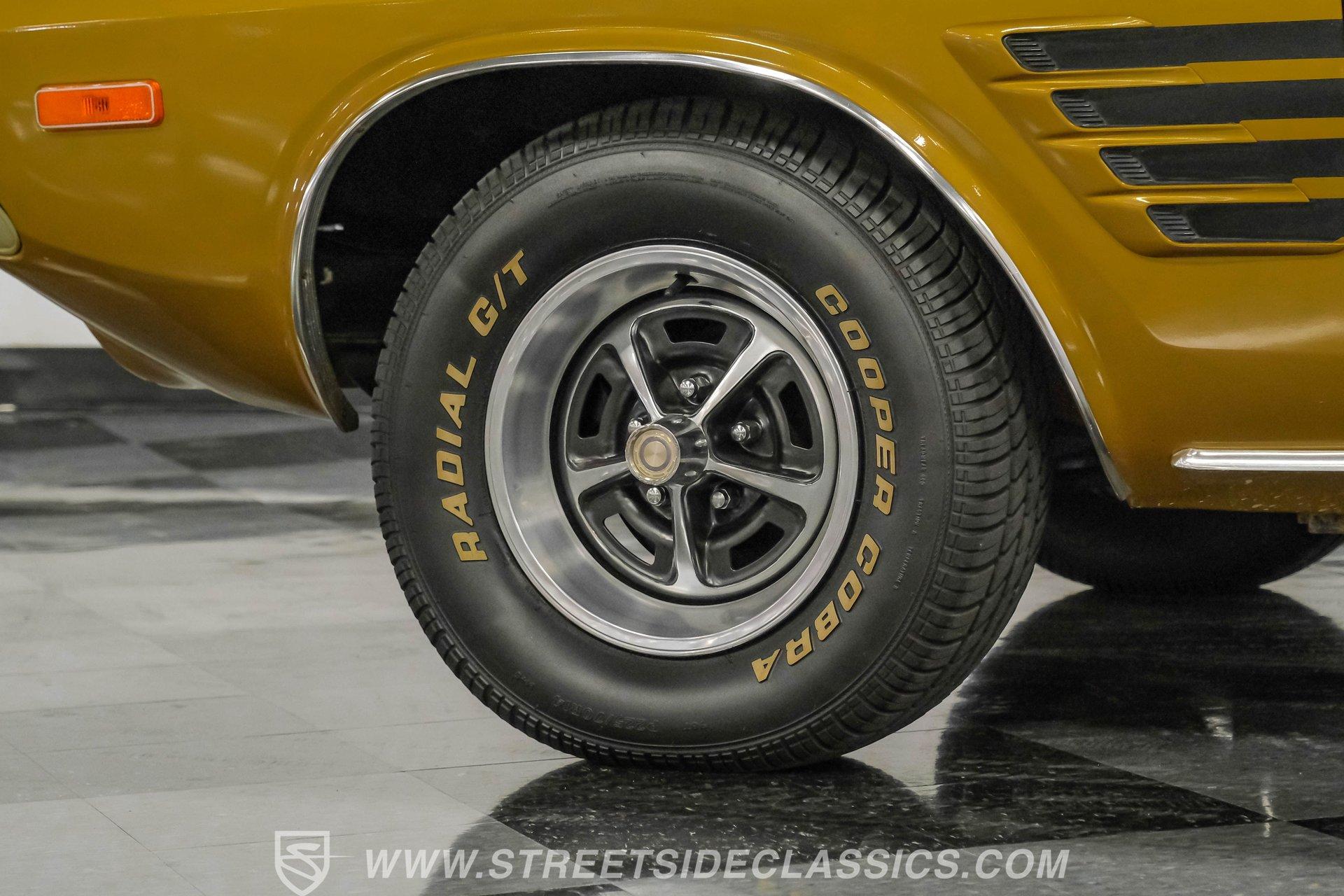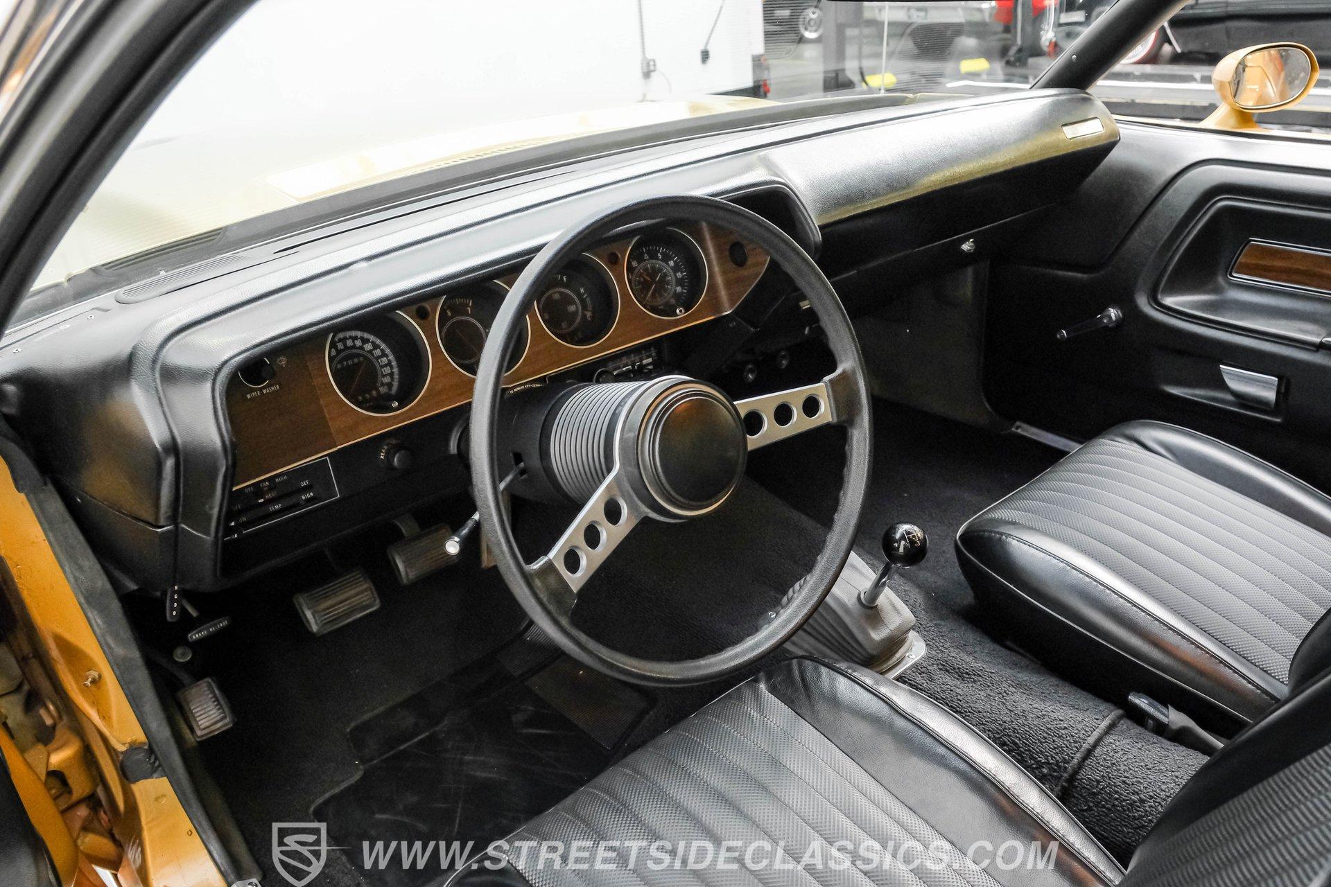 Some cars are more than transportation-they're memories, freedom, and a link to a golden era. This 1973 Dodge Challenger Rallye captures that spirit, transporting you back to the height of muscle car performance with its V8 sound and shimmering metallic finish. Repainted in factory correct Code JY6 Gold Metallic with black vinyl side graphics and chrome bumpers, it offers timeless style and standout presence. Step inside and discover a factory-correct black interior that exemplifies both comfort and style. Black bucket seats provide a supportive and commanding driving position, complemented by a classic floor shifter and a factory dash and gauges. The headliner and carpets continue the black theme, and the correct door panels, factory radio, and seatbelts ensure the cabin feels both authentic and inviting. Under the hood, you'll find a legendary 340 V8 engine topped with a four-barrel carburetor, delivering the kind of power and sound that defined an era. The engine bay maintains a clean, stock appearance, while the three-speed manual transmission puts you in total control of the driving experience. A robust 8 3/4 rear axle and factory-style suspension work together to provide solid handling, and power front disc brakes ensure confident stopping power. HIGHLIGHTS 340 V8 Engine with Four-Barrel Carburetor Three Speed Manual Transmission Factory Correct Code JY6 Gold Metallic Paint Black Vinyl Side Graphics Power Front Disc Brakes Power Steering Factory Style 14" Wheels With 225/70R14 Tires Factory Black Bucket Seat Interior Original Factory Radio Documentation Binder With Owner's Manual, Invoice, Window Sticker Financing Available Vehicle Protection Plans Available Worldwide Shipping This 1973 Dodge Challenger Rallye is a standout example of classic American muscle, combining timeless style, a potent V8, and authentic details. Whether you're looking to relive the glory days or start a new chapter in your automotive journey, this Challenger is ready for the road. Call, email, or come visit our showroom today!