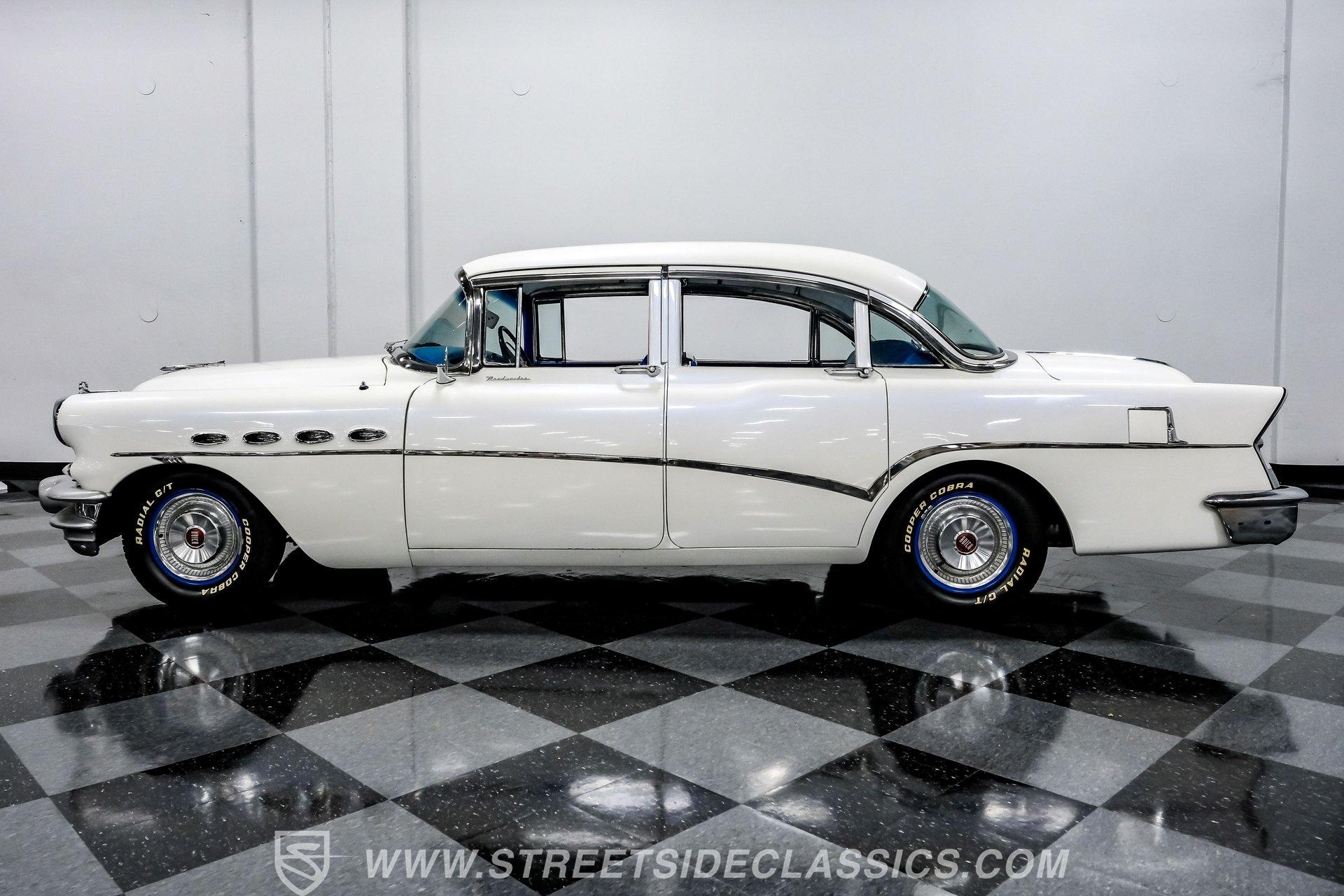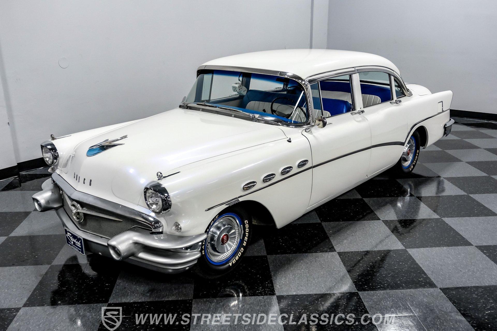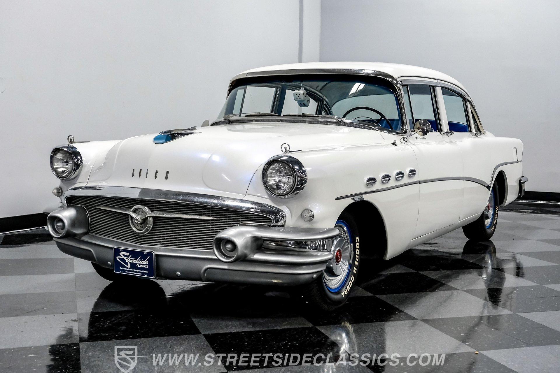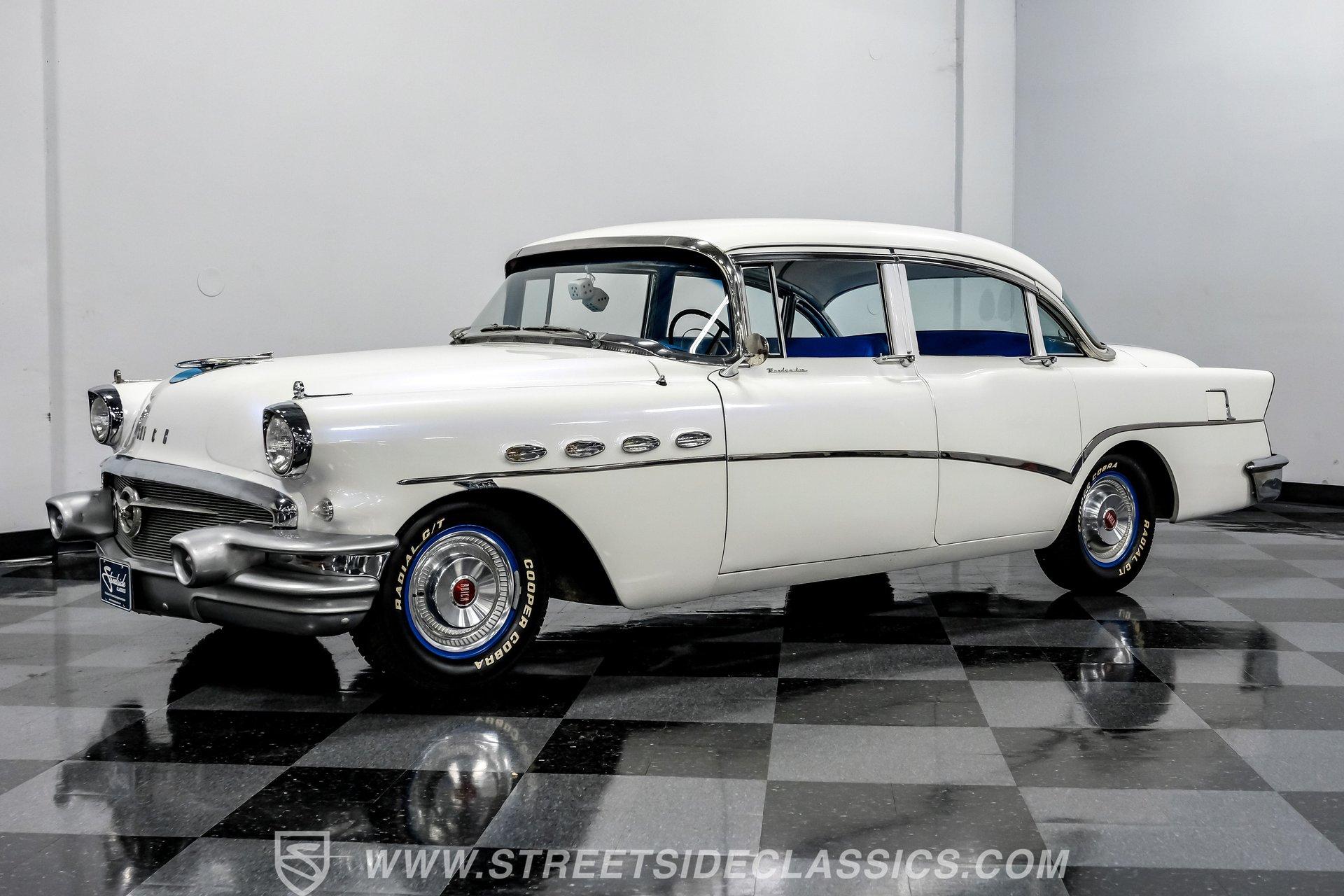 Some vehicles are more than transportation-they're reminders of a bold, chrome filled era. This 1956 Buick Roadmaster carries that spirit, from road trips on Route 66 to nights under neon lights. Repainted in Pearl White with chrome rear brightwork and a painted front bumper, it stands as a proud piece of Americana, ready for its next owner. Slide into the inviting interior, where vintage style meets comfort. The cabin features a striking white and blue vinyl combination, complemented by matching door panels and dash. Blue carpets and a white headliner create a cohesive look, while the factory steering wheel and gauges keep the original charm intact. Power windows add a touch of luxury, and the spacious seating ensures every drive is a pleasure for both driver and passengers. Under the hood, you'll find the heart of this Roadmaster-a robust 322 Nailhead V8 engine topped with an Edelbrock 4-barrel carburetor. The engine bay sports an eye-catching red, white, and blue color scheme, making it a showpiece at any gathering. Paired with a smooth-shifting 2-speed automatic transmission and factory column shifter, this Buick offers a classic driving experience. Power brakes and power steering enhance control, while the factory rear end and steel wheels with hubcaps keep it true to its roots. HIGHLIGHTS 322 Nailhead V8 Engine with Edelbrock 4-Barrel Carb 2-Speed Automatic Transmission Full Repaint in Pearl White White And Blue Vinyl Interior Power Windows Power Steering Power Brakes with Drum Setup 15-Inch Steel Wheels with Hubcaps Financing Available Vehicle Protection Plans Available Worldwide Shipping Owning a 1956 Buick Roadmaster Sedan is about embracing a legacy of style and substance. Whether you're searching for a standout weekend cruiser or a unique addition to your collection, this Buick is ready for its next adventure. Don't let this opportunity pass you by-call, email, or come visit our showroom today!