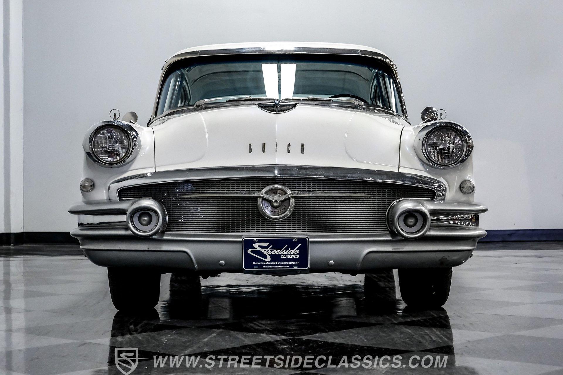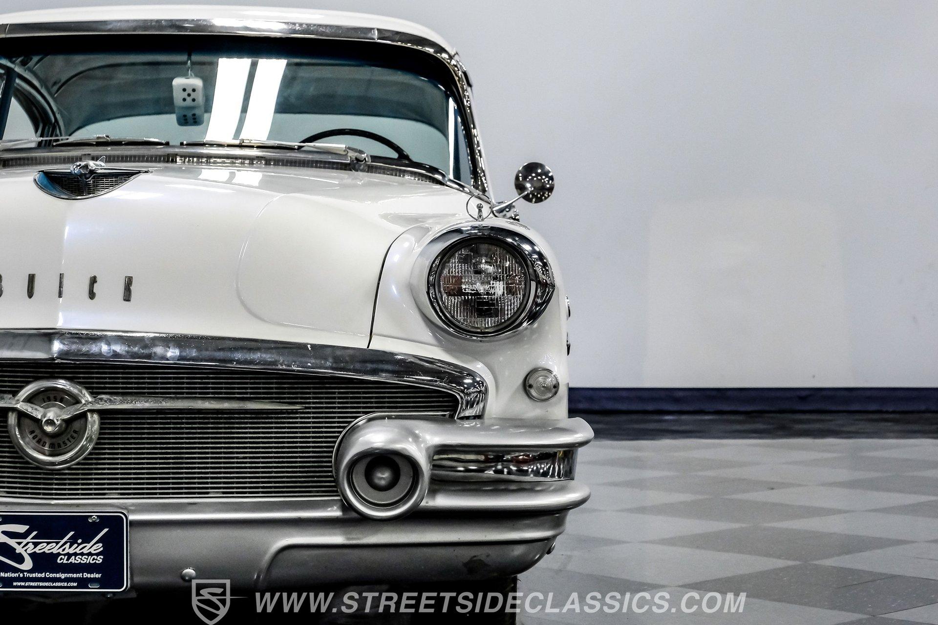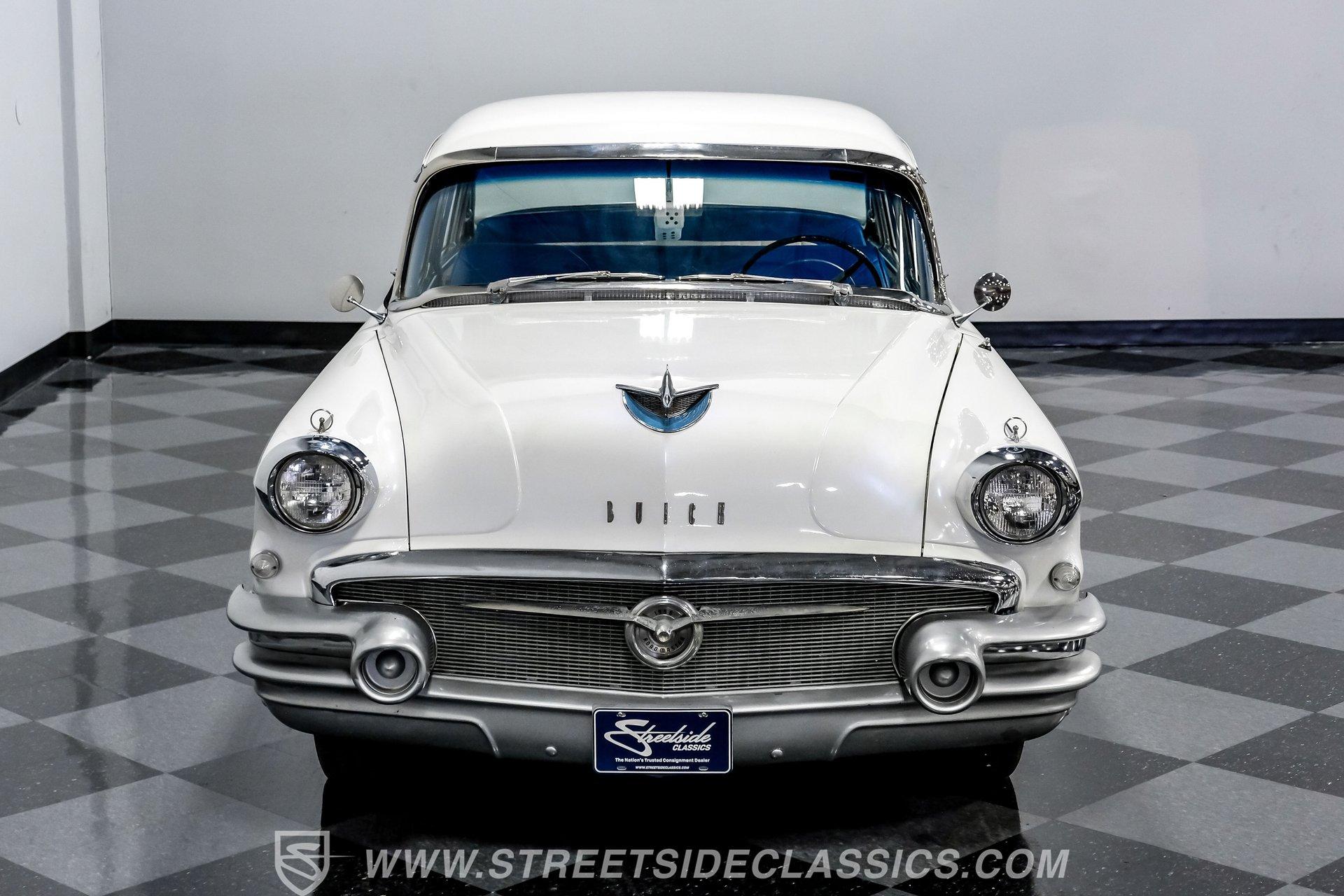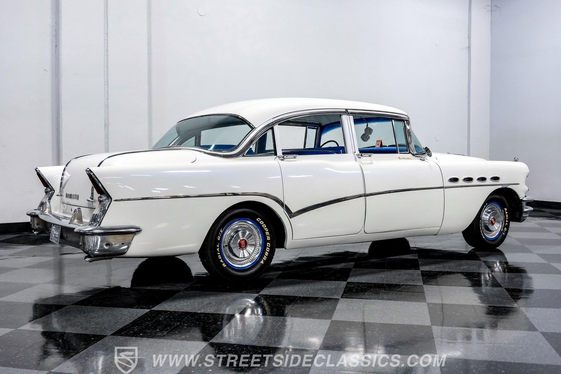 Some vehicles are more than transportation-they're reminders of a bold, chrome filled era. This 1956 Buick Roadmaster carries that spirit, from road trips on Route 66 to nights under neon lights. Repainted in Pearl White with chrome rear brightwork and a painted front bumper, it stands as a proud piece of Americana, ready for its next owner. Slide into the inviting interior, where vintage style meets comfort. The cabin features a striking white and blue vinyl combination, complemented by matching door panels and dash. Blue carpets and a white headliner create a cohesive look, while the factory steering wheel and gauges keep the original charm intact. Power windows add a touch of luxury, and the spacious seating ensures every drive is a pleasure for both driver and passengers. Under the hood, you'll find the heart of this Roadmaster-a robust 322 Nailhead V8 engine topped with an Edelbrock 4-barrel carburetor. The engine bay sports an eye-catching red, white, and blue color scheme, making it a showpiece at any gathering. Paired with a smooth-shifting 2-speed automatic transmission and factory column shifter, this Buick offers a classic driving experience. Power brakes and power steering enhance control, while the factory rear end and steel wheels with hubcaps keep it true to its roots. HIGHLIGHTS 322 Nailhead V8 Engine with Edelbrock 4-Barrel Carb 2-Speed Automatic Transmission Full Repaint in Pearl White White And Blue Vinyl Interior Power Windows Power Steering Power Brakes with Drum Setup 15-Inch Steel Wheels with Hubcaps Financing Available Vehicle Protection Plans Available Worldwide Shipping Owning a 1956 Buick Roadmaster Sedan is about embracing a legacy of style and substance. Whether you're searching for a standout weekend cruiser or a unique addition to your collection, this Buick is ready for its next adventure. Don't let this opportunity pass you by-call, email, or come visit our showroom today!