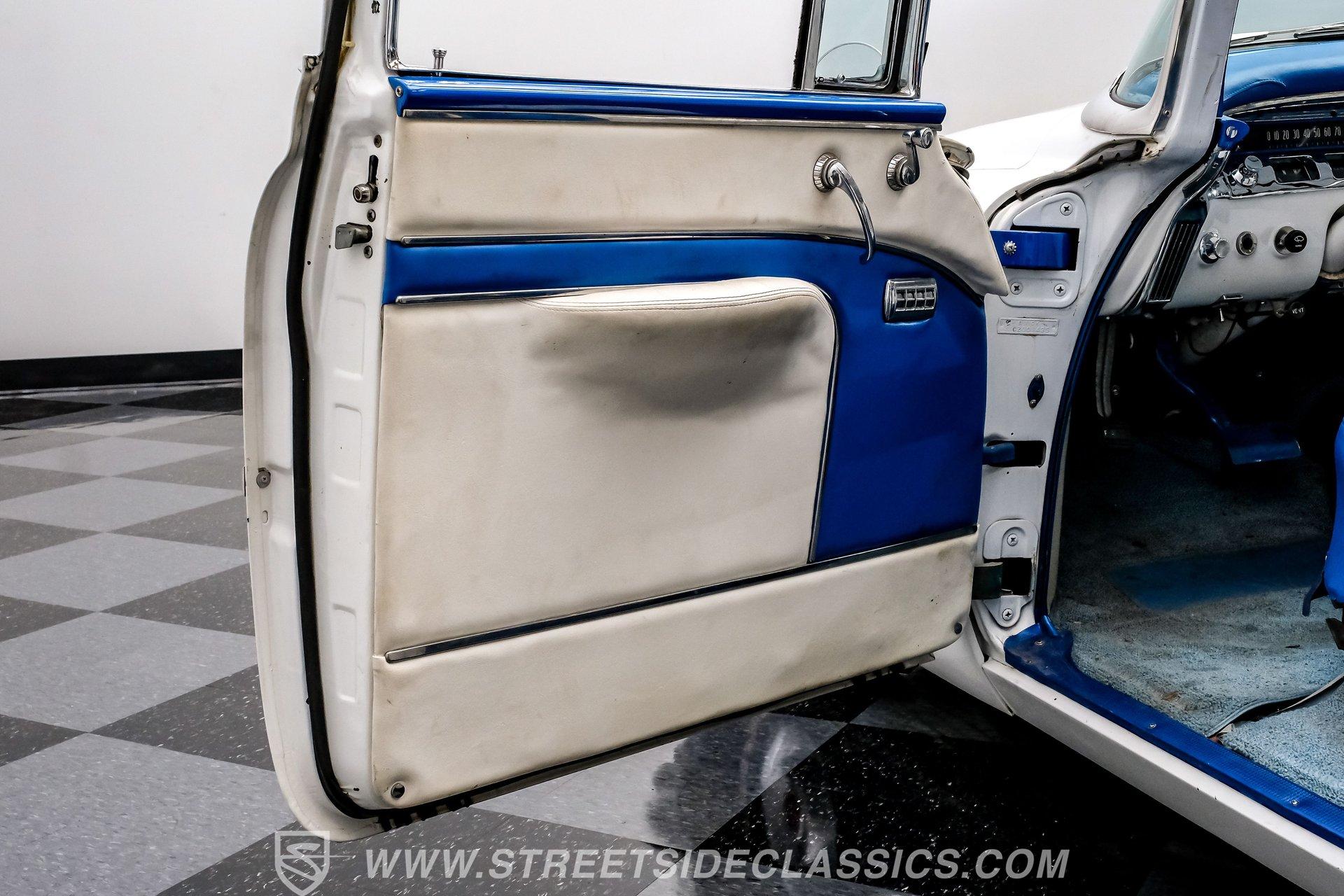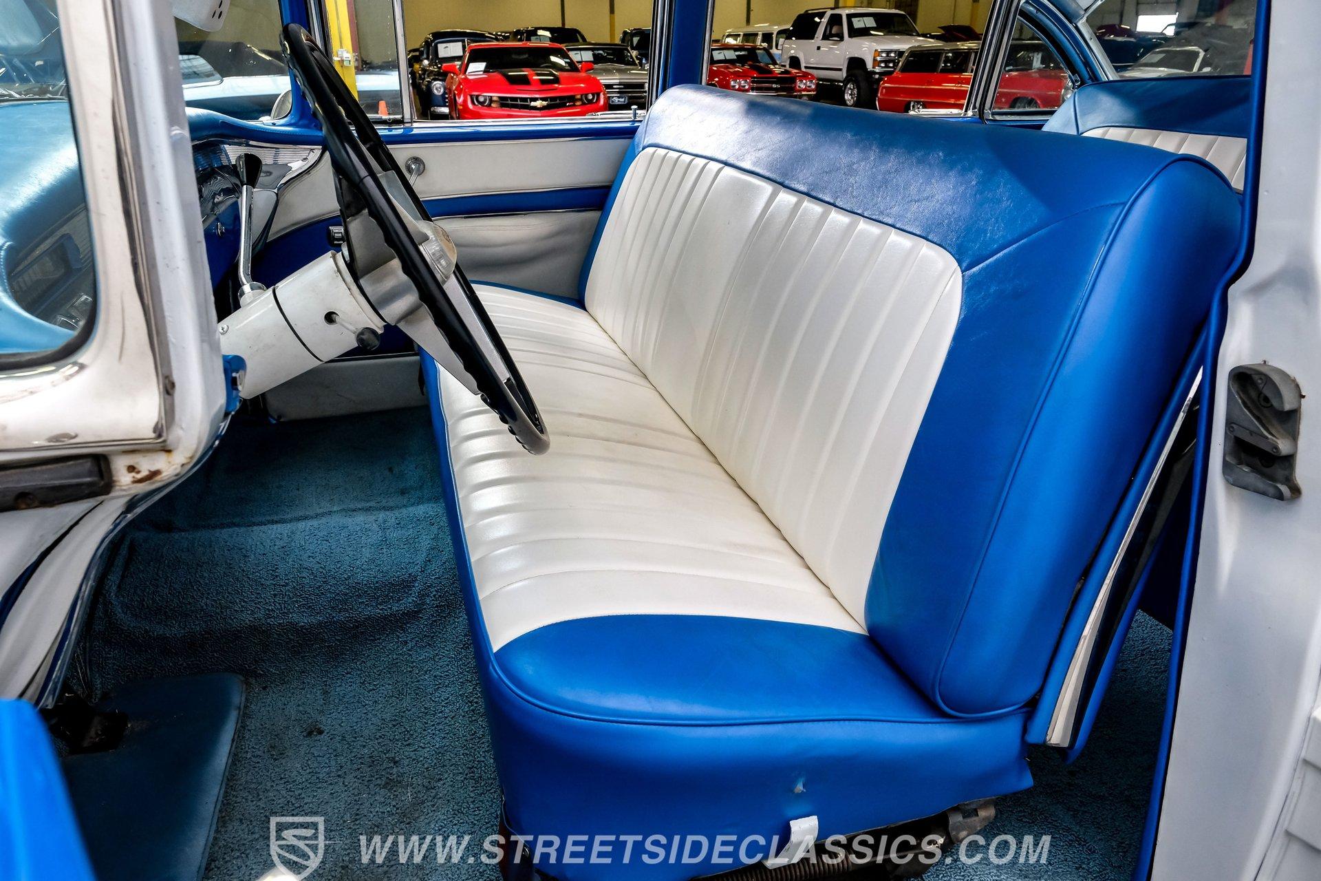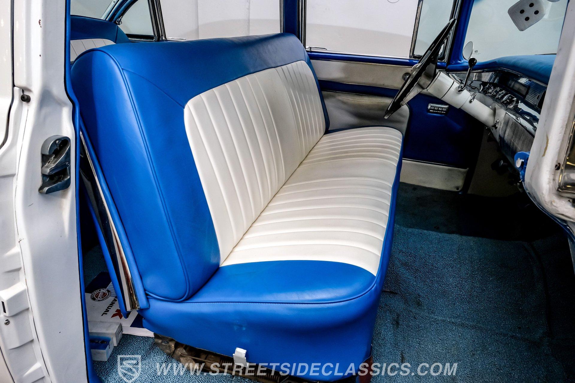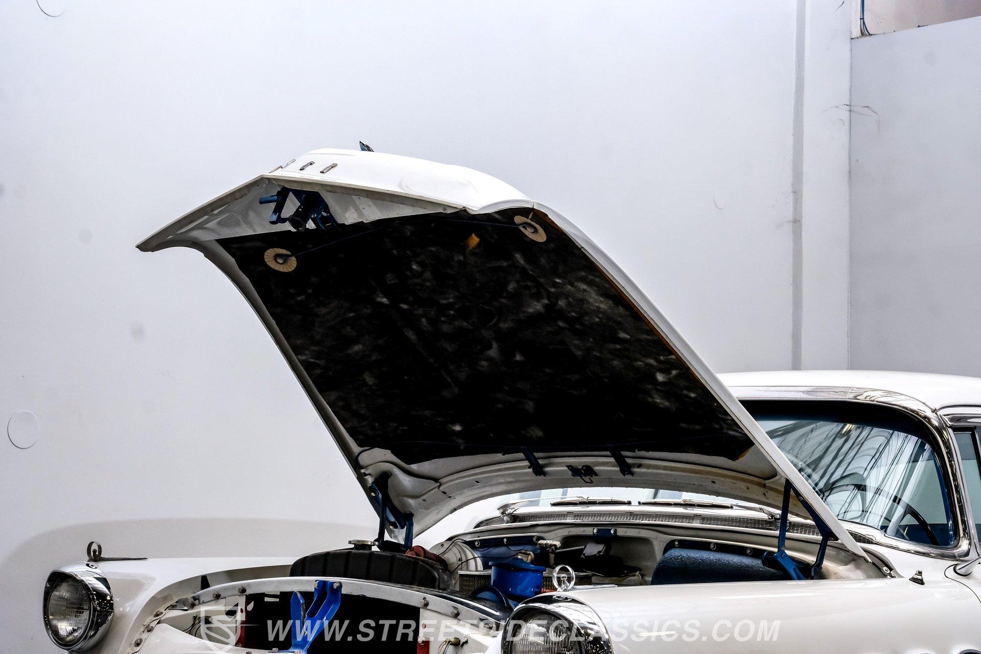 Some vehicles are more than transportation-they're reminders of a bold, chrome filled era. This 1956 Buick Roadmaster carries that spirit, from road trips on Route 66 to nights under neon lights. Repainted in Pearl White with chrome rear brightwork and a painted front bumper, it stands as a proud piece of Americana, ready for its next owner. Slide into the inviting interior, where vintage style meets comfort. The cabin features a striking white and blue vinyl combination, complemented by matching door panels and dash. Blue carpets and a white headliner create a cohesive look, while the factory steering wheel and gauges keep the original charm intact. Power windows add a touch of luxury, and the spacious seating ensures every drive is a pleasure for both driver and passengers. Under the hood, you'll find the heart of this Roadmaster-a robust 322 Nailhead V8 engine topped with an Edelbrock 4-barrel carburetor. The engine bay sports an eye-catching red, white, and blue color scheme, making it a showpiece at any gathering. Paired with a smooth-shifting 2-speed automatic transmission and factory column shifter, this Buick offers a classic driving experience. Power brakes and power steering enhance control, while the factory rear end and steel wheels with hubcaps keep it true to its roots. HIGHLIGHTS 322 Nailhead V8 Engine with Edelbrock 4-Barrel Carb 2-Speed Automatic Transmission Full Repaint in Pearl White White And Blue Vinyl Interior Power Windows Power Steering Power Brakes with Drum Setup 15-Inch Steel Wheels with Hubcaps Financing Available Vehicle Protection Plans Available Worldwide Shipping Owning a 1956 Buick Roadmaster Sedan is about embracing a legacy of style and substance. Whether you're searching for a standout weekend cruiser or a unique addition to your collection, this Buick is ready for its next adventure. Don't let this opportunity pass you by-call, email, or come visit our showroom today!