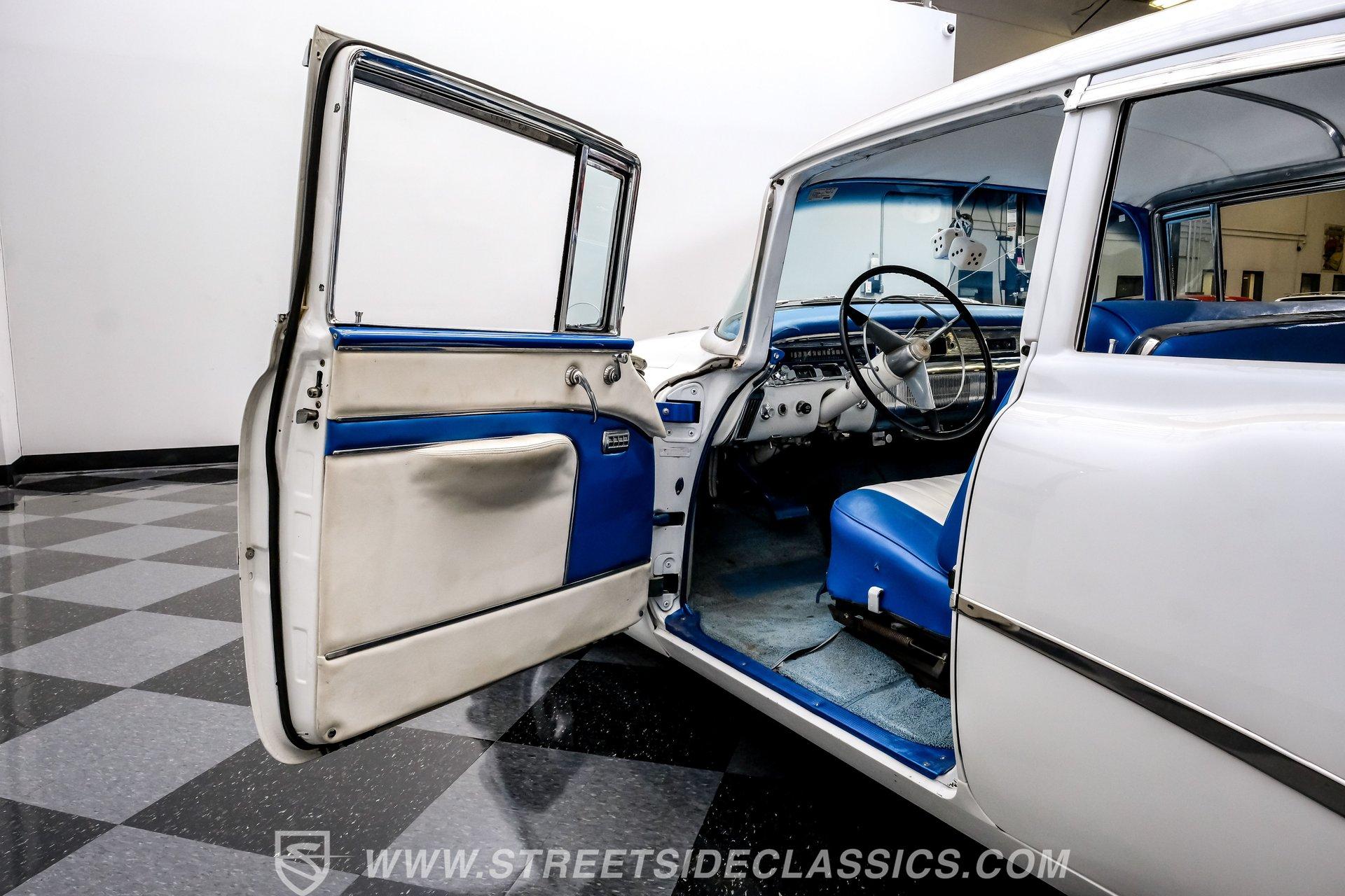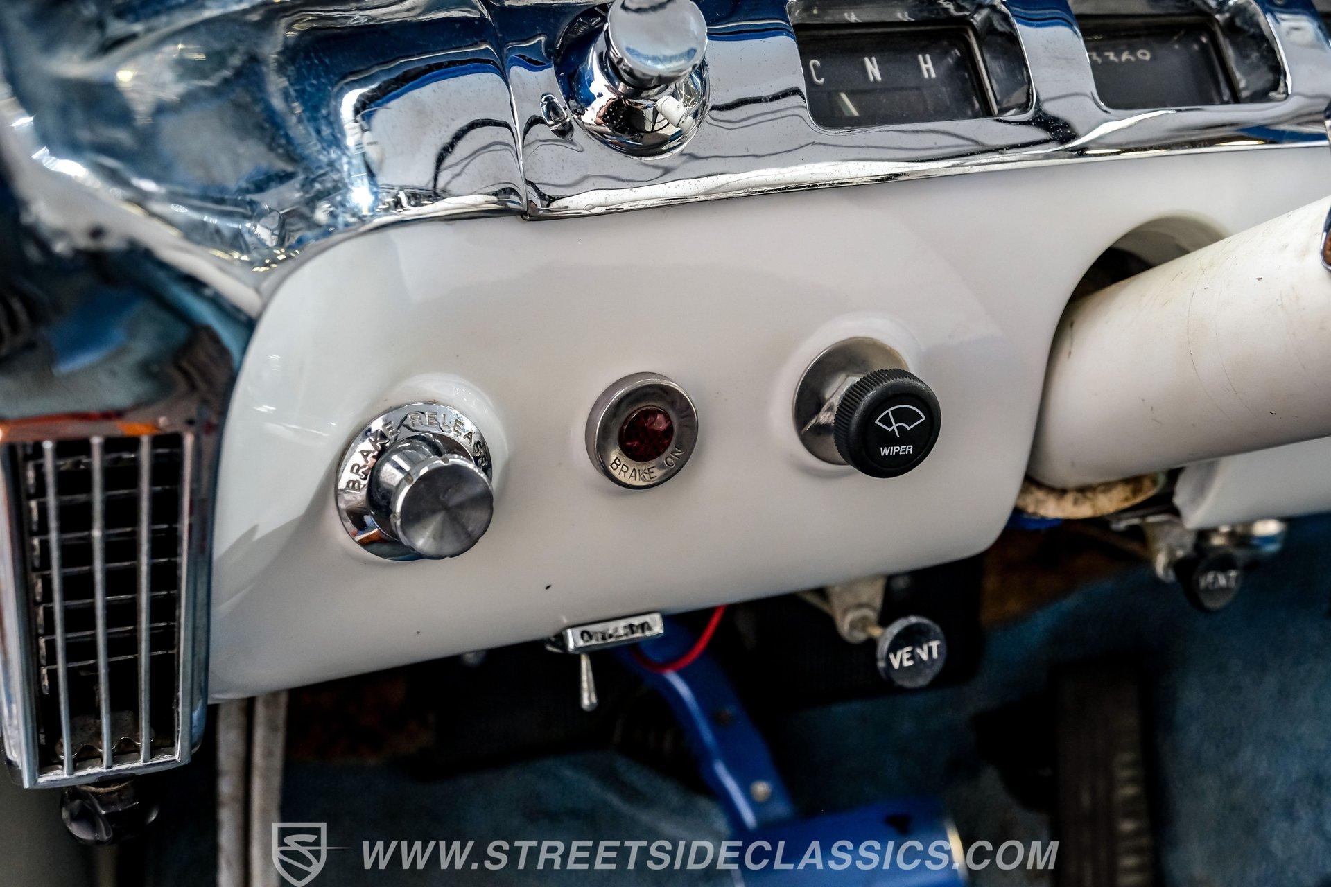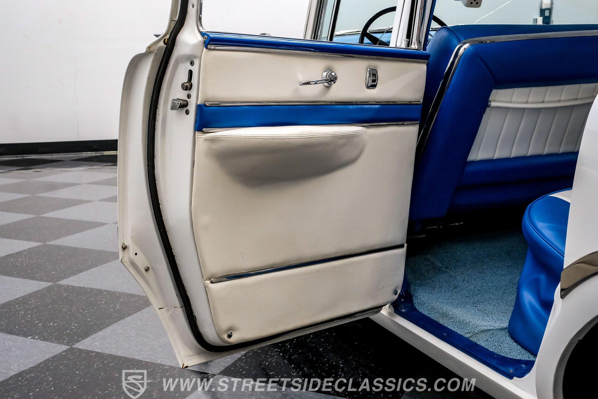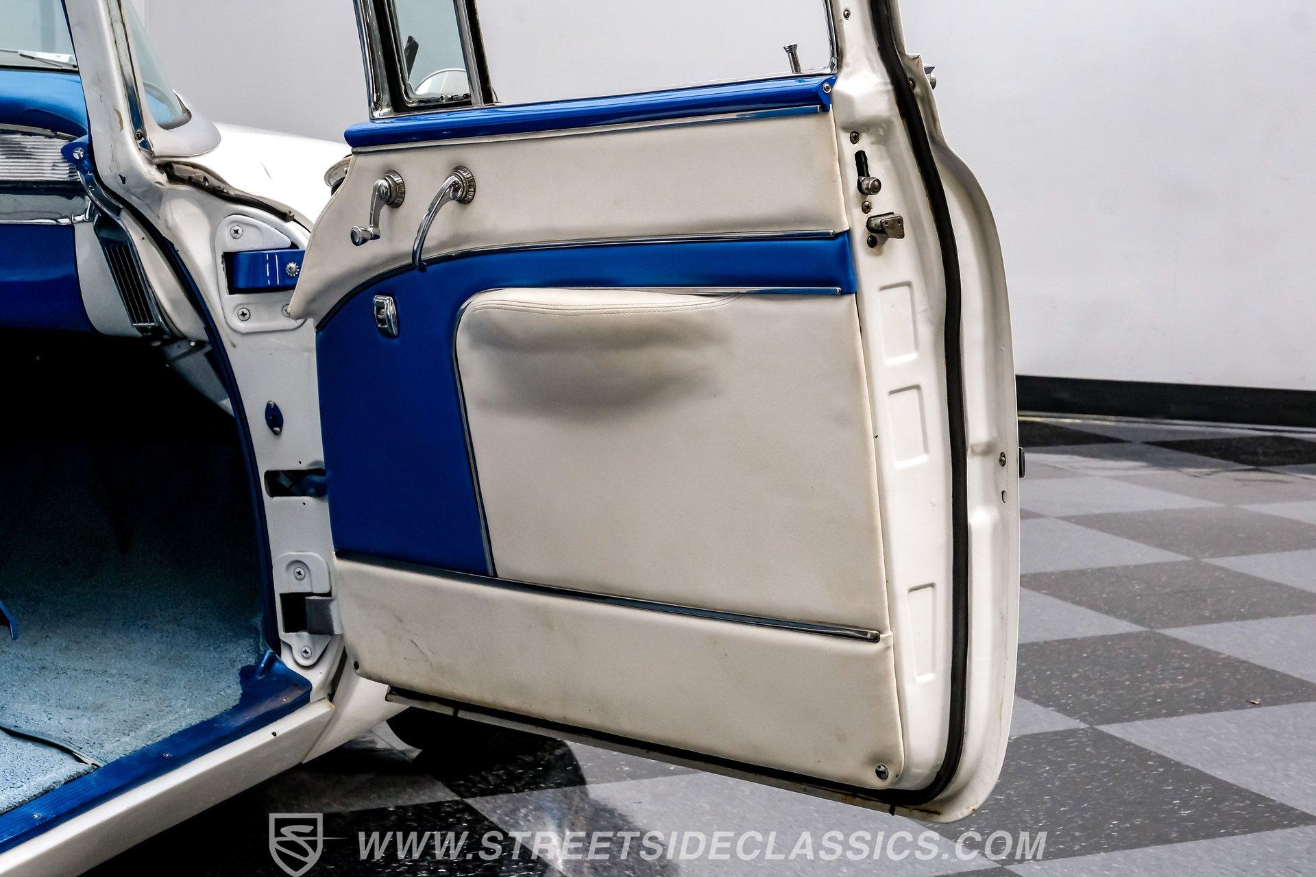 Some vehicles are more than transportation-they're reminders of a bold, chrome filled era. This 1956 Buick Roadmaster carries that spirit, from road trips on Route 66 to nights under neon lights. Repainted in Pearl White with chrome rear brightwork and a painted front bumper, it stands as a proud piece of Americana, ready for its next owner. Slide into the inviting interior, where vintage style meets comfort. The cabin features a striking white and blue vinyl combination, complemented by matching door panels and dash. Blue carpets and a white headliner create a cohesive look, while the factory steering wheel and gauges keep the original charm intact. Power windows add a touch of luxury, and the spacious seating ensures every drive is a pleasure for both driver and passengers. Under the hood, you'll find the heart of this Roadmaster-a robust 322 Nailhead V8 engine topped with an Edelbrock 4-barrel carburetor. The engine bay sports an eye-catching red, white, and blue color scheme, making it a showpiece at any gathering. Paired with a smooth-shifting 2-speed automatic transmission and factory column shifter, this Buick offers a classic driving experience. Power brakes and power steering enhance control, while the factory rear end and steel wheels with hubcaps keep it true to its roots. HIGHLIGHTS 322 Nailhead V8 Engine with Edelbrock 4-Barrel Carb 2-Speed Automatic Transmission Full Repaint in Pearl White White And Blue Vinyl Interior Power Windows Power Steering Power Brakes with Drum Setup 15-Inch Steel Wheels with Hubcaps Financing Available Vehicle Protection Plans Available Worldwide Shipping Owning a 1956 Buick Roadmaster Sedan is about embracing a legacy of style and substance. Whether you're searching for a standout weekend cruiser or a unique addition to your collection, this Buick is ready for its next adventure. Don't let this opportunity pass you by-call, email, or come visit our showroom today!