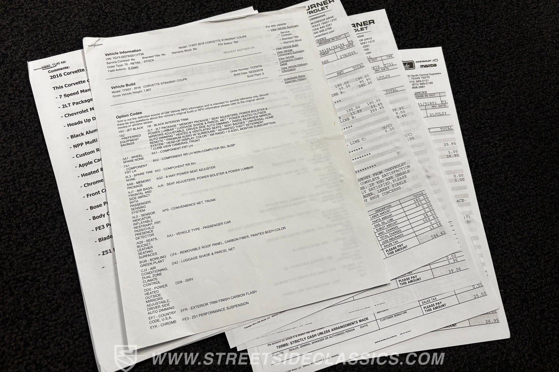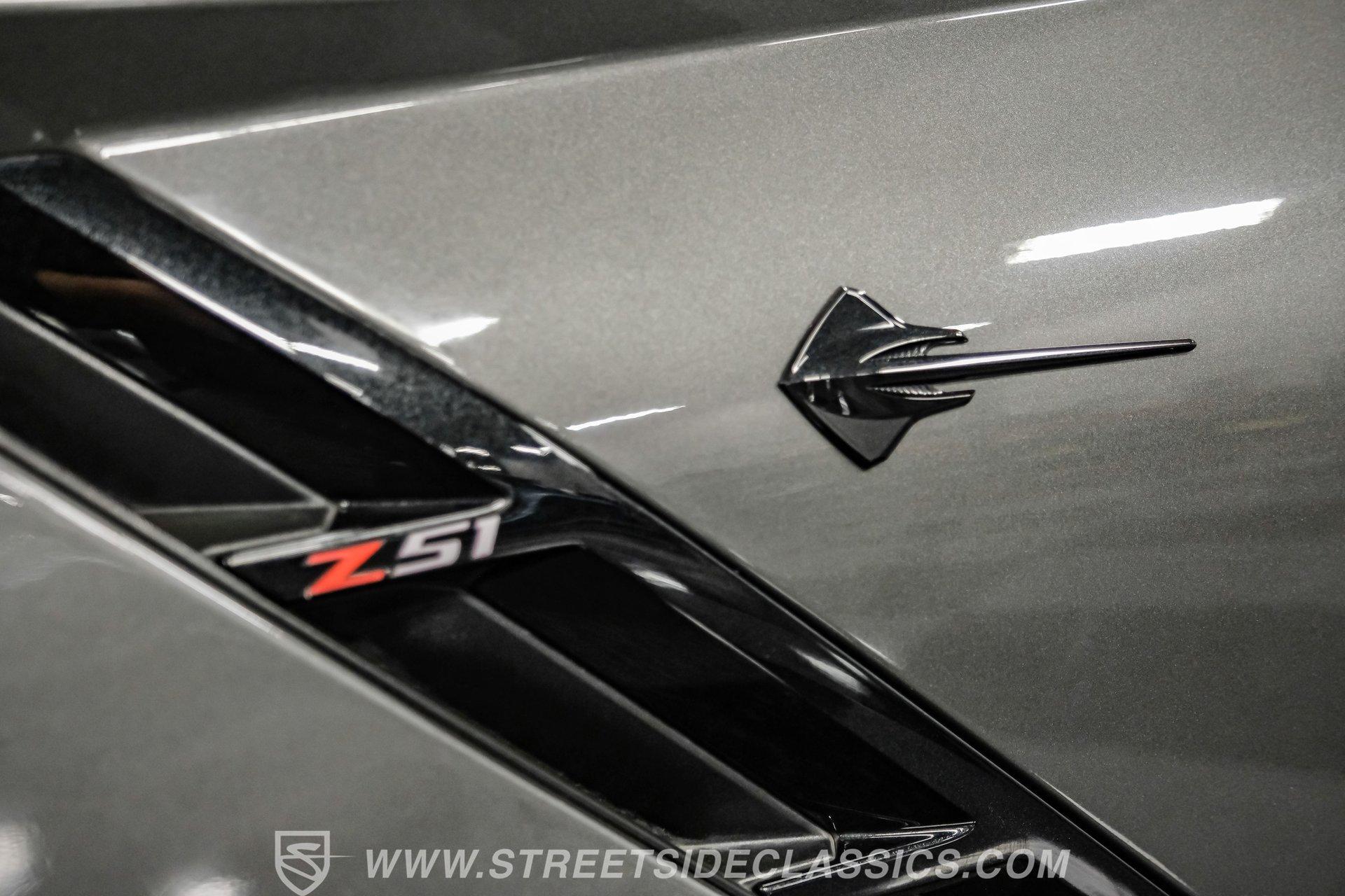 With the introduction of the mid-engine C8, the seventh generation of the Corvette became an instant classic. The C7 is the last of the traditional front-engine, rear-drive setup for the famous Bowtie brand, which is one reason this 2016 Chevrolet Corvette 2LT Z51 makes for a great addition to any enthusiast collection. With just 60,229 miles on the odometer, its believed original Shark Grey Metallic looks almost as good as the day it was new. Offset by black accent trim pieces and matching powder-coated wheels, this car looks stunning from any angle, with or without its removable targa top. Inside, we find a Jet Black stock leather interior that showcases one of the most comfortable cockpits of any Corvette generation. Sporty heated and ventilated power leather seats comfortably hold both driver and passenger, while a digital gauge display situated in front of the three-spoke steering wheel provides configurable feedback at a moment's notice. Another central display screen handles infotainment and doubles as a backup camera display. Analog HVAC dials for temperature and fan control make it easy to adjust the climate without taking your eyes off the road. Power windows, mirrors, locks, a telescoping wheel, dual-zone temperature control, navigation, and a Bose premium stereo that offers Apple CarPlay and Bluetooth connectivity make this interior easily livable for daily driving. Lift up this Corvette's signature front-hinged louvered hood, and we find the original 6.2-liter LT1 V-8 engine. In stock guise, the Gen III LT1 utilizes variable valve technology and direct injection to deliver a stout 460 hp and 465 lb-ft of torque. That seamless power is funneled through a somewhat rare seven-speed manual transmission before being sent to a 3.42:1-gear, limited-slip rear end. A staggered set of ten-spoke black wheels measuring 18 inches up front and 19 inches out back is shod in sticky 245/40ZR-18 and wider 285/35ZR-19 Continental rubber, respectively. HIGHLIGHTS: Front Engine Corvette's Final Generation 2LT Package 60,229 Actual Miles Shark Grey Metallic w/ Targa Top 6.2 Liter LT1 Multi Mode Exhaust 7 Speed Manual Stock and Original Black Leather Interior Heated and Ventilated Seats Digital Gauge Cluster Backup Camera and Front Curb View Camera Apple CarPlay Memory Package Navigation Power Locks, Mirrors, Seats, Windows Sold with Receipts and Owner's Manual This well-kept, low-mileage 2016 Chevrolet Corvette 2LT Z51 comes with a few bonus features, including its build info, owner's manual, and service receipts, to give the feeling of having about as new a car as can be had from 2017. But don't wait; the final front-engine generation of Corvettes is being scooped up by collectors everywhere. Call today!