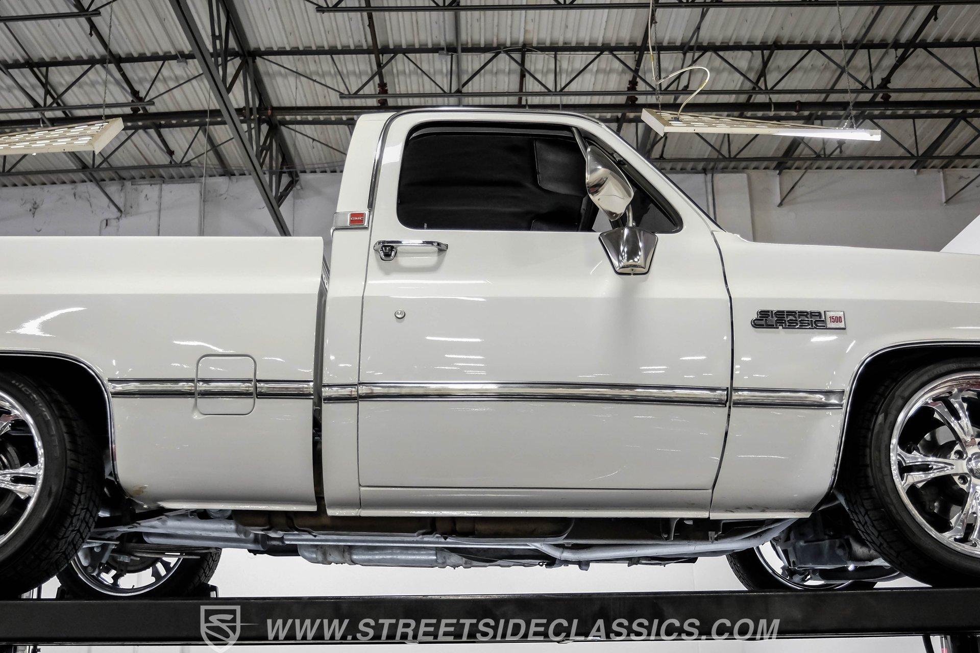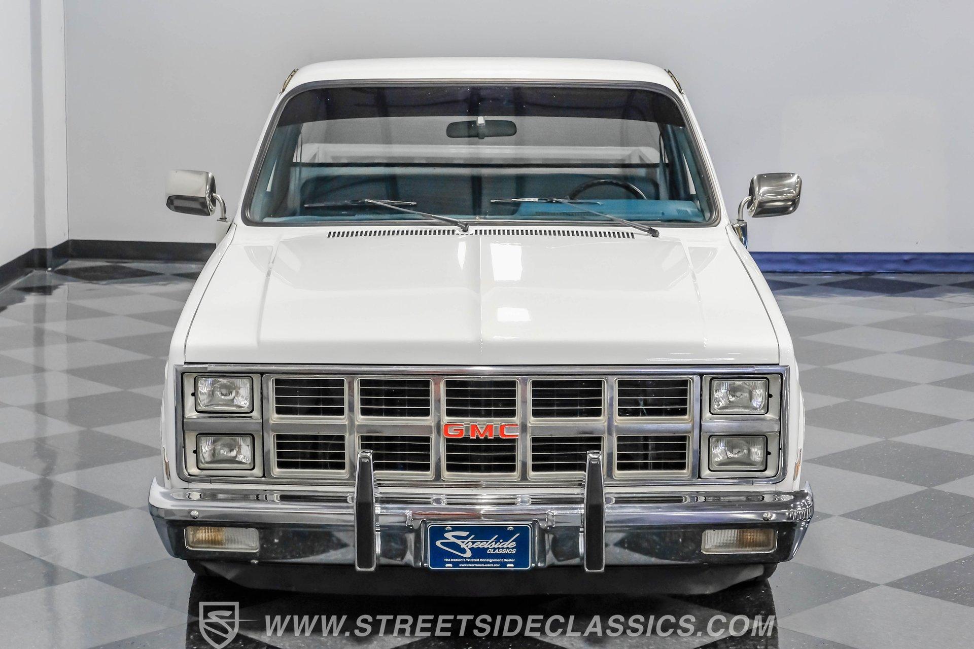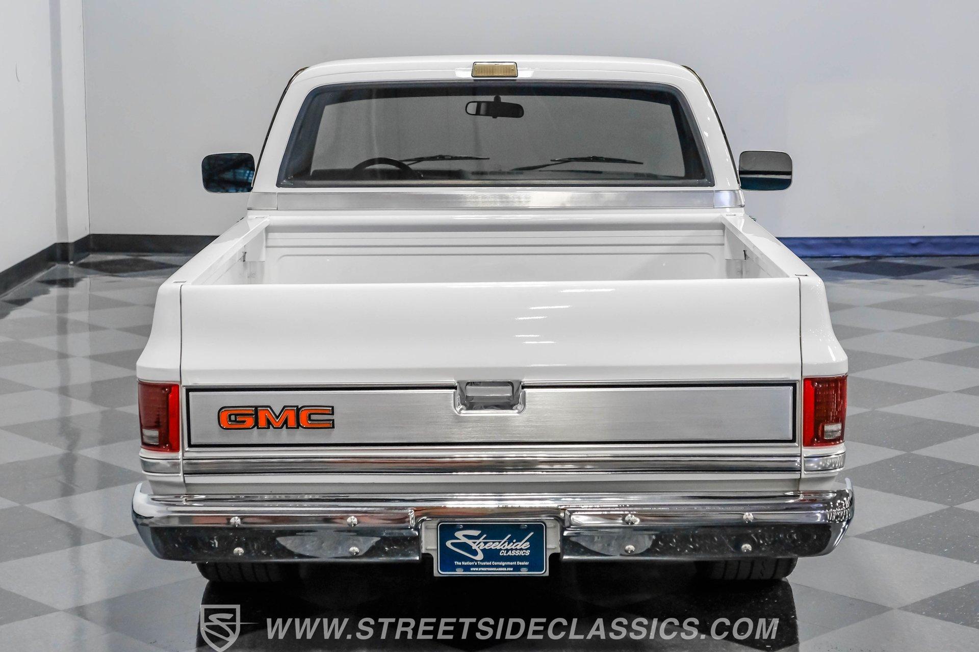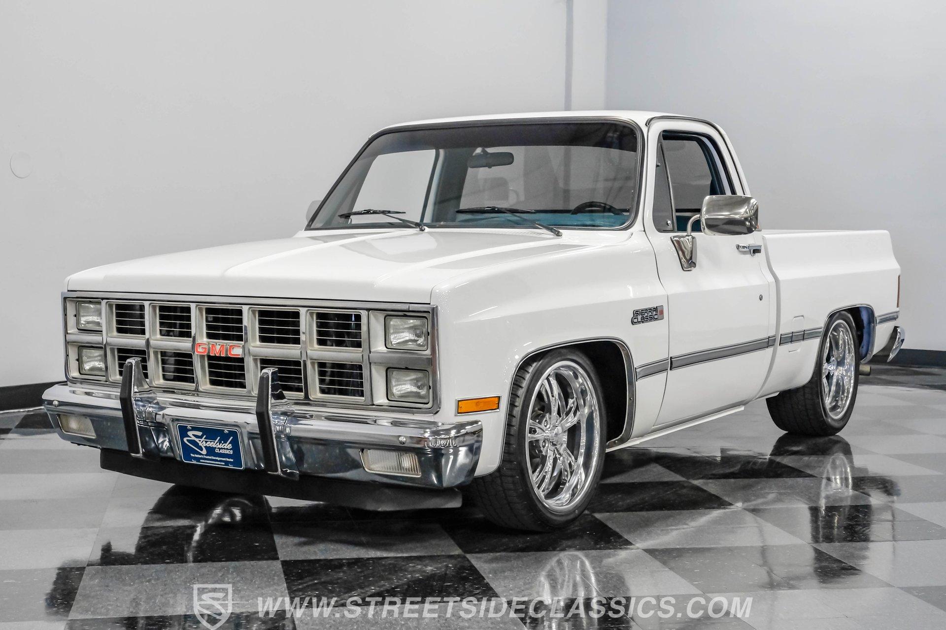 A classic pickup never goes out of style, and this 1982 GMC Sierra 1500 Restomod proves it. Blending vintage American craftsmanship with modern performance, this squarebody turns heads everywhere it goes. With fresh white paint, chrome brightwork, and a color matched bed lined in black Rhino coating on the floor, it delivers timeless appeal with contemporary refinement. Step inside to discover a cabin where vintage charm meets thoughtful upgrades. The blue vinyl contoured bench seat offers both support and style, complemented by correct blue door panels, blue carpets, and a padded headliner. Enjoy modern comfort with power locks, power windows, and a tilt steering column. Dakota Digital gauges keep you informed, while a Kenwood AM/FM/CD/Bluetooth/Aux sound system and subwoofer deliver rich audio for every drive. The cab is insulated with Kilmat for a quieter, more enjoyable ride. Under the hood, this Sierra packs a punch with a Gen III 6.0L Vortec V8, paired to a robust 4L80E 4-speed automatic transmission. The modern powertrain ensures strong acceleration and reliable cruising. Recent upgrades include a BP Automotive harness, modern radiator with dual electric fans, and all modern accessories, making this truck as capable as it is stylish. The Belltech lowering suspension, power steering, and power front disc brakes deliver confident handling and stopping power, while the 10-bolt rear axle and Nitto tires on 20" US Mags wheels complete the performance package. HIGHLIGHTS 6.0L Gen III Vortec V8 Engine 4L80E 4-Speed Automatic Transmission 9,057 Miles Since Built Belltech Lowering Suspension Power Steering Power Front Disc Brakes 20" U.S. Mags Wheels Nitto Tires (Installed 2024) Dakota Digital Gauges Kenwood AM/FM/CD/Bluetooth/Aux Stereo Blue Vinyl Contoured Bench Seat Modern Air Conditioning (R-134A) Color-Matched Bed with Black Rhino Liner Floor Recent White Repaint and Chrome Brightwork Financing Available Vehicle Protection Plans Available Worldwide Shipping This 1982 GMC Sierra 1500 Restomod offers the best of both worlds, merging classic looks with modern performance and convenience. Whether you're looking for a standout cruiser or a show-ready pickup, this Sierra is ready to impress. Call, email, or come visit our showroom today!