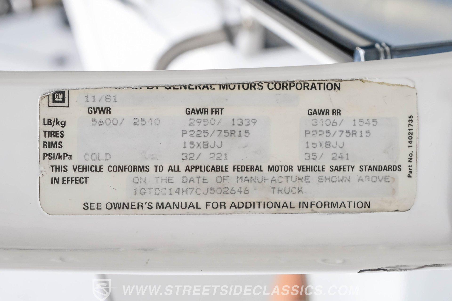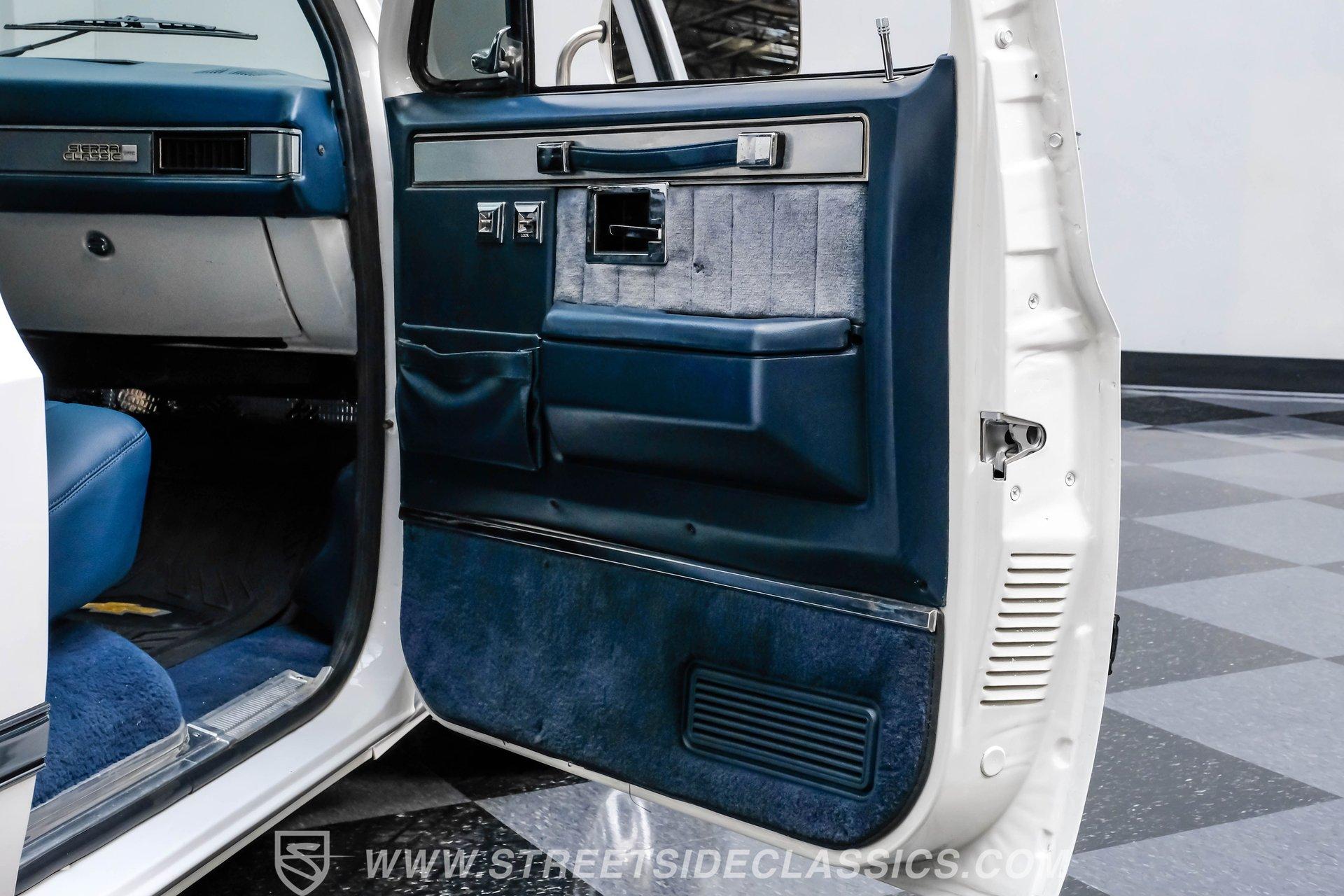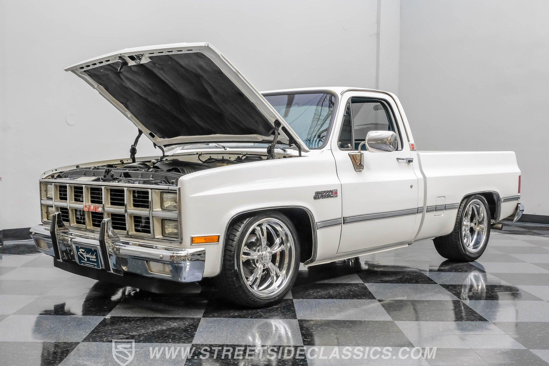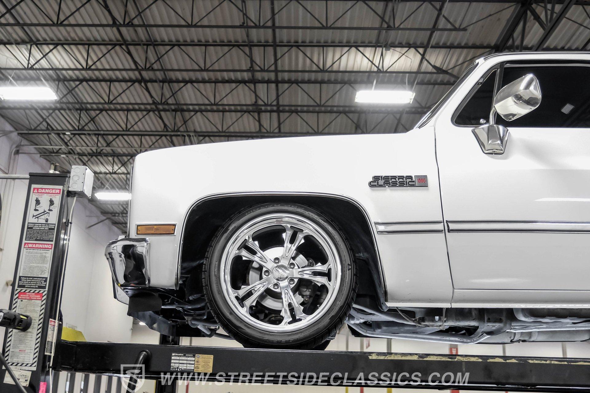 A classic pickup never goes out of style, and this 1982 GMC Sierra 1500 Restomod proves it. Blending vintage American craftsmanship with modern performance, this squarebody turns heads everywhere it goes. With fresh white paint, chrome brightwork, and a color matched bed lined in black Rhino coating on the floor, it delivers timeless appeal with contemporary refinement. Step inside to discover a cabin where vintage charm meets thoughtful upgrades. The blue vinyl contoured bench seat offers both support and style, complemented by correct blue door panels, blue carpets, and a padded headliner. Enjoy modern comfort with power locks, power windows, and a tilt steering column. Dakota Digital gauges keep you informed, while a Kenwood AM/FM/CD/Bluetooth/Aux sound system and subwoofer deliver rich audio for every drive. The cab is insulated with Kilmat for a quieter, more enjoyable ride. Under the hood, this Sierra packs a punch with a Gen III 6.0L Vortec V8, paired to a robust 4L80E 4-speed automatic transmission. The modern powertrain ensures strong acceleration and reliable cruising. Recent upgrades include a BP Automotive harness, modern radiator with dual electric fans, and all modern accessories, making this truck as capable as it is stylish. The Belltech lowering suspension, power steering, and power front disc brakes deliver confident handling and stopping power, while the 10-bolt rear axle and Nitto tires on 20" US Mags wheels complete the performance package. HIGHLIGHTS 6.0L Gen III Vortec V8 Engine 4L80E 4-Speed Automatic Transmission 9,057 Miles Since Built Belltech Lowering Suspension Power Steering Power Front Disc Brakes 20" U.S. Mags Wheels Nitto Tires (Installed 2024) Dakota Digital Gauges Kenwood AM/FM/CD/Bluetooth/Aux Stereo Blue Vinyl Contoured Bench Seat Modern Air Conditioning (R-134A) Color-Matched Bed with Black Rhino Liner Floor Recent White Repaint and Chrome Brightwork Financing Available Vehicle Protection Plans Available Worldwide Shipping This 1982 GMC Sierra 1500 Restomod offers the best of both worlds, merging classic looks with modern performance and convenience. Whether you're looking for a standout cruiser or a show-ready pickup, this Sierra is ready to impress. Call, email, or come visit our showroom today!