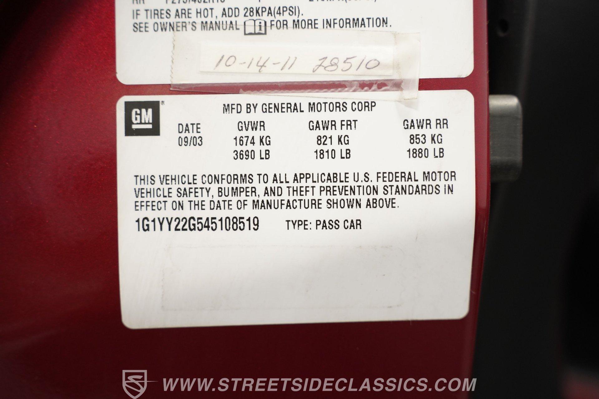 This 2004 Chevrolet Corvette Z51 in Magnetic Red Metallic is the perfect blend of style and performance. With a well-preserved ebony leather interior, it's clear that thoughtful care has gone into every detail of this sleek machine. Sitting confidently on factory optional 17-inch front and 18-inch rear chrome Corvette wheels, wrapped in performance-focused 245/45ZR17 front and 275/40ZR18 rear tires, this Corvette is ready to impress whether you're cruising through town or tackling twisty roads. This car was optioned from the factory with rare both painted and transparent removable targa roof panels. Documentation includes the window sticker as well as build sheet. Inside is a driver's delight, featuring comfortable leather bucket seats that show very well. The interior features power windows, power locks, ice-cold air conditioning, and an upgraded Pioneer AM/FM/AUX/Bluetooth touchscreen stereo. The center console shifter puts control at your fingertips, while the heads-up display keeps vital information in your line of sight. Dual airbags provide added peace of mind as you enjoy the open-air targa roof excitement this offers. Additionally, this Corvette has been upgraded with a flat-bottom steering wheel with fiber-style accents and Corvette branded shift knob. At the heart of this Corvette is the legendary 5.7-liter LS1 V8, a fuel-injected powerhouse that is paired with a slick-shifting Tremec T56 6-speed manual transmission. With only 57,047 actual miles, this low-mileage Corvette is a pleasure to drive, and the upgraded Magnaflow mufflers are music to any car enthusiast's ears. The Z51 Performance Handling Package ensures that this Corvette is equipped to handle like a dream, thanks to its sport-tuned suspension and powerful disc brakes at all four corners. HIGHLIGHTS: 5.7L LS1 V8 Engine 6-Speed Manual Tremec T56 Transmission Z51 Performance Handling Package Power 4-Wheel Disc Brakes 3.42 Rear Axle Ratio Magnetic Red Metallic Paint Upgraded Flat-Bottom Steering Wheel (Original Wheel Included) Car Cover Optional Chrome Corvette Wheels (17" Front, 18" Rear) Both Painted and Transparent Removable Targa Roof Panels Window Sticker and Build Sheet Keyless Remote Entry Magnaflow Exhaust Black Leather Bucket Seats Power Windows Power Steering Air Conditioning Pioneer Touchscreen AM/FM/AUX/Bluetooth Radio Heads-Up Display Driver & Passenger Airbags Actual Miles (57,047) This 2004 Chevrolet Corvette Z51 delivers the perfect combination luxury, potent LS1 performance, and head-turning style that's sure to put a smile on your face. With only 57,047 miles on the odometer, this low-mileage Corvette is a rare find. Call today!
