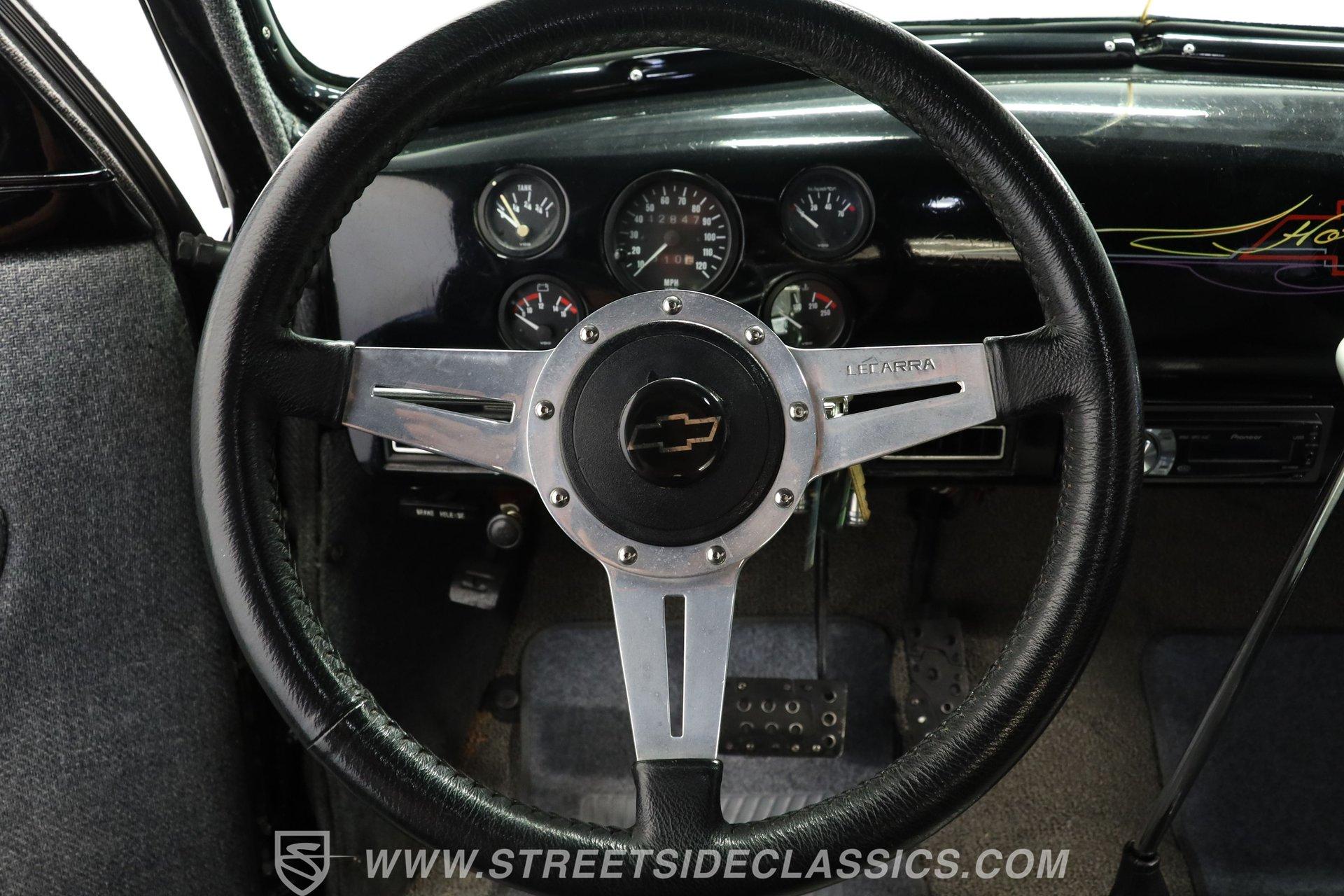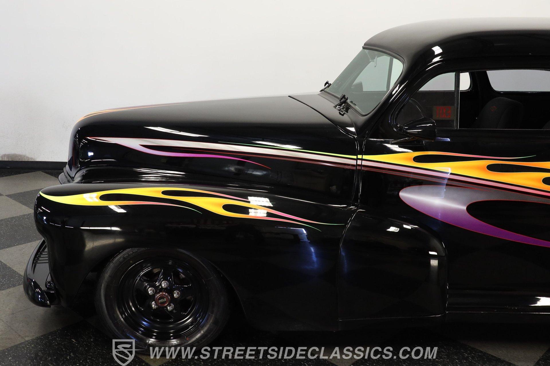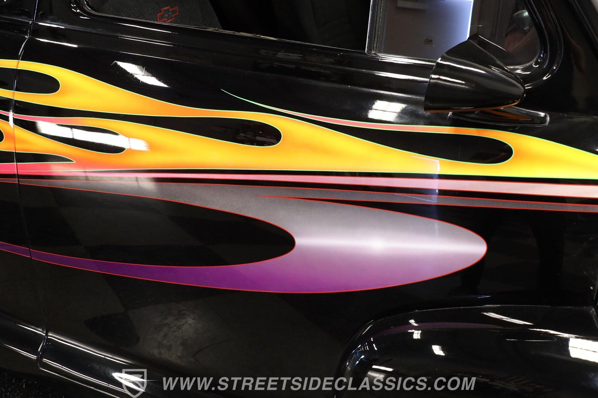 For Sale: 1947 Chevrolet Stylemaster 2 Door Coupe Some cars are more than just machines-they are time capsules, capturing the spirit of an era and the thrill of the open road. Imagine pulling up to a weekend cruise-in, the sun glinting off a custom flame paint job, and feeling the pride that only a true American classic can inspire. This is the kind of car that sparks conversations, turns heads, and brings people together, whether you remember the golden age of hot rods or are discovering it for the first time. For those who crave distinction and a touch of nostalgia, the 1947 Chevrolet Stylemaster 2 Door Coupe is ready for its next chapter. Step inside and experience a blend of vintage charm and custom flair. The interior showcases comfortable tweed-style seats, each embroidered with the iconic Chevy logo, providing a unique touch that sets this coupe apart. The dash is painted black and adorned with custom pinstripes, complemented by aftermarket VDO gauges for a modern twist. A Lacara steering wheel on a tilt column and a matching floor shifter add both style and function, while manual window cranks keep the experience authentic. Under the hood, this Stylemaster boasts a 350 V8 engine paired with a TH350 3-speed automatic transmission, offering a satisfying balance of classic muscle and reliable performance. The upgraded Edelbrock 4-barrel carburetor, power steering, and power brakes ensure an enjoyable driving experience, while the R134A air conditioning system (currently non-functional) and upgraded aluminum radiator with a belt-driven cooling fan keep things cool. The Ford 9-inch rear end and lightly tubbed rear add to the car's street-ready stance, making it as fun to drive as it is to show. Highlights 350 V8 Engine With Edelbrock 4-Barrel Carb TH350 3-Speed Automatic Transmission Ford 9-Inch Rear End Power Steering And Power Brakes Upgraded Aluminum Radiator R134A Air Conditioning System Custom Black Paint With Painted Flames Paint By Florida Artist "Chris Cross" Aftermarket Weld Racing Rims Lightly Tubbed Rear, Shaved Door Handles Frenched Headlights And V-Butt Windshield Tweed Seats With Chevy Logo Stitching Aftermarket VDO Gauges And Lacara Steering Wheel Front Power Disc And Rear Drum Brakes Receipts Included Financing Available Vehicle Protection Plans Available Worldwide Shipping A true blend of artistry and engineering, this 1947 Chevrolet Stylemaster 2 Door Coupe stands as a testament to hot rod tradition and custom craftsmanship. Whether you want to relive the glory days or start new memories, this classic is ready to impress on every drive. Call, email, or come visit our showroom today! Be sure to ask about our services offered; Financing, Vehicle Protection Plan, Insurance, and Transportation to your driveway!