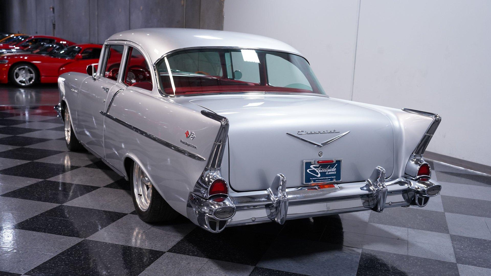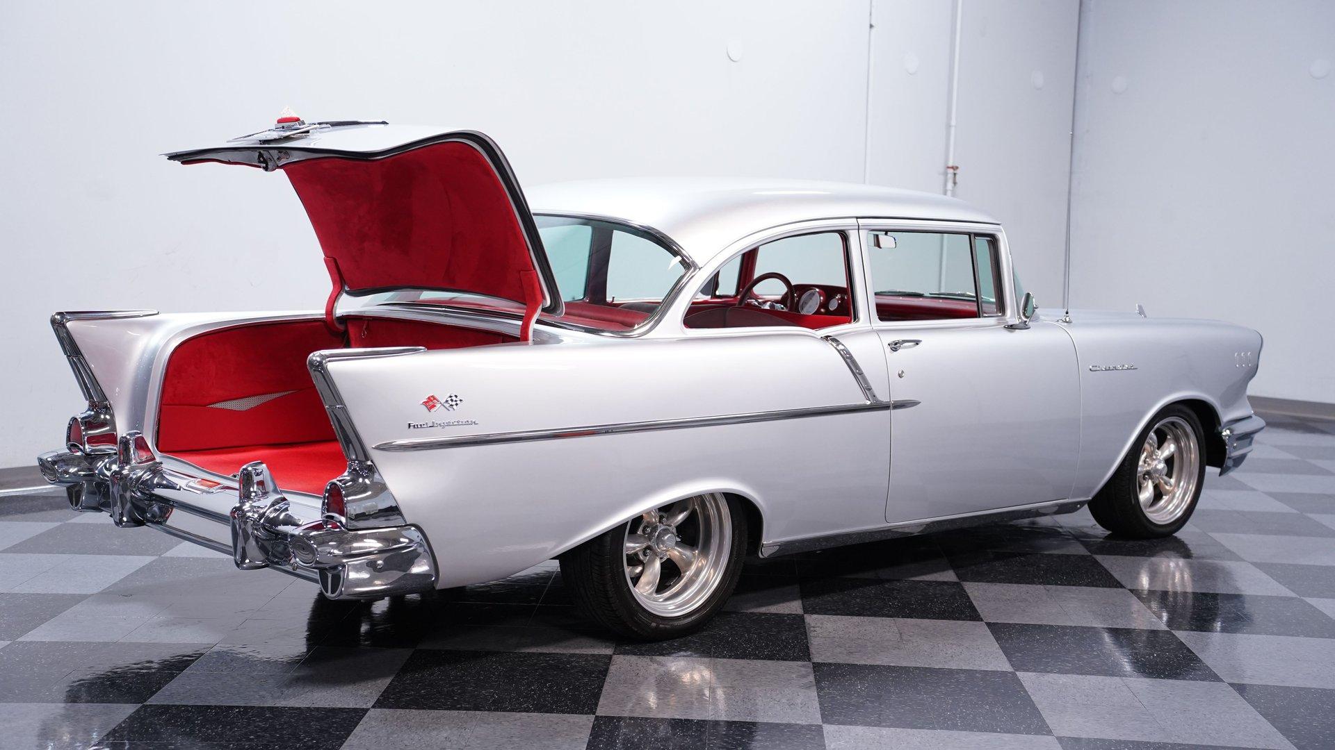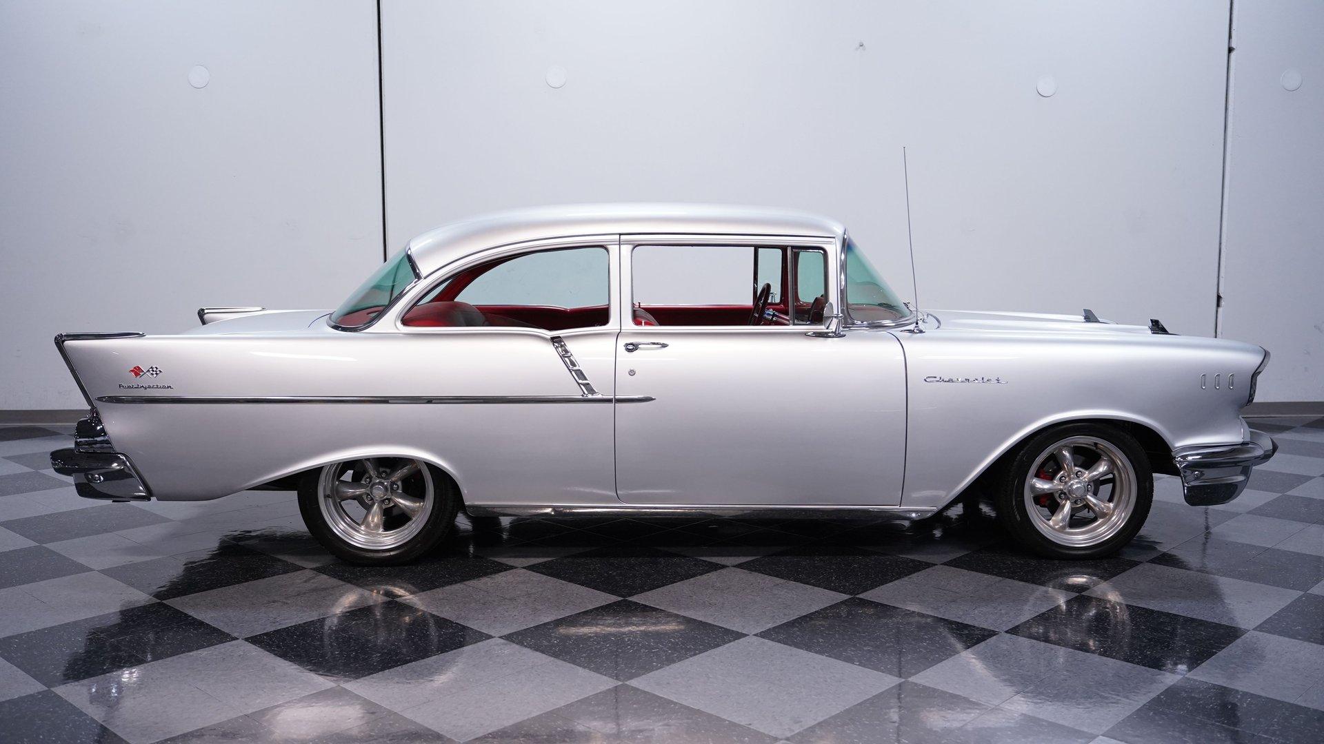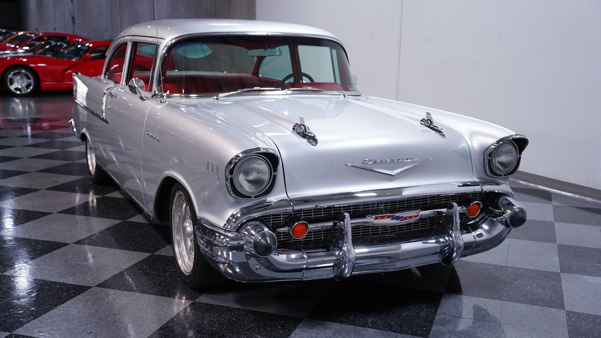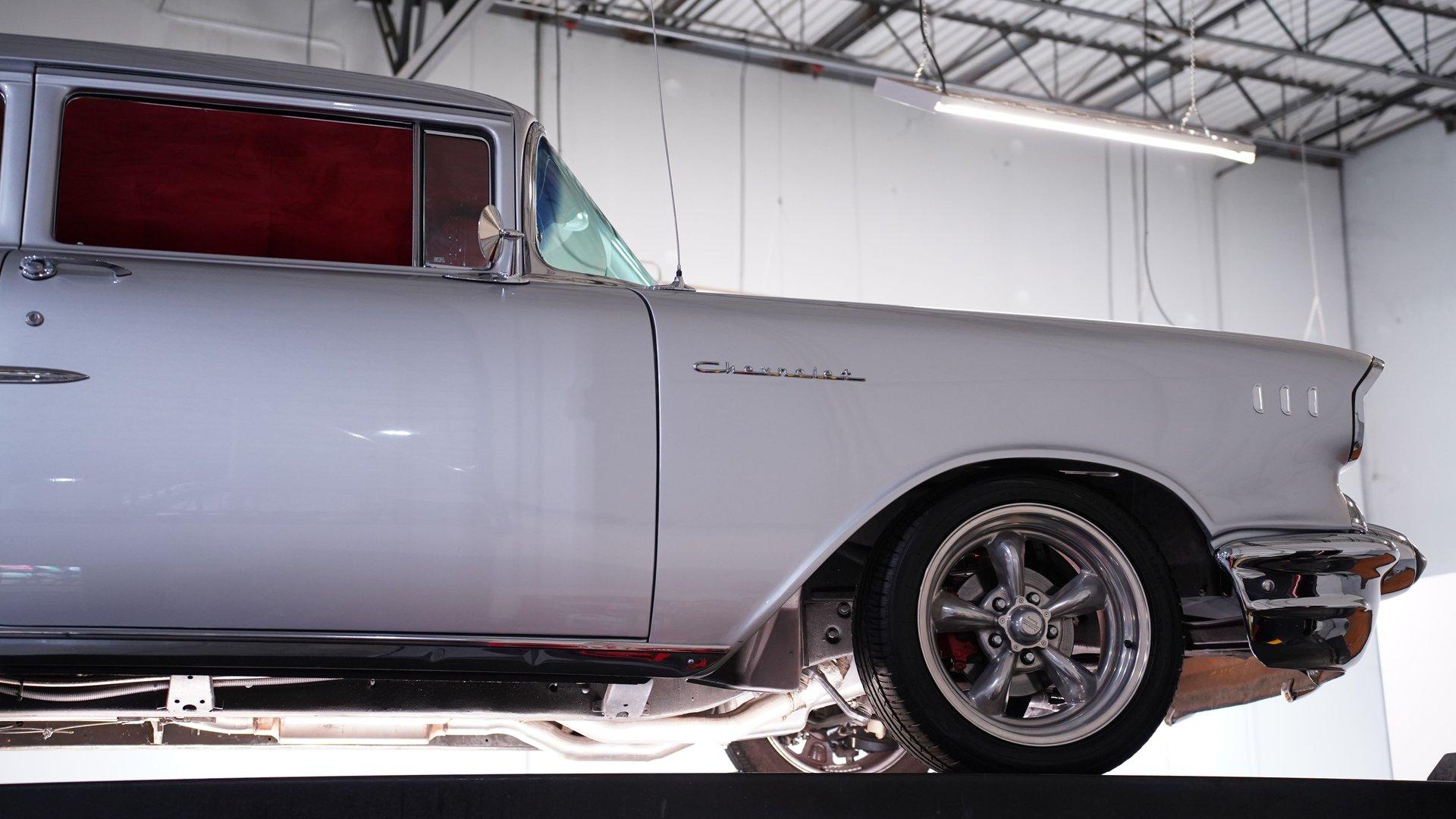 There's something magical about sliding behind the wheel of a true American classic. The 1957 Chevrolet 150 isn't just a car it's a rolling time capsule, a symbol of postwar optimism, and a statement of style that turns every drive into an event. Whether you remember the golden age of cruisers or you're looking to create new memories, this Chevy offers a unique blend of heritage and excitement. With its unmistakable silhouette and the spirit of a bygone era, this 1957 Chevrolet 150 invites you to experience the road as it was meant to be one thrilling mile at a time. Step inside to find a stunning custom interior that perfectly balances vintage charm with modern flair. The bold red leather seats are complemented by a suede red headliner, creating an inviting and luxurious atmosphere. Classic Instruments gauges provide a timeless look while keeping you informed, and every detail from the dash to the stitching flows together for a polished, show-worthy presentation. This is a cabin designed for comfort, style, and unforgettable journeys. Under the hood, you'll find a strong 5.7L ZZ4 V8 crate engine paired with an Edelbrock 4-barrel carburetor, making it clear this Chevy is built for more than just looks. The engine bay shines with chrome dress-up accessories and billet pulleys, while an aluminum radiator with electric fan keeps things cool. A four-speed manual transmission and Flowmaster exhaust deliver a true driver's experience, enhanced by tubular A-arms, a lowered stance, and power disc brakes on all four corners. This is a classic that's ready to perform, whether you're cruising the boulevard or hitting your favorite back road. Highlights: 5.7L ZZ4 V8 Crate Engine Edelbrock 4-Barrel Carburetor Four-Speed Manual Transmission Flowmaster Dual Exhaust System Aluminum Radiator With Electric Fan Tubular A-Arms, Lowered Suspension Power Disc Brakes Front And Rear 17" American Racing Wheels Custom Red Leather Interior With Suede Headliner Classic Instruments Gauges Aluminum Differential Cover, 10-Bolt Rear Financing Available Vehicle Protection Plans Available Worldwide Shipping This 1957 Chevrolet 150 combines classic style with modern upgrades for a driving experience that stands out from the crowd. With its show-quality interior, strong V8 performance, and head-turning curb appeal, it's a fantastic addition to any collection or garage. Don't miss your chance to own a piece of automotive history-call, email, or come visit our showroom today!