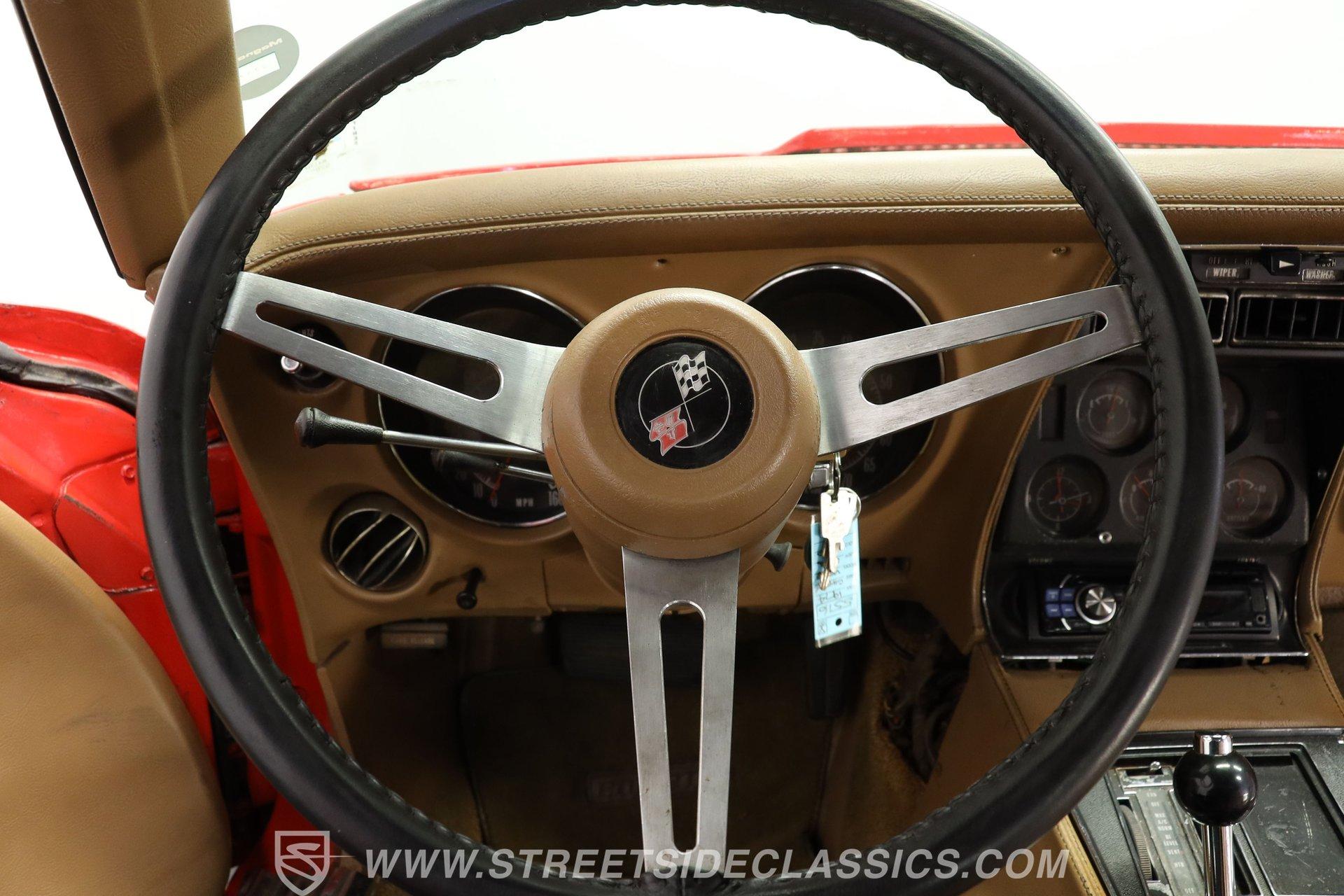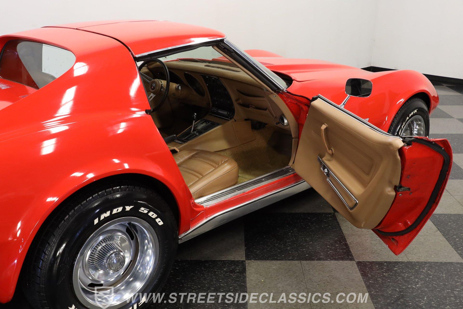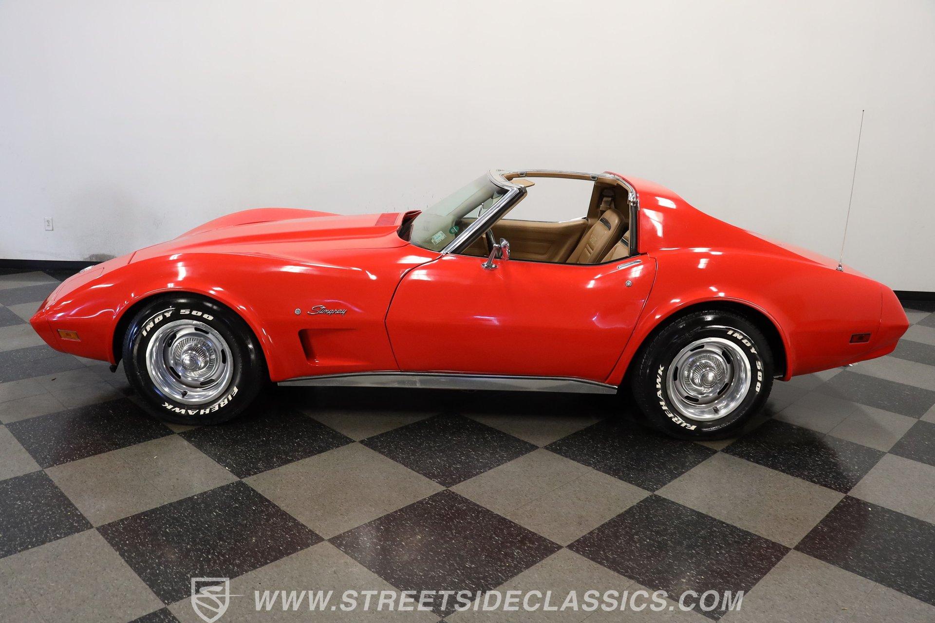 There's something magical about sliding behind the wheel of a true American icon. When you own a classic Corvette, you don't just drive-you make an entrance, write your own chapter in automotive history, and become part of a tradition that turns heads and sparks conversations everywhere you go. Whether you're reliving the golden era of the open road or forging new memories with every mile, this car offers an experience that's both timeless and exhilarating. Now is your chance to claim the legend for yourself with this striking 1974 Chevrolet Corvette. Step inside the inviting saddle vinyl interior, where classic style meets comfort. The cabin has been well cared for, featuring custom seat backs and a tilt/telescopic steering column for flexible driving positions. The dash is clean and gauges are clear, while the upgraded CD receiver offers modern convenience. The original color combination and plush carpet create a welcoming space, with a clean rear storage area ready for your next adventure. Under the hood, you'll find the heart of this Corvette-a numbers-matching 350 V8 engine paired with a smooth 3-speed automatic transmission. The engine bay maintains its authentic character, enhanced by a recent Holley 4-barrel carburetor for responsive power delivery. Power steering and four-wheel power disc brakes make for confident handling, while the dual exhaust system adds the right note of performance. The original air conditioning system has been converted to R134a for reliable cooling, ensuring comfort on every drive. Highlights 83,745 Actual Miles Numbers Matching 350 V8 Engine 3-Speed Automatic Transmission Recent Holley 4-Barrel Carburetor Power Steering Power Brakes, Four-Wheel Disc R134a Air Conditioning Conversion T-Tops with Snug Fit 15" Rally Wheels with Firehawk Tires Saddle Vinyl Interior, Original Color Upgraded CD/Receiver Tilt and Telescopic Steering Column Dual Exhaust System Financing Available Vehicle Protection Plans Available Worldwide Shipping This 1974 Chevrolet Corvette is an invitation to own a piece of American motoring heritage. With its classic styling, authentic drivetrain, and comfortable interior, it's ready to bring excitement to your garage and your weekends. Don't miss your chance to make it yours-Call, email, or come visit our showroom today! Be sure to ask about our services offered; Financing, Vehicle Protection Plan, Insurance, and Transportation to your driveway!