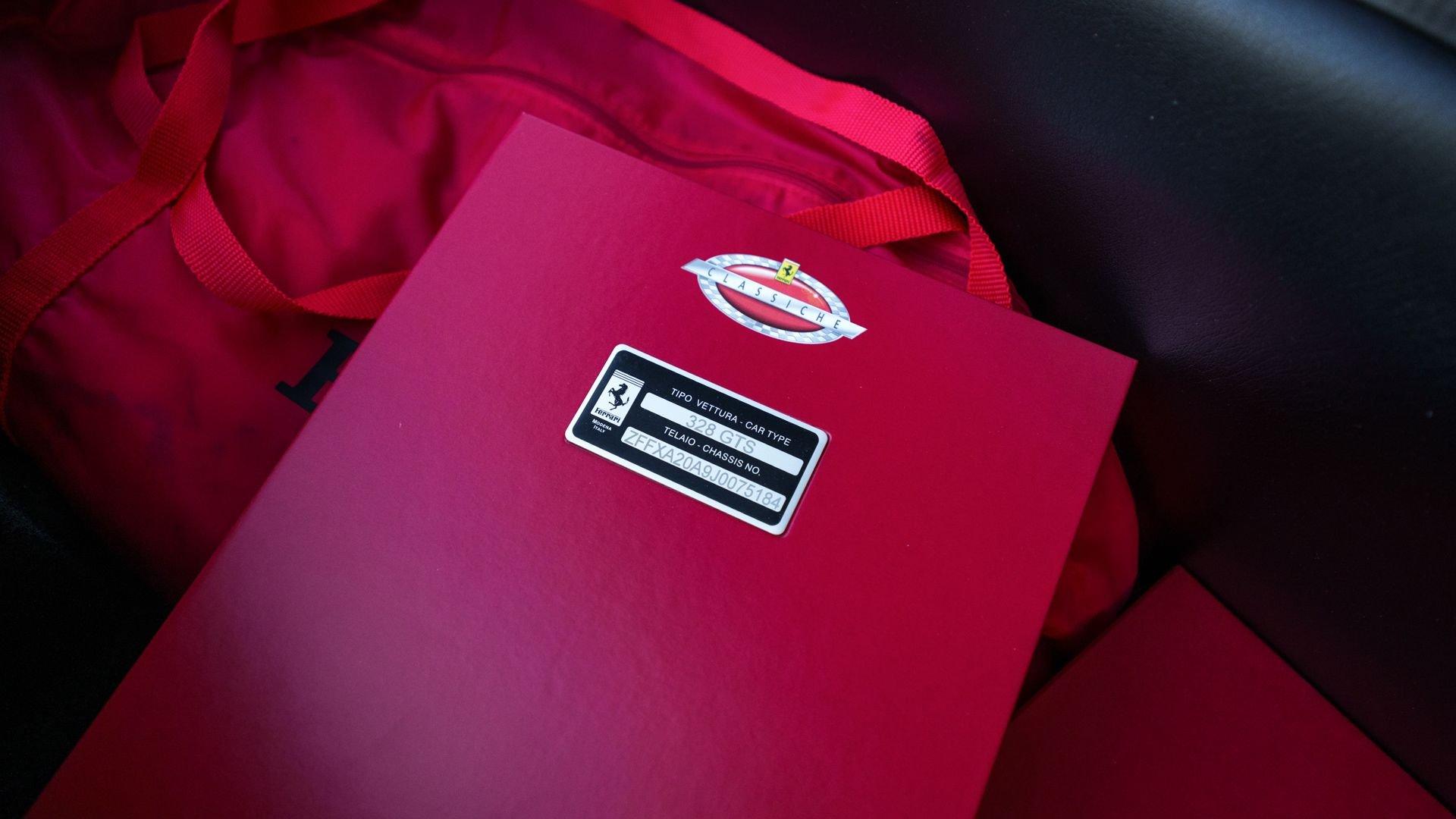 Chassis No. ZFFXA20A9J0075184 Engine No. 01861 Transmission No. 1857 Unveiled at the Frankfurt Auto Salon in 1985, ten years after the introduction of the 308, the 328 debuted an elegantly updated version of the Pininfarina wedge design worn by its predecessor. With its improved cabin ergonomics and more powerful 3.2-liter V8, the 328 was stunningly beautiful, well balanced, and relatively easy to maintain, and it remains so today. This exceptional U.S.-market 328 GTS, chassis 75184, was completed in October 1987 in the quintessential pairing of Rosso Corsa over Beige leather upholstery. Ferrari Classiche certified, it is surely one of the finest examples of this celebrated model to reach the market in recent years. The 328 was delivered new to F.A.F. Motorscars of Tucker, Georgia, and sold on 18 December 1987, to its first owner, Frank F. Callaway of nearby Dunwoody. Remarkably lightly used from the outset, an invoice on file documents that by October 2002 the Ferrari was in Portland, Oregon, where it received a major cam-belt service by ATD while showing just 2,993 miles. By 2007, the 328 GTS was offered by Motor Cars International in Springfield, Missouri, displaying only 4,004 miles from new. It was purchased there by Michael Mazzaferro, who had the car fully detailed and fitted with paint protection film before exporting it to Canada, with original purchase and export paperwork retained in the file. Invoices from Ferrari Maserati Quebec during Mazzaferro’s tenure show that the 328 served more as an object of admiration rather than a mode of transportation, its mileage increasing only modestly to 4,352 miles by August 2021. The service documentation records an engine-out timing belt service with water pump/thermostat replacement, installation of a Tubi Style exhaust, and a new clutch and flywheel in the summer of 2008. A subsequent timing-belt change was completed in August 2015, and the front suspension forks were replaced under recall in August 2021. In April 2016, this exceptional 328 GTS was granted Ferrari Classiche certification, confirming its status as a matching-numbers car that retains its original engine and transmission. The following winter, it was invited to participate in a Guinness World Record attempt during the 2016 Ferrari Finali Mondiali (Ferrari World Finals) at Daytona International Speedway, during which 809 Ferraris paraded on the high banks of the circuit. Today, this 328 GTS shows just 4,410 miles at the time of cataloging, documented by the many service records on file. It comes complete with its Classiche "Red Book," service and warranty booklet, owner's manual, Blaupunkt radio manual, folder of invoices, jack, and tool roll. Desirable as a mid-engine V8, open-top Ferrari in its own right, this preservation-grade, Classiche-certified example of the popular 328 would be a worthy addition to any collection of low-mileage sports cars.