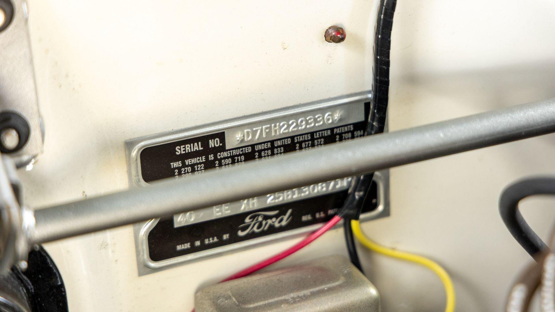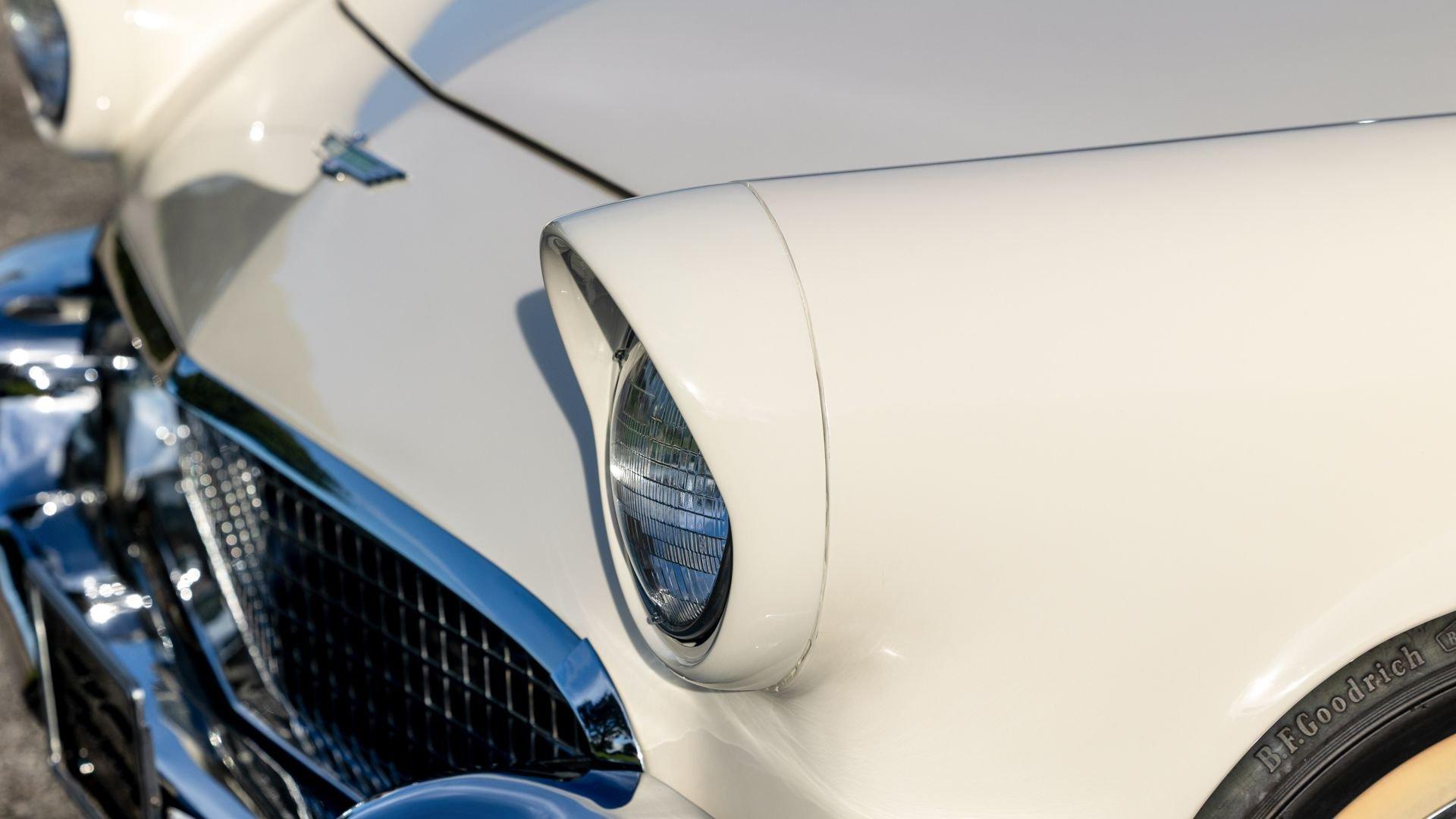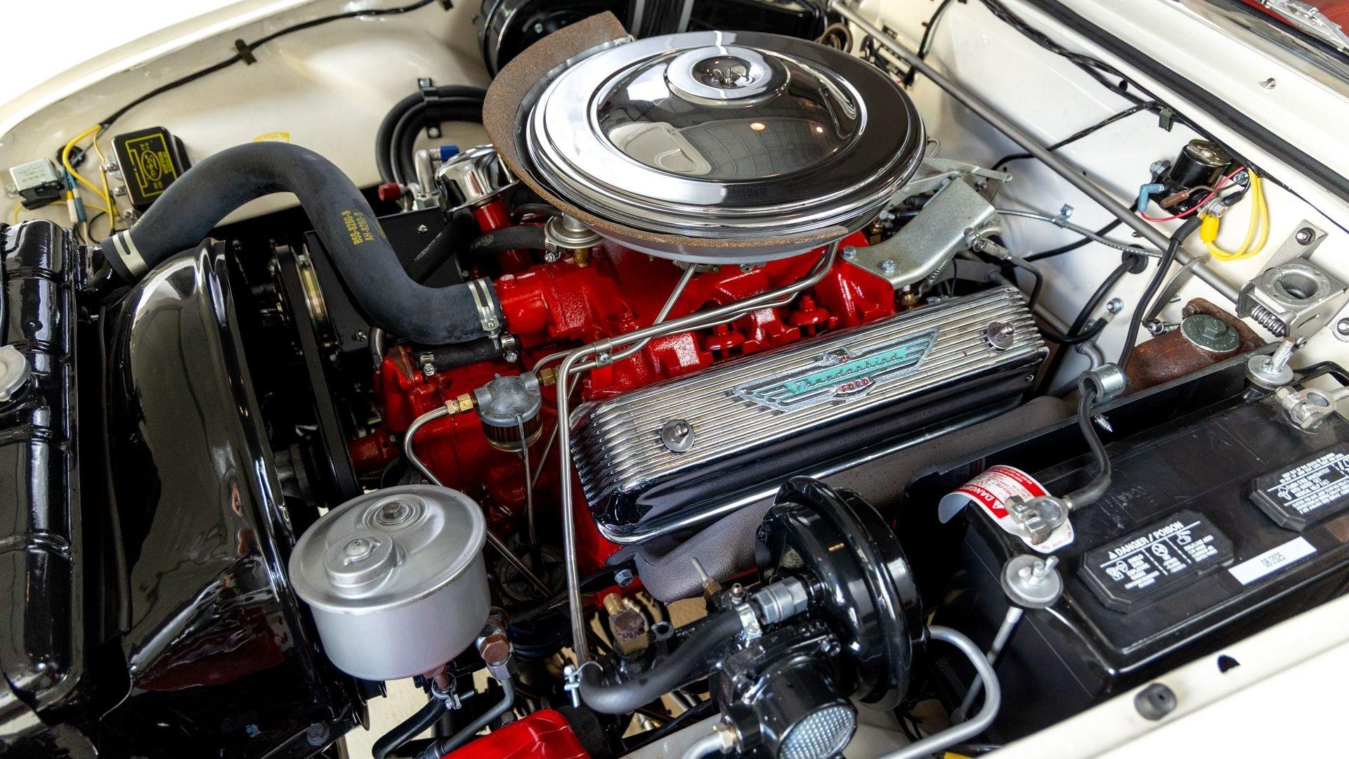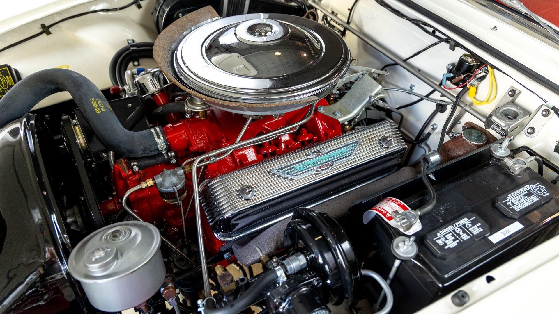 Chassis No. D7FH229336 For 1956, changes to the popular Thunderbird were subtle but significant—distinctive porthole windows were added to the removable hardtop, and the electrics moved from a 6-volt to a 12-volt system. After just three years of the original two-seat design, Ford would reshape the Thunderbird into a larger four-seater for 1958. Despite its brief production run, the early "Baby Bird" vastly outsold the Corvette, and the Thunderbird model would continue to be a popular collectible in the decades since. This 1957 Baby Bird was completed on the 25th of February 1957 at the Dearborn, Michigan plant and dispatched to the New York area for sale. Extensively equipped from the factory, it features the “D-Code” 312 cu-in V8 producing 245 horsepower, a Fordomatic automatic transmission, Master-Glide power steering, Swift Sure power brakes, Power-Lift Windows, a four-way power front bench seat, back-up lights, and engine dress-up kit, along with both the hard and soft convertible tops. The car was the subject of a nut-and-bolt, rotisserie restoration in its original factory livery of Corinthian White over Pleated Flame (red) vinyl upholstery, paired with a matching body-color hard top and a black canvas soft top. The restoration also included the tasteful addition of VintageAir air conditioning and an upgraded AM/FM vintage radio for modern touring comfort. Throughout, the car presents beautifully with no detail overlooked, displaying tidy brightwork and chrome Kesley Hayes-style wire wheels with spinner hubcaps, a vibrant interior, and a spotless engine compartment complete with the chrome engine dress-up kit. With the odometer showing a scant 92 miles traveled since its restoration, this Thunderbird is poised to be a standout on the concours field, a favorite at local cruises, or a cherished centerpiece in a collection focused on the most iconic designs to emerge from the American Jet Age.