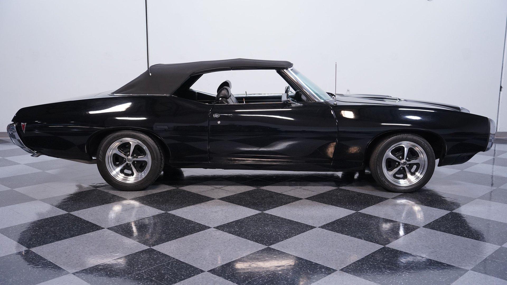 There's something undeniably thrilling about cruising through town with the top down, the wind in your hair, and the unmistakable rumble of a classic American V8 under the hood. This car is more than just a way to get from point A to point B it's a rolling piece of history, a statement of style, and a ticket to the kind of nostalgia that only a true classic convertible can provide. Whether you're reliving the golden era of muscle cars or making new memories on every drive, this 1969 Pontiac LeMans Convertible is ready to be your next chapter. Step inside to discover a well-preserved black interior that blends comfort with classic charm. The upholstery shows well, with a vintage vibe that complements the car's iconic exterior. The gauges are clear and easy to read, and the dash, steering wheel, and door panels have been maintained to capture the spirit of late '60s motoring. The carpet is in good shape, making the cabin an inviting place for both drivers and passengers. Under the hood, you'll find a robust 400 V8 engine, paired with a smooth-shifting TH400 3-speed automatic transmission. The drivetrain has been thoughtfully upgraded, including a single 4-barrel Edelbrock carburetor and four-wheel power disc brakes for confident stopping power. With a recent professional transmission rebuild in 2024, power steering, and an upgraded braking system, this LeMans delivers a driving experience that's both classic and reassuringly capable. Highlights: 400 V8 Engine With Edelbrock 4-Barrel Carb TH400 3-Speed Automatic Transmission Four-Wheel Power Disc Brakes Power Steering For Easy Maneuverability Recent AAMCO Transmission Rebuild (2024) Triple Black Color Combination 17-Inch Factory Style Wheels With Nitto Tires Power Convertible Top In Good Condition Well-Preserved Black Interior Upholstery Factory Style Suspension With Front Sway Bar 10-Bolt Rear Axle Financing Available Vehicle Protection Plans Available Worldwide Shipping If you're searching for a classic convertible that blends vintage style with modern upgrades, this 1969 Pontiac LeMans Convertible is a fantastic choice. With its powerful V8, striking triple black look, and well-maintained features, it's ready to turn heads wherever you go. Call, email, or come visit our showroom today!