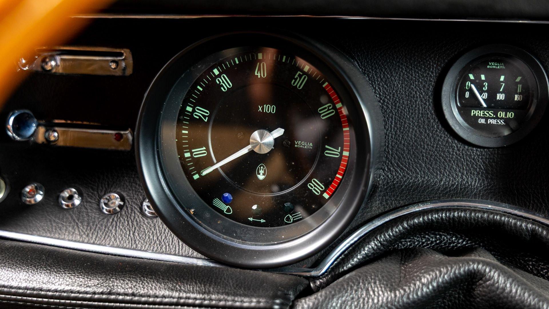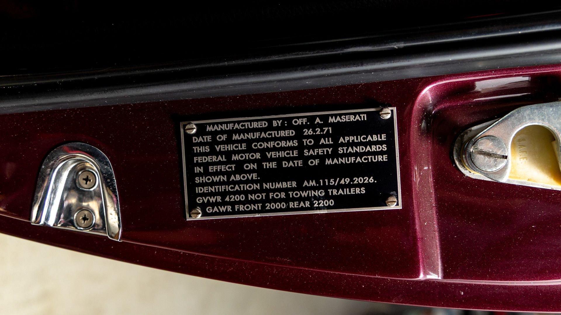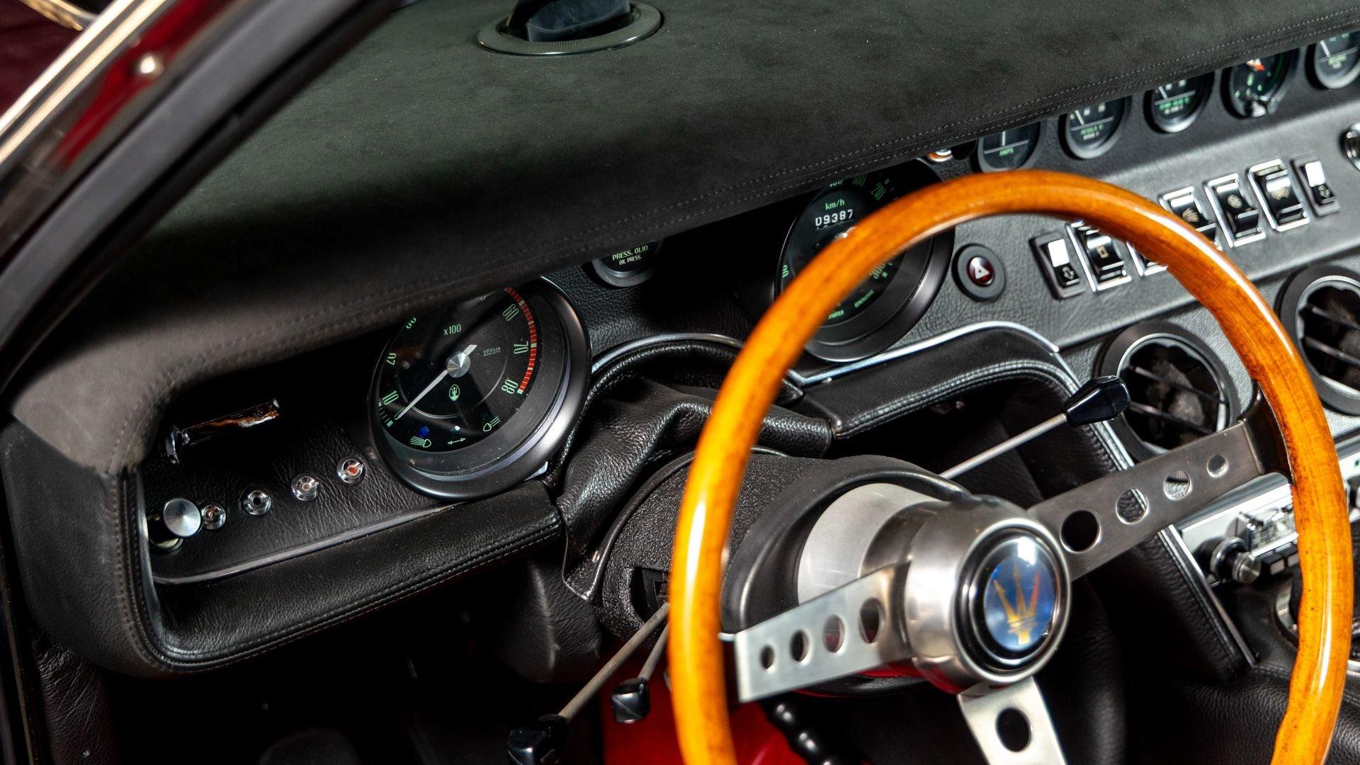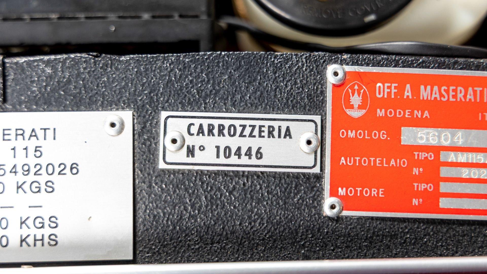 Chassis No. AM115/492026 Engine No. AM115/492026 Ghia Body No. 10446 The Ghibli SS remains one of Maserati’s finest front-engine grand tourers—fast, refined, comfortable, and stylish. Debuting in 1969 as a performance upgrade to the sleek, Giorgetto Giugiaro-penned Ghibli, the Ghibli SS featured a 4.9-liter V8 with larger Weber carburetors and a new crankshaft, improving output to 330 horsepower and significantly boosting torque to 354 lb-ft. The Ghibli SS boasted an impressive 174 mph top speed, making it the fastest and also the most luxurious Maserati road car built at the time. This 1971 Maserati Ghibli SS Coupe is finished from the factory in Rosso Fuoco over a Nero Connolly leather interior with red carpeting. It was originally specified with the desirable five-speed manual transmission, Ruote Borrani wire wheels, power steering, and a Becker Europa radio as confirmed by its original build sheet. Factory documentation shows that this example was completed in March 1971 and was delivered new to Grossman Motor Car Corporation in New York that September. It is thought to have remained stateside until it was registered in Italy in 2013, where it immediately underwent a comprehensive bare metal restoration. All of its major systems were overhauled—including its engine, transmission, differential, steering system, brakes, suspension, interior, and air conditioning. Italian classic car experts G.P.S. Classics were commissioned by the Florida-based consignor in 2020 to inspect this elegant Ghibli, located in Polverigi, Italy at the time. Their meticulous survey confirmed the restoration’s high quality and recommended further refinement work to bring the Ghibli even closer to its original factory-correct specification. G.P.S. finished the body in its original shade of Rosso Fuoco, serviced the air conditioning system, refreshed the electrical system, and fitted restored Borrani RW4198 15x7 wheels with new Michelin XWX radial tires and ANSA exhaust. The car returned to the United States in November 2020, entering a distinguished collection of fellow concours-quality classic cars for the past five years. This 1971 Maserati Ghibli SS is offered with its original build and road test sheets, Italian road registration, and a Maserati Certificate of Authenticity issued September 2016 confirming its numbers-matching engine and original color combination. One of just 425 Ghibli SS Coupes, this example stands out for its meticulous restoration and careful return to factory-correct specification, offering a rare opportunity to acquire one of Maserati’s most celebrated grand tourers in its most authentic form.