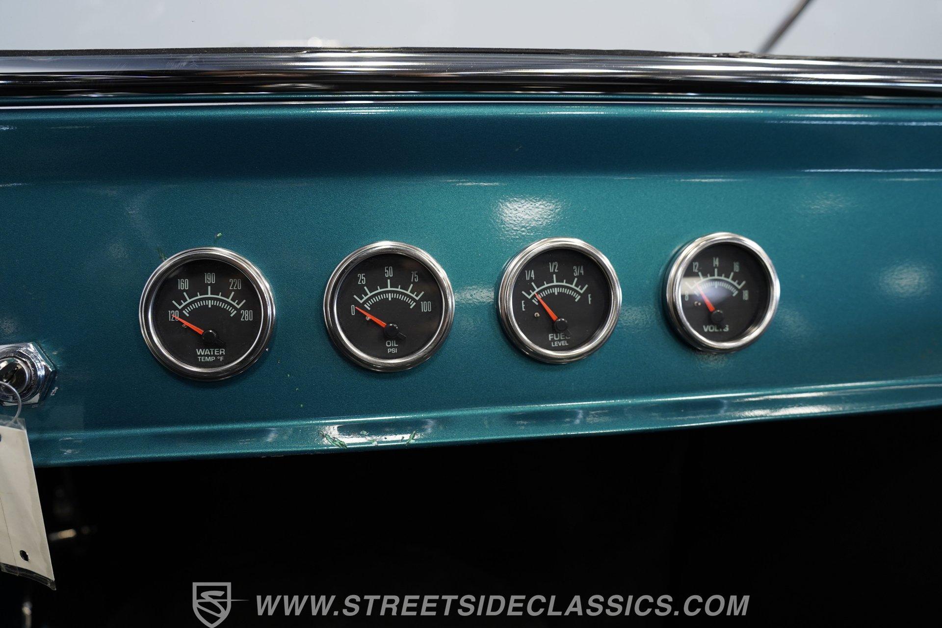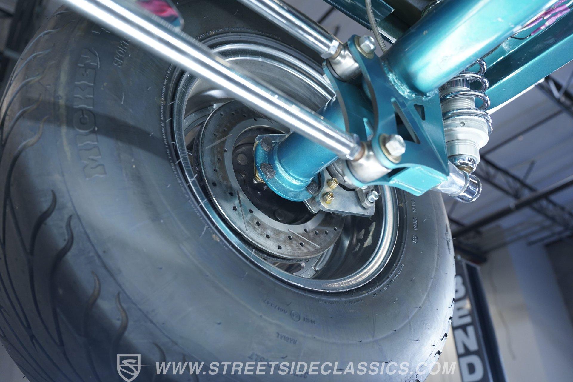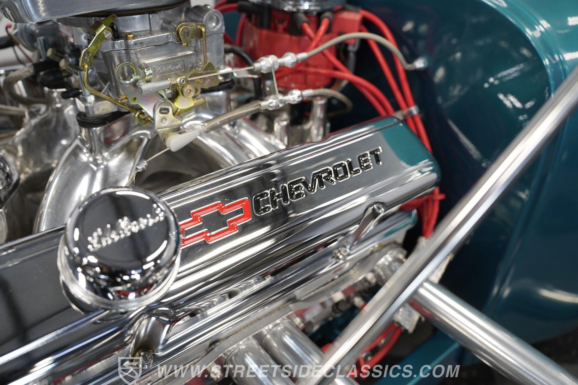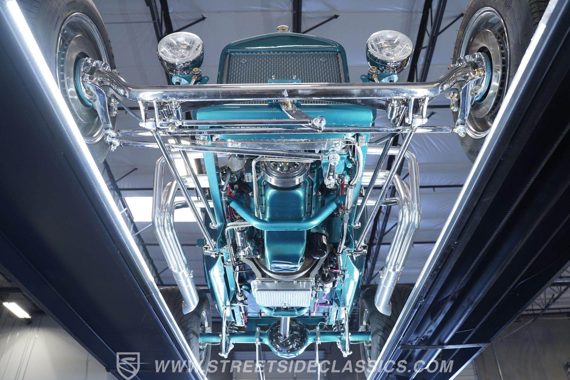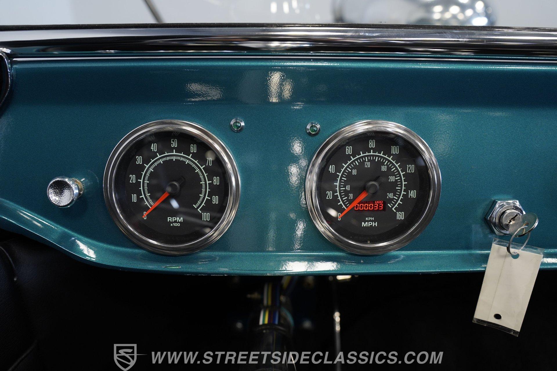 One look at this classic 1923 Ford T-Bucket and it's easy to see why these cars have been beloved and lusted after by millions of enthusiasts over the last century. This fully repainted Teal Blue roadster sports a unique one-piece windshield and single passenger-side door. And with just 32 miles on its odometer since it was built, there is plenty of life left in this throwback hot rod for its next very lucky owner to enjoy. Hop inside this hot rod (literally), and you're treated to a simple black vinyl interior featuring a large single bench seat to hold both driver and passenger in place. A small, padded, tilt steering wheel sits ahead of a big 10,000-rpm tachometer and matching 160 mph speedometer, while a quartet of auxiliary gauges takes up the rest of the body-colored dashboard. There is no radio of any kind, but fire this baby up, and we can all but promise you won't miss any other kind of music except that coming from the baffled straight pipes. Typically, we'd say "under the hood", but in this case, no hood exists and is not needed. So, up front, we find a 350 cubic-inch V-8 engine. Outfitted with an Edelbrock four barrel carburetor feeding into a high-rise Edelbrock intake manifold, this small block sports a sweet-sounding cam and lightweight Promax aluminum heads. Spent gases are sent a very short distance through a pair of long tube headers, and out of those glorious sidepipes. Power is routed through a TH350 three-speed automatic transmission before being sent to the nine-inch rear end. HIGHLIGHTS: 32 Miles Since Built One Piece Windshield Passenger Side Door Full Teal Repaint 350ci V8 Promax Aluminum Heads Performance Cam Edelbrock Four Barrel Edelbrock Hi Rise Intake Long Tubes Sidepipes Electric Cooling Fan Nine Inch Rear Solid Axle Front Ladder Bar Rear Coilovers Speedway Chassis Four Wheel Disc Brakes Black Vinyl Interior Seatbelts This 1923 Ford T-Bucket rides on a Speedway chassis featuring solid-axle front-end suspension, while the rear consists of a ladder-bar setup with coilovers. Front and rear disc brakes are in place to rein in speed when needed, so you can simply enjoy the ride. A classic hot rod like this T-Bucket needs to be experienced to truly appreciate its old-school soul, and hopefully, with a few words and some incredible photos, you may realize this is the car you've been searching for. But don't wait, this one won't be around long. Call today!