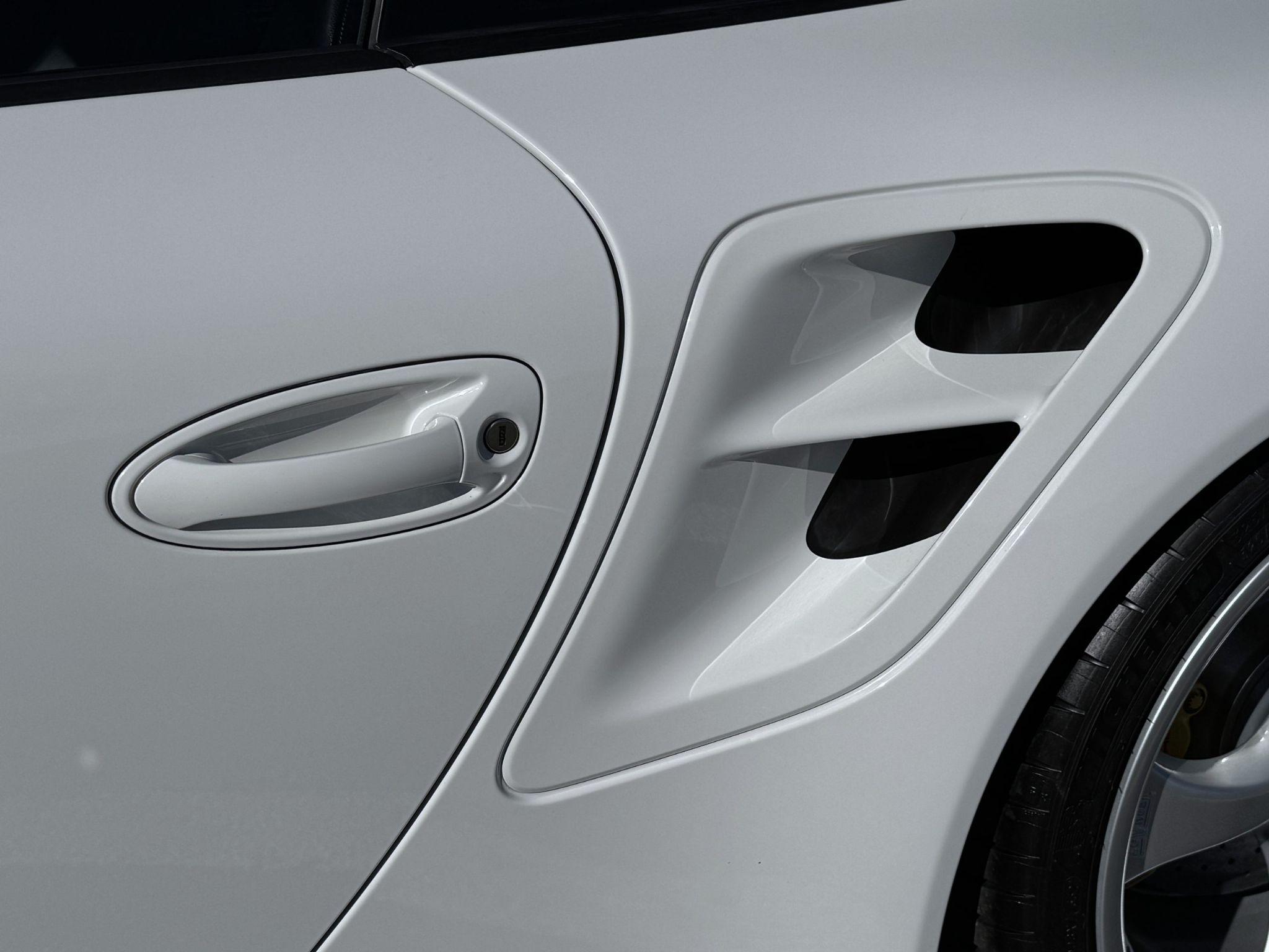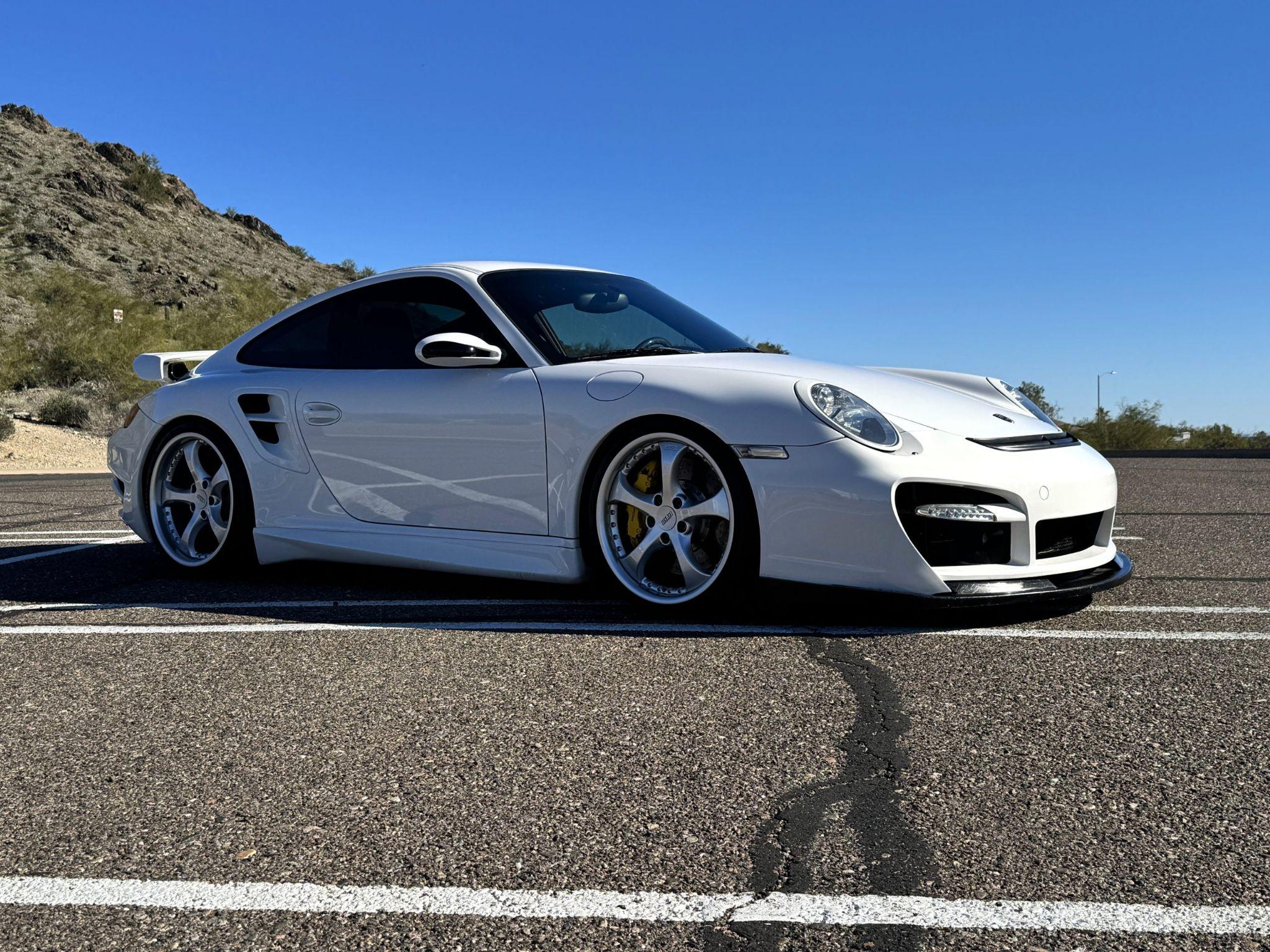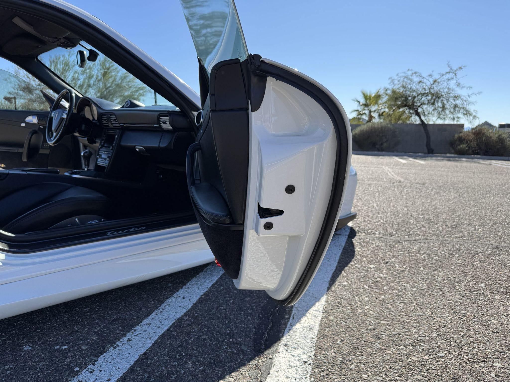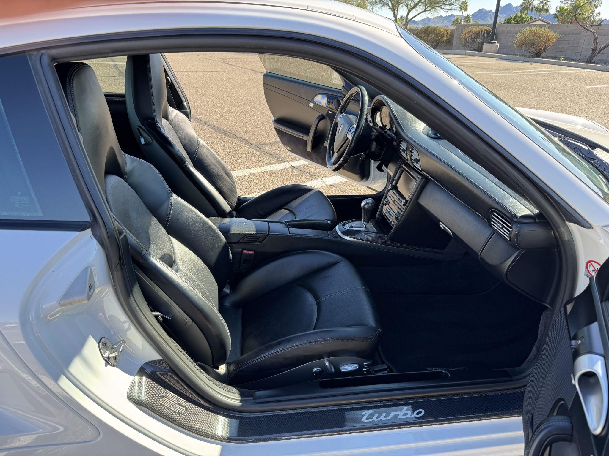 The 2009 Porsche 911 Turbo Coupe represents the sweet spot of modern 911 performance, blending classic proportions with advanced driving technology and everyday usability. Powered by a 3.6-liter flat-six, twin-turbocharged engine, producing approximately 480 horsepower and paired with a 5-speed Tiptronic S automatic transmission, this example delivers confident acceleration and refined road manners. Finished in Carrera White over a Black leather interior, the Porsche presents in excellent overall condition and is well suited for touring, rallies, spirited daily driving, or long-term enthusiast ownership. Built in Stuttgart, Germany as one of the 48 Turbo Coupes made that year, and originally sold in Newport Beach, California in September 2008, chassis WP0AD299X9S766132 reflects the advantages of West Coast ownership. With 68,905 original miles shown on the digital speedometer, the Porsche remained in California and Arizona throughout its life, which is evident in the rust-free structure and preserved condition. This generation of 911 marked an important evolution for the model, combining traditional 911 styling cues with modern chassis electronics and drivability enhancements that make ownership approachable without diluting performance character. The exterior is finished in Carrera White (B4) with paint showing excellent gloss and consistent luster throughout with some scratches most notable on the underside of the side skirts and around wheel wells. Matching white side skirts, rear apron, and rear spoiler present well, reinforcing the cohesive factory appearance. The Porsche rides on newer 19-inch Techart wheels in a bright silver finish, fitted with Michelin Pilot Sport tires in very good condition. Trim and glass are well preserved, and the overall exterior presentation reflects careful ownership with strong visual presence and curb appeal. Inside, the cabin is trimmed in Black leather and remains in excellent condition. Adaptive Sport Seats with driver memory and heating provide both comfort and support, while carbon door entry guards with Turbo designation add a performance-focused touch. The black leather-covered dashboard integrates the Sport Chrono gauge package and Porsche Communication Management system, complemented by a carbon multifunction steering wheel. Additional features include a rear center console finished in black leather, aluminum footrest with light wear consistent with use, Bluetooth connectivity, XM radio, Bose premium audio, and a factory-installed parking assist system, creating a well-appointed and driver-focused environment. Power is delivered to the rear wheels via the 3.6-liter flat-six, twin-turbocharged engine, producing approximately 480 horsepower at 6,000 rpm and enhanced by the Sport Chrono package for optimized throttle response and acceleration. The Porsche is equipped with Porsche Active Suspension Management with electronic damping control, variable-ratio power steering, and Porsche Ceramic Composite Brakes for confident stopping power. A 997 Turbo dual exhaust system and rear spoiler contribute to stability and performance. The Porsche is offered with a clean Carfax and title, original owners handbook set, and a WiFi OBDII scan tool. Maintenance records include coolant system, engine and transmission services, and paint protection application around the bottom bumper and rocker panels, rounding out a well-documented and mechanically appealing example. For more information and details, please call or text Kendi Brown at 1.623.404.9042 or email us at sales@classicpromenade.com . This 2009 Porsche 911 Turbo Coupe is available for inspection at our showroom in Phoenix. We are pleased to offer FaceTime or WhatsApp live video inspections, and we help coordinate shipping worldwide. We also have financing partners if you are interested in financing.