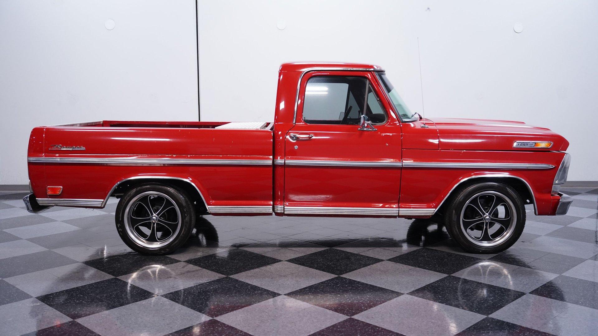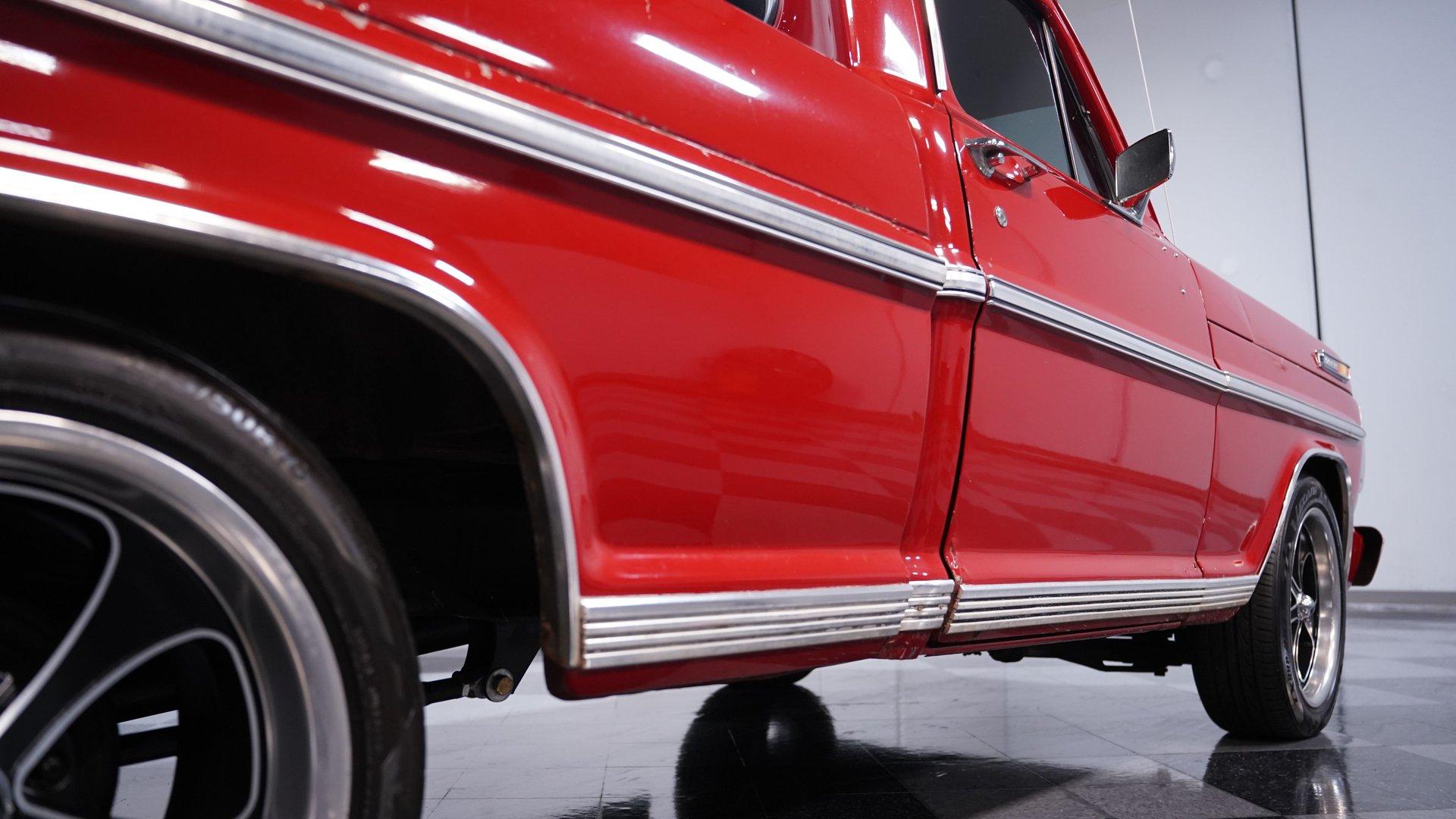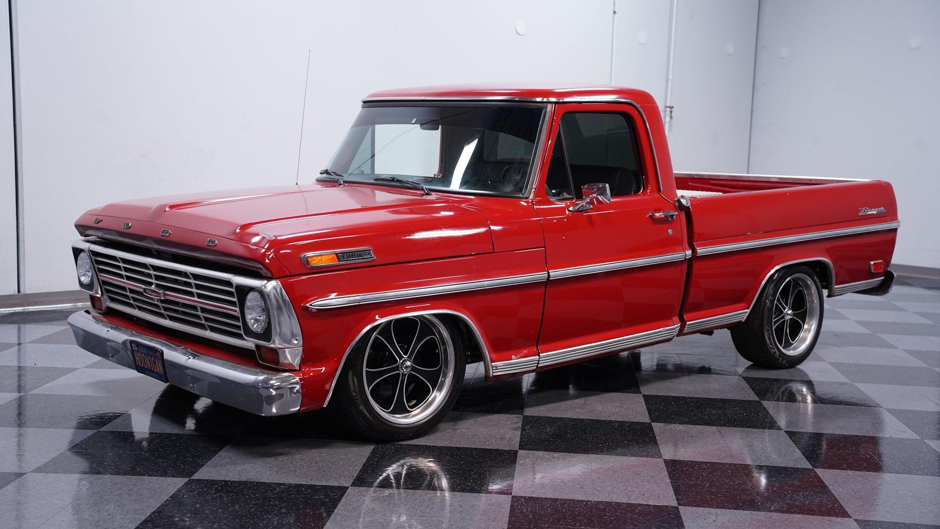 Some vehicles tell a story the moment you lay eyes on them, and this one is no exception. Owning a classic truck like this is about more than just driving from point A to point B it's about reliving the golden era of American pickups and making a bold statement wherever you go. Whether you're chasing nostalgia, turning heads at every stoplight, or seeking a unique blend of vintage style and modern engineering, this truck delivers. If you're ready to make memories and stand out from the crowd, the 1969 Ford F-100 Patina Restomod (with a LS) is waiting for you. Step inside and you'll find a thoughtfully upgraded interior that perfectly blends comfort and style. The TMI seat features supple black leather with striking red stitching, complemented by fresh black carpeting for a clean and inviting atmosphere. Modern touches abound, including Dakota Digital gauges that give you essential readouts at a glance, while tinted windows offer privacy and a sleek look. It's a space designed for both cruising and showing off at local meets. Under the hood, the real magic happens. This F-100 packs a robust 6.0-liter V8 EFI engine mated to a 4L80E 4-speed automatic transmission, offering a powerful yet reliable driving experience. Performance upgrades include a 3200 stall converter, trans cooler, and a Holley Sniper EFI system. The Airlift 3P management system with Dominator 2600 bags and a 5-gallon air tank provides adjustable air suspension, letting you tailor the ride to your preference. With a triangulated 4-link rear and C-notched frame, plus Belltech Street Performance shocks, this truck handles modern roads with confidence and comfort. Highlights: 6.0 Liter V8 EFI Engine 4L80E 4-Speed Automatic Transmission Holley Sniper Fuel Injection Airlift 3P Management with Dominator 2600 Bags Triangulated 4-Link Rear Suspension C-Notched Frame for Enhanced Stance Belltech Street Performance Shocks 18-Inch Wheels with Good Tires Power Disc Front, Power Drum Rear Brakes Dakota Digital Gauges TMI Black Leather Seat with Red Stitching Holley Retro Headlights Financing Available Vehicle Protection Plans Available Worldwide Shipping This 1969 Ford F-100 Patina Restomod LS is a rare blend of classic style and modern muscle, engineered for those who want to drive something truly special. Don't miss your chance to experience the best of both worlds call, email, or come visit our showroom today!