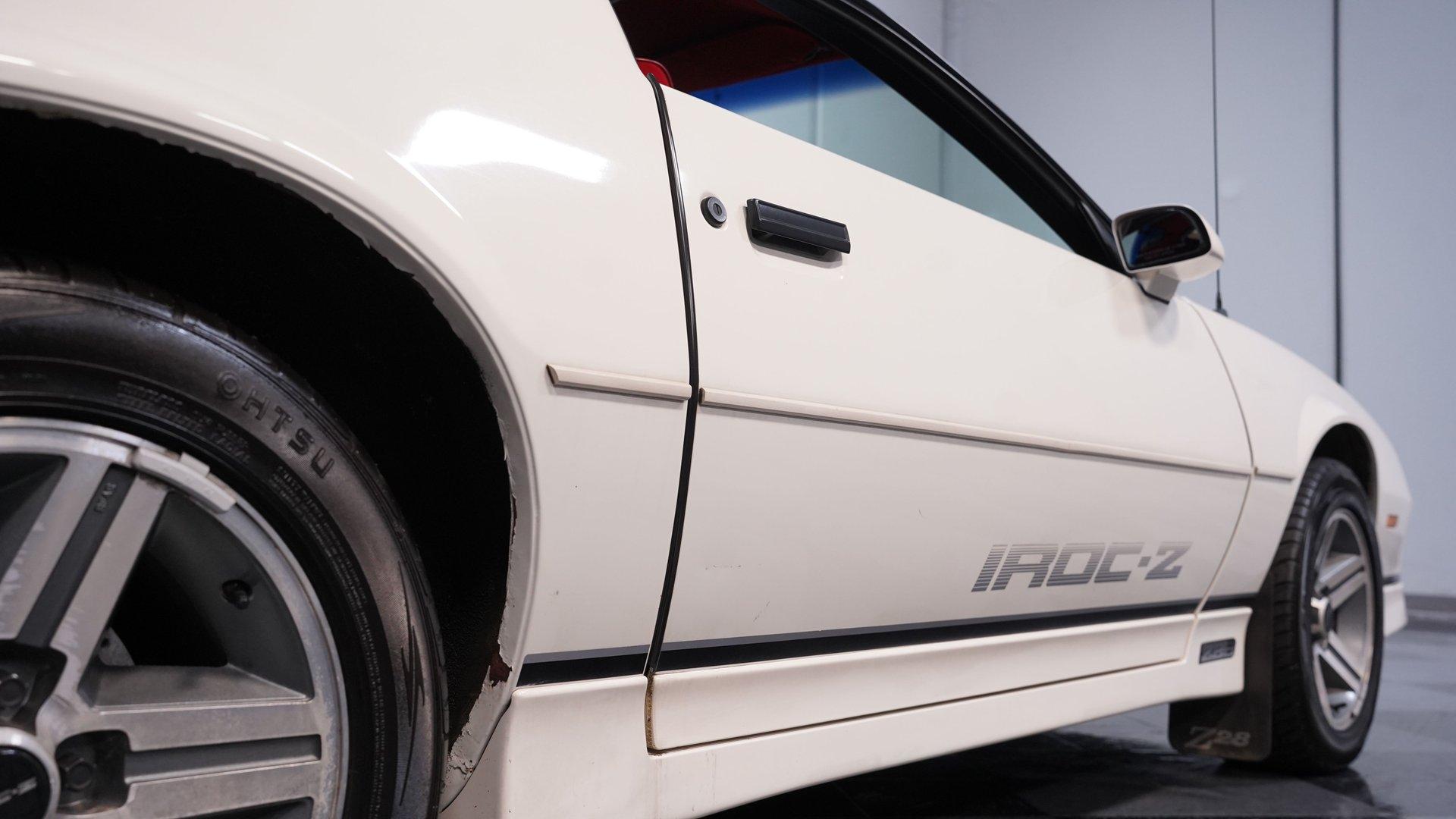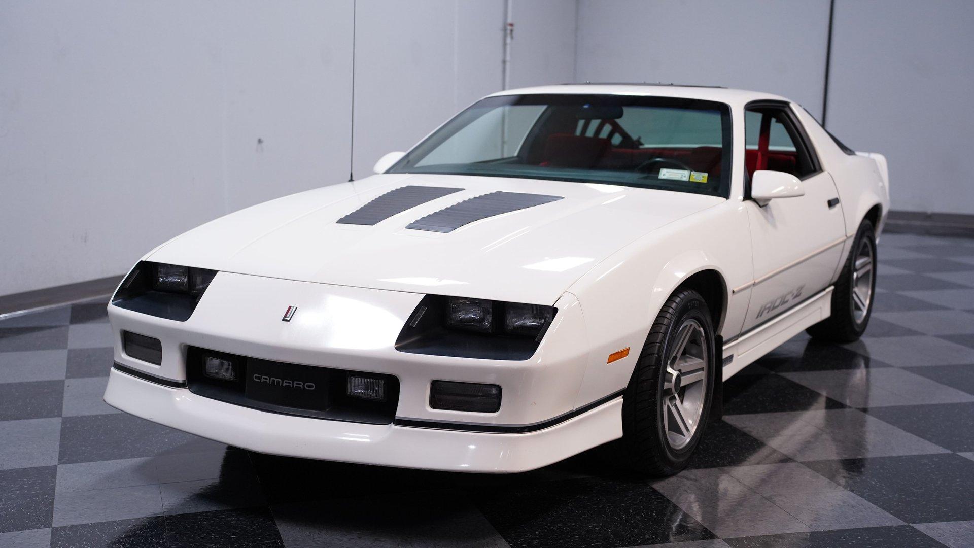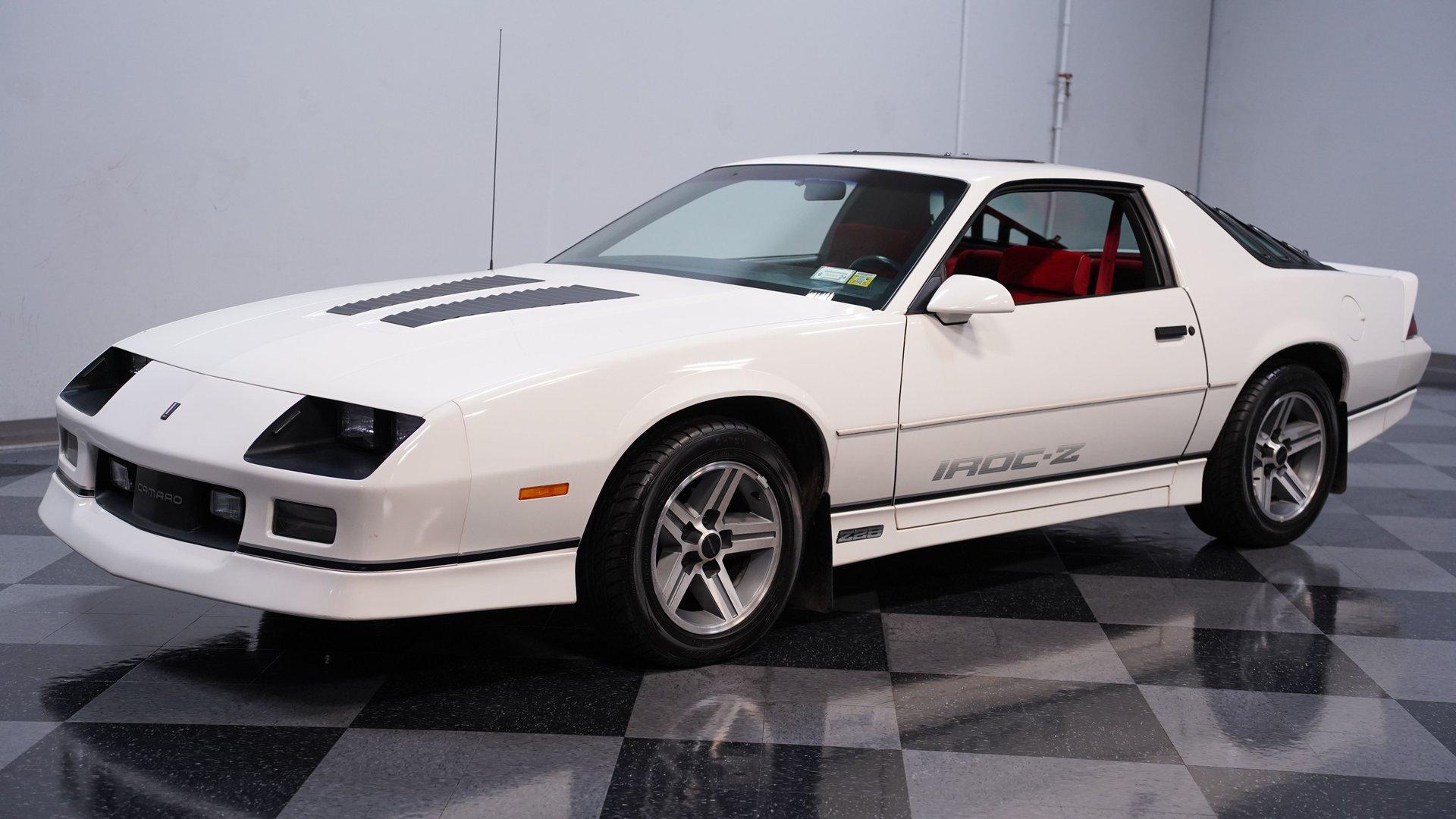 When it comes to instantly recognizable automobiles, it's hard to top the third-generation Chevy Camaro. One look at this 1986 Chevrolet Camaro IROC Z28, and it's easy to see why this car was the quintessential poster car for the 1980s. With an incredible 17,468 (believed) actual miles on its odometer, its (believed) original body is covered in what appears to be its factory white paint and original IROC-Z decals. This numbers-matching Pony Car is the perfect addition for anyone who wants to get as close to feeling what it was like to pilot one of these cars when it was new. Inside, we find an inviting Dark Carmine Red cloth interior in factory condition. A center console separates a pair of blush and supportive bucket seats. A three-spoke power-assisted wheel sits just ahead of a five-pod analog gauge cluster, while power locks, windows, air conditioning, and cruise control supply all the modern amenities anyone could want in the mid-1980s. Unlike many of its Third Gen siblings, this IROC-Z has been outfitted with a sunroof in lieu of T-Tops, while what appears to be the factory AM/FM/Cassette player handles soundtrack duties. Under the hood, we find a numbers-matching naturally aspirated 305 cubic-inch V-8. Topped with a single four-barrel Quadrajet carburetor and backed by a stock-style dual-to-single-to-dual exhaust, this V-8 pumped out around 190 horsepower and 240 pound-feet of torque when it rolled off the assembly line nearly four decades ago. That power is routed through a 700R4 four-speed automatic transmission before heading out to a ten-bolt rear end, which transfers those ponies to the pavement via the now-iconic 16-inch aluminum IROC wheels. HIGHLIGHTS: 17,468 Believed Actual Miles Believed Original Paint Believed Original Body Sunroof Numbers Matching 305 CID V8 Quadrajet Four Barrel 700R4 Four Speed Auto Ten Bolt Rear IROC Wheels Power Brakes Front Discs Power Steering Factory Dark Carmine Red Interior Power Locks Power Windows AC Cruise Tilt Wheel Owner's Manual This Z/28 rides on a factory-style suspension, while power brakes featuring a pair of front discs stand ready to scrub off speed at a moment's notice. If you've owned one of these cars in the past, then you know how charismatic they can be. If you've never experienced driving one of the most beloved cars of a decade, then you're going to be hard-pressed to find one in more factory-like condition than this ultra-low-mileage, numbers-matching IROC-Z. Don't wait, call today!