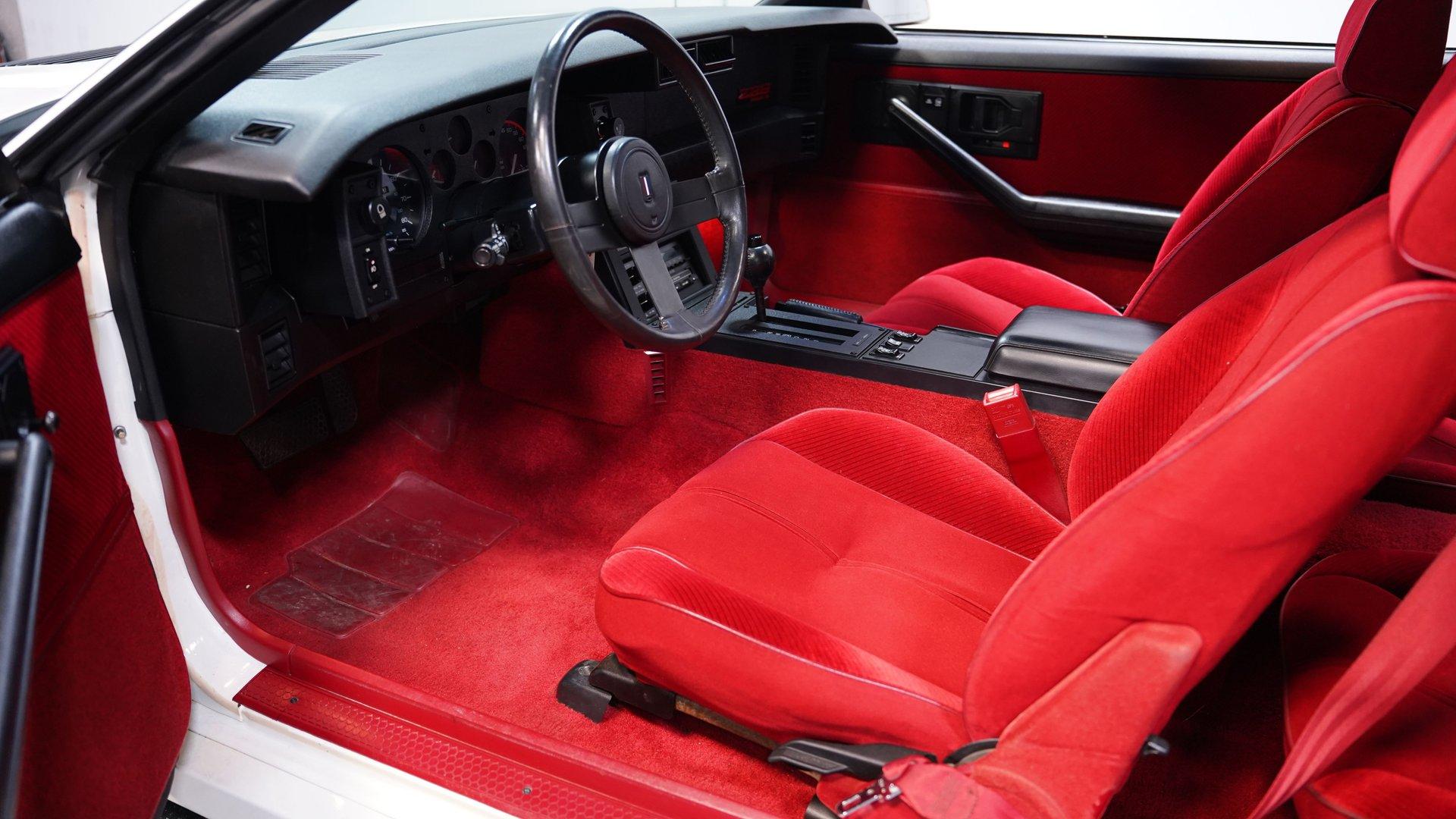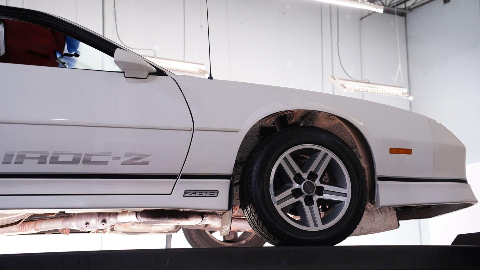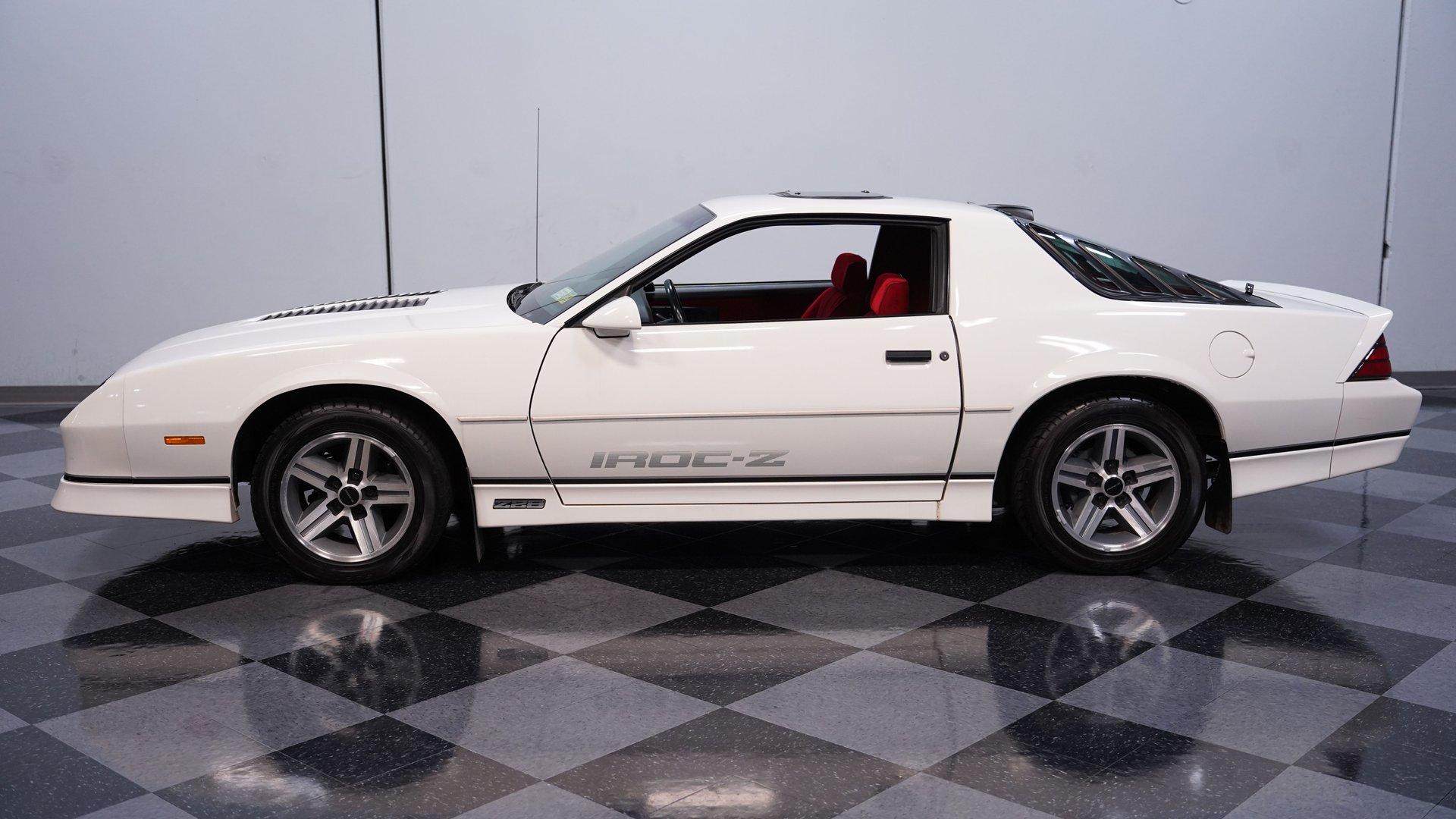 When it comes to instantly recognizable automobiles, it's hard to top the third-generation Chevy Camaro. One look at this 1986 Chevrolet Camaro IROC Z28, and it's easy to see why this car was the quintessential poster car for the 1980s. With an incredible 17,468 (believed) actual miles on its odometer, its (believed) original body is covered in what appears to be its factory white paint and original IROC-Z decals. This numbers-matching Pony Car is the perfect addition for anyone who wants to get as close to feeling what it was like to pilot one of these cars when it was new. Inside, we find an inviting Dark Carmine Red cloth interior in factory condition. A center console separates a pair of blush and supportive bucket seats. A three-spoke power-assisted wheel sits just ahead of a five-pod analog gauge cluster, while power locks, windows, air conditioning, and cruise control supply all the modern amenities anyone could want in the mid-1980s. Unlike many of its Third Gen siblings, this IROC-Z has been outfitted with a sunroof in lieu of T-Tops, while what appears to be the factory AM/FM/Cassette player handles soundtrack duties. Under the hood, we find a numbers-matching naturally aspirated 305 cubic-inch V-8. Topped with a single four-barrel Quadrajet carburetor and backed by a stock-style dual-to-single-to-dual exhaust, this V-8 pumped out around 190 horsepower and 240 pound-feet of torque when it rolled off the assembly line nearly four decades ago. That power is routed through a 700R4 four-speed automatic transmission before heading out to a ten-bolt rear end, which transfers those ponies to the pavement via the now-iconic 16-inch aluminum IROC wheels. HIGHLIGHTS: 17,468 Believed Actual Miles Believed Original Paint Believed Original Body Sunroof Numbers Matching 305 CID V8 Quadrajet Four Barrel 700R4 Four Speed Auto Ten Bolt Rear IROC Wheels Power Brakes Front Discs Power Steering Factory Dark Carmine Red Interior Power Locks Power Windows AC Cruise Tilt Wheel Owner's Manual This Z/28 rides on a factory-style suspension, while power brakes featuring a pair of front discs stand ready to scrub off speed at a moment's notice. If you've owned one of these cars in the past, then you know how charismatic they can be. If you've never experienced driving one of the most beloved cars of a decade, then you're going to be hard-pressed to find one in more factory-like condition than this ultra-low-mileage, numbers-matching IROC-Z. Don't wait, call today!