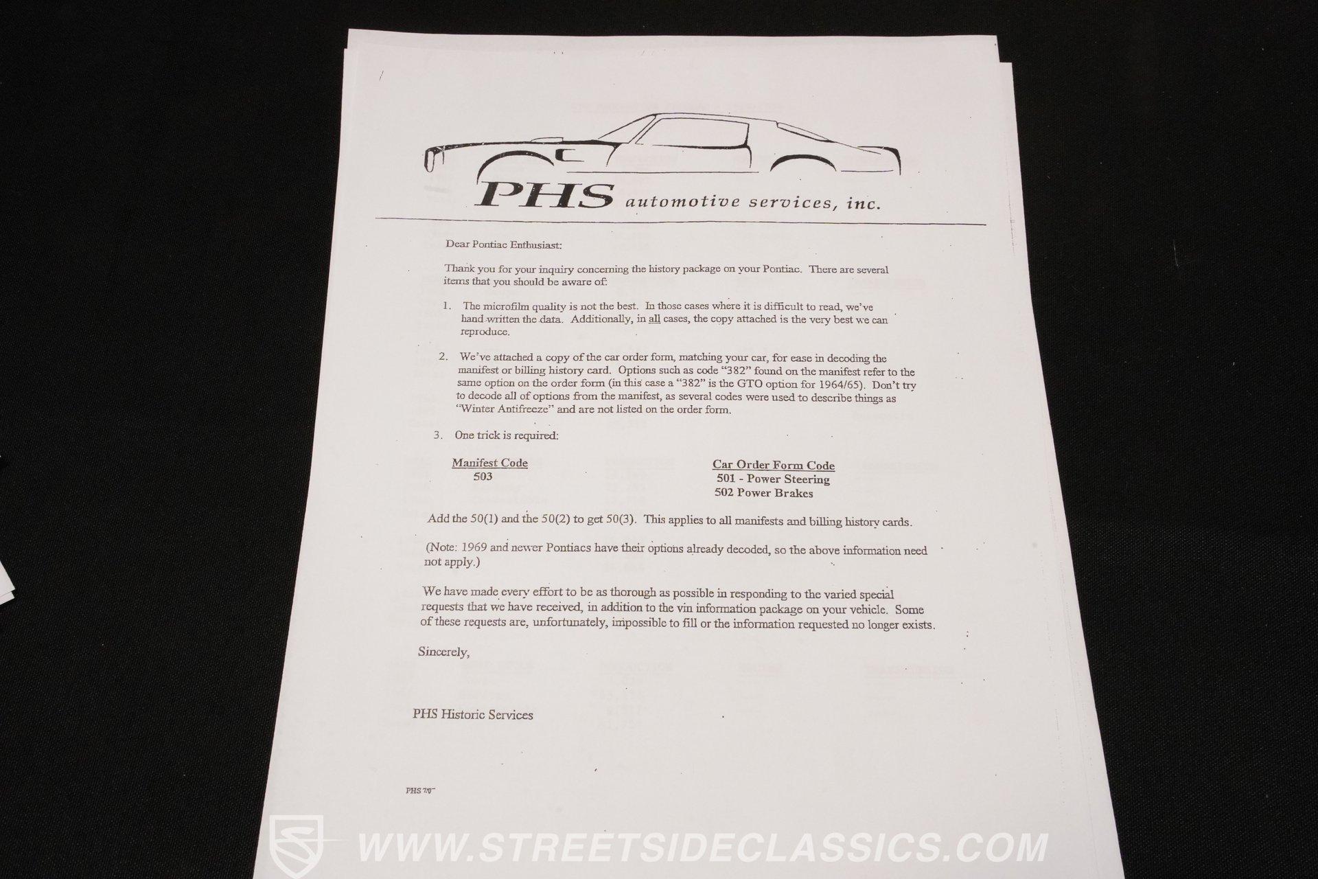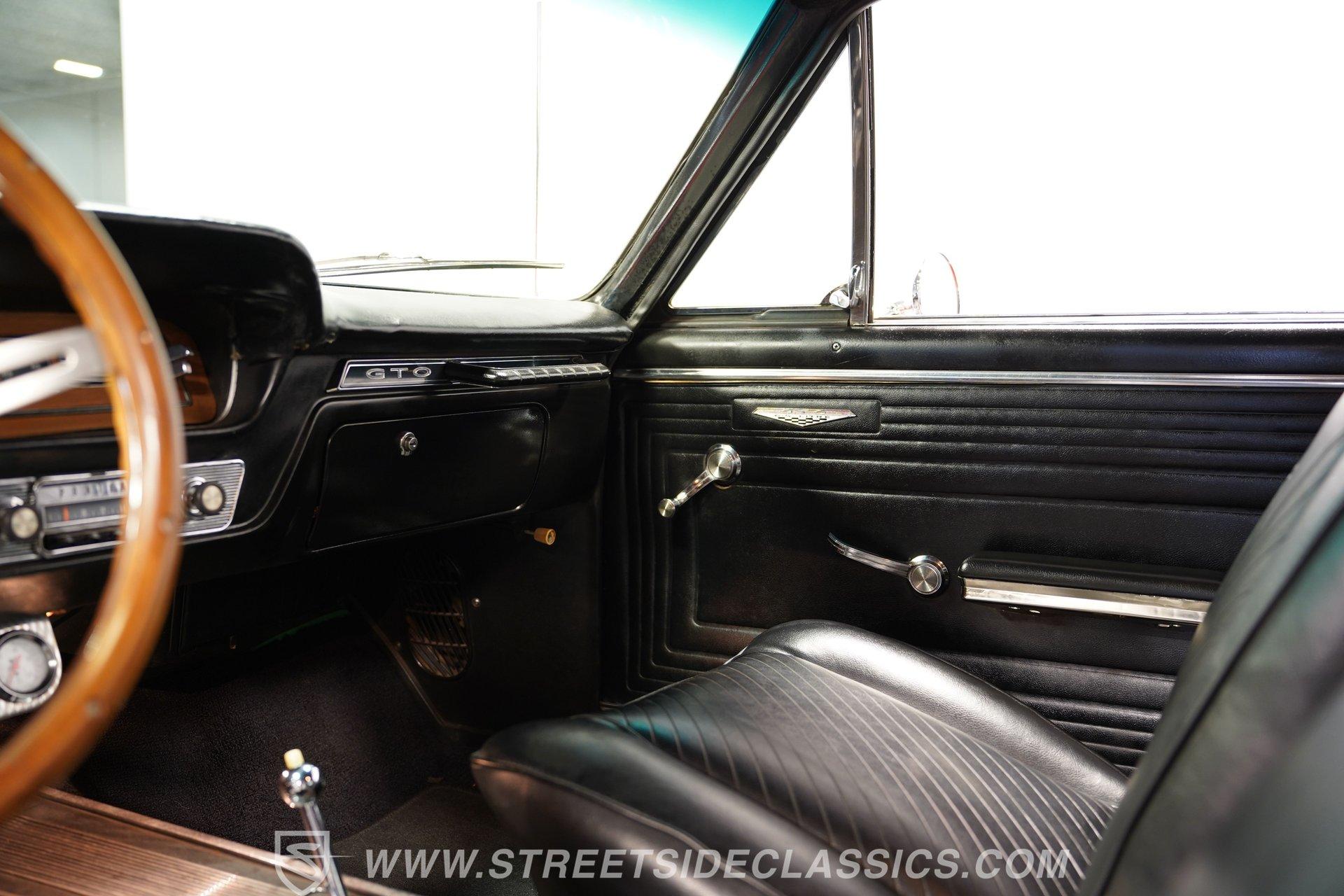 There's a reason the Pontiac GTO is called "The Legend." It's the car that launched the muscle car era, the machine that made power and attitude a way of life on American roads. Sliding behind the wheel of this GTO is like stepping into a time capsule where every drive is a celebration of style, sound, and raw excitement. Whether you're cruising to a local show or carving up your favorite stretch of highway, this car is about making memories and turning heads. This is your opportunity to own a piece of automotive history with this 1965 Pontiac GTO. Step inside and you'll find a cabin that offers classic comfort with period-correct flair. The seats, both front and back, are in real nice shape with fresh-feeling padding, and the carpets are clean and well-fitted. The center console maintains its original character and is in great condition for its age, while the dash features a classic layout with original gauges and a faux wood cluster. A beautiful wooden steering wheel with the Pontiac center cap adds a touch of warmth, and the door handles and interior panels present nicely for a true vintage experience. Under the hood is a 400 V8 engine, sporting a Carter four-barrel carburetor and Edelbrock intake for robust performance. The engine bay has a sharp look with blue-painted block, heads, and valve covers, complemented by a chrome air cleaner. Upgrades include a newer alternator, aluminum radiator, and long tube headers. Paired to a 4-speed automatic transmission, this GTO fires up easily, idles smoothly, and delivers confident acceleration. Power disc brakes in front, power steering, and a well-sorted suspension with aftermarket springs ensure modern driving enjoyment. Highlights 400 V8 Engine With Carter Four Barrel Carb Edelbrock Intake And Chrome Air Cleaner 4 Speed Automatic Transmission Long Tube Headers Power Steering Power Front Disc Brakes 10 Bolt Rear Axle Lowered Suspension 15 Inch Five Spoke Wheels Aluminum Radiator Center Console And Wooden Steering Wheel PHS Documentation Financing Available Vehicle Protection Plans Available Worldwide Shipping If you're searching for a true American icon that delivers both nostalgia and excitement, this 1965 Pontiac GTO is ready to meet the moment. It combines classic muscle car vibes with tasteful upgrades for a rewarding driving experience. Call, email, or come visit our showroom today!