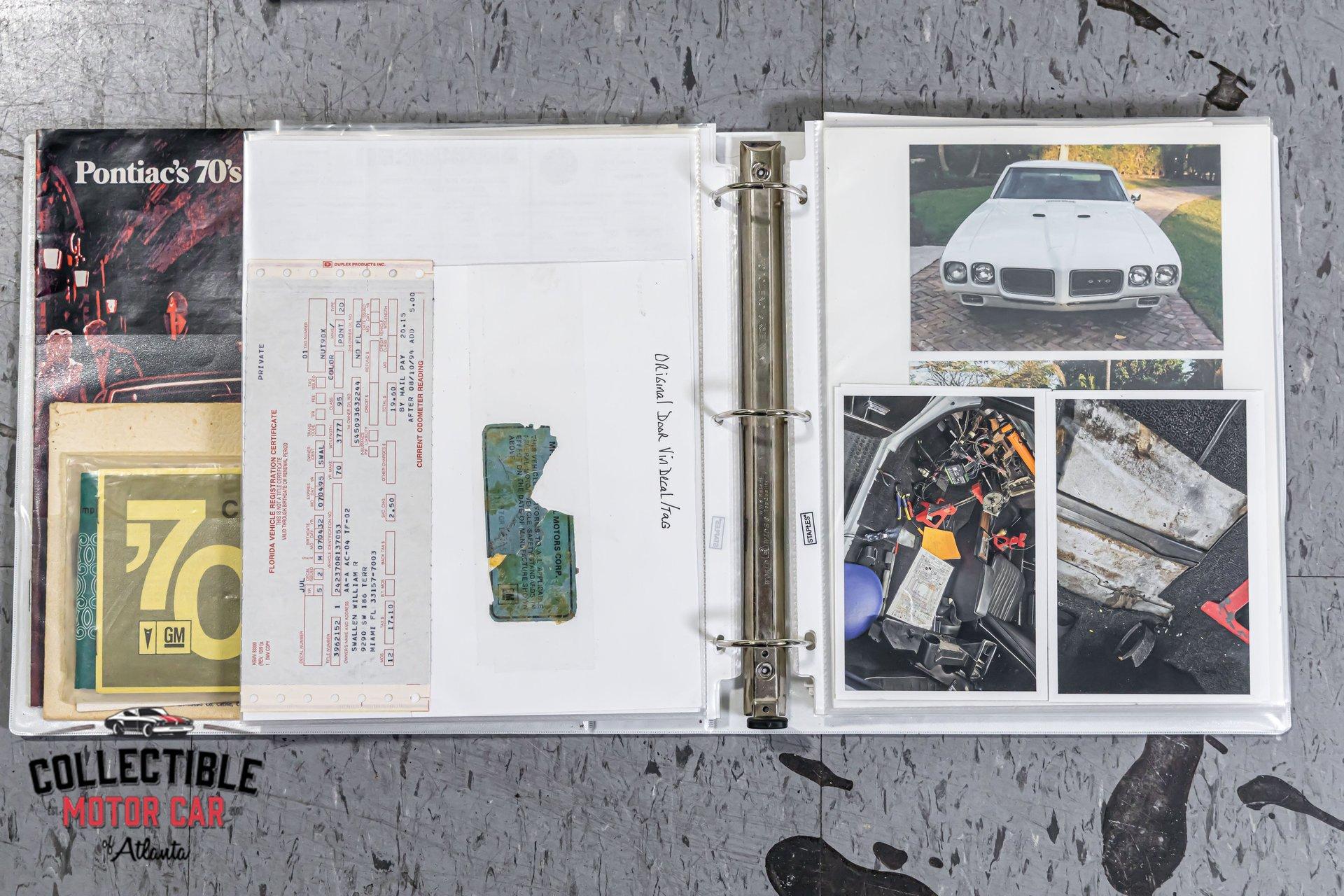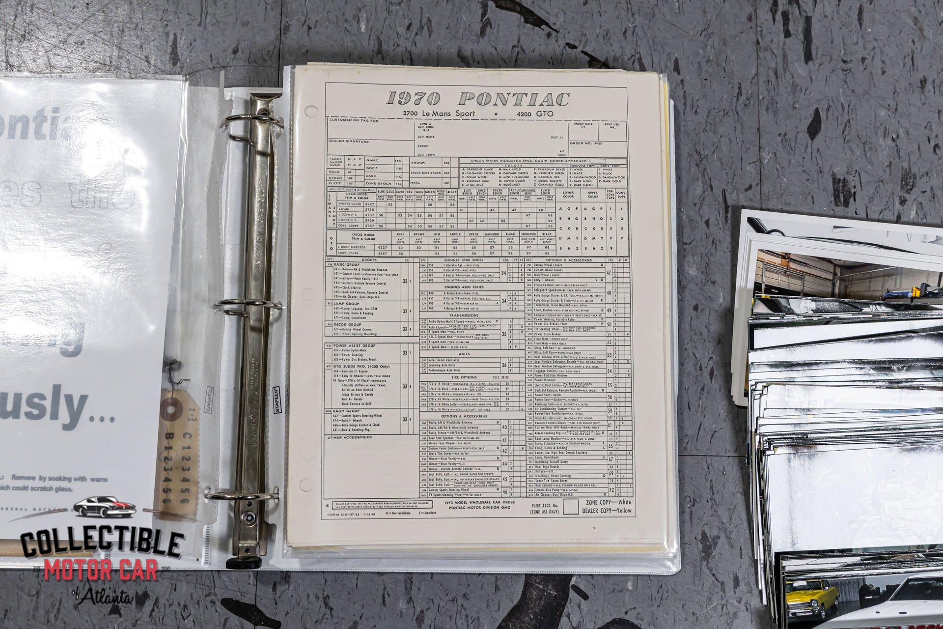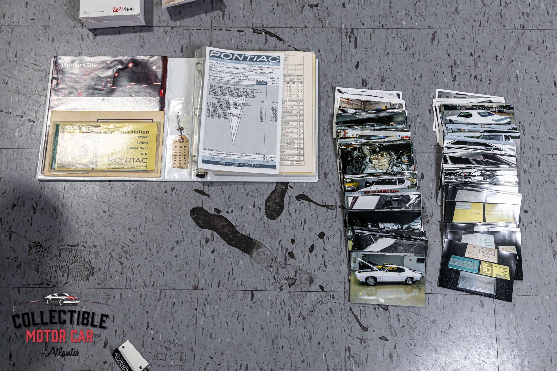 1970 Pontiac GTO — Frame-Off Restored, Numbers-Matching YS-Code 400, White/Black, A/C, PW, Docs A proper muscle icon, freshly presented. This 1970 Pontiac GTO wears a crisp White finish over Black interior and has been treated to a frame-off restoration with thoughtful upgrades for reliability and drivability. Under the hood lives its numbers-matching 400ci V8 (YS code)—rebuilt and detailed—backed by the correct automatic drivetrain and supported by modern conveniences: cold A/C, power steering, power brakes, and power windows. A tasteful stance on 18" Pontiac Rally II Bandit Wheels , Dakota Digital gauges, and LED headlights completes the look without straying from the car’s Pontiac soul. It’s a 3-owner car with excellent documentation (build photos, PHS packet, window sticker, Protect-O-Plate, owner’s manual, and build receipts). This is a very nice GTO—the kind you keep. Quick Highlights Frame-off restoration with clean, detailed undercarriage Numbers-matching 400ci V8 (YS code) — factory 350 hp spec with automatic in 1970 White exterior over Black interior Cold A/C, power steering, power brakes, power windows Dakota Digital instrumentation (OEM-style look, modern accuracy) LED headlights (improved visibility) 18" Pontiac Rally II Bandit Wheels 3 owners from new Big documentation file: build photos, PHS docs, window sticker, Protect-O-Plate, owner’s manual, receipts Turn-key: reliable, sorted, and a pleasure to drive Body & Restoration Frame-off restoration with attention to factory panel gaps and finishes Smooth White paint with deep gloss; black GTO callouts and trim present cleanly Bumpers, bezels, lenses, and stainless show excellent fit and finish Clean, painted/detailed frame and floors—great presentation for shows or lifts LED headlights integrated for safety while honoring the period look Interior Black interior presents fresh and cohesive: seat upholstery, door panels, dash, and headliner are tidy Dakota Digital gauges provide period-correct styling with modern precision Factory console and shifter, correct trim accents, tight carpet set and sill plates Power windows operate properly; all interior lighting and accessories in working order Aftermarket audio (if installed) is neatly integrated; otherwise retains clean OEM appearance Drivetrain & Chassis Numbers-matching 400ci V8 (engine code YS)—rebuilt, properly dressed with correct Pontiac engine finishes Factory-style induction and exhaust routing; healthy idle and strong mid-range pull Automatic transmission shifts cleanly; proper kickdown and highway manners Power steering tracks straight; no slop or wander Power brakes (front discs) provide confident, even stops Suspension restored with fresh bushings, springs, and shocks—tight, rattle-free feel 18" Pontiac Rally II Bandit Wheels with performance radials; excellent stance and grip Driving Impressions Starts easily, idles smooth, and settles into a confident Pontiac thrum. The rebuilt 400 pulls cleanly with the broad torque these cars are known for. Steering is light but accurate, braking is composed and linear, and the chassis feels buttoned-up—precisely what you expect from a frame-off build. A/C blows cold, making this GTO equally suited to boulevard cruising or weekend shows. Documentation & Provenance PHS documentation verifying build and equipment Window sticker and Protect-O-Plate Owner’s manual Build receipts and parts invoices Restoration photo set from disassembly through reassembly Three-owner history providing confidence in care and stewardship Why This GTO ’70 is a headline year for the GTO—iconic styling, stout Pontiac torque, and a proper muscle-era driving experience. Add a numbers-matching YS-code 400, a frame-off restoration, modern comforts (A/C, PW/PS/PB), discrete upgrades (Dakota Digital, LEDs), and a top-shelf documentation file, and you have a GTO that checks all the boxes for collectors and drivers alike. ? Phone: 770-738-7111 ? Address: 1750 Enterprise Way, Suite 109, Marietta, GA 30067 ? Hours of Operation: Monday–Friday: 9 AM – 5 PM Saturday: 9 AM – 3 PM (Appointment Only) Sunday: Closed