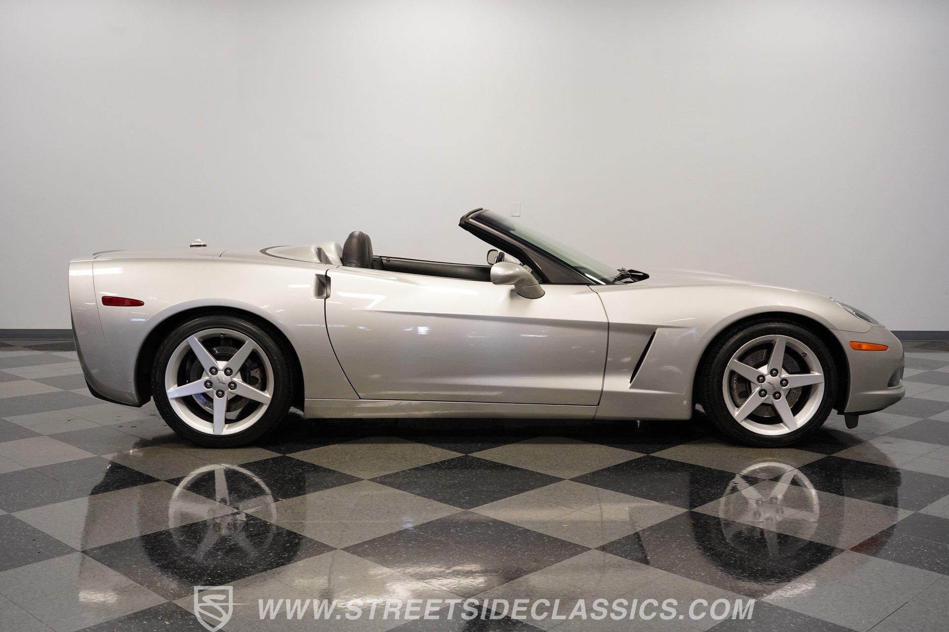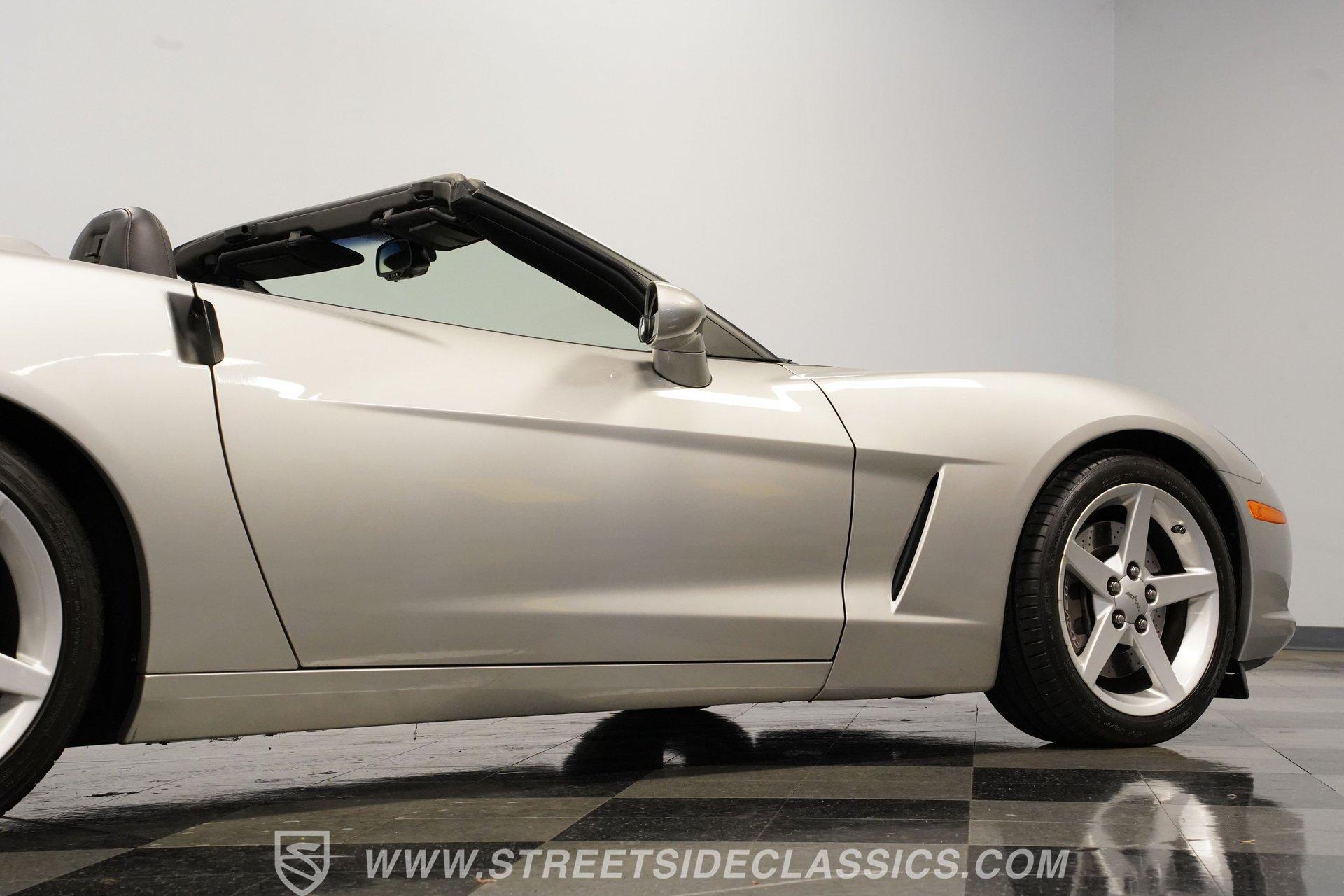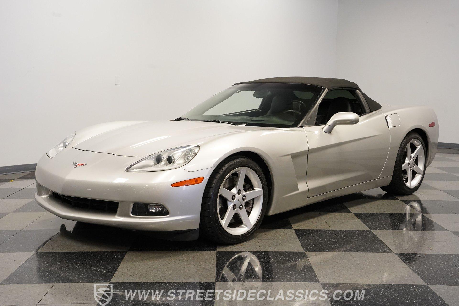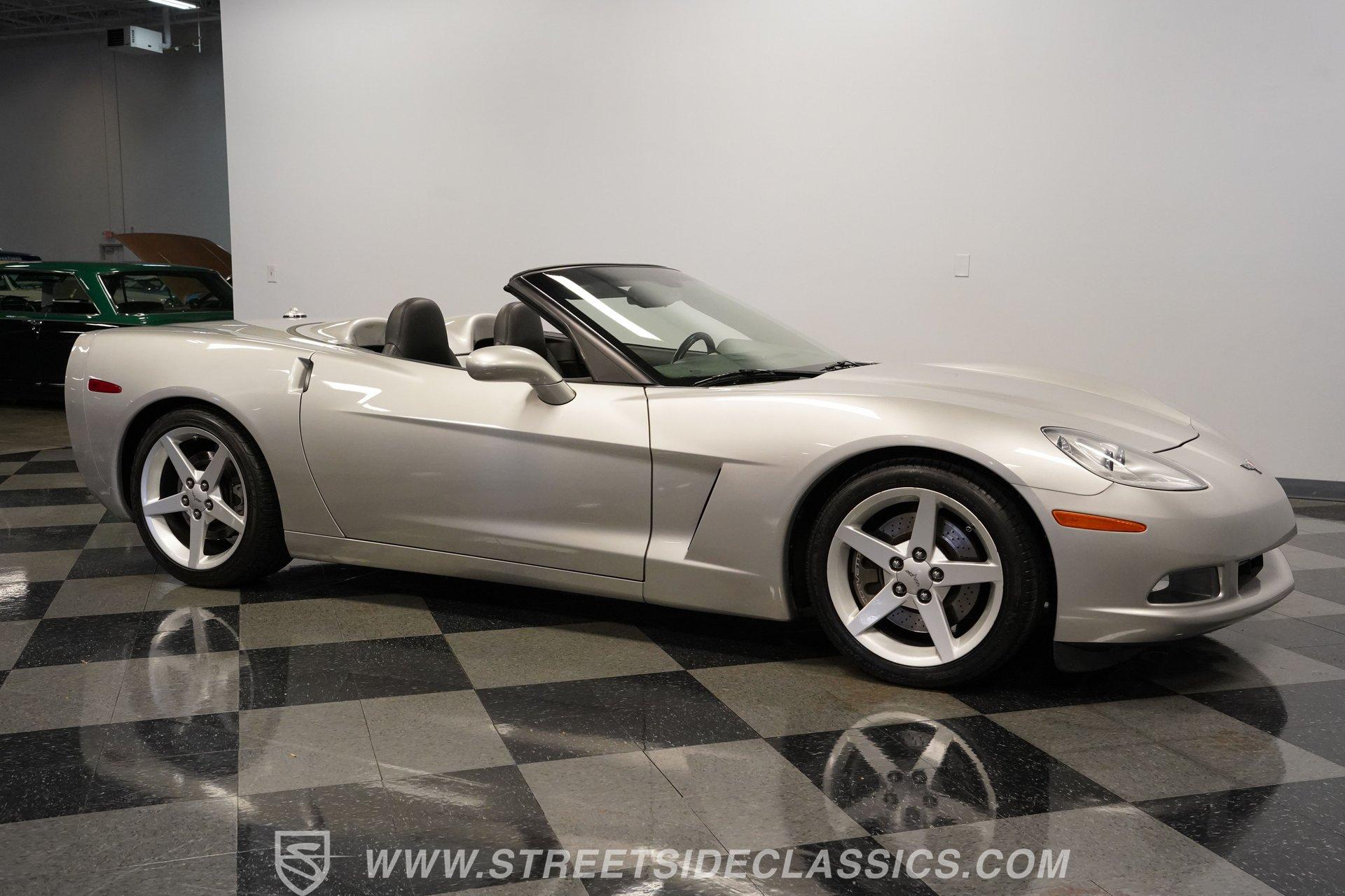 When it comes to fun in the sun, few cars on earth can rival a drop-top Corvette. Speed, power, and style all come together in this glorious 2005 Chevrolet Corvette Z51 Convertible. With a mere 26,077 actual miles on the odometer, this first-year C6 comes with its original Light Tarnished Silver Metallic paint stretched out over its original body panels. Less than half of all convertibles made for 2005 were equipped with the optional Z51 performance package, and even fewer came with an automatic transmission, making this Corvette just a little more collectible for anyone looking for scarcity to go along with their open-air sports car. Inside, we find a posh Ebony leather interior featuring dual power and heated bucket seats that provide lumbar support. Thanks to the available Memory Package, the vehicle remembers settings for the driver's seat, mirrors, and steering wheel column angle. Just ahead of the power-telescoping steering wheel sits a six-pod gauge cluster, highlighted by a large 7,000-rpm tachometer and a matching 200-mph speedometer, both flanked by two auxiliary gauges on either side. If you don't want to take your eyes off the road, then the Heads-Up Display will come in handy. Add to that the built-in navigation system, power everything, and a premium seven-speaker AM/FM/CD Bose stereo, and you have a sports car that is ready to cruise comfortably for as long as you are. Under the classic front-hinged hood of this Vette, we find a 6.0-liter LS2 small-block Chevy. This aluminum-block-and-heads motor was only found in the C6 Corvette from 2005 until 2007, after which it was replaced by the LS3, making the LS2-engined cars something of a rarity by comparison. In stock form, the LS2 was capable of pumping out a very balanced 400 hp and 400 lb-ft of torque, which sounds as good as anything from the Golden Age of muscle cars thanks to the low-restriction Z51 performance exhaust. That power was then sent through a smooth-shifting 4L60E four-speed automatic transmission before heading out to the 3.15-geared rear end, which transfers those ponies to the pavement via staggered five-spoke factory wheels shod in Michelin rubber. HIGHLIGHTS: First Year C6 26,077 Actual Miles Original Light Tarnished Silver Metallic Z51 Performance Package 1SB Option Package 6.0 Liter LS2 V8 4L60E Four Speed Auto 3.15 Rear Performance Exhaust Four Wheel Power Discs Cross Drilled Rotors Power Steering Ebony Leather Memory Package Power and Heated Seats Power Mirrors Power Locks Power Windows Heads Up Display AC Cruise Remote Door Openers Bose AM/FM/CD/DVD Owner's Manual This 2005 Chevrolet Corvette Z51 Convertible rides on its upgraded Z51 suspension which includes stiffer springs and damping, revised bushings, and a performance-oriented alignment to go along with its larger cross-drilled power disc brakes at all four corners, allowing this 'Vette to take on any winding mountain road with ease. Produced from 2005-2013, the C6 represents an exciting generation of the Corvette and the second-to-last gen before the mid-engine C8 arrived. If fun in the sun is what you're looking for, then there is almost no better option than to get behind the wheel of a beautiful Corvette convertible like this one. Call today!