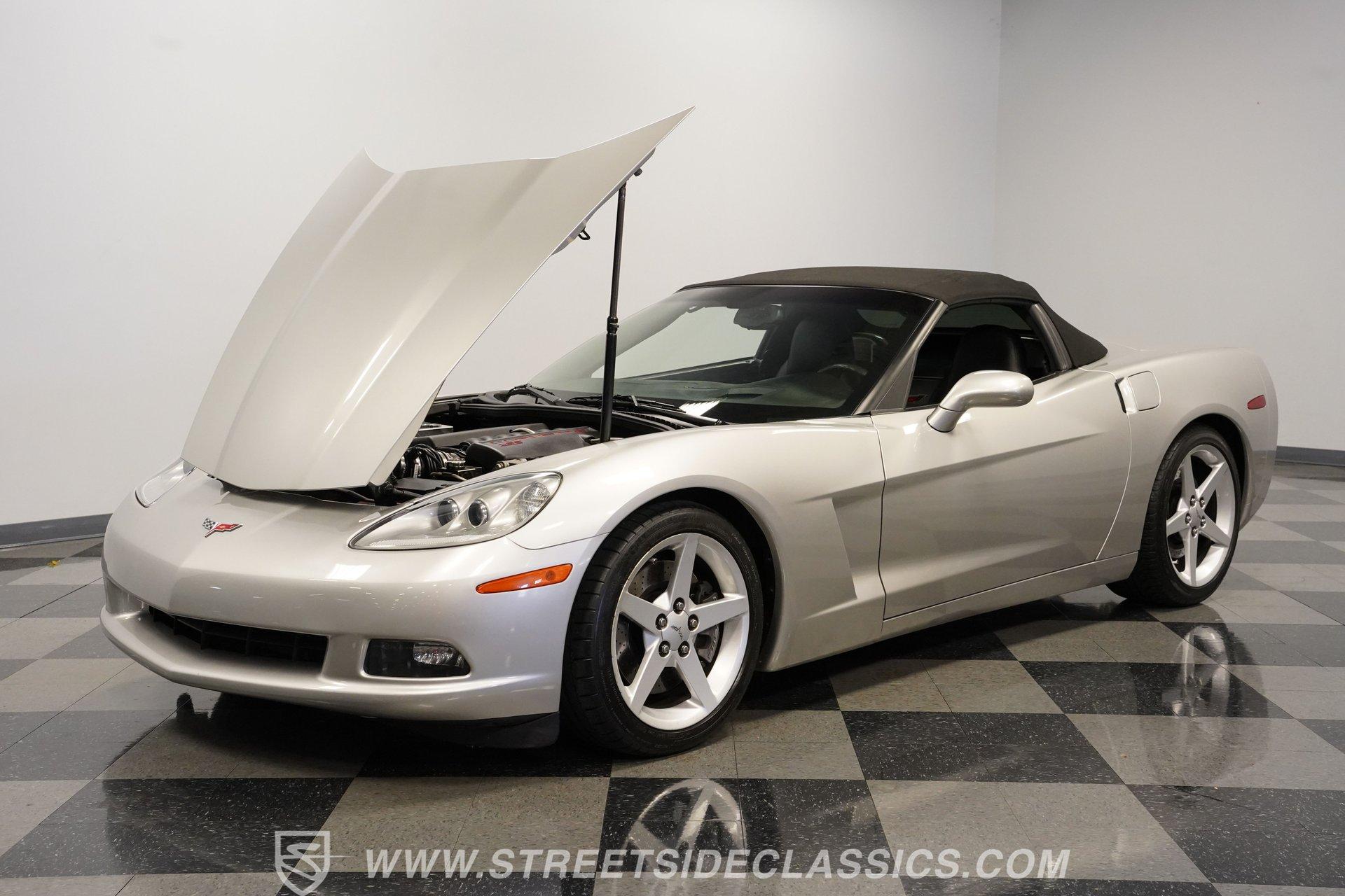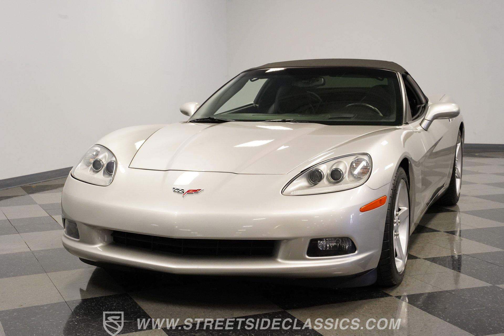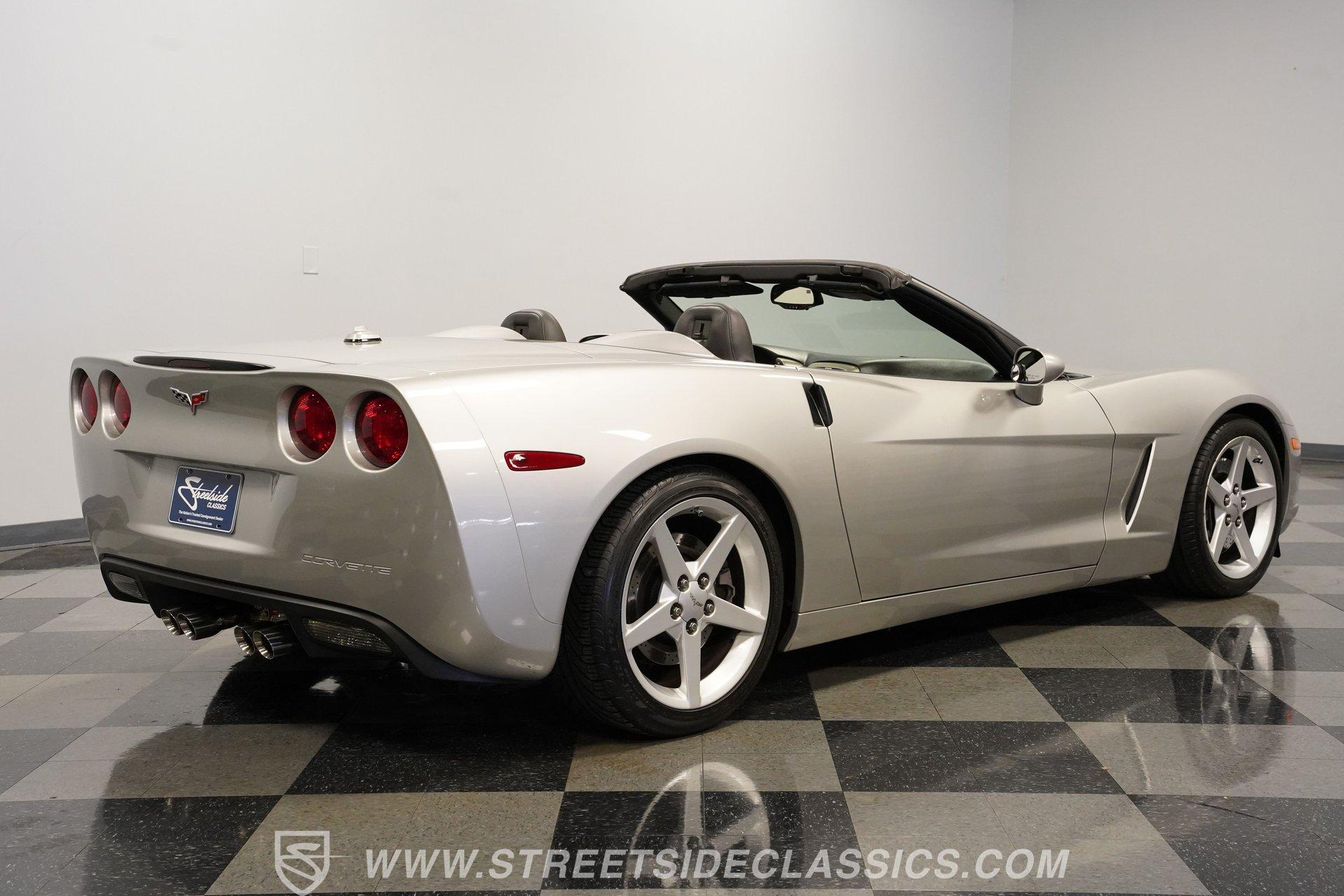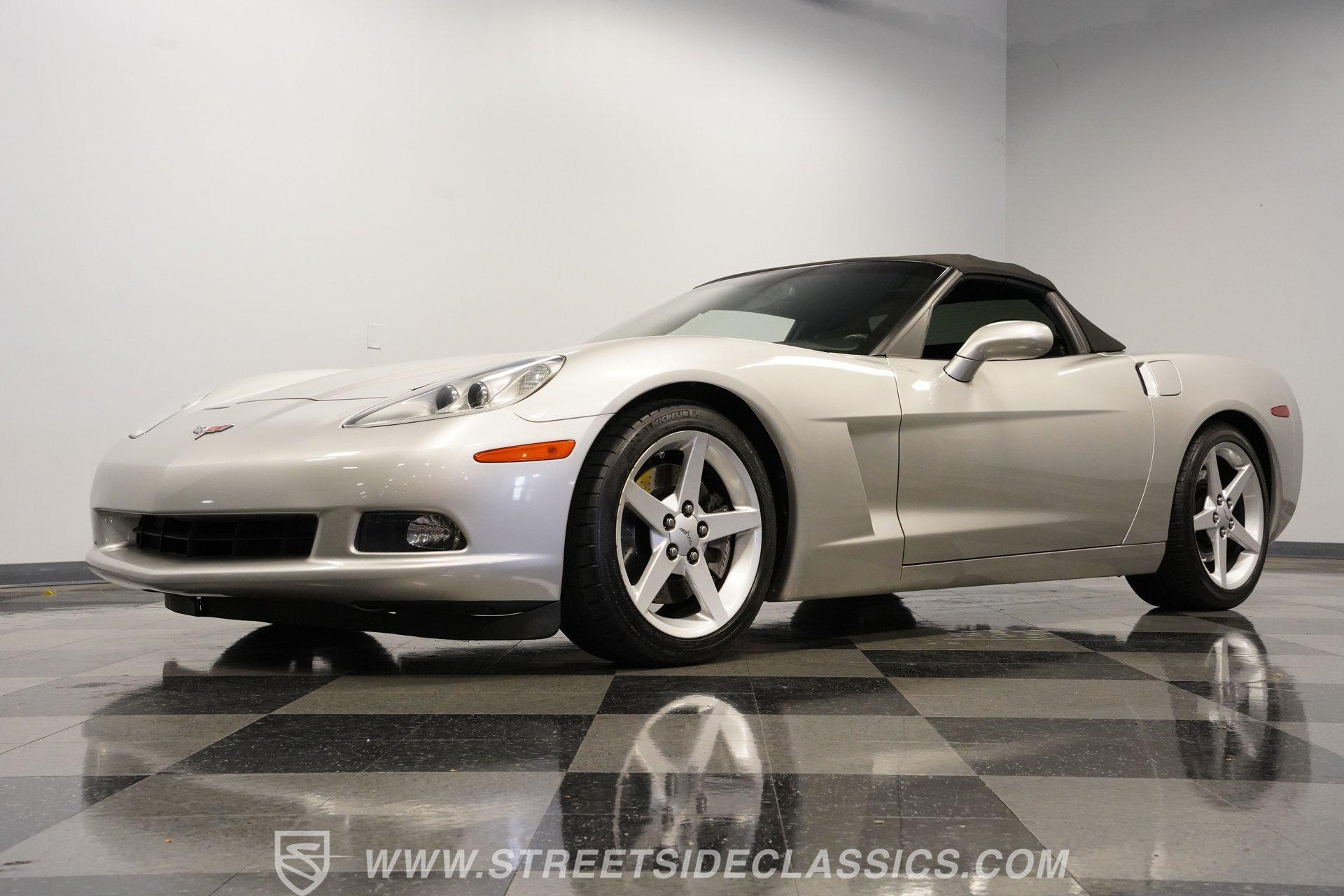 When it comes to fun in the sun, few cars on earth can rival a drop-top Corvette. Speed, power, and style all come together in this glorious 2005 Chevrolet Corvette Z51 Convertible. With a mere 26,077 actual miles on the odometer, this first-year C6 comes with its original Light Tarnished Silver Metallic paint stretched out over its original body panels. Less than half of all convertibles made for 2005 were equipped with the optional Z51 performance package, and even fewer came with an automatic transmission, making this Corvette just a little more collectible for anyone looking for scarcity to go along with their open-air sports car. Inside, we find a posh Ebony leather interior featuring dual power and heated bucket seats that provide lumbar support. Thanks to the available Memory Package, the vehicle remembers settings for the driver's seat, mirrors, and steering wheel column angle. Just ahead of the power-telescoping steering wheel sits a six-pod gauge cluster, highlighted by a large 7,000-rpm tachometer and a matching 200-mph speedometer, both flanked by two auxiliary gauges on either side. If you don't want to take your eyes off the road, then the Heads-Up Display will come in handy. Add to that the built-in navigation system, power everything, and a premium seven-speaker AM/FM/CD Bose stereo, and you have a sports car that is ready to cruise comfortably for as long as you are. Under the classic front-hinged hood of this Vette, we find a 6.0-liter LS2 small-block Chevy. This aluminum-block-and-heads motor was only found in the C6 Corvette from 2005 until 2007, after which it was replaced by the LS3, making the LS2-engined cars something of a rarity by comparison. In stock form, the LS2 was capable of pumping out a very balanced 400 hp and 400 lb-ft of torque, which sounds as good as anything from the Golden Age of muscle cars thanks to the low-restriction Z51 performance exhaust. That power was then sent through a smooth-shifting 4L60E four-speed automatic transmission before heading out to the 3.15-geared rear end, which transfers those ponies to the pavement via staggered five-spoke factory wheels shod in Michelin rubber. HIGHLIGHTS: First Year C6 26,077 Actual Miles Original Light Tarnished Silver Metallic Z51 Performance Package 1SB Option Package 6.0 Liter LS2 V8 4L60E Four Speed Auto 3.15 Rear Performance Exhaust Four Wheel Power Discs Cross Drilled Rotors Power Steering Ebony Leather Memory Package Power and Heated Seats Power Mirrors Power Locks Power Windows Heads Up Display AC Cruise Remote Door Openers Bose AM/FM/CD/DVD Owner's Manual This 2005 Chevrolet Corvette Z51 Convertible rides on its upgraded Z51 suspension which includes stiffer springs and damping, revised bushings, and a performance-oriented alignment to go along with its larger cross-drilled power disc brakes at all four corners, allowing this 'Vette to take on any winding mountain road with ease. Produced from 2005-2013, the C6 represents an exciting generation of the Corvette and the second-to-last gen before the mid-engine C8 arrived. If fun in the sun is what you're looking for, then there is almost no better option than to get behind the wheel of a beautiful Corvette convertible like this one. Call today!