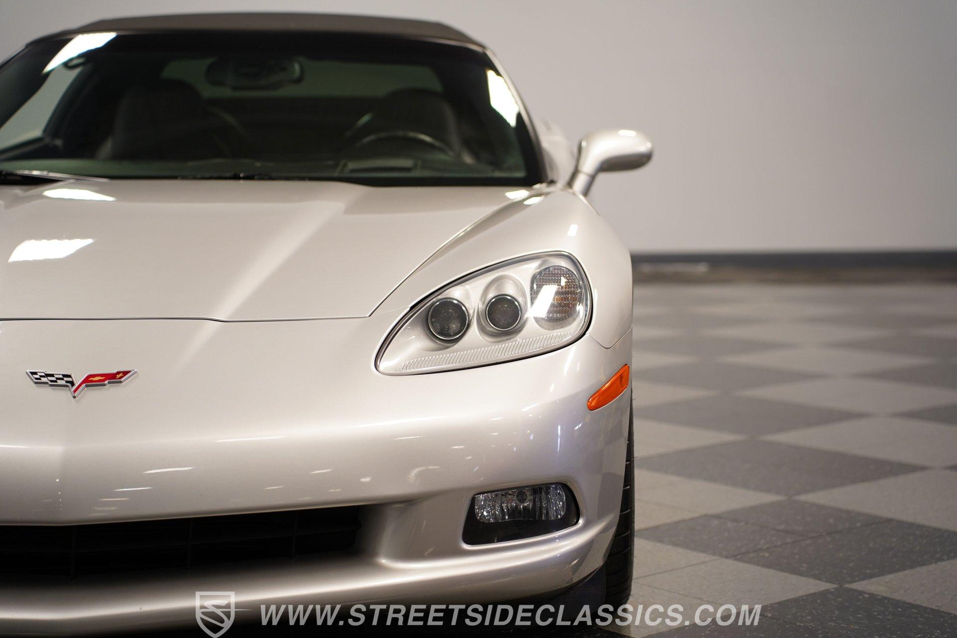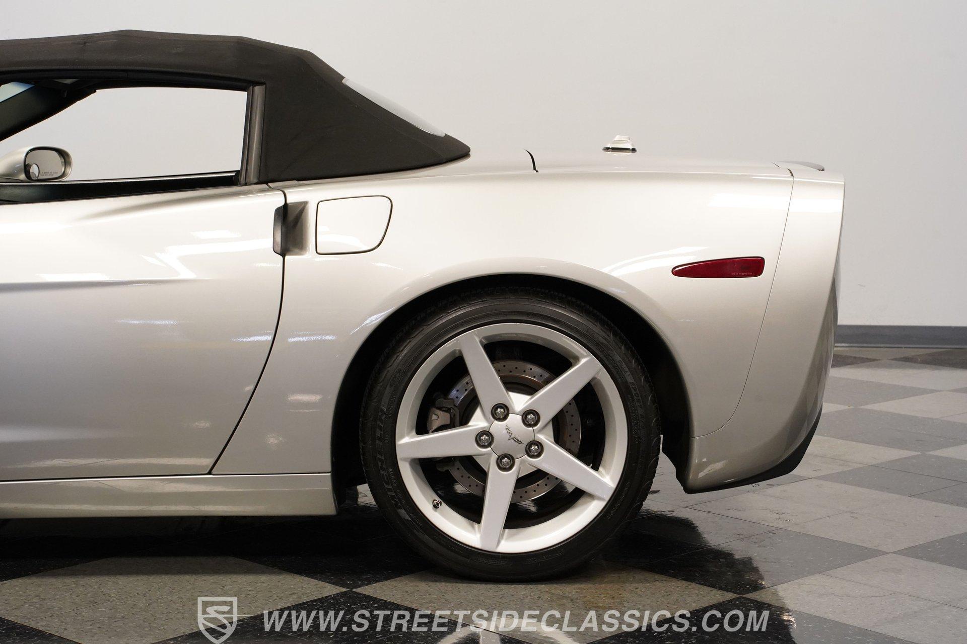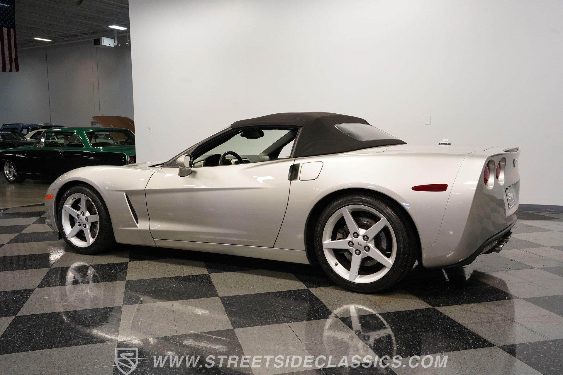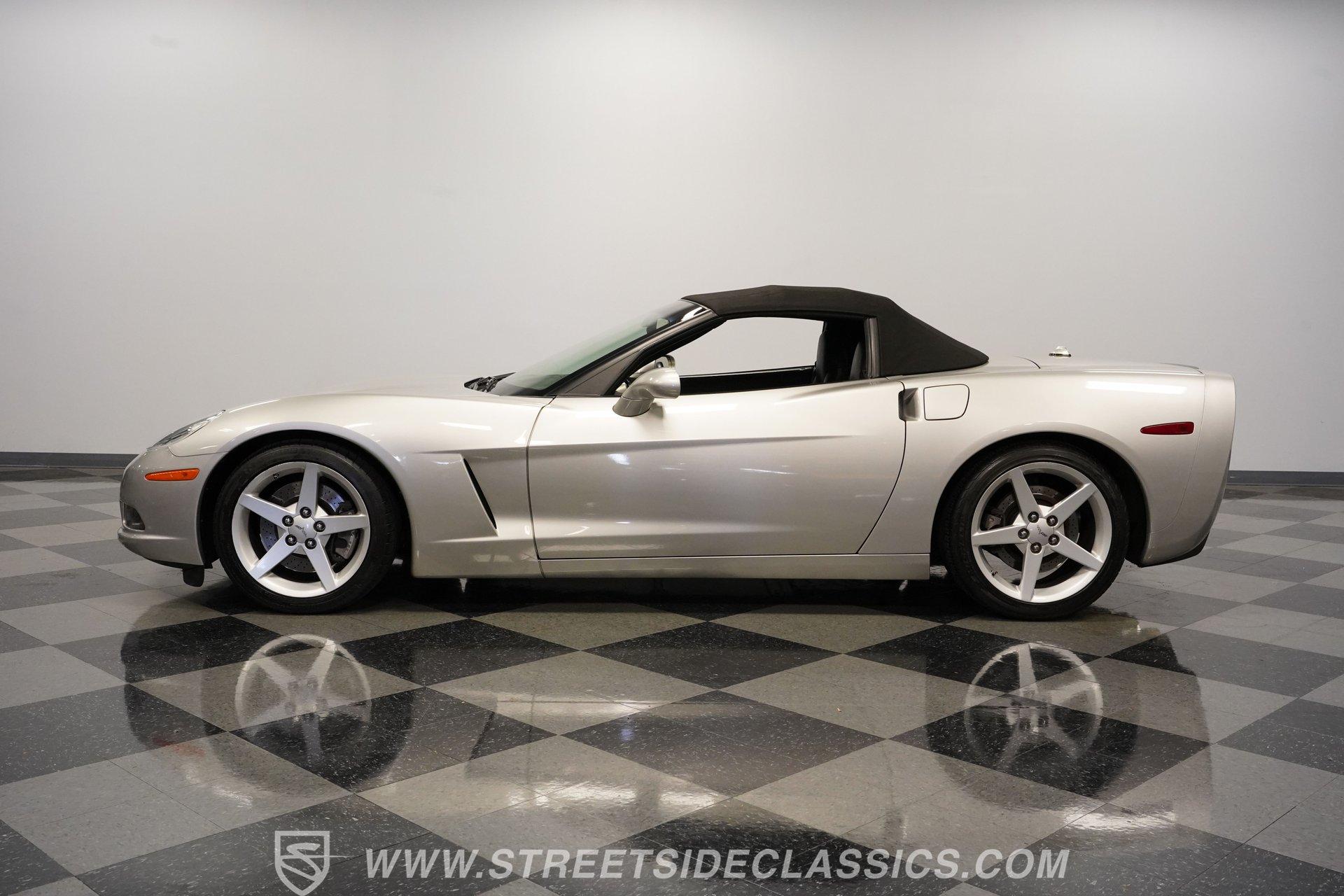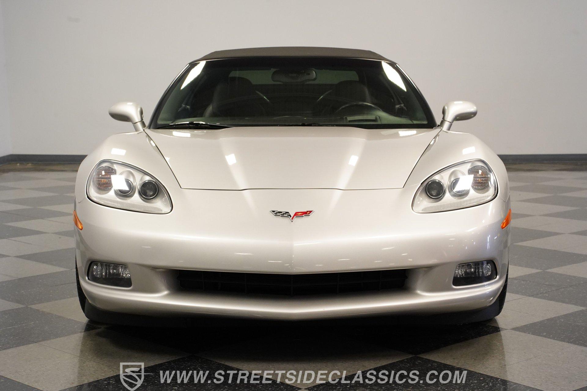 When it comes to fun in the sun, few cars on earth can rival a drop-top Corvette. Speed, power, and style all come together in this glorious 2005 Chevrolet Corvette Z51 Convertible. With a mere 26,077 actual miles on the odometer, this first-year C6 comes with its original Light Tarnished Silver Metallic paint stretched out over its original body panels. Less than half of all convertibles made for 2005 were equipped with the optional Z51 performance package, and even fewer came with an automatic transmission, making this Corvette just a little more collectible for anyone looking for scarcity to go along with their open-air sports car. Inside, we find a posh Ebony leather interior featuring dual power and heated bucket seats that provide lumbar support. Thanks to the available Memory Package, the vehicle remembers settings for the driver's seat, mirrors, and steering wheel column angle. Just ahead of the power-telescoping steering wheel sits a six-pod gauge cluster, highlighted by a large 7,000-rpm tachometer and a matching 200-mph speedometer, both flanked by two auxiliary gauges on either side. If you don't want to take your eyes off the road, then the Heads-Up Display will come in handy. Add to that the built-in navigation system, power everything, and a premium seven-speaker AM/FM/CD Bose stereo, and you have a sports car that is ready to cruise comfortably for as long as you are. Under the classic front-hinged hood of this Vette, we find a 6.0-liter LS2 small-block Chevy. This aluminum-block-and-heads motor was only found in the C6 Corvette from 2005 until 2007, after which it was replaced by the LS3, making the LS2-engined cars something of a rarity by comparison. In stock form, the LS2 was capable of pumping out a very balanced 400 hp and 400 lb-ft of torque, which sounds as good as anything from the Golden Age of muscle cars thanks to the low-restriction Z51 performance exhaust. That power was then sent through a smooth-shifting 4L60E four-speed automatic transmission before heading out to the 3.15-geared rear end, which transfers those ponies to the pavement via staggered five-spoke factory wheels shod in Michelin rubber. HIGHLIGHTS: First Year C6 26,077 Actual Miles Original Light Tarnished Silver Metallic Z51 Performance Package 1SB Option Package 6.0 Liter LS2 V8 4L60E Four Speed Auto 3.15 Rear Performance Exhaust Four Wheel Power Discs Cross Drilled Rotors Power Steering Ebony Leather Memory Package Power and Heated Seats Power Mirrors Power Locks Power Windows Heads Up Display AC Cruise Remote Door Openers Bose AM/FM/CD/DVD Owner's Manual This 2005 Chevrolet Corvette Z51 Convertible rides on its upgraded Z51 suspension which includes stiffer springs and damping, revised bushings, and a performance-oriented alignment to go along with its larger cross-drilled power disc brakes at all four corners, allowing this 'Vette to take on any winding mountain road with ease. Produced from 2005-2013, the C6 represents an exciting generation of the Corvette and the second-to-last gen before the mid-engine C8 arrived. If fun in the sun is what you're looking for, then there is almost no better option than to get behind the wheel of a beautiful Corvette convertible like this one. Call today!