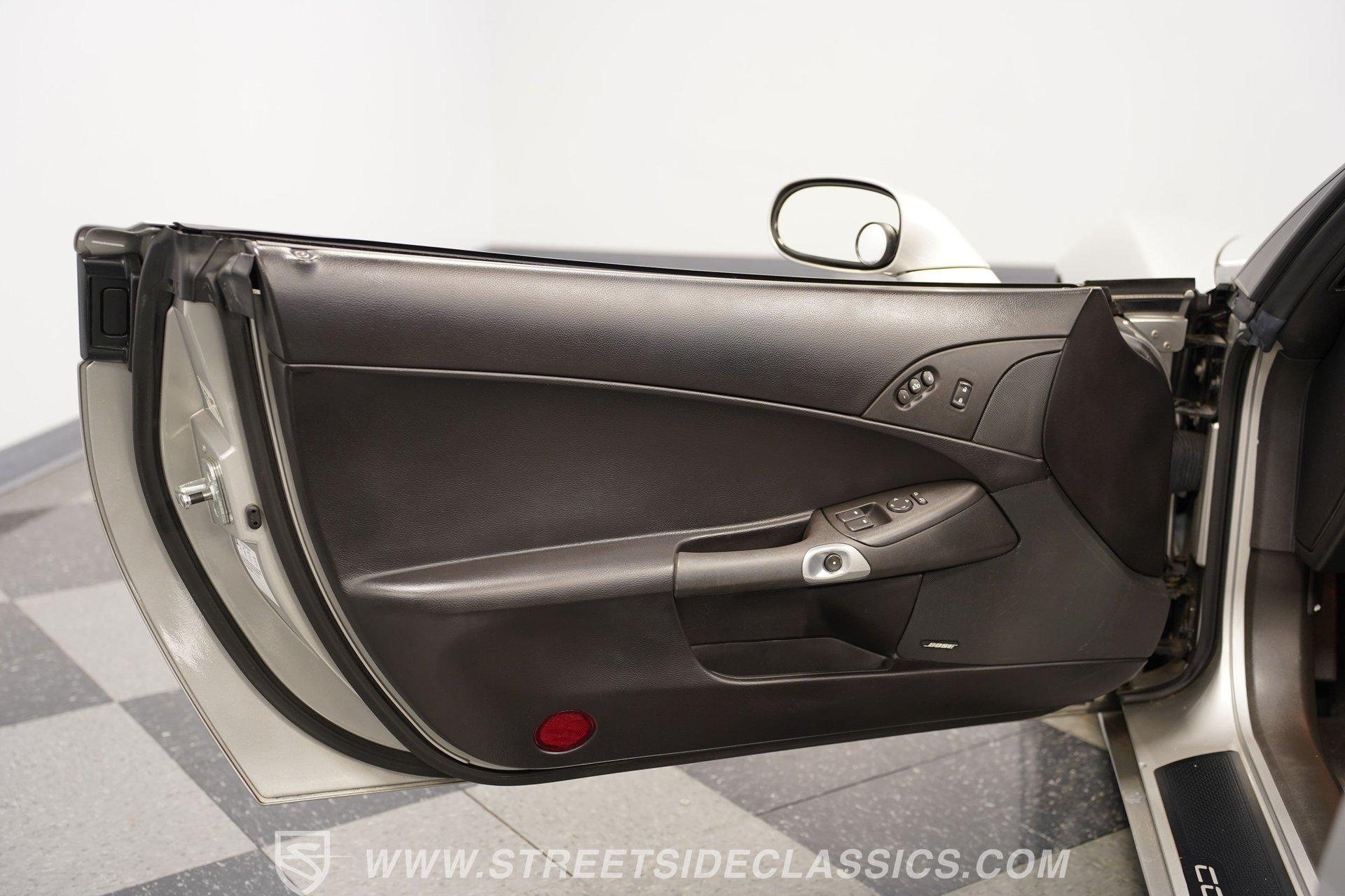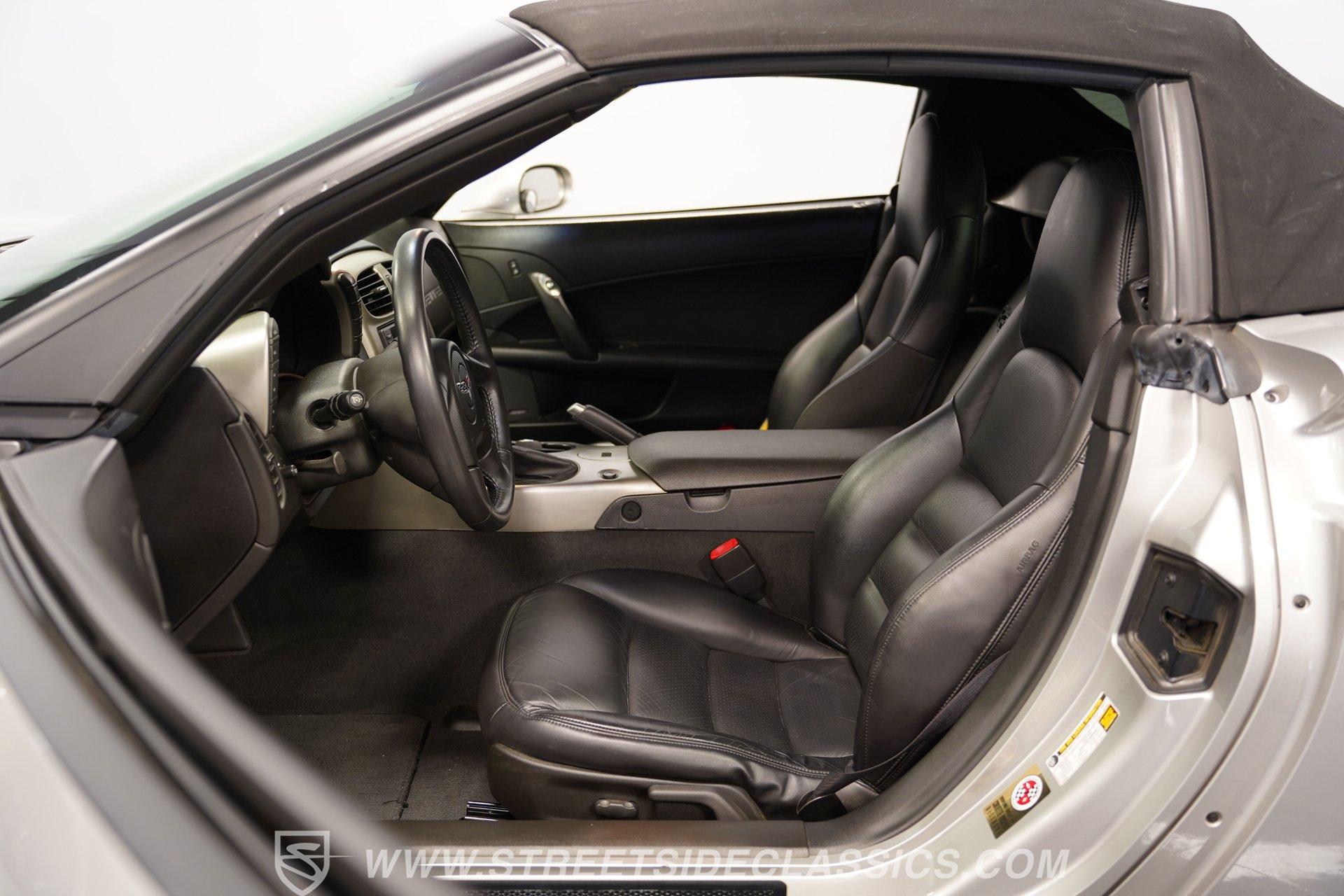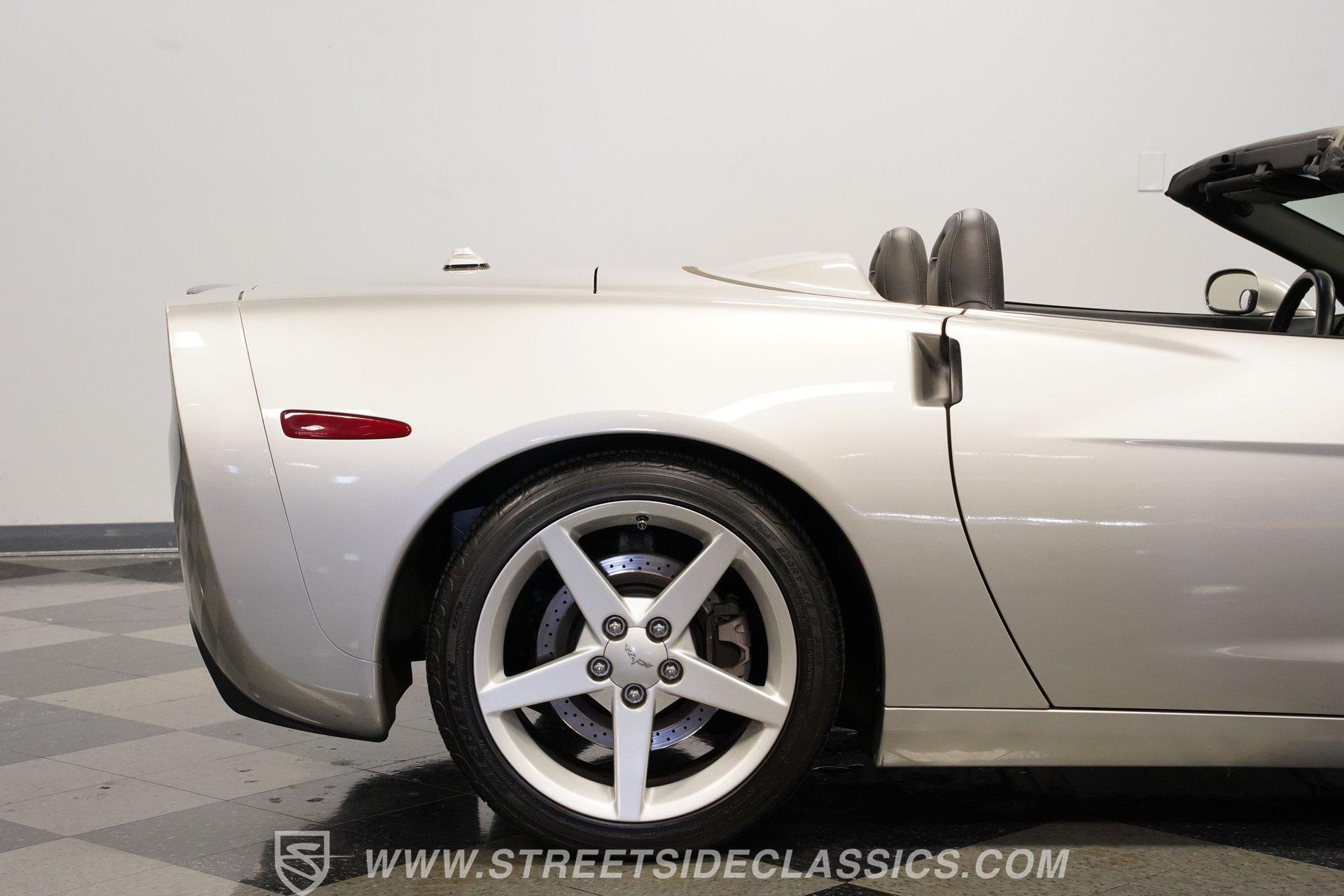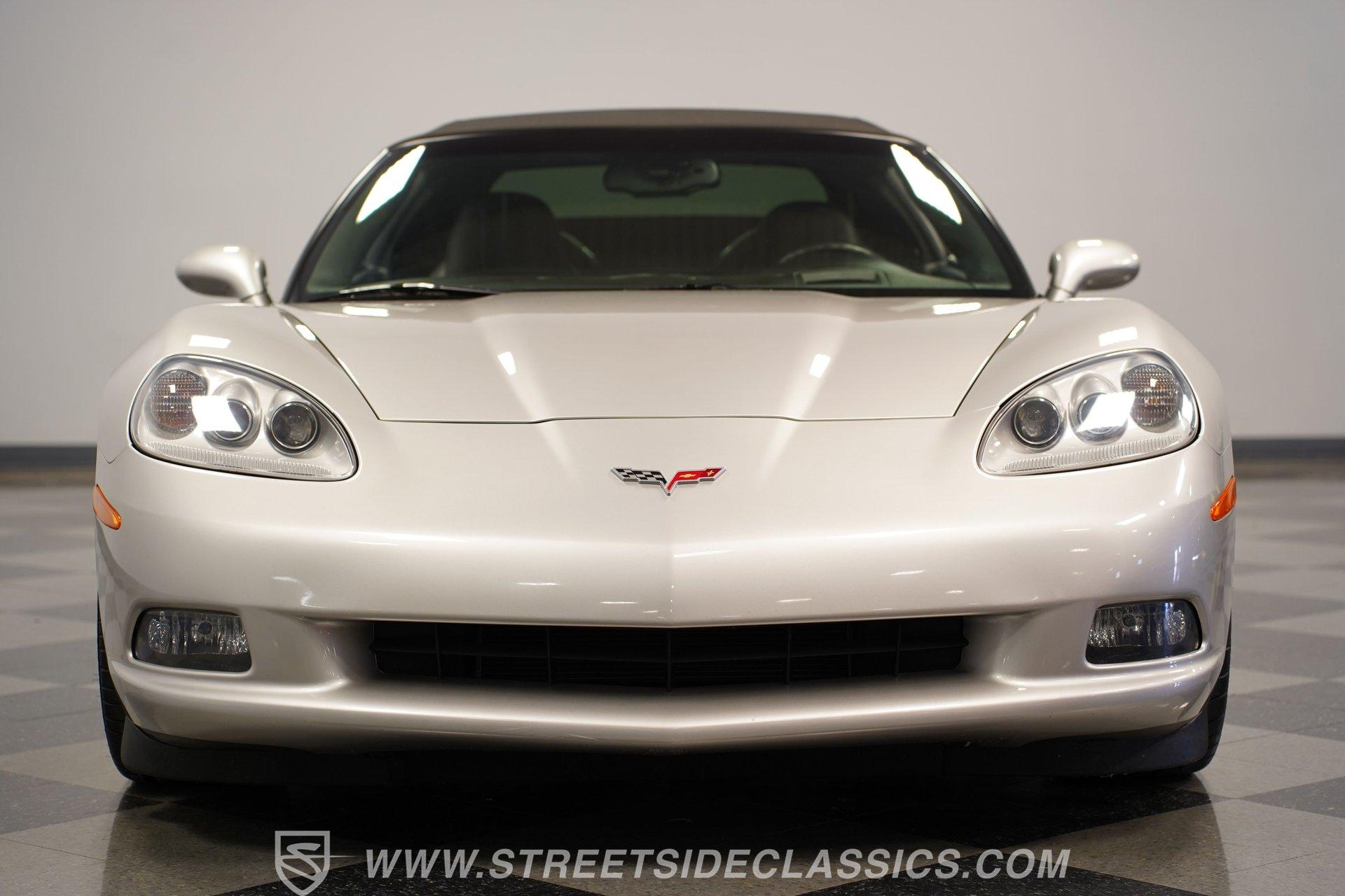 When it comes to fun in the sun, few cars on earth can rival a drop-top Corvette. Speed, power, and style all come together in this glorious 2005 Chevrolet Corvette Z51 Convertible. With a mere 26,077 actual miles on the odometer, this first-year C6 comes with its original Light Tarnished Silver Metallic paint stretched out over its original body panels. Less than half of all convertibles made for 2005 were equipped with the optional Z51 performance package, and even fewer came with an automatic transmission, making this Corvette just a little more collectible for anyone looking for scarcity to go along with their open-air sports car. Inside, we find a posh Ebony leather interior featuring dual power and heated bucket seats that provide lumbar support. Thanks to the available Memory Package, the vehicle remembers settings for the driver's seat, mirrors, and steering wheel column angle. Just ahead of the power-telescoping steering wheel sits a six-pod gauge cluster, highlighted by a large 7,000-rpm tachometer and a matching 200-mph speedometer, both flanked by two auxiliary gauges on either side. If you don't want to take your eyes off the road, then the Heads-Up Display will come in handy. Add to that the built-in navigation system, power everything, and a premium seven-speaker AM/FM/CD Bose stereo, and you have a sports car that is ready to cruise comfortably for as long as you are. Under the classic front-hinged hood of this Vette, we find a 6.0-liter LS2 small-block Chevy. This aluminum-block-and-heads motor was only found in the C6 Corvette from 2005 until 2007, after which it was replaced by the LS3, making the LS2-engined cars something of a rarity by comparison. In stock form, the LS2 was capable of pumping out a very balanced 400 hp and 400 lb-ft of torque, which sounds as good as anything from the Golden Age of muscle cars thanks to the low-restriction Z51 performance exhaust. That power was then sent through a smooth-shifting 4L60E four-speed automatic transmission before heading out to the 3.15-geared rear end, which transfers those ponies to the pavement via staggered five-spoke factory wheels shod in Michelin rubber. HIGHLIGHTS: First Year C6 26,077 Actual Miles Original Light Tarnished Silver Metallic Z51 Performance Package 1SB Option Package 6.0 Liter LS2 V8 4L60E Four Speed Auto 3.15 Rear Performance Exhaust Four Wheel Power Discs Cross Drilled Rotors Power Steering Ebony Leather Memory Package Power and Heated Seats Power Mirrors Power Locks Power Windows Heads Up Display AC Cruise Remote Door Openers Bose AM/FM/CD/DVD Owner's Manual This 2005 Chevrolet Corvette Z51 Convertible rides on its upgraded Z51 suspension which includes stiffer springs and damping, revised bushings, and a performance-oriented alignment to go along with its larger cross-drilled power disc brakes at all four corners, allowing this 'Vette to take on any winding mountain road with ease. Produced from 2005-2013, the C6 represents an exciting generation of the Corvette and the second-to-last gen before the mid-engine C8 arrived. If fun in the sun is what you're looking for, then there is almost no better option than to get behind the wheel of a beautiful Corvette convertible like this one. Call today!