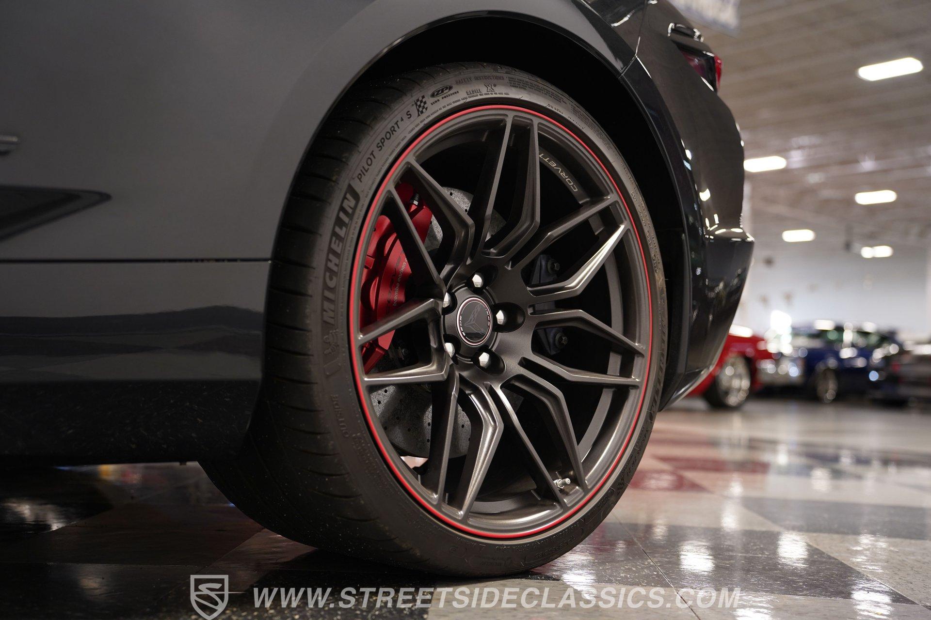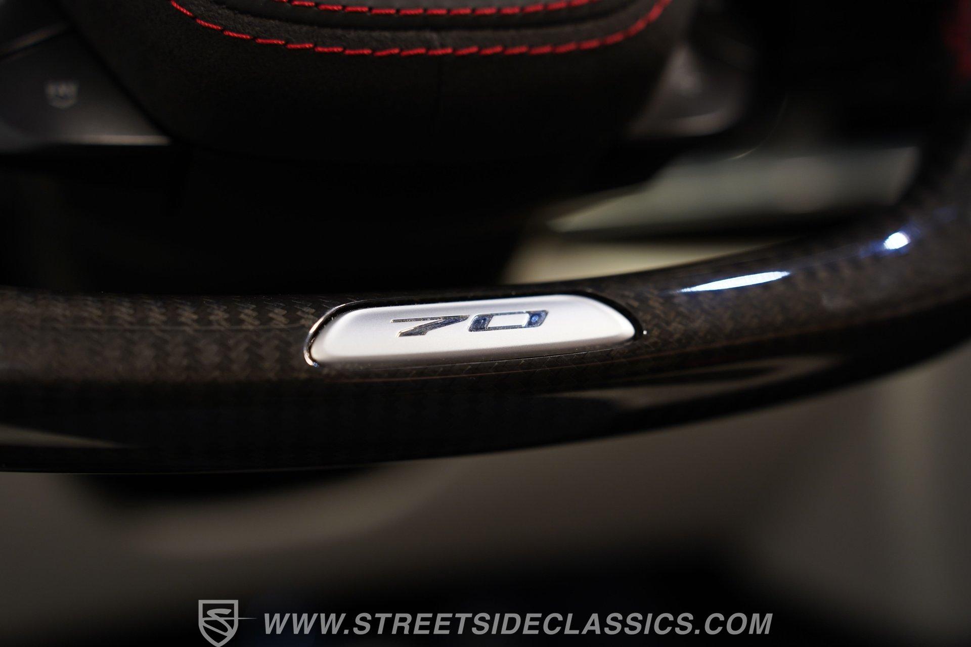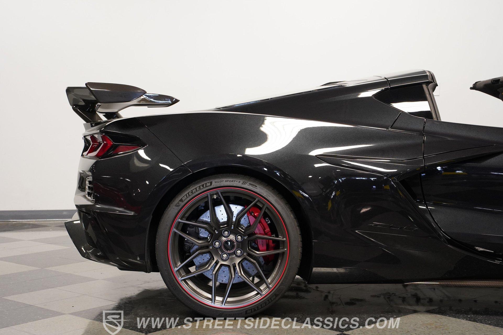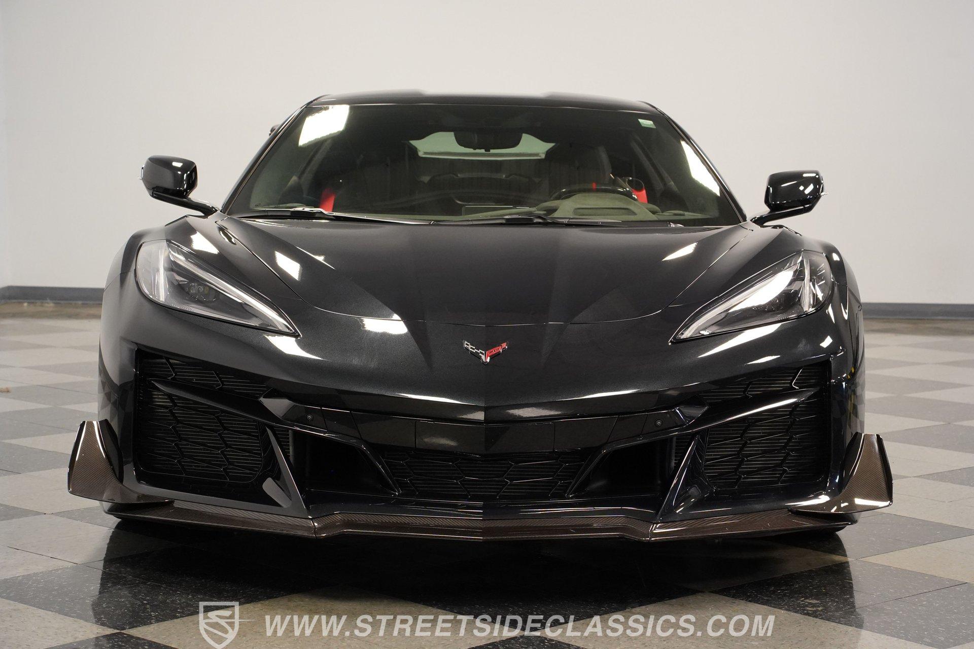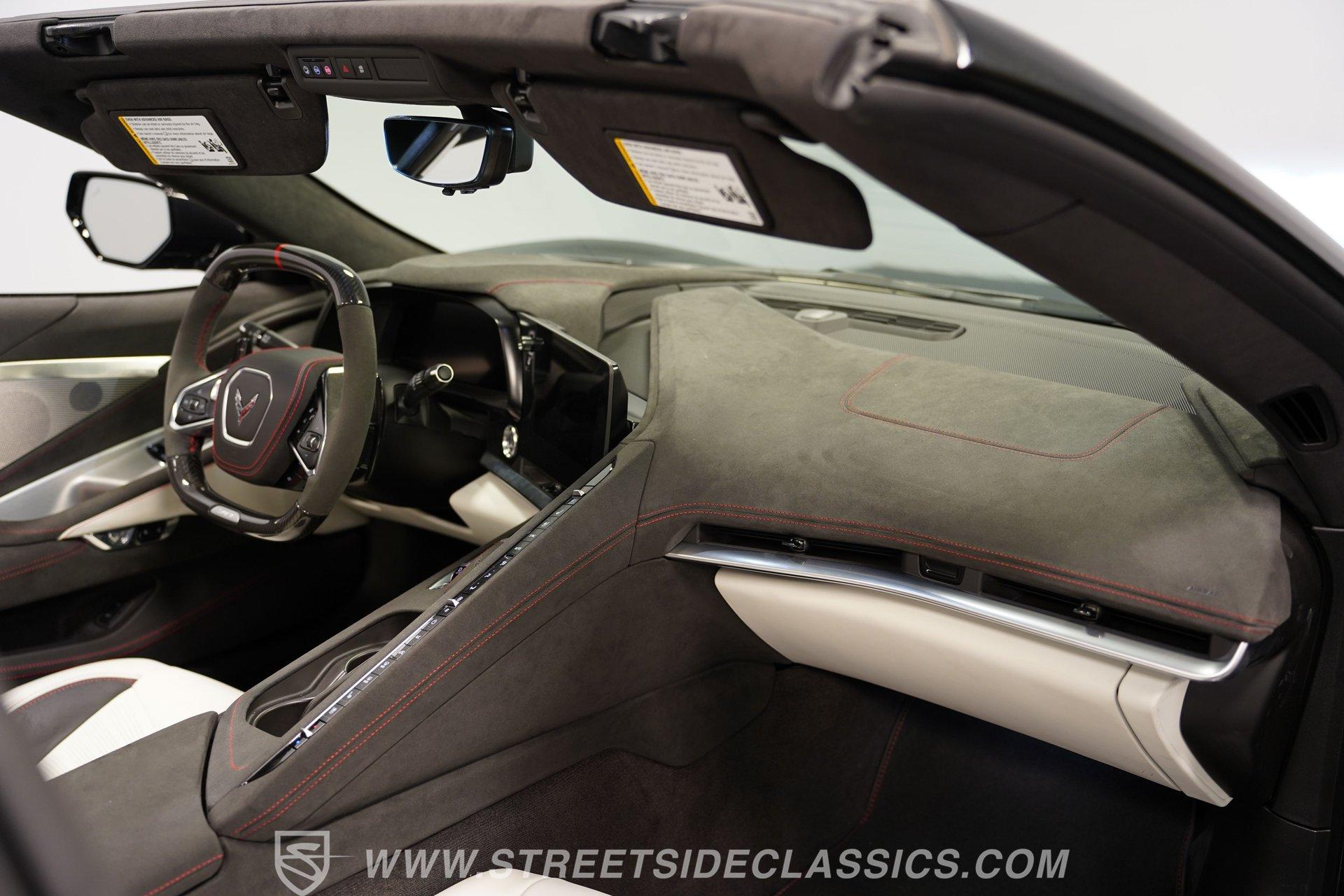 In the world of Corvettes, firsts will always command significant attention and adulation from enthusiasts and collectors. This spectacular 2023 Chevrolet Corvette Z06 70th Anniversary Z07 is not only the first track-focused C8 in the long and storied lineage of Chevy's flagship model, but also comes with the extreme Z07 performance package to make an already-capable Z06 even more race-ready. Add to that the fact that this car is also a commemorative edition celebrating 7 decades of the Corvette, and you have a world-beating supercar that is also super collectible. With only 3,212 actual miles, this ride is decked out in its original Carbon Flash Metallic paint, one of only 172 Anniversary cars finished in this color. With its removable targa top, this domestic exotic is guaranteed to turn heads wherever it goes. Inside, we find a stellar Ceramic White leather cockpit-style interior. Beginning with just the seats, the top-tier 3LZ GT2 heated and ventilated buckets with lumbar and bolster adjustments. In addition, this Z06 comes with keyless open/start, dual-zone climate control, memory packages for both driver and passenger, a heads-up display, a rear camera mirror, and HD front and rear cameras. A 12-inch color Driver Infotainment Center includes a Bose 14-speaker stereo, Apple CarPlay/Android Auto, and wireless charging. A full suite of safety features includes Rear Cross-Traffic Alert, Blind-Side Zone Alert, Forward Collision Alert, Pedestrian/Bicyclist Braking, and Automatic Emergency Braking. As you might imagine, power for this supercar is nothing short of outrageous. Out back, we find an incredible naturally aspirated 5.5-liter DOHC V-8 engine. Thanks to a first-ever flat-plane-crank, along with a six-stage dry-sump lubrication system, titanium intake valves, and sodium-filled exhaust valves, cast aluminum block and heads, direct-injection, and a 12.5:1 compression ratio, this hand-built V-8 pumps out an impressive 670-horsepower at 8,600 rpm and 460 pound-feet of torque at 6,300 rpm. It is also noteworthy to mention that the spine-tingling 8,600 rpm redline is the highest in the Corvette's 70-year history. That power for the V-8 is routed through a trick 8-speed dual-clutch automatic transaxle before being funneled to the rear wheels. HIGHLIGHTS: First Year Z06 C8 70th Anniversary Package High Performance Z07 Package Carbon Flash Metallic 3LZ Package 3212 Actual Miles Targa Top Front Lift Adjustable Height Memory 5.5 Liter DOHC V8 Flat Plane Crank 8600 RPM Redline 8 Speed Paddle Shift Auto Brembo Brakes Carbon Ceramic Rotors Ceramic White Leather Red Stitching Power Everything Touchscreen Infotainment Apple CarPlay/Android Auto Wireless Charging Heated and Vented Seats Performance Data Recorder Owner's Manual This 2023 Chevrolet Corvette Z06 70th Anniversary Z07 rides on a factory-style suspension that ratchets up the base Z06's setup to an even more race-tuned version. With a double-wishbone suspension that features Magnetic Selective Ride Control 4.0, which delivers adjustable damping to provide the perfect mix of comfort and sport. Four-wheel power disc brakes featuring big Brembo carbon-ceramic rotors and 6-piston front and 4-piston rear calipers stand ready to rein in speed with unbelievable stopping power. Along with all of its sporty features, this highly collectible Z06/Z07 comes with its factory build sheet and owner's manual. If you have been looking for a car that is as collectible as it is powerful, then this racecar for the street is the one. But don't wait, because this one won't last long so call today!