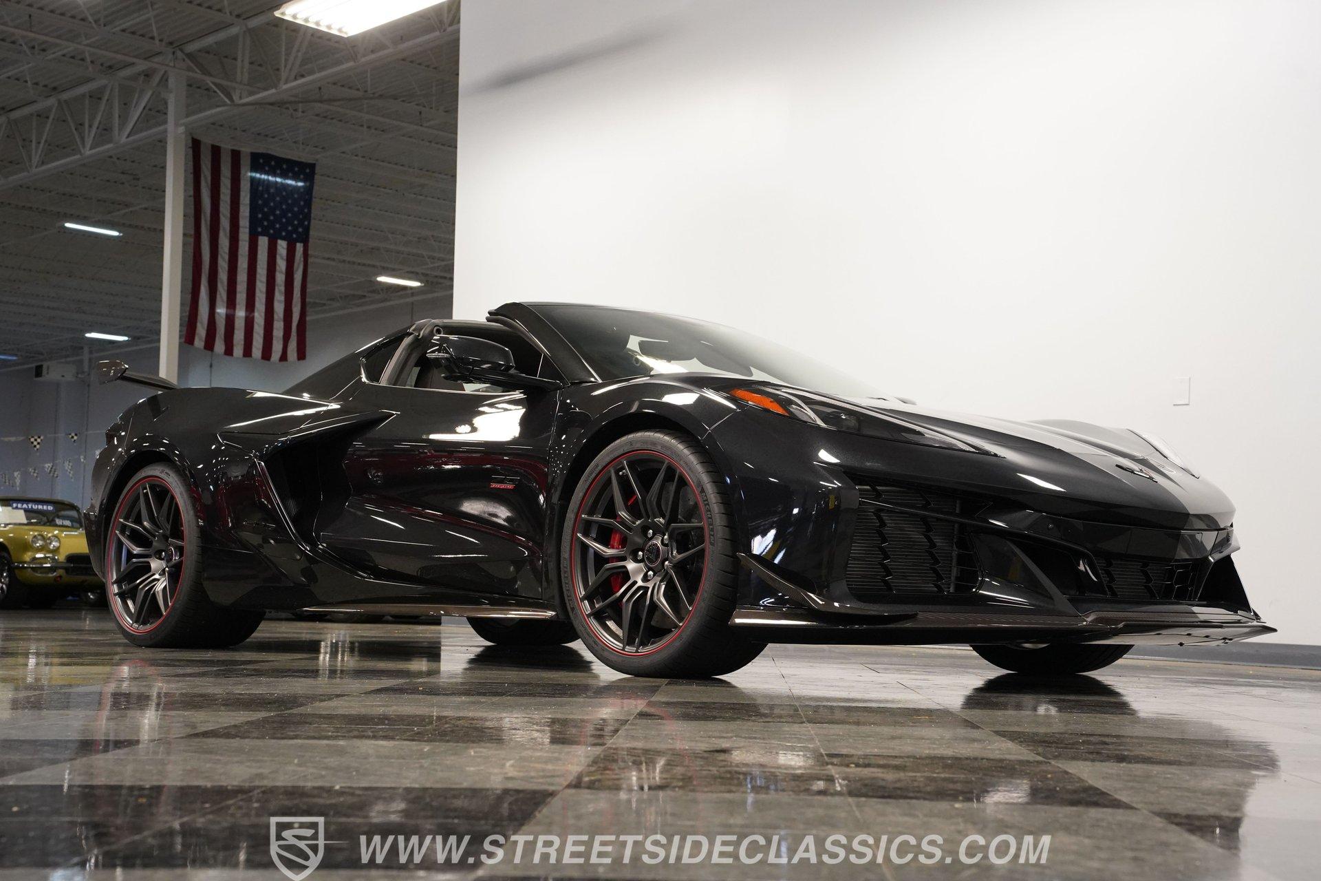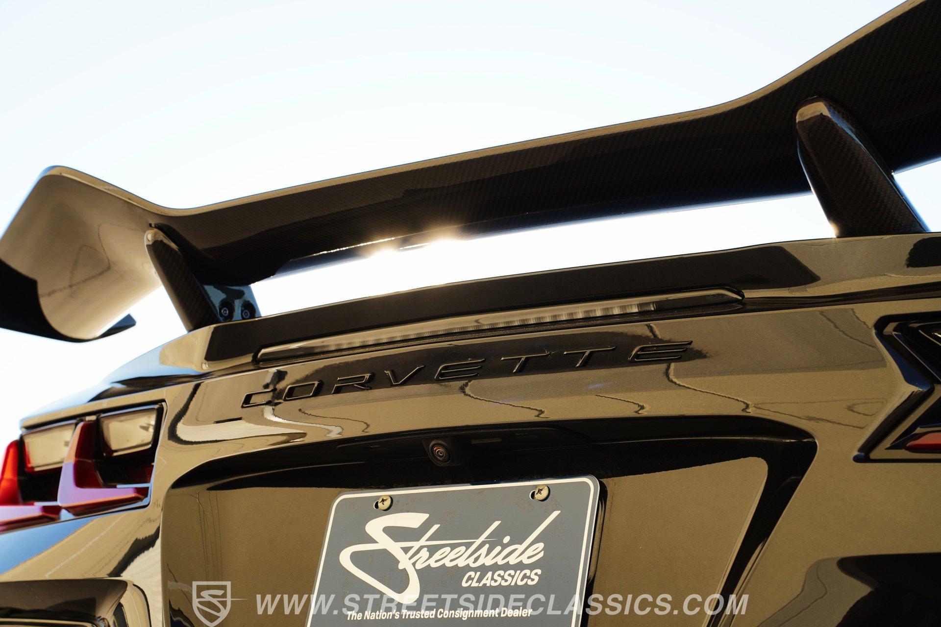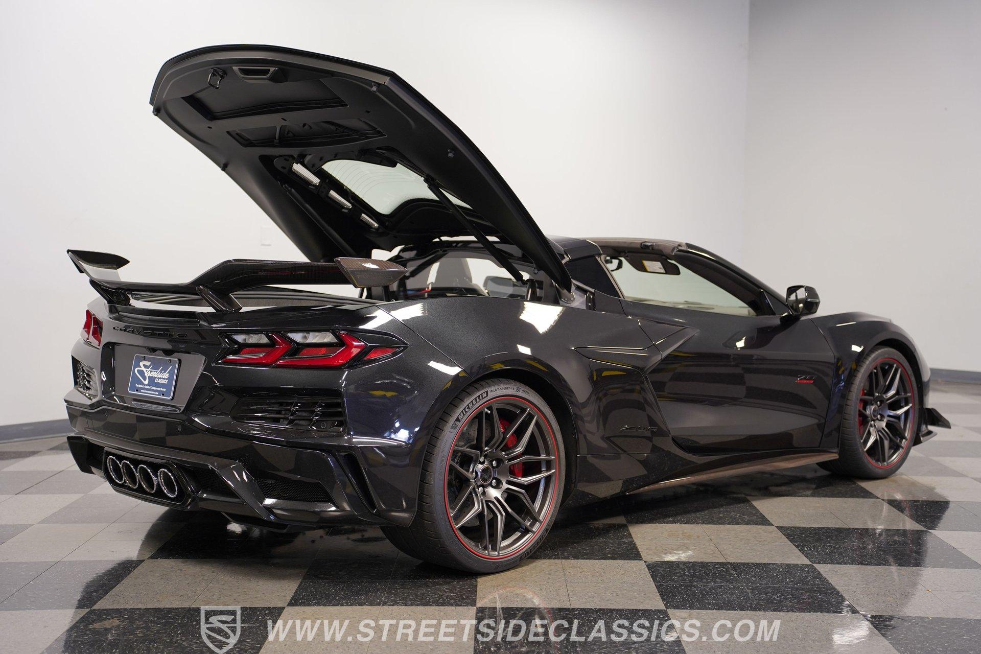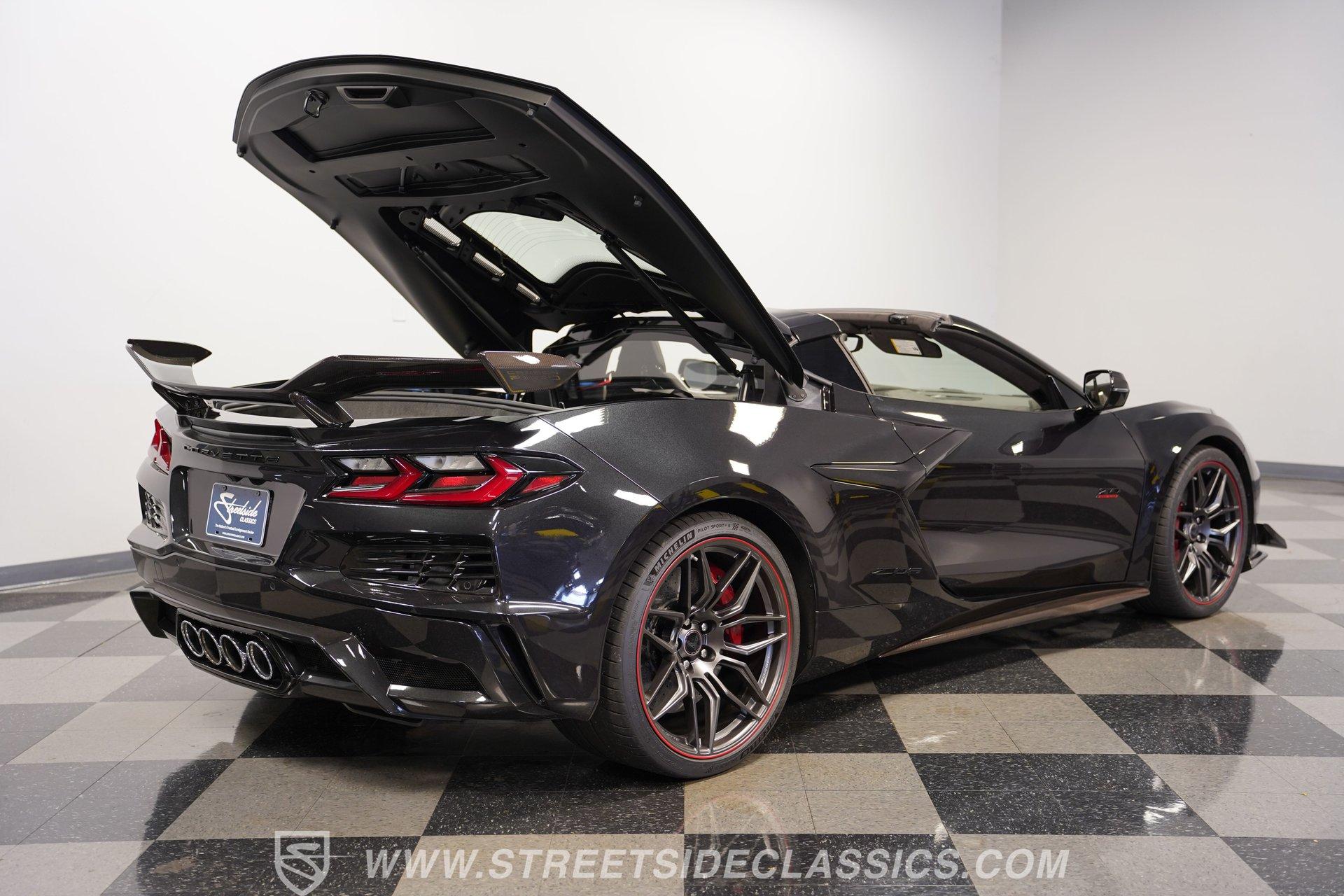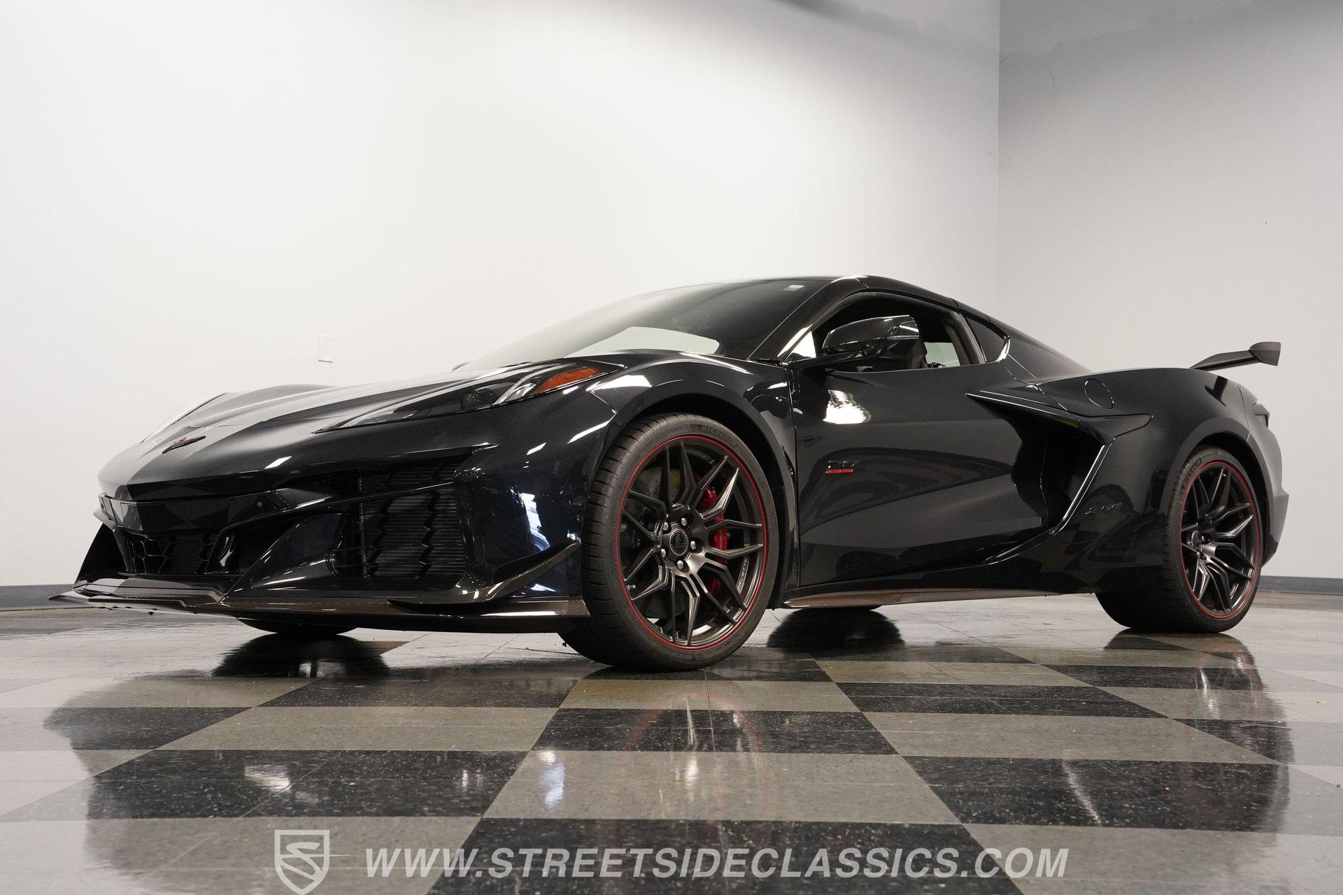 In the world of Corvettes, firsts will always command significant attention and adulation from enthusiasts and collectors. This spectacular 2023 Chevrolet Corvette Z06 70th Anniversary Z07 is not only the first track-focused C8 in the long and storied lineage of Chevy's flagship model, but also comes with the extreme Z07 performance package to make an already-capable Z06 even more race-ready. Add to that the fact that this car is also a commemorative edition celebrating 7 decades of the Corvette, and you have a world-beating supercar that is also super collectible. With only 3,212 actual miles, this ride is decked out in its original Carbon Flash Metallic paint, one of only 172 Anniversary cars finished in this color. With its removable targa top, this domestic exotic is guaranteed to turn heads wherever it goes. Inside, we find a stellar Ceramic White leather cockpit-style interior. Beginning with just the seats, the top-tier 3LZ GT2 heated and ventilated buckets with lumbar and bolster adjustments. In addition, this Z06 comes with keyless open/start, dual-zone climate control, memory packages for both driver and passenger, a heads-up display, a rear camera mirror, and HD front and rear cameras. A 12-inch color Driver Infotainment Center includes a Bose 14-speaker stereo, Apple CarPlay/Android Auto, and wireless charging. A full suite of safety features includes Rear Cross-Traffic Alert, Blind-Side Zone Alert, Forward Collision Alert, Pedestrian/Bicyclist Braking, and Automatic Emergency Braking. As you might imagine, power for this supercar is nothing short of outrageous. Out back, we find an incredible naturally aspirated 5.5-liter DOHC V-8 engine. Thanks to a first-ever flat-plane-crank, along with a six-stage dry-sump lubrication system, titanium intake valves, and sodium-filled exhaust valves, cast aluminum block and heads, direct-injection, and a 12.5:1 compression ratio, this hand-built V-8 pumps out an impressive 670-horsepower at 8,600 rpm and 460 pound-feet of torque at 6,300 rpm. It is also noteworthy to mention that the spine-tingling 8,600 rpm redline is the highest in the Corvette's 70-year history. That power for the V-8 is routed through a trick 8-speed dual-clutch automatic transaxle before being funneled to the rear wheels. HIGHLIGHTS: First Year Z06 C8 70th Anniversary Package High Performance Z07 Package Carbon Flash Metallic 3LZ Package 3212 Actual Miles Targa Top Front Lift Adjustable Height Memory 5.5 Liter DOHC V8 Flat Plane Crank 8600 RPM Redline 8 Speed Paddle Shift Auto Brembo Brakes Carbon Ceramic Rotors Ceramic White Leather Red Stitching Power Everything Touchscreen Infotainment Apple CarPlay/Android Auto Wireless Charging Heated and Vented Seats Performance Data Recorder Owner's Manual This 2023 Chevrolet Corvette Z06 70th Anniversary Z07 rides on a factory-style suspension that ratchets up the base Z06's setup to an even more race-tuned version. With a double-wishbone suspension that features Magnetic Selective Ride Control 4.0, which delivers adjustable damping to provide the perfect mix of comfort and sport. Four-wheel power disc brakes featuring big Brembo carbon-ceramic rotors and 6-piston front and 4-piston rear calipers stand ready to rein in speed with unbelievable stopping power. Along with all of its sporty features, this highly collectible Z06/Z07 comes with its factory build sheet and owner's manual. If you have been looking for a car that is as collectible as it is powerful, then this racecar for the street is the one. But don't wait, because this one won't last long so call today!