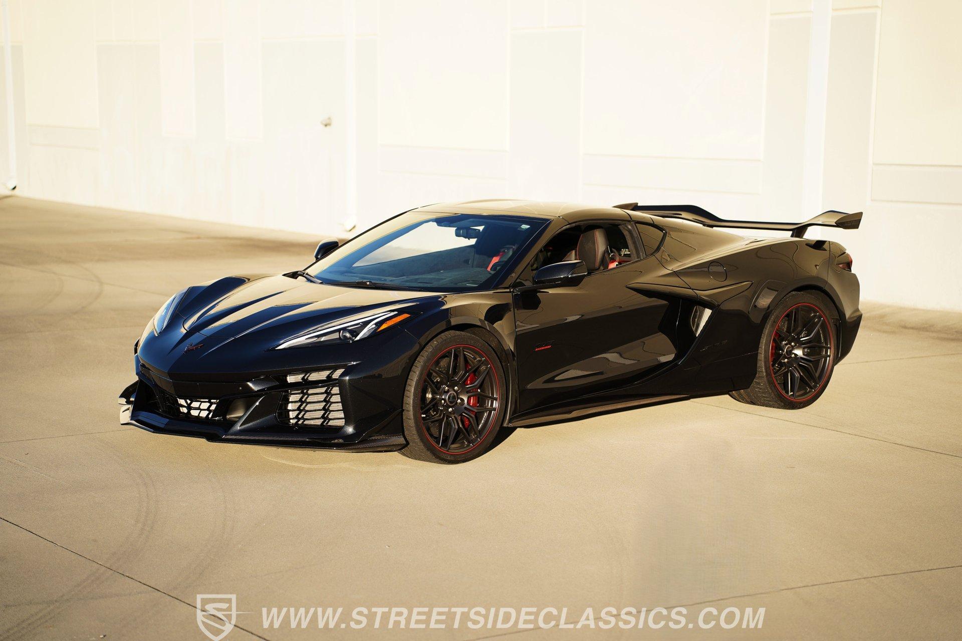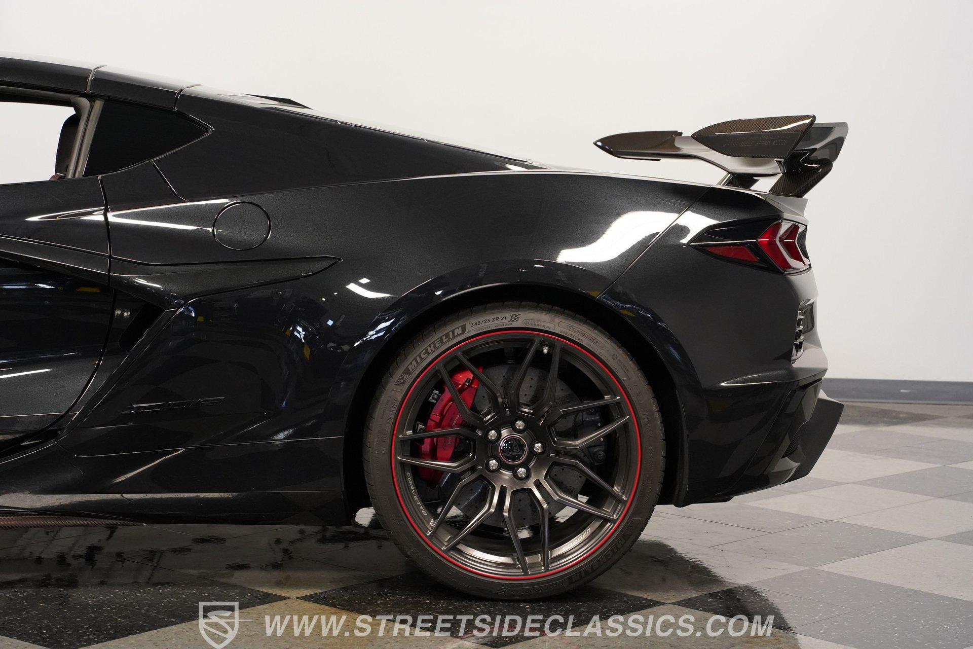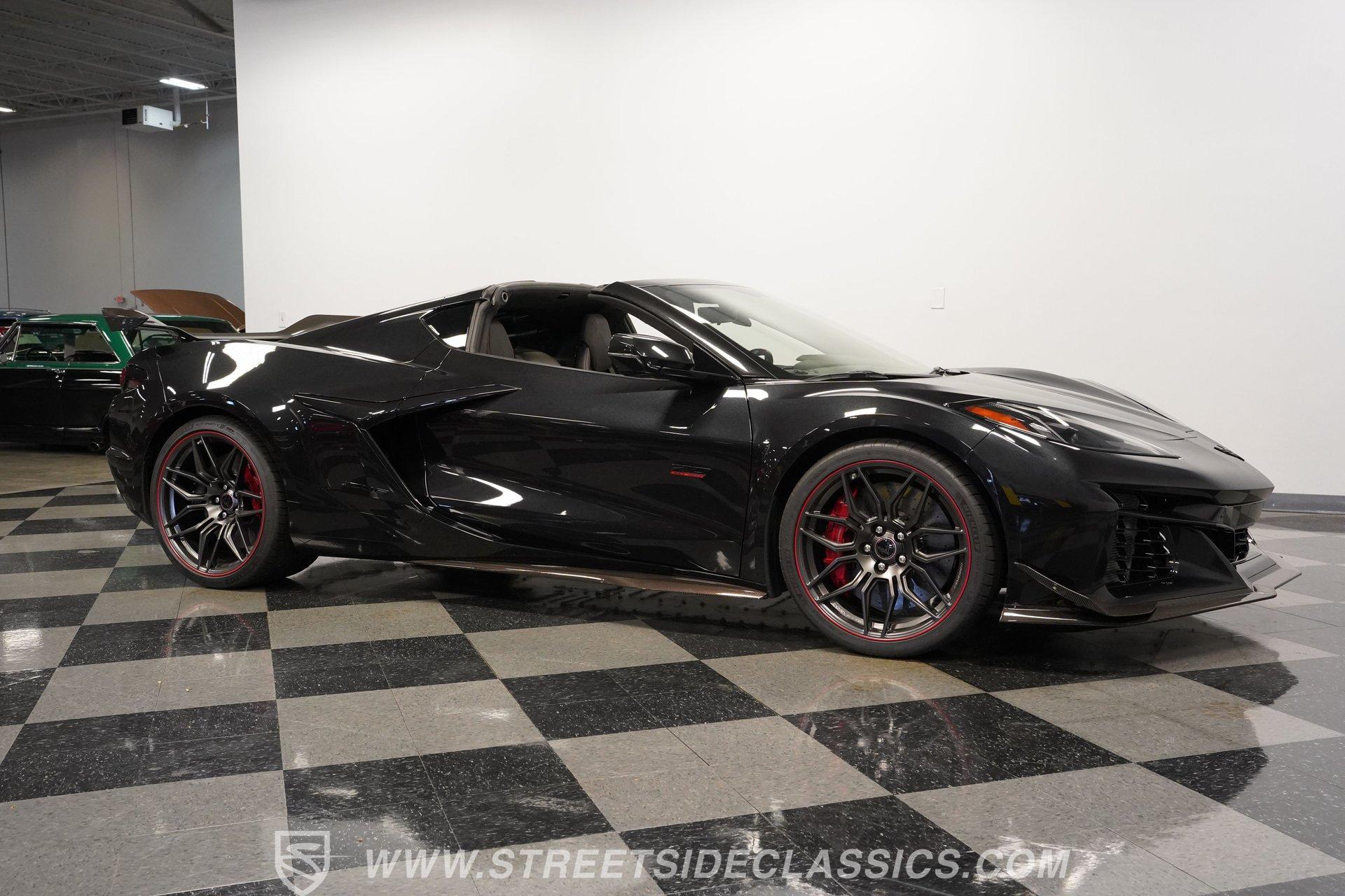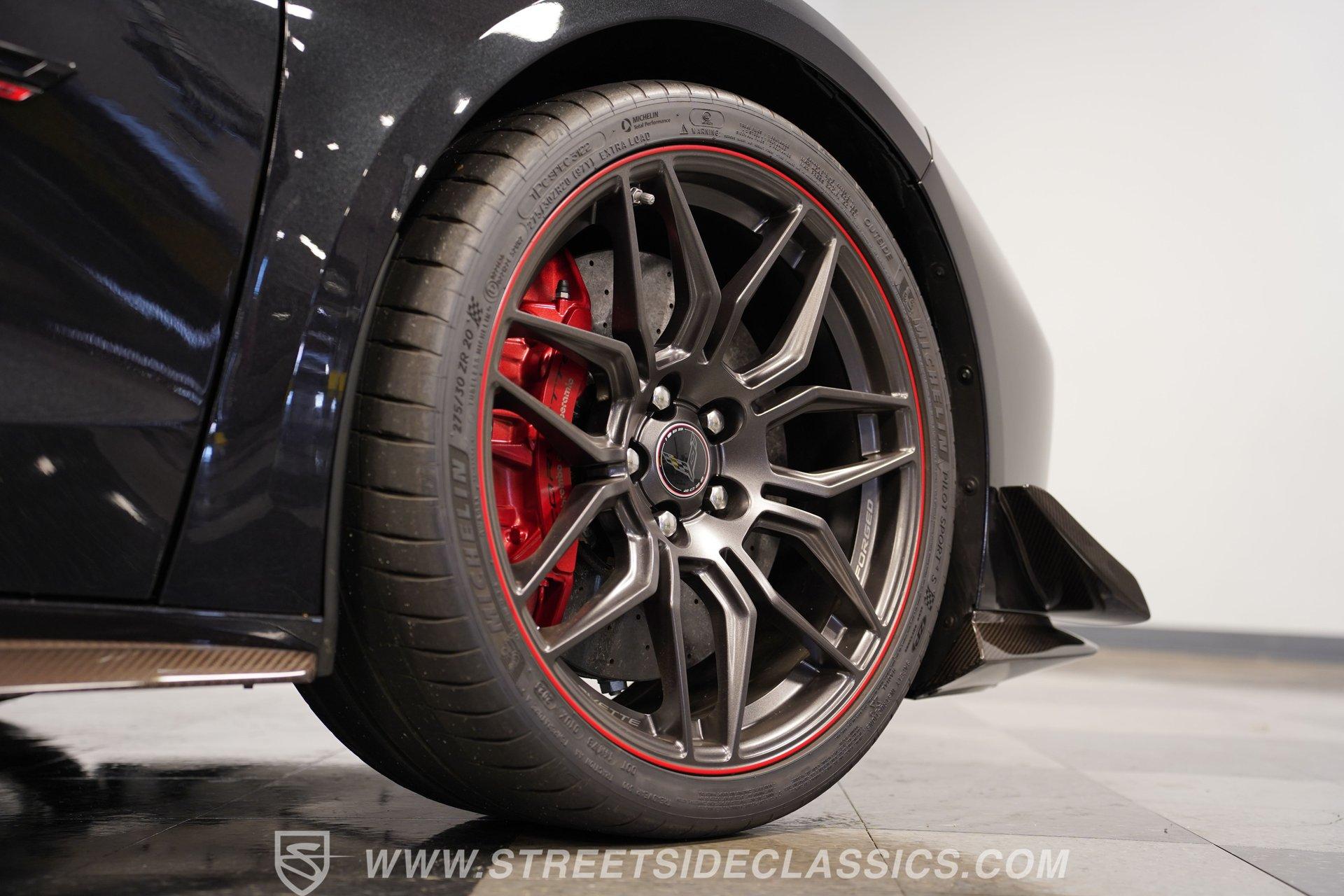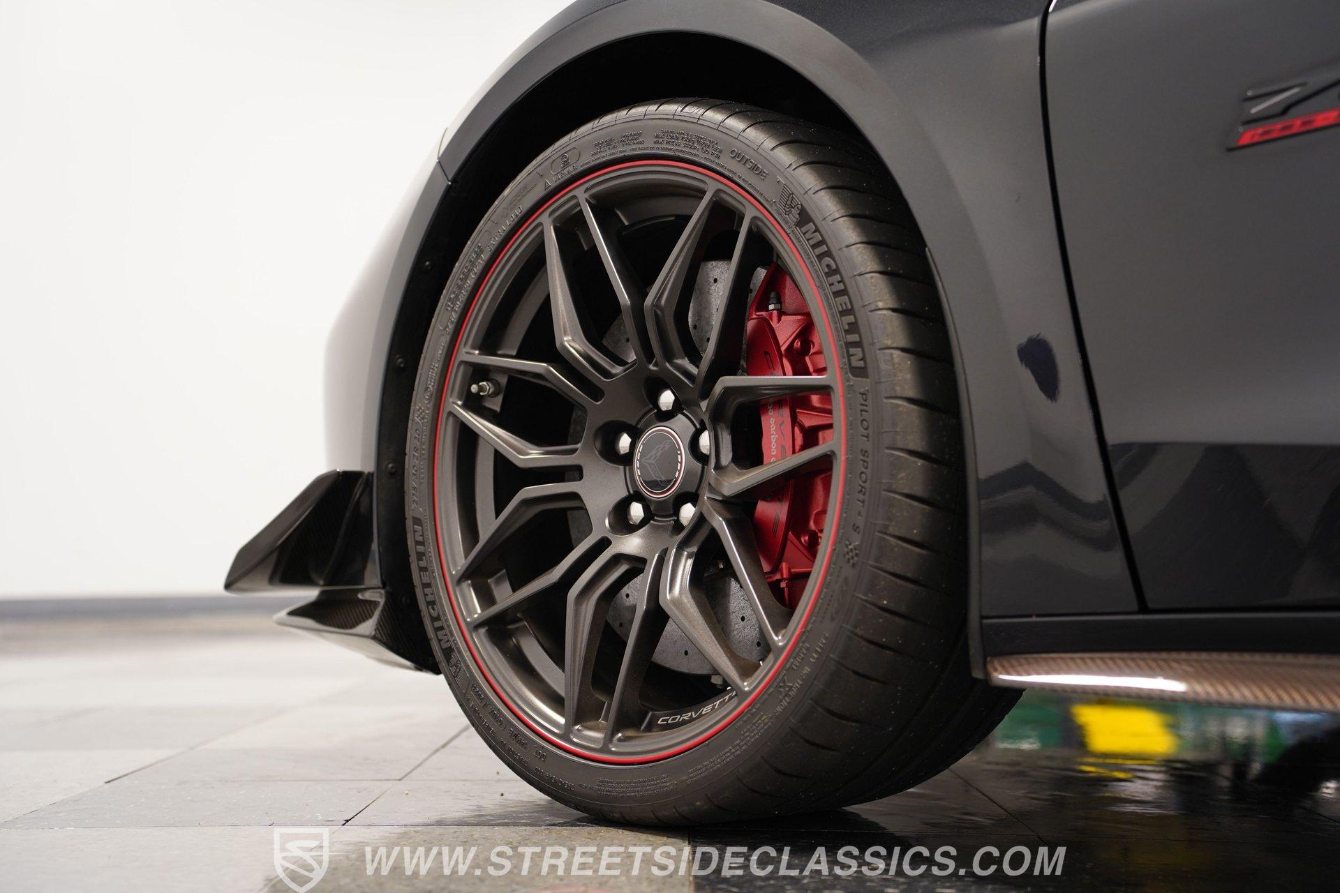 In the world of Corvettes, firsts will always command significant attention and adulation from enthusiasts and collectors. This spectacular 2023 Chevrolet Corvette Z06 70th Anniversary Z07 is not only the first track-focused C8 in the long and storied lineage of Chevy's flagship model, but also comes with the extreme Z07 performance package to make an already-capable Z06 even more race-ready. Add to that the fact that this car is also a commemorative edition celebrating 7 decades of the Corvette, and you have a world-beating supercar that is also super collectible. With only 3,212 actual miles, this ride is decked out in its original Carbon Flash Metallic paint, one of only 172 Anniversary cars finished in this color. With its removable targa top, this domestic exotic is guaranteed to turn heads wherever it goes. Inside, we find a stellar Ceramic White leather cockpit-style interior. Beginning with just the seats, the top-tier 3LZ GT2 heated and ventilated buckets with lumbar and bolster adjustments. In addition, this Z06 comes with keyless open/start, dual-zone climate control, memory packages for both driver and passenger, a heads-up display, a rear camera mirror, and HD front and rear cameras. A 12-inch color Driver Infotainment Center includes a Bose 14-speaker stereo, Apple CarPlay/Android Auto, and wireless charging. A full suite of safety features includes Rear Cross-Traffic Alert, Blind-Side Zone Alert, Forward Collision Alert, Pedestrian/Bicyclist Braking, and Automatic Emergency Braking. As you might imagine, power for this supercar is nothing short of outrageous. Out back, we find an incredible naturally aspirated 5.5-liter DOHC V-8 engine. Thanks to a first-ever flat-plane-crank, along with a six-stage dry-sump lubrication system, titanium intake valves, and sodium-filled exhaust valves, cast aluminum block and heads, direct-injection, and a 12.5:1 compression ratio, this hand-built V-8 pumps out an impressive 670-horsepower at 8,600 rpm and 460 pound-feet of torque at 6,300 rpm. It is also noteworthy to mention that the spine-tingling 8,600 rpm redline is the highest in the Corvette's 70-year history. That power for the V-8 is routed through a trick 8-speed dual-clutch automatic transaxle before being funneled to the rear wheels. HIGHLIGHTS: First Year Z06 C8 70th Anniversary Package High Performance Z07 Package Carbon Flash Metallic 3LZ Package 3212 Actual Miles Targa Top Front Lift Adjustable Height Memory 5.5 Liter DOHC V8 Flat Plane Crank 8600 RPM Redline 8 Speed Paddle Shift Auto Brembo Brakes Carbon Ceramic Rotors Ceramic White Leather Red Stitching Power Everything Touchscreen Infotainment Apple CarPlay/Android Auto Wireless Charging Heated and Vented Seats Performance Data Recorder Owner's Manual This 2023 Chevrolet Corvette Z06 70th Anniversary Z07 rides on a factory-style suspension that ratchets up the base Z06's setup to an even more race-tuned version. With a double-wishbone suspension that features Magnetic Selective Ride Control 4.0, which delivers adjustable damping to provide the perfect mix of comfort and sport. Four-wheel power disc brakes featuring big Brembo carbon-ceramic rotors and 6-piston front and 4-piston rear calipers stand ready to rein in speed with unbelievable stopping power. Along with all of its sporty features, this highly collectible Z06/Z07 comes with its factory build sheet and owner's manual. If you have been looking for a car that is as collectible as it is powerful, then this racecar for the street is the one. But don't wait, because this one won't last long so call today!