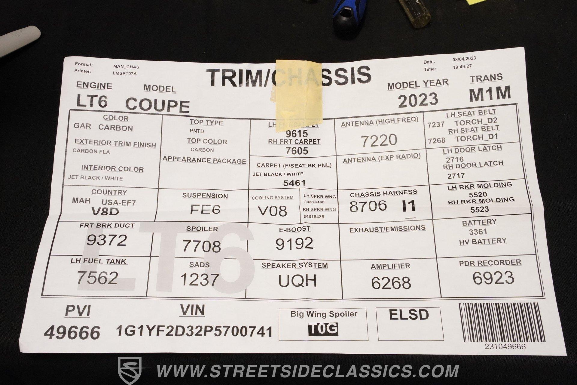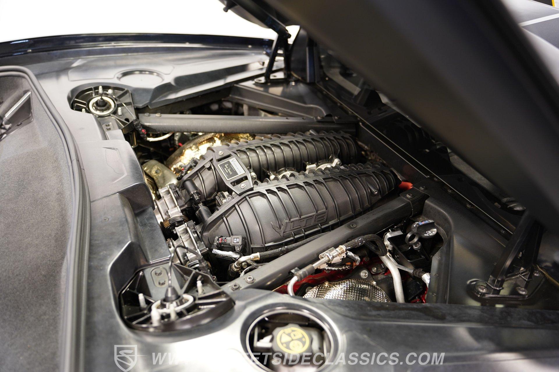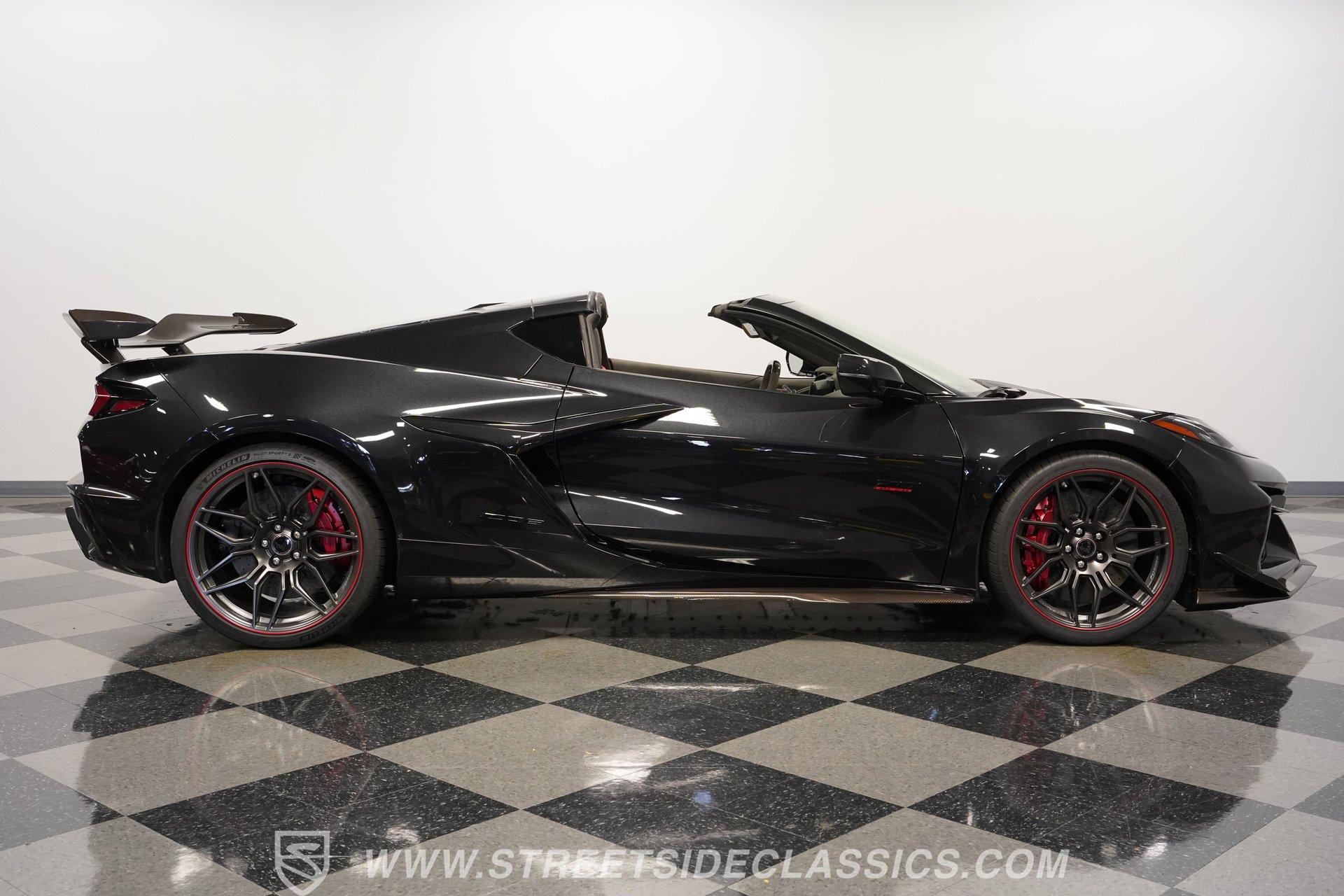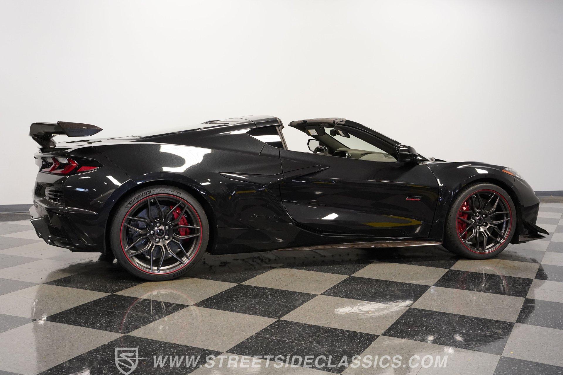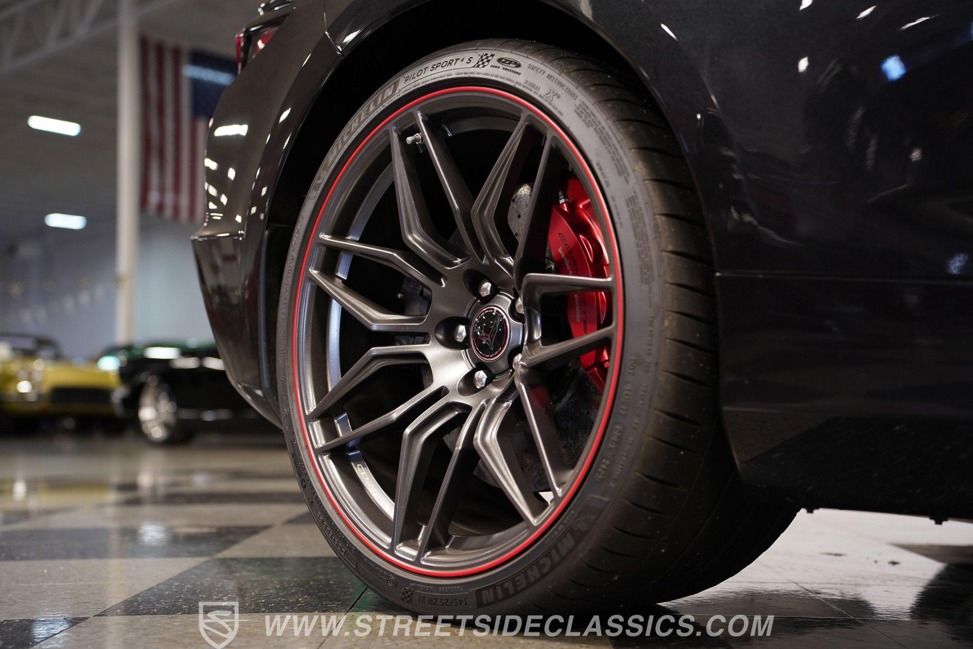 In the world of Corvettes, firsts will always command significant attention and adulation from enthusiasts and collectors. This spectacular 2023 Chevrolet Corvette Z06 70th Anniversary Z07 is not only the first track-focused C8 in the long and storied lineage of Chevy's flagship model, but also comes with the extreme Z07 performance package to make an already-capable Z06 even more race-ready. Add to that the fact that this car is also a commemorative edition celebrating 7 decades of the Corvette, and you have a world-beating supercar that is also super collectible. With only 3,212 actual miles, this ride is decked out in its original Carbon Flash Metallic paint, one of only 172 Anniversary cars finished in this color. With its removable targa top, this domestic exotic is guaranteed to turn heads wherever it goes. Inside, we find a stellar Ceramic White leather cockpit-style interior. Beginning with just the seats, the top-tier 3LZ GT2 heated and ventilated buckets with lumbar and bolster adjustments. In addition, this Z06 comes with keyless open/start, dual-zone climate control, memory packages for both driver and passenger, a heads-up display, a rear camera mirror, and HD front and rear cameras. A 12-inch color Driver Infotainment Center includes a Bose 14-speaker stereo, Apple CarPlay/Android Auto, and wireless charging. A full suite of safety features includes Rear Cross-Traffic Alert, Blind-Side Zone Alert, Forward Collision Alert, Pedestrian/Bicyclist Braking, and Automatic Emergency Braking. As you might imagine, power for this supercar is nothing short of outrageous. Out back, we find an incredible naturally aspirated 5.5-liter DOHC V-8 engine. Thanks to a first-ever flat-plane-crank, along with a six-stage dry-sump lubrication system, titanium intake valves, and sodium-filled exhaust valves, cast aluminum block and heads, direct-injection, and a 12.5:1 compression ratio, this hand-built V-8 pumps out an impressive 670-horsepower at 8,600 rpm and 460 pound-feet of torque at 6,300 rpm. It is also noteworthy to mention that the spine-tingling 8,600 rpm redline is the highest in the Corvette's 70-year history. That power for the V-8 is routed through a trick 8-speed dual-clutch automatic transaxle before being funneled to the rear wheels. HIGHLIGHTS: First Year Z06 C8 70th Anniversary Package High Performance Z07 Package Carbon Flash Metallic 3LZ Package 3212 Actual Miles Targa Top Front Lift Adjustable Height Memory 5.5 Liter DOHC V8 Flat Plane Crank 8600 RPM Redline 8 Speed Paddle Shift Auto Brembo Brakes Carbon Ceramic Rotors Ceramic White Leather Red Stitching Power Everything Touchscreen Infotainment Apple CarPlay/Android Auto Wireless Charging Heated and Vented Seats Performance Data Recorder Owner's Manual This 2023 Chevrolet Corvette Z06 70th Anniversary Z07 rides on a factory-style suspension that ratchets up the base Z06's setup to an even more race-tuned version. With a double-wishbone suspension that features Magnetic Selective Ride Control 4.0, which delivers adjustable damping to provide the perfect mix of comfort and sport. Four-wheel power disc brakes featuring big Brembo carbon-ceramic rotors and 6-piston front and 4-piston rear calipers stand ready to rein in speed with unbelievable stopping power. Along with all of its sporty features, this highly collectible Z06/Z07 comes with its factory build sheet and owner's manual. If you have been looking for a car that is as collectible as it is powerful, then this racecar for the street is the one. But don't wait, because this one won't last long so call today!