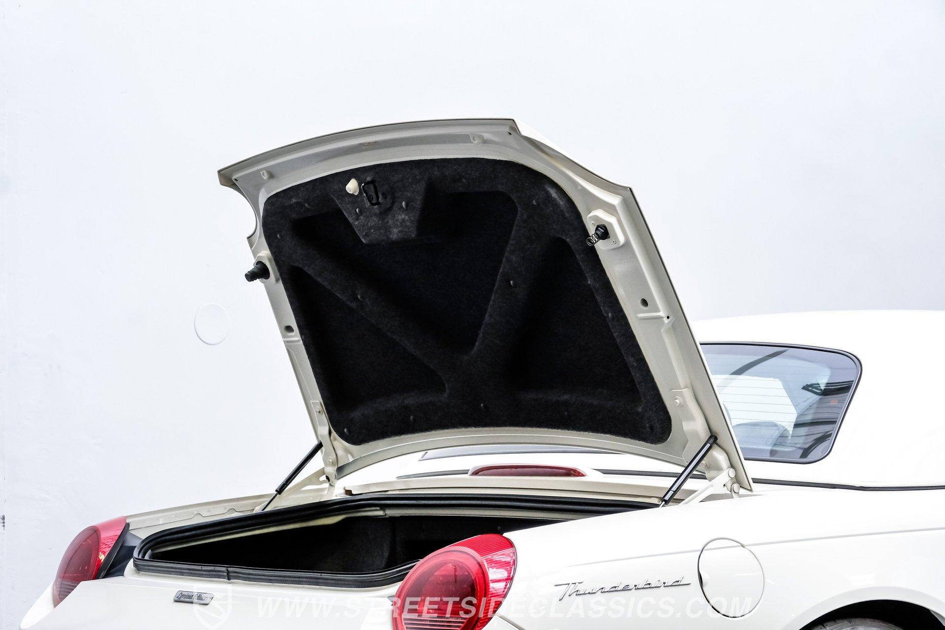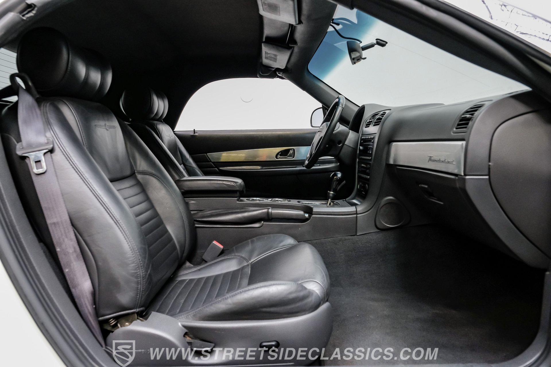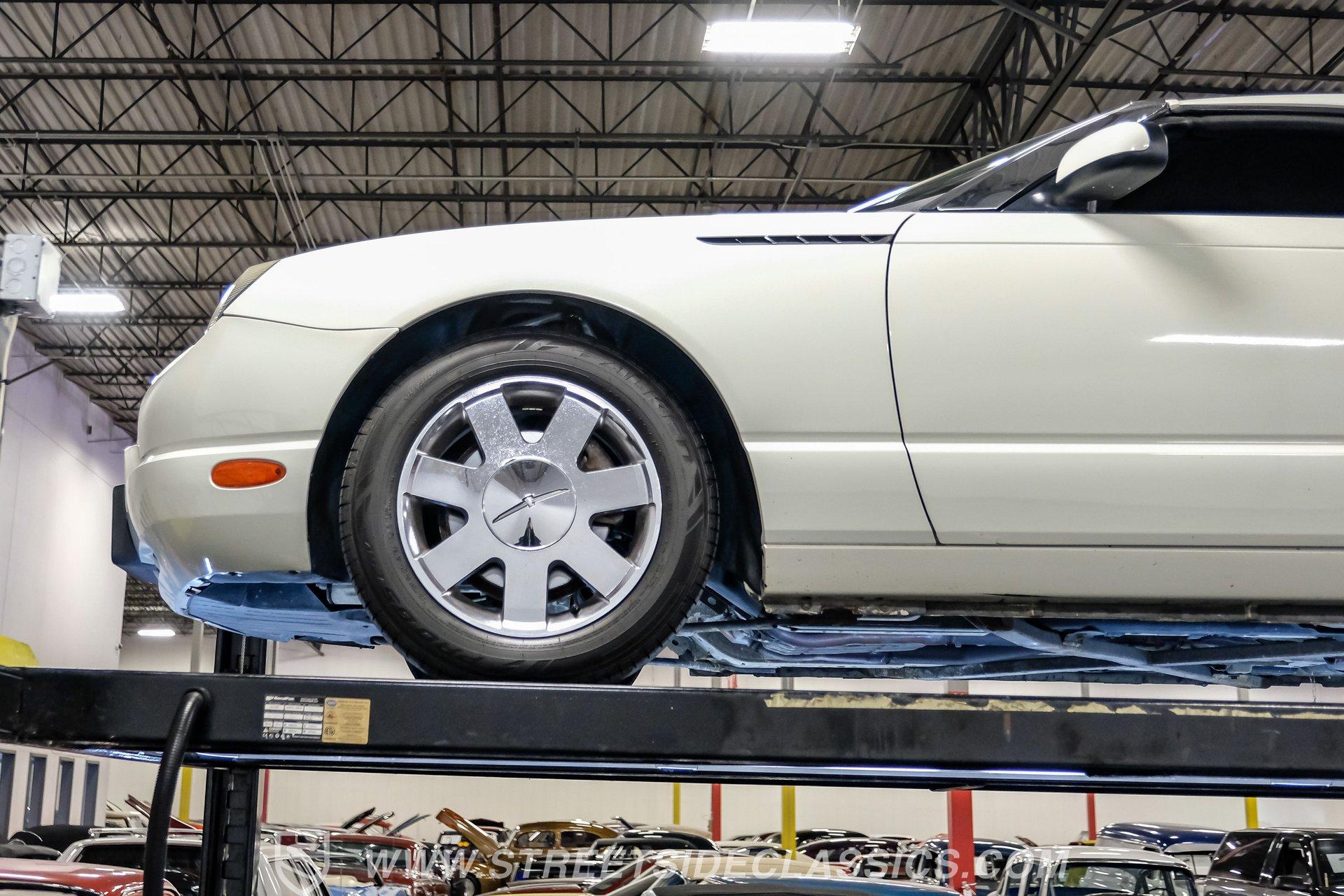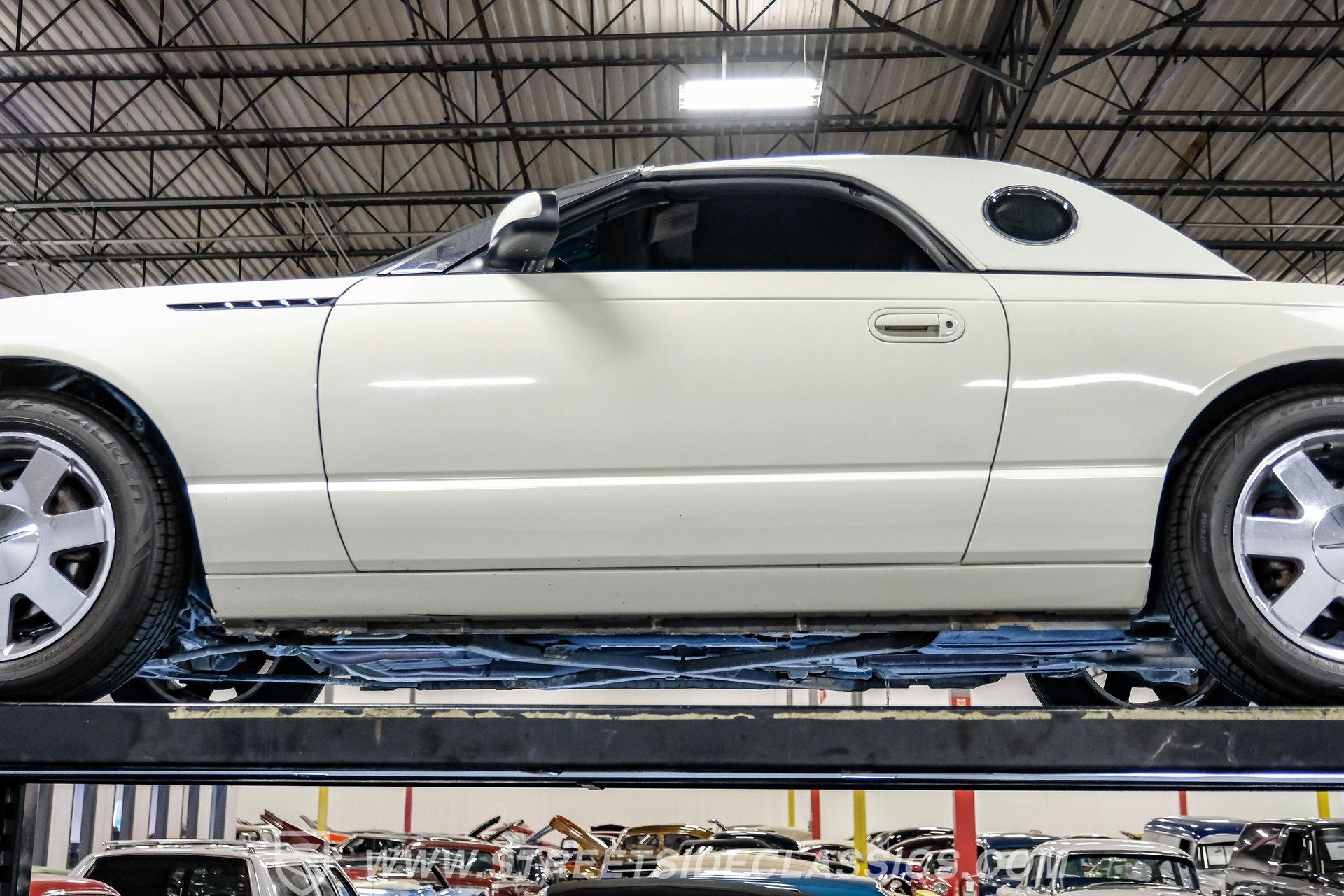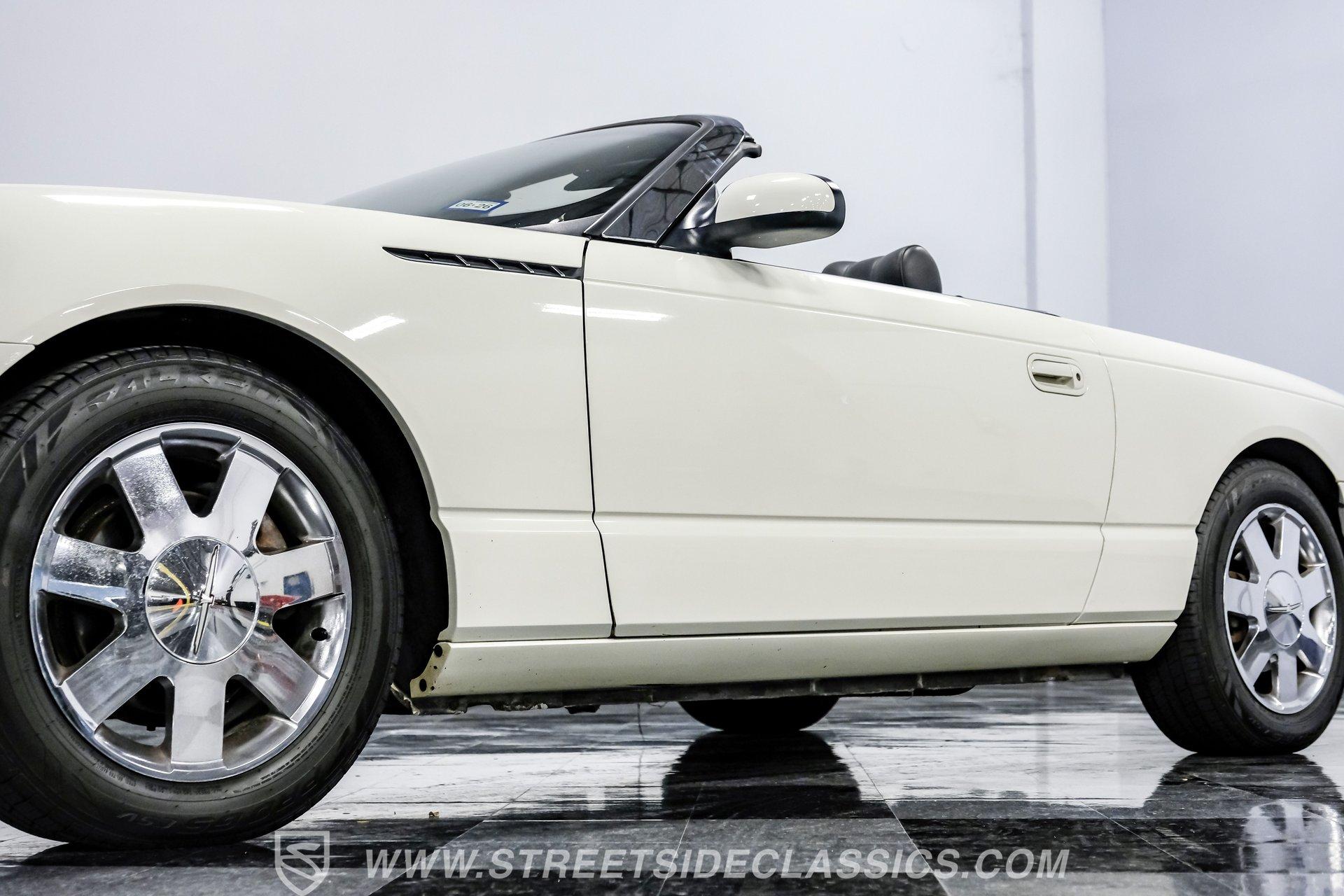 Cool style, luxurious features and proper V8 power are all what make this 2002 Ford Thunderbird awesome. The retro-cool look of this final generation Thunderbird has a timeless sense of style. Ford really took the time to integrate the best elements of the first-generation Thunderbird into this design. It can be seen in the long profile, hood scoop, subtle fender vents and afterburner-style tail lights. There are even great mirror-like brightwork elements, like the grille and the optional chrome seven-spoke factory alloy wheels. This generation Thunderbird, finished in Whisper White with a Midnight Black interior, features automatic A/C climate control and heated seats, allowing you to drive comfortably with the top down nearly all year round. This car was created to be a terrific cruiser loaded with power windows, power locks, keyless entry/alarm, dual front airbags, a premium AM/FM/6-CD changer stereo and cruise control. The leather seats feel comfy and have a well-respected style with the kind of use that goes with pride of ownership. The power driver's seat gets you in the right position to really see nice details such as the steering wheel's classic turquoise streak in the Thunderbird logo that is coordinated with the needles on the gauges. While the looks of the car are meant to be retro-cool, the engine bay is a pure modern motor. It is a fuel-injected DOHC 3.9-liter V8 that fires up readily, idles smoothly and delivers plenty of power when you want it, making it the ideal smooth cruiser from day one. You will love using this Thunderbird to drive near or far with its smooth five-speed automatic transmission, power steering, four-wheel disc brakes and fully-independent suspension. HIGHLIGHTS: First Year of the Last Generation of Thunderbirds Fuel-Injected DOHC 3.9-Liter V8 Automatic Transmission Factory Stereo with 6-CD Changer Air Conditioning Heated Seats Removable Hardtop Black Folding Soft Top Owner' Manual Power Windows Power Driver Seat Power Locks Factory Chrome 7-Spoke Wheels This may look like a vintage car, but this 2002 Ford Thunderbird certainly has modern moves. Call today!