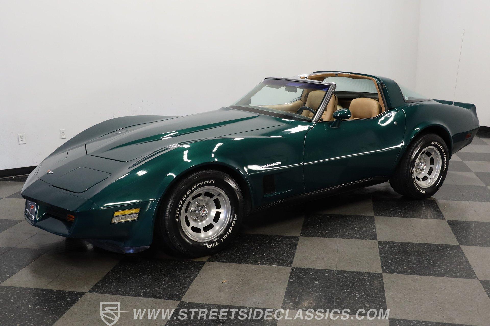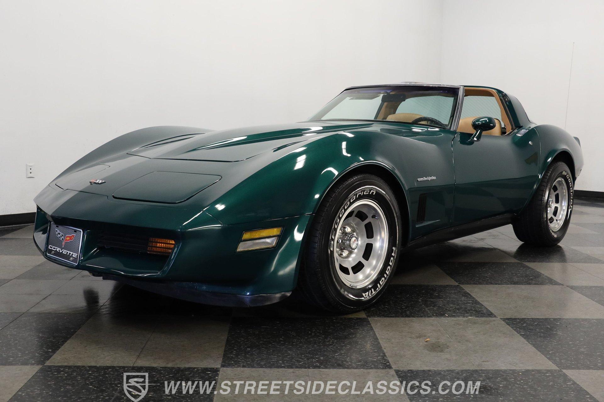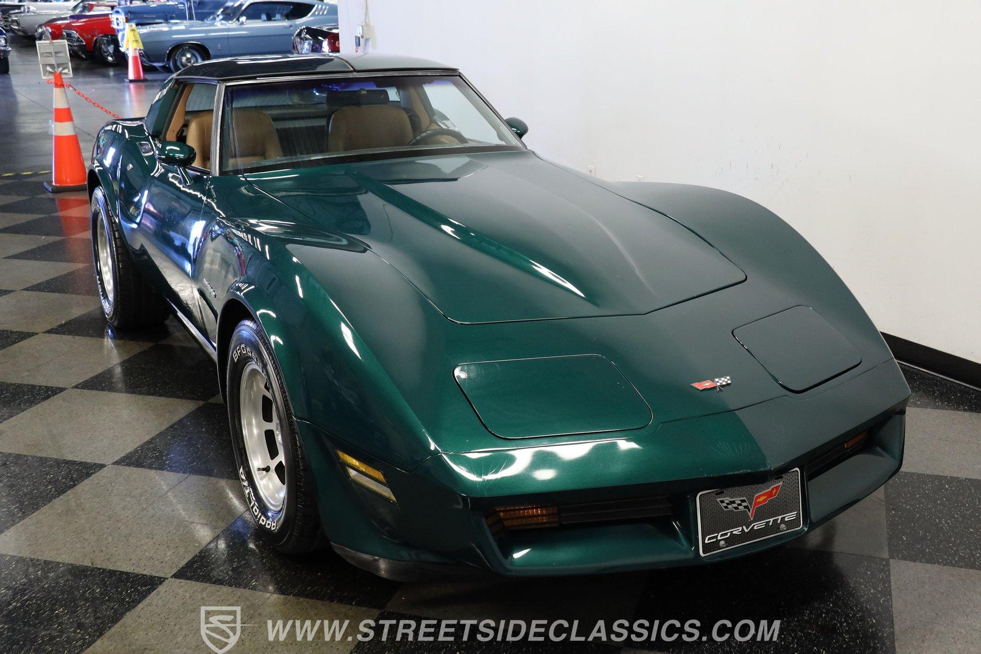 The Chevy Corvette needs no introduction. The longest-running production car in American history, it isn't about whether the Corvette is collectible; it is just about which collectible Corvette you want. This 1982 Chevrolet Corvette we have for you today represents the last year of the venerable third generation, which began in 1968, and ended with this model year. With just 60,290 believed actual miles on its odometer (about 1,370 per year), this fully repainted deep green is a stellar example of what made the C3 so great. Pop off the T-tops, and inside you'll find a nicely redone tan vinyl interior. A center console separates a pair of plush yet supportive bucket seats, while a power-assisted three-spoke steering wheel sits just ahead of a dual pod analog gauge cluster featuring an 85 mph speedometer and a 7,000 rpm tachometer. A five-pod auxiliary gauge cluster sits high atop the center stack, while power locks, windows, seats, and mirrors provide all the amenities anyone could want in the early 1982s. An upgraded AM/FM/AUX Sony head unit offers far more entertainment options than its predecessor. The dreaded vacuum operated headlights have been upgraded to electric powered motors. Under the hood, we find a period-correct 350-cubic-inch small-block V-8. The 1983 Corvette differs from its predecessors here with its CrossFire fuel injection system. It was far more efficient than the system it replaced and was even carried over to the C4 Corvette. Power from that motor then funnels through a 700R4 four-speed automatic transmission before heading out to the rear end, which transfers those ponies to the pavement via a set of 15-inch wheels shod in BFGoodrich Radia T/A tires. HIGHLIGHTS: Final Year C3 60,290 Believed Actual Miles Full Green Repaint T-Tops Period Correct 350ci V8 Cross Fire Injection 700R4 Four Speed Auto Electric Motor Headlight Upgrade Dual Exhaust FlowMaster Mufflers Four Wheel Power Discs Power Steering Tan Vinyl Interior Power Bucket Seats Power Windows Power Mirrors Power Locks Sony AM/FM/AUX Head Unit This 1982 Chevrolet Corvette rides on a factory-style suspension, while power-disc brakes sit at all four corners to scrub off speed at a moment's notice. If you have never experienced the thrill and joy of driving a classic Corvette, this low-mileage example might be the one you've been waiting for. Call today! Be sure to ask about our services offered; Financing, Vehicle Protection Plan, Insurance, and Transportation to your driveway!