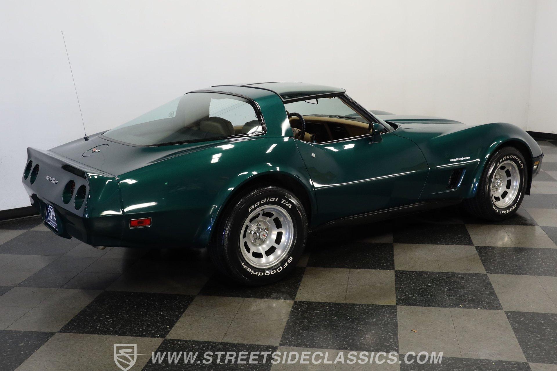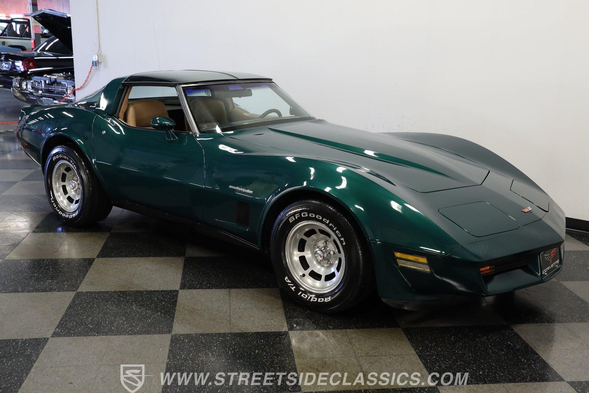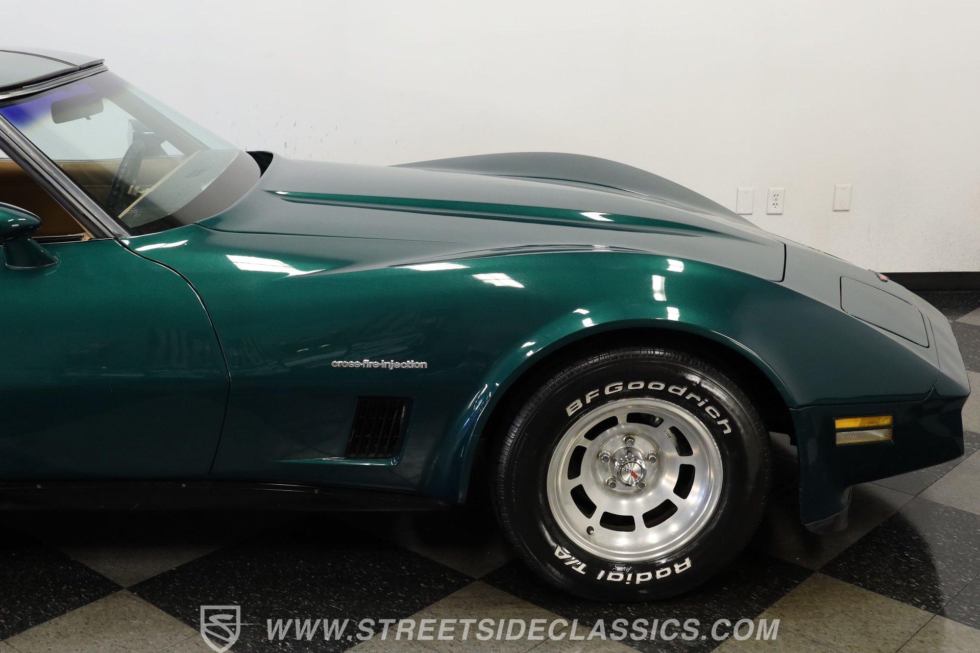 The Chevy Corvette needs no introduction. The longest-running production car in American history, it isn't about whether the Corvette is collectible; it is just about which collectible Corvette you want. This 1982 Chevrolet Corvette we have for you today represents the last year of the venerable third generation, which began in 1968, and ended with this model year. With just 60,290 believed actual miles on its odometer (about 1,370 per year), this fully repainted deep green is a stellar example of what made the C3 so great. Pop off the T-tops, and inside you'll find a nicely redone tan vinyl interior. A center console separates a pair of plush yet supportive bucket seats, while a power-assisted three-spoke steering wheel sits just ahead of a dual pod analog gauge cluster featuring an 85 mph speedometer and a 7,000 rpm tachometer. A five-pod auxiliary gauge cluster sits high atop the center stack, while power locks, windows, seats, and mirrors provide all the amenities anyone could want in the early 1982s. An upgraded AM/FM/AUX Sony head unit offers far more entertainment options than its predecessor. The dreaded vacuum operated headlights have been upgraded to electric powered motors. Under the hood, we find a period-correct 350-cubic-inch small-block V-8. The 1983 Corvette differs from its predecessors here with its CrossFire fuel injection system. It was far more efficient than the system it replaced and was even carried over to the C4 Corvette. Power from that motor then funnels through a 700R4 four-speed automatic transmission before heading out to the rear end, which transfers those ponies to the pavement via a set of 15-inch wheels shod in BFGoodrich Radia T/A tires. HIGHLIGHTS: Final Year C3 60,290 Believed Actual Miles Full Green Repaint T-Tops Period Correct 350ci V8 Cross Fire Injection 700R4 Four Speed Auto Electric Motor Headlight Upgrade Dual Exhaust FlowMaster Mufflers Four Wheel Power Discs Power Steering Tan Vinyl Interior Power Bucket Seats Power Windows Power Mirrors Power Locks Sony AM/FM/AUX Head Unit This 1982 Chevrolet Corvette rides on a factory-style suspension, while power-disc brakes sit at all four corners to scrub off speed at a moment's notice. If you have never experienced the thrill and joy of driving a classic Corvette, this low-mileage example might be the one you've been waiting for. Call today! Be sure to ask about our services offered; Financing, Vehicle Protection Plan, Insurance, and Transportation to your driveway!