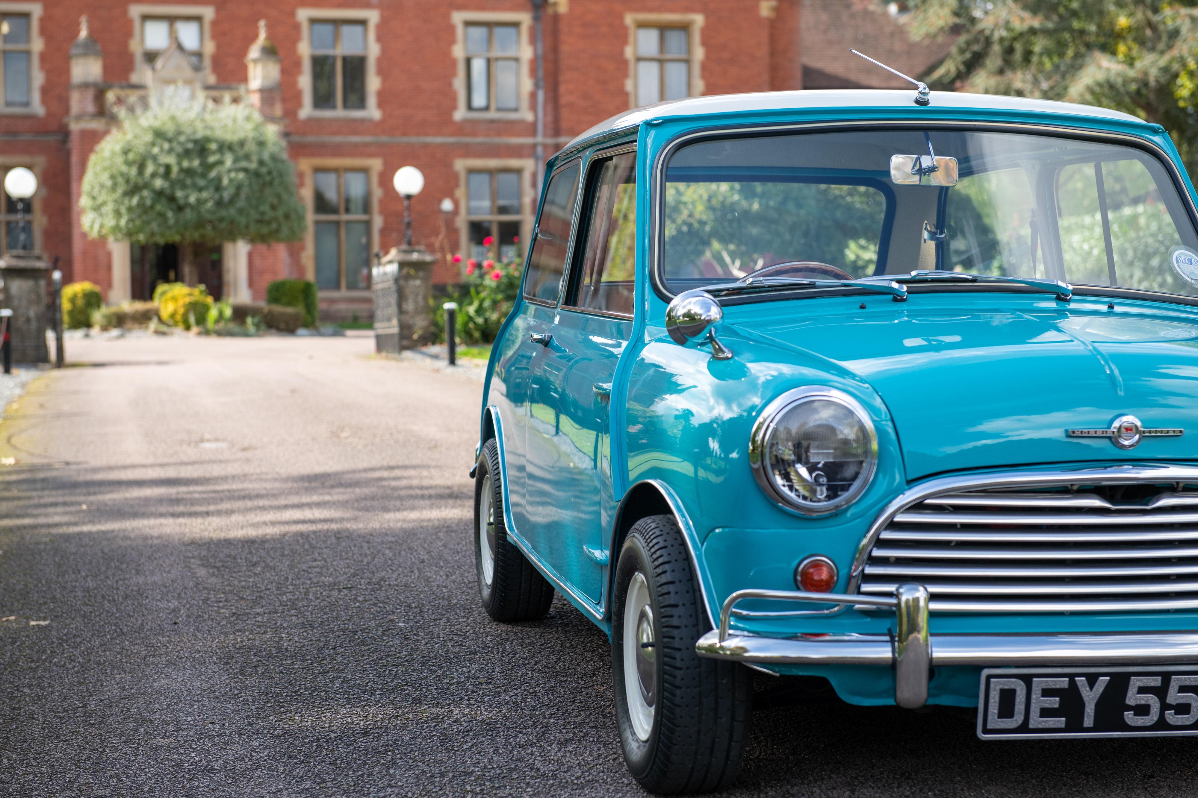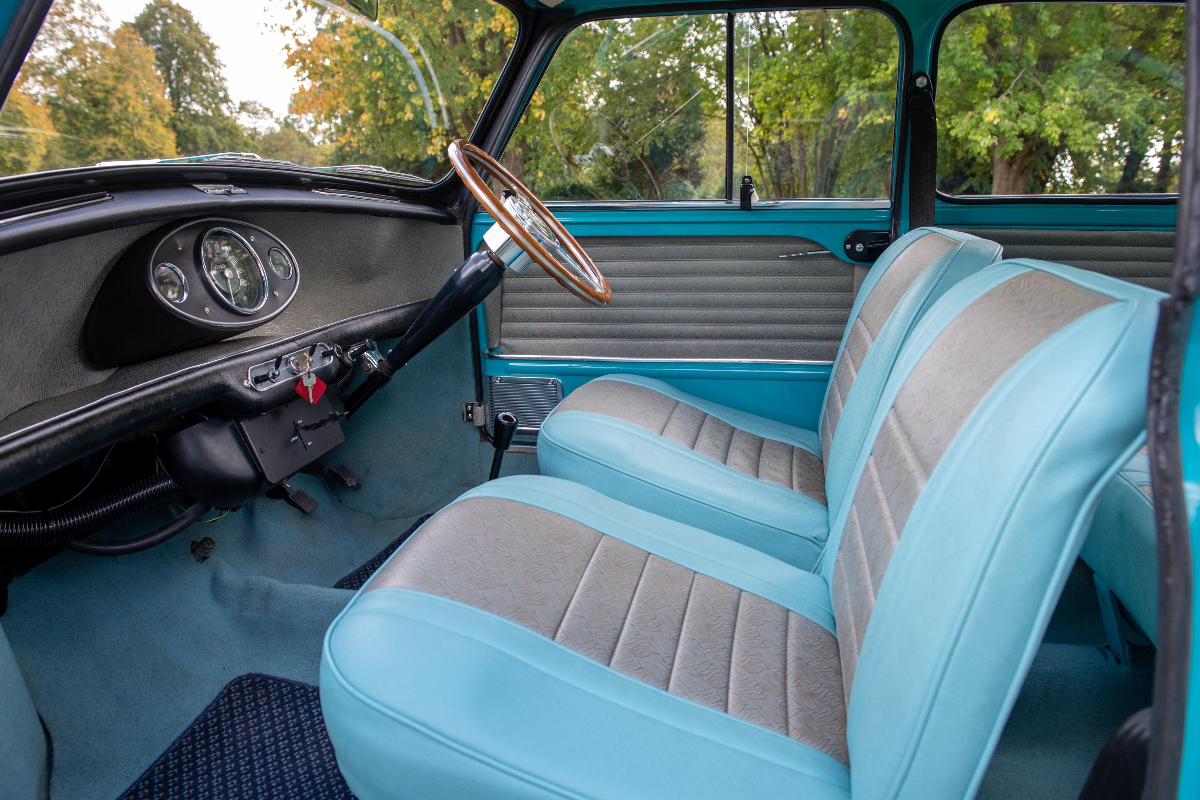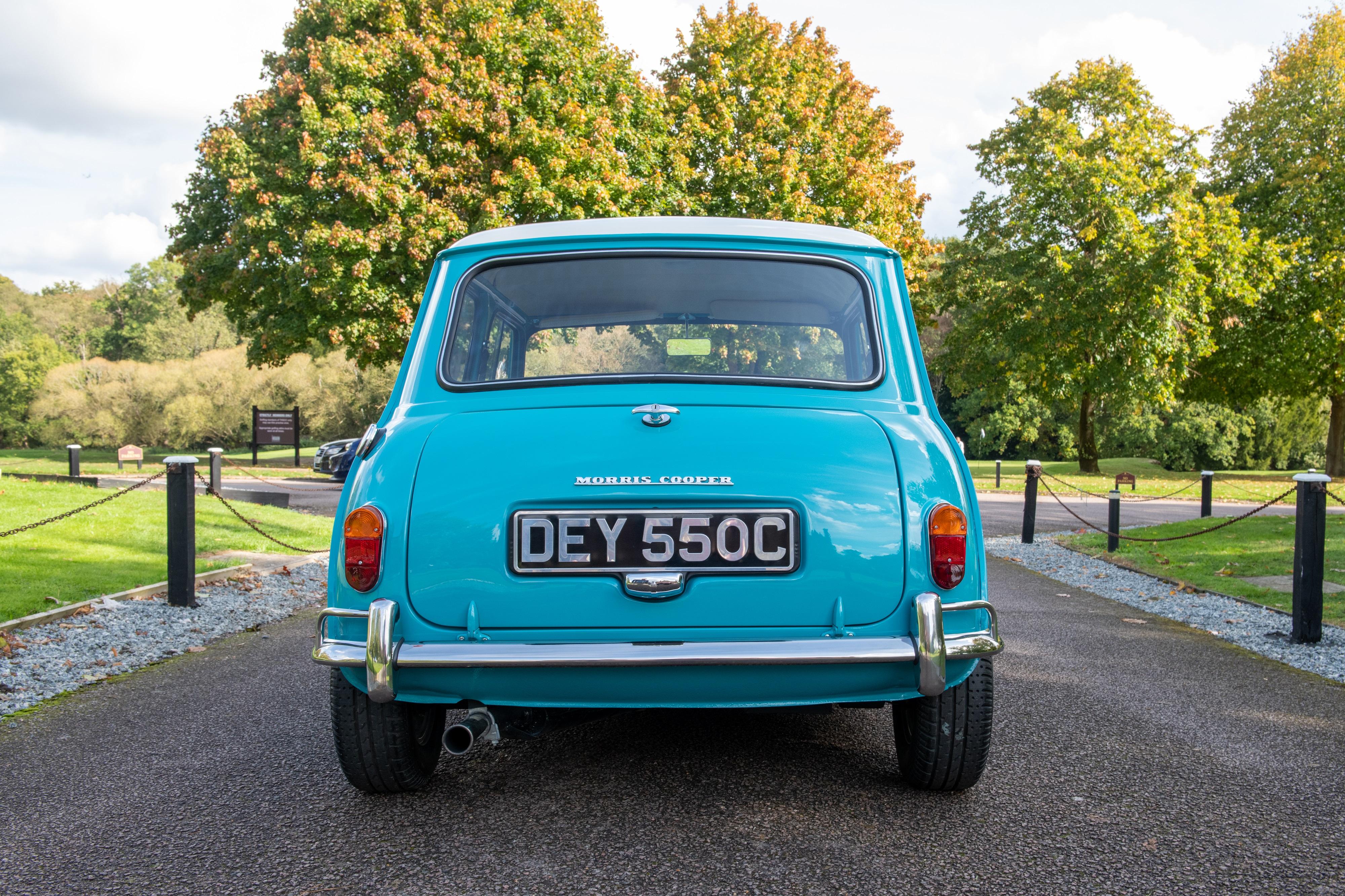 This delightful Mini Cooper was supplied new by Stewart and Arden of Staines in July 1965 and presents wonderfully in the desirable colour combination Surf Blue with a white roof and is fitted with the optional extra of a heater. This superb Cooper retains its original floors, sills and subframes, none of which appear to have been patched up. This example has benefitted in recent years from being totally refreshed, including the replacement of most of the brightwork and attention to mechanicals, paintwork and interior. The car is also fitted with wider wheels and Yokohama tyres. It is believed that the indicated mileage is correct, as we know, that due to an owner's bereavement, the car spent a long time in storage. We are informed that these stunning Mini drives and stops well and that it performs as it should. This eye-catching example is sensibly estimated and ready for immediate use by a new owner. Consigned by Dominic Lake