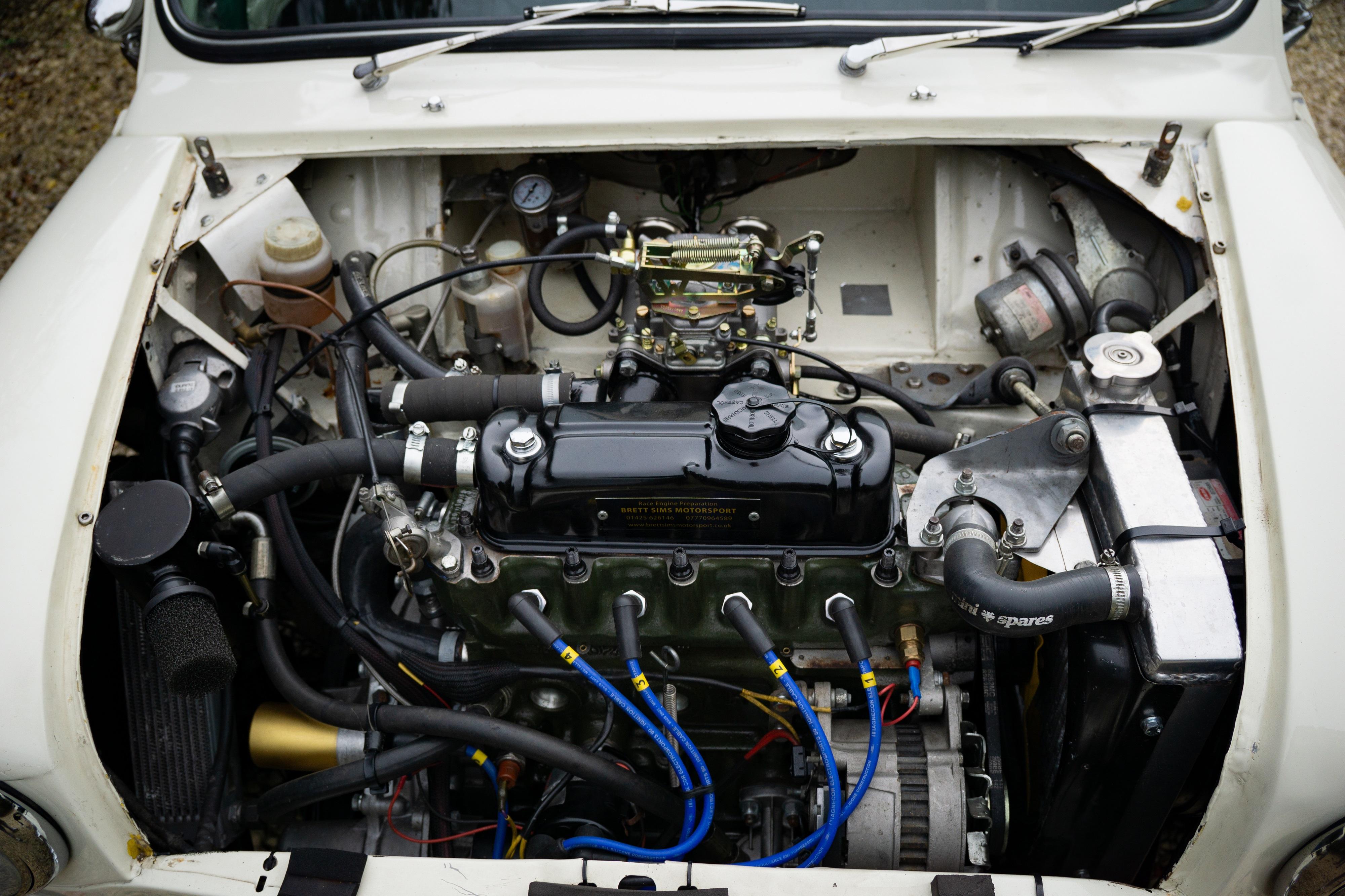 Power comes from a Brett Sims Motorsport-built 1330cc engine, constructed in 2023 and used only sparingly since, with around 200 miles of road use. Built with longevity in mind, the engine features forged internals, a mildly tuned rally-type camshaft, dry-deck cooling and Weber carburation, delivering strong, flexible performance rather than peaky, race-only characteristics. A limited-slip differential, uprated clutch and straight-cut drop gears ensure the performance is effectively transmitted while remaining manageable in road use. The engine build is supported by comprehensive documentation, with invoices totalling approximately £10,000, in addition to further receipts relating to the build of the car. Overall, this Mini represents a rare opportunity to acquire a seriously quick yet usable fast road car, representing excellent value compared to what it would cost to replicate. Supplied to auction with earlier mentioned invoices detailing works carried out and a V5 registration document. Consigned by Fraser Smith