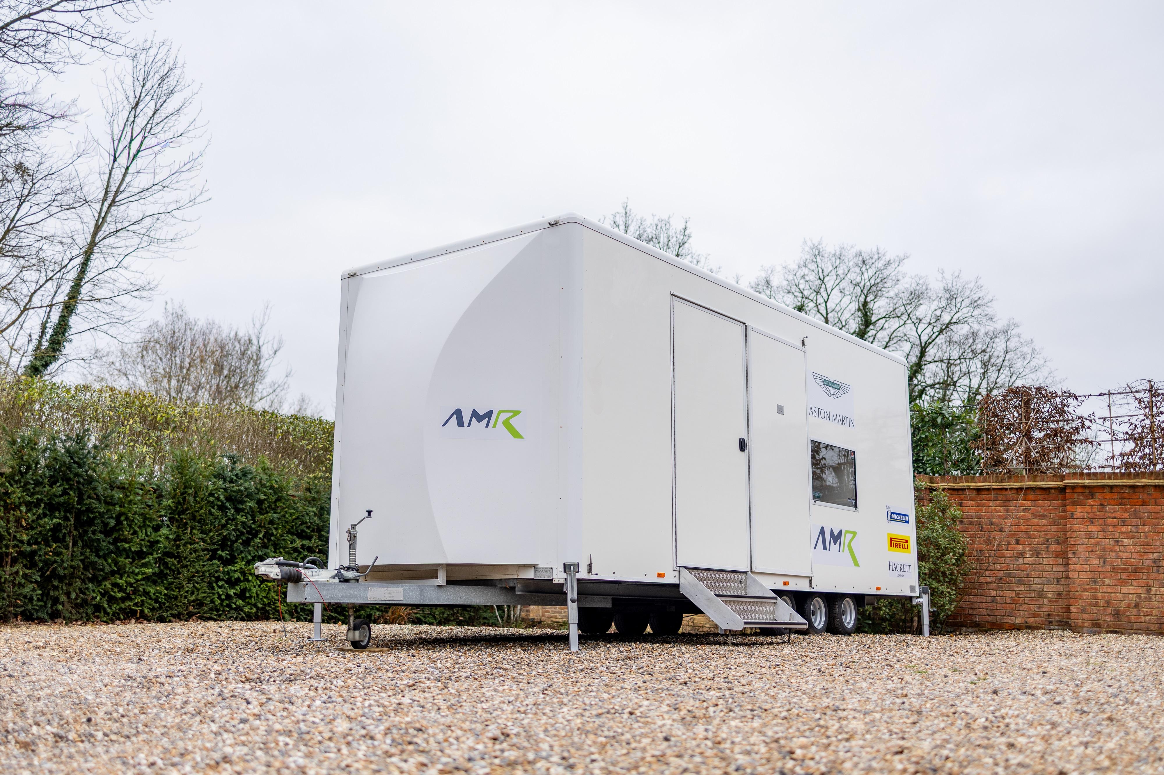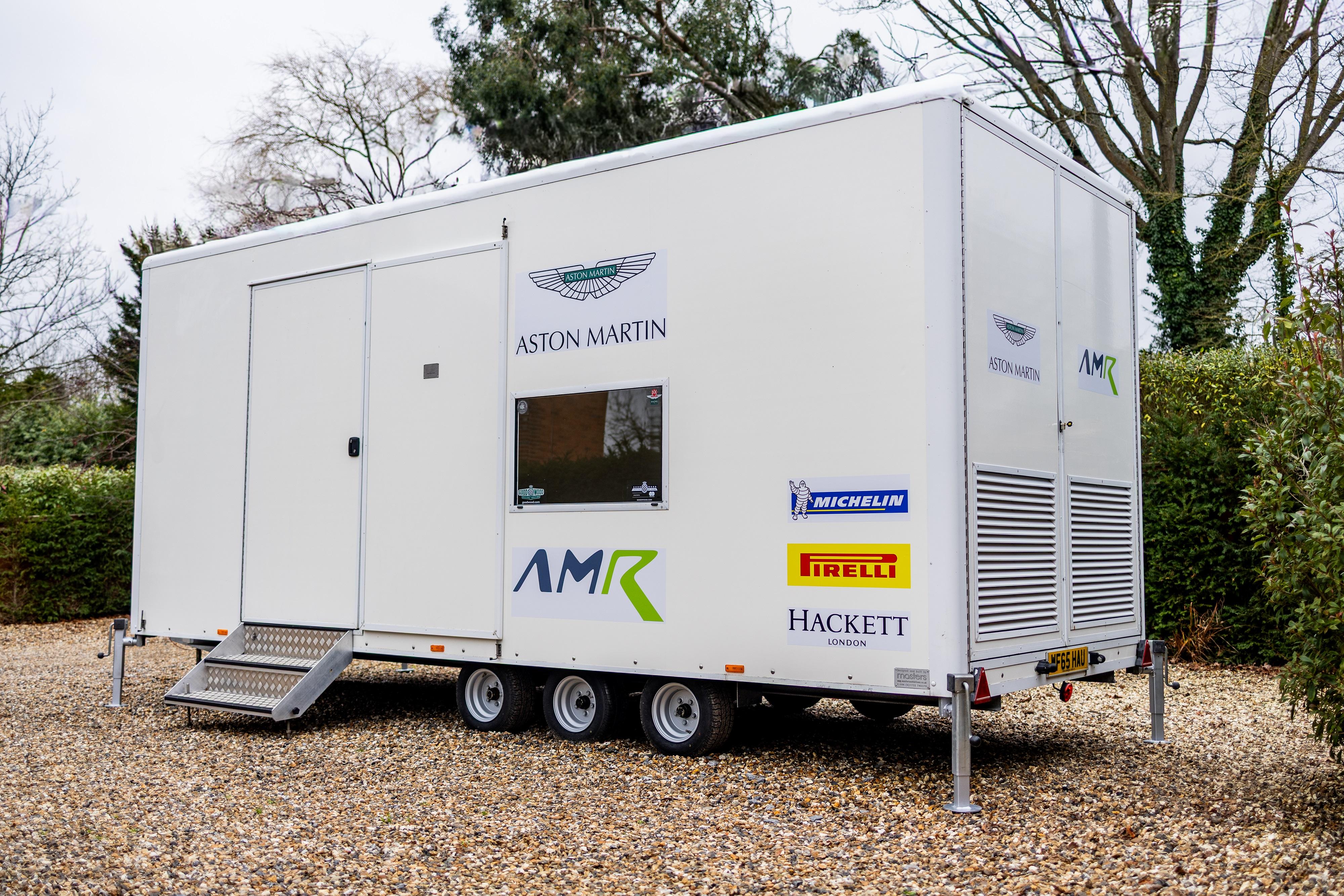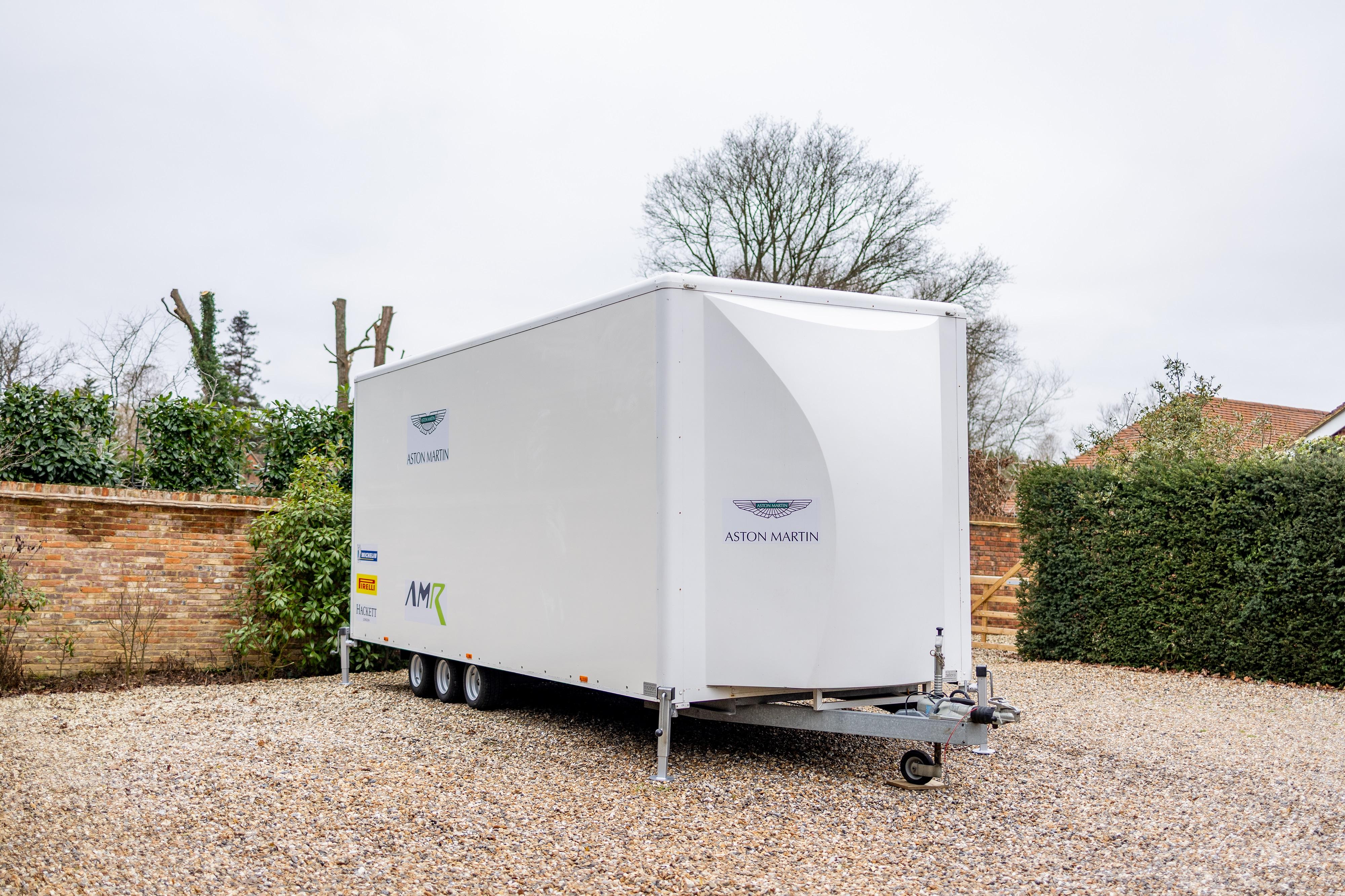 CAD drawings and 3D models are supplied to assist with any future modification or redesign. The trailer is constructed on a tri-axle chassis with adjustable axle mounting positions. Electrical provision includes a 240V / 32A hook-up and LED lighting throughout. New locks are fitted and the trailer is supplied with a full spare key set. Included are a portable stair access system for the pedestrian side door, four corner stabilising jacks, and a new spare wheel and tyre. The trailer has seen very light use and presents in clean, well-maintained condition, with the Aston Martin Racing livery remaining in excellent order. The interior height allows for racking or tyre storage installations, and the trailer is suitable for towing by larger 4x4 vehicles or light HGVs, depending on configuration, and is supplied with a Safety Inspection and Maintenance Report issued by the RHA in October 2025 and Tachodisc inspection certificate September 2024. Consigned by Mathew Priddy