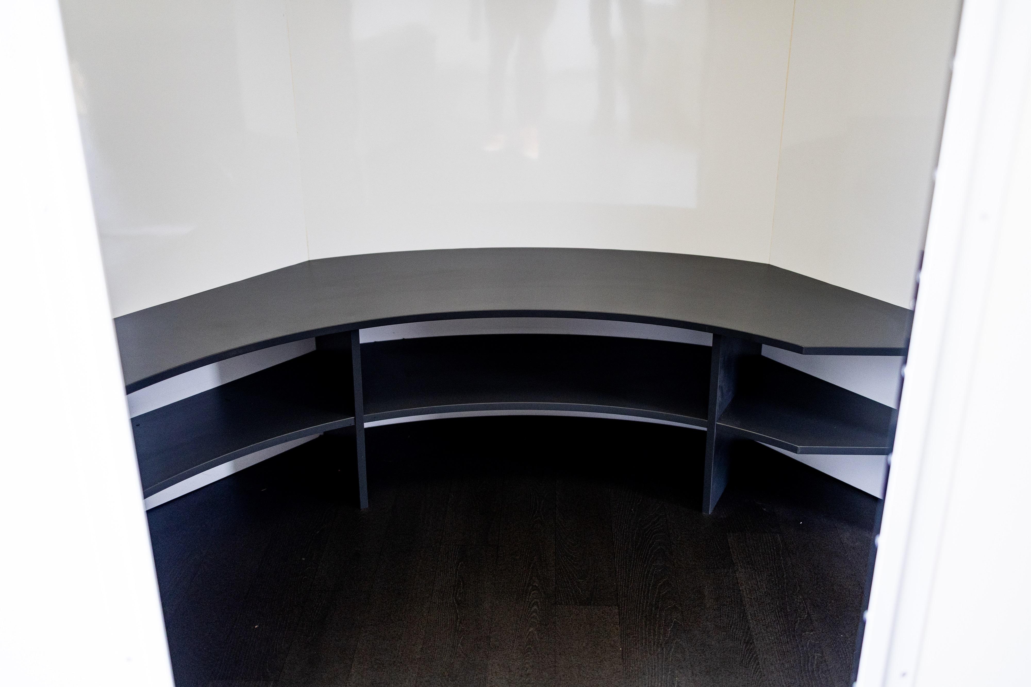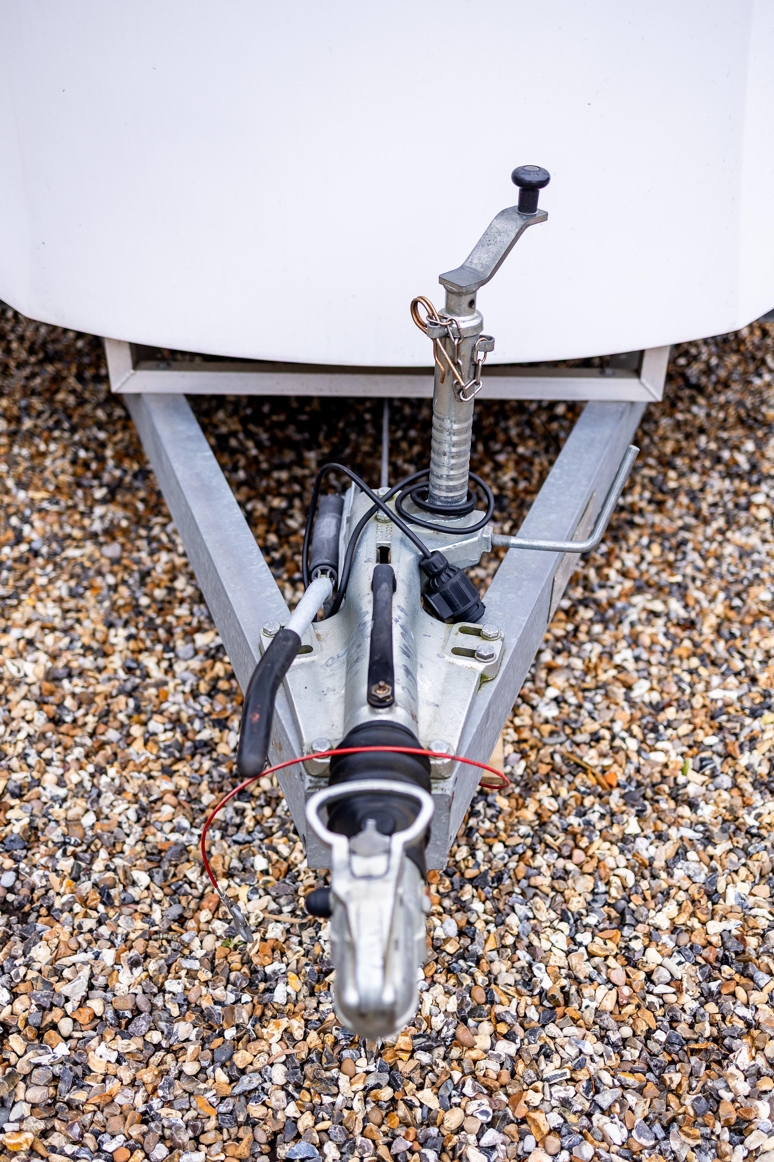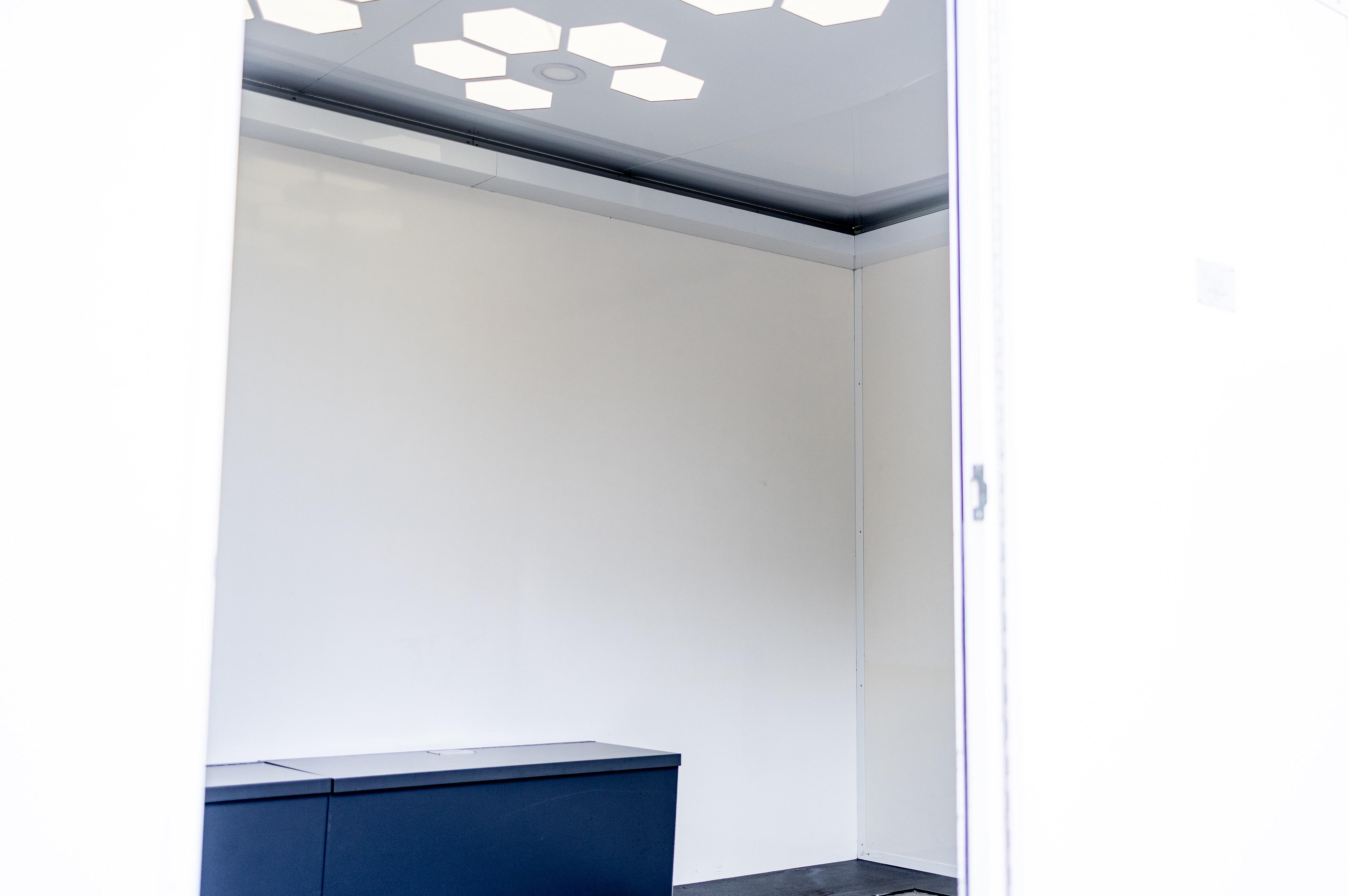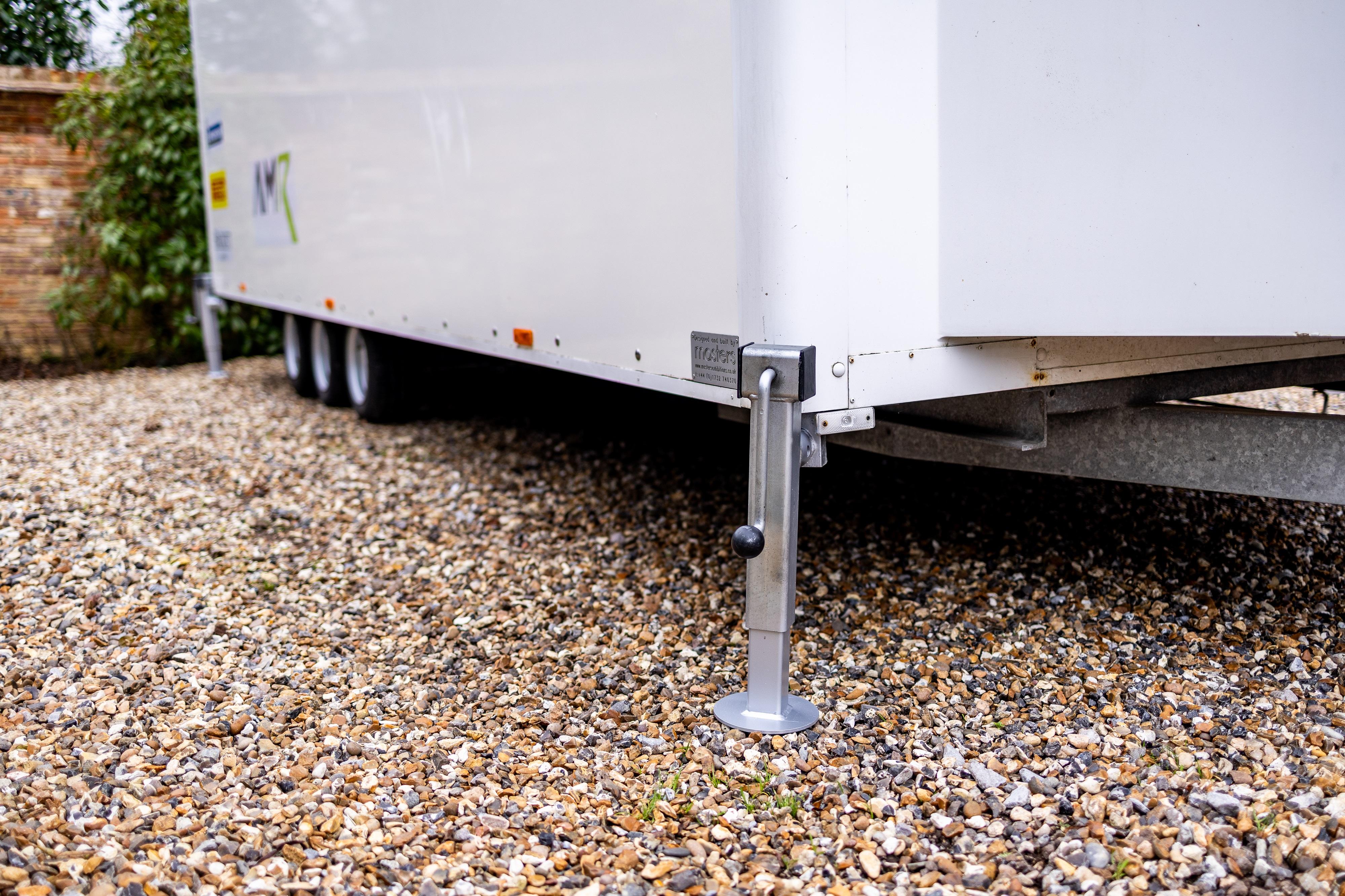 The internal partition between the workshop and rear compartment can be removed, allowing the creation of an enclosed internal vehicle bay measuring approximately 4.75 metres by 2.4 metres, suitable for transporting a GT, track or classic vehicle within the trailer. The flexible internal layout allows for alternative uses, including conversion to a mobile hospitality unit, team kitchen or rest area, tyre or heating storage pod, merchandising unit or mobile engineering facility.