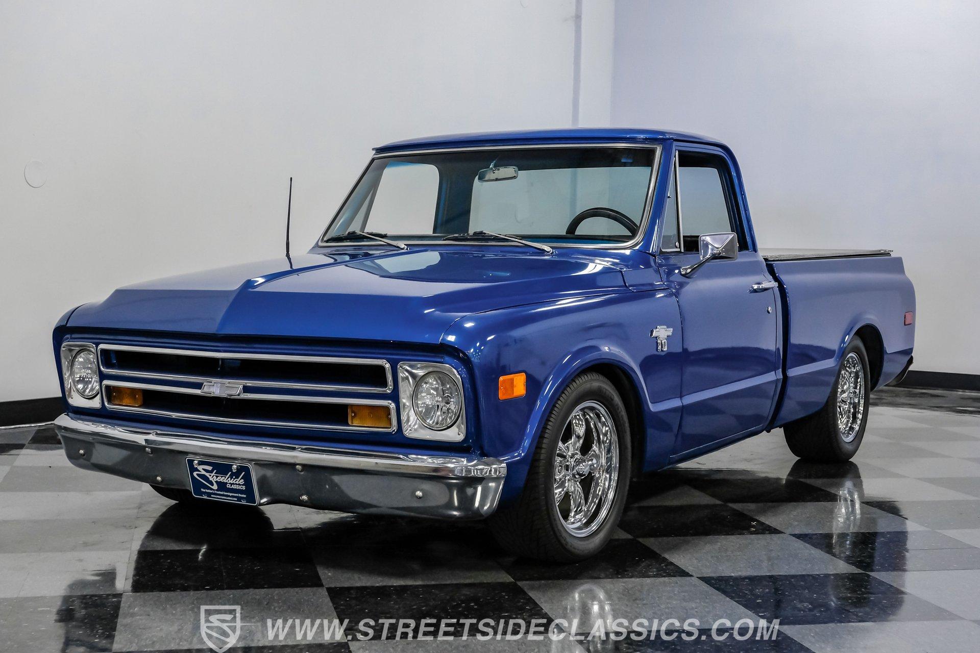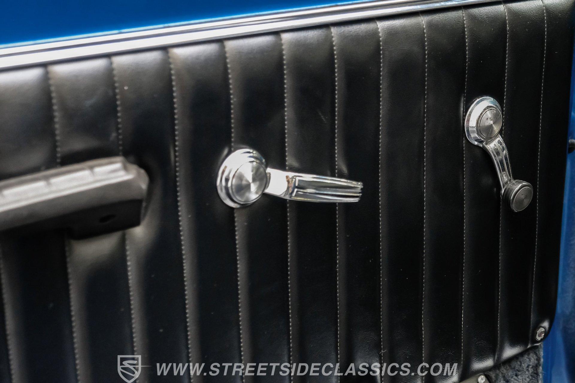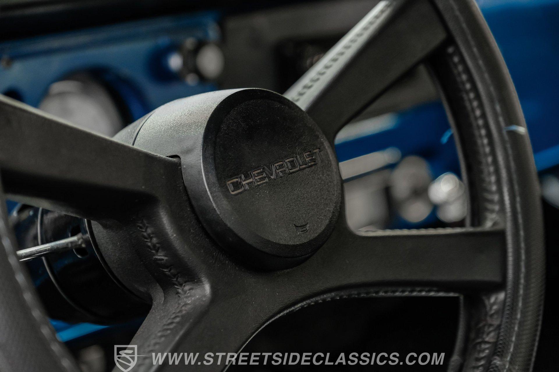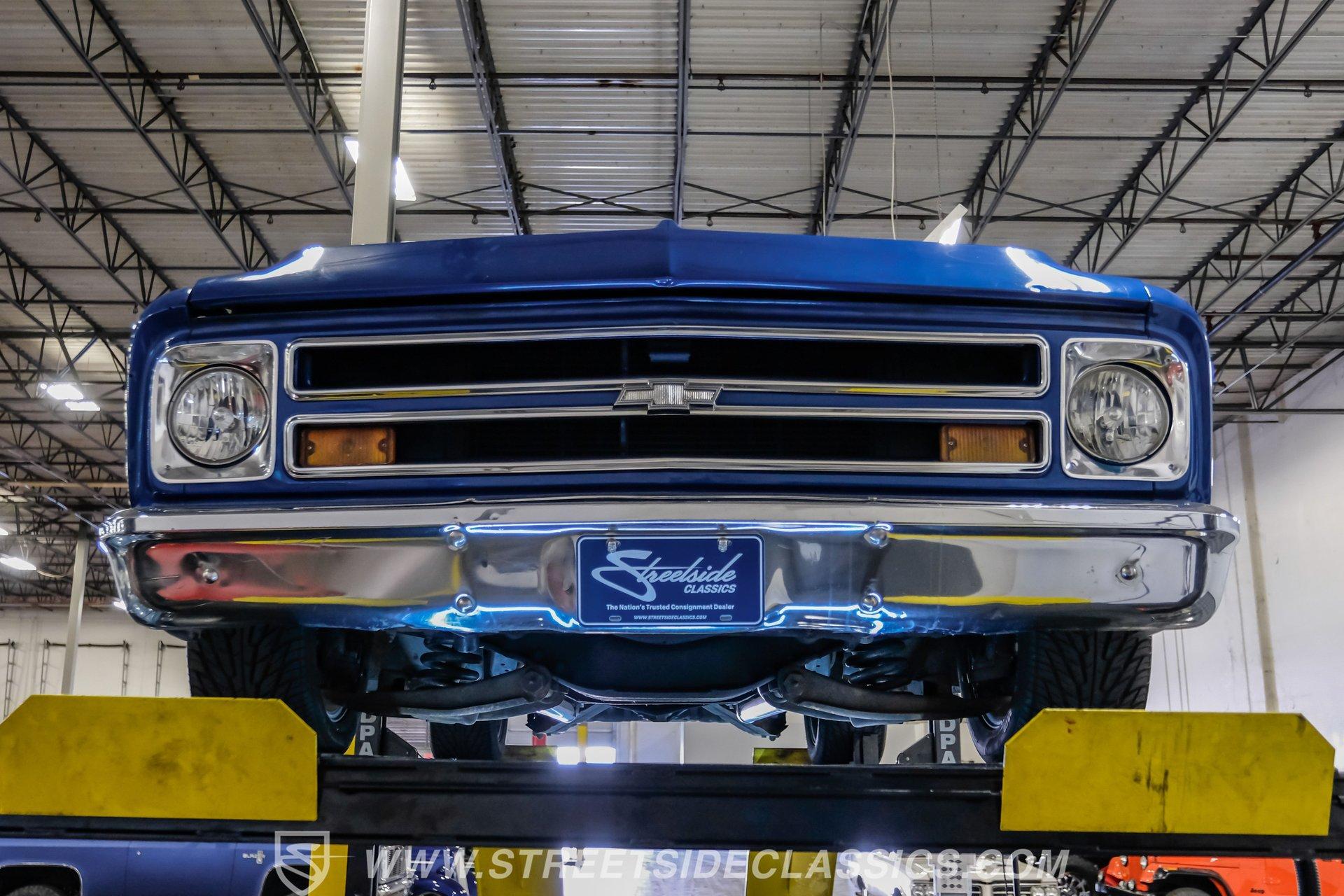 The 1971 Chevrolet C10 is a standout classic-part muscle, part utility, and full of American character. With its V8 rumble, iconic lines, and head turning presence, it captures the essence of a golden era. This example features an older blue repaint with chrome bumpers, a 1967 C10 front clip, and a lowered stance, offering vintage style with unmistakable personality. The interior features a factory-style black vinyl bench seat with added seat belts, Dakota Digital gauges that light up in cool blue, and a unique Kilduff ratchet floor shifter. Kick panels and floor mats have been upgraded for a fresh look, while a Kenwood single-DIN head unit with modern connectivity options keeps your favorite tunes rolling. Door speakers add to the immersive audio experience, making every drive an event. Under the hood, you'll find a robust 350 cubic inch V8, equipped with a Holley 4-barrel carburetor and Edelbrock intake. Paired with a TH350 3-speed automatic transmission and a healthy cam, this C10 offers plenty of muscle for the open road. Power steering and power brakes, including front disc and rear drum, provide confident handling, while a Magnaflow dual exhaust system delivers that unmistakable classic truck sound. HIGHLIGHTS 1967 C10 Front Clip 350 CI V8 Holley 4-Barrel Carburetor with Edelbrock Intake Manifold 3-Speed TH350 Automatic Transmission Power Steering Power Front Disc and Rear Drum Brakes 12-Bolt Rear Axle Lowered Factory-Style Suspension Chrome 17-Inch American Racing Wheels with Nitto Performance Tires Dakota Digital Gauges with Blue Backlighting Kilduff Ratchet Floor Shifter Kenwood AM/FM/CD/USB/Aux Head Unit "Realtruck Tuxedo" Vinyl Bed Cover Folder Of Receipts And Dyno Sheet Included Financing Available Vehicle Protection Plans Available Worldwide Shipping This 1971 Chevrolet C10 blends classic appeal with tasteful upgrades and a spirited V8, making it a fantastic choice for anyone seeking a standout pickup. Don't miss your chance to own a true American classic that's ready for the road and ready to impress. Call, email, or come visit our showroom today!