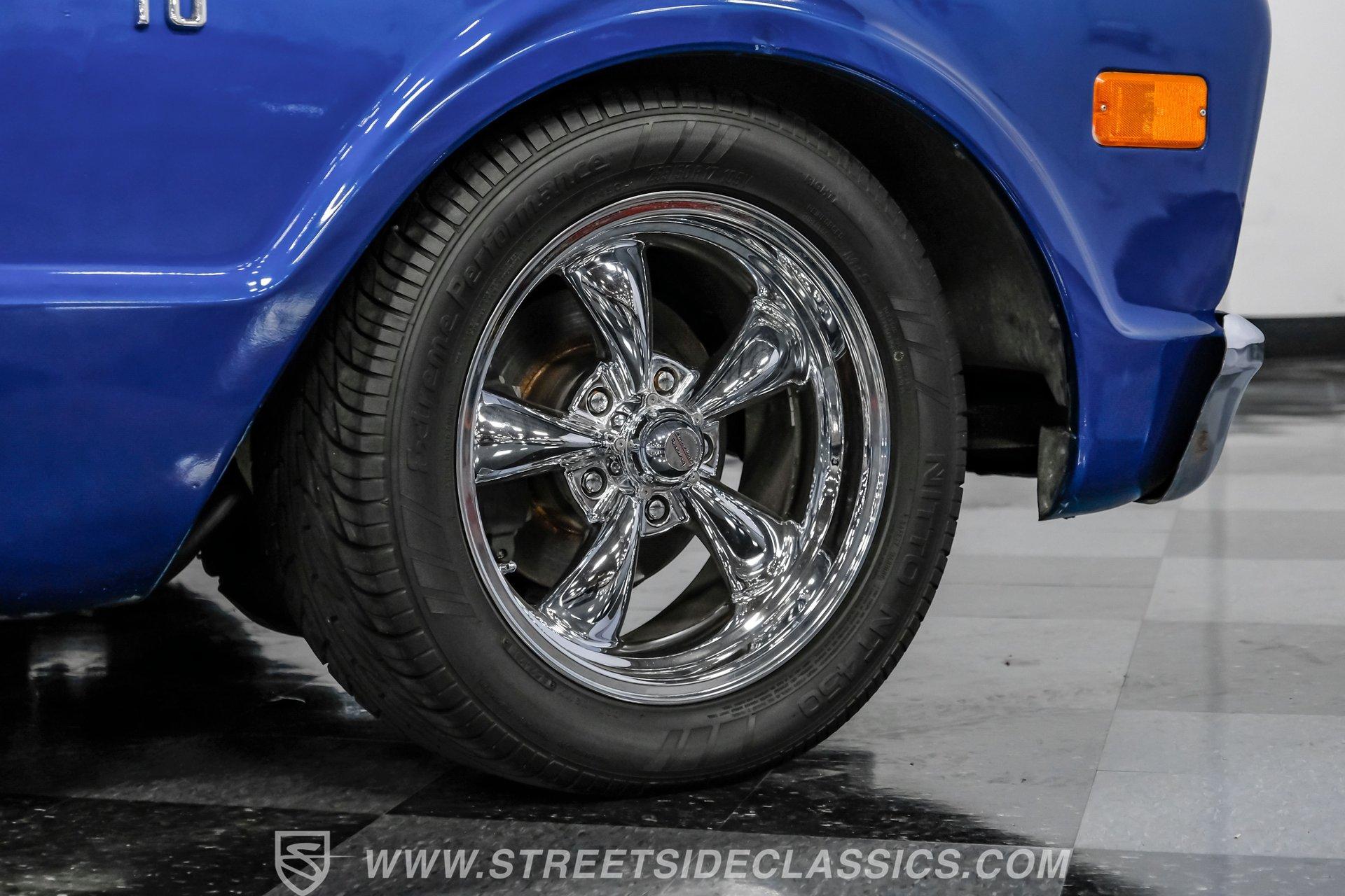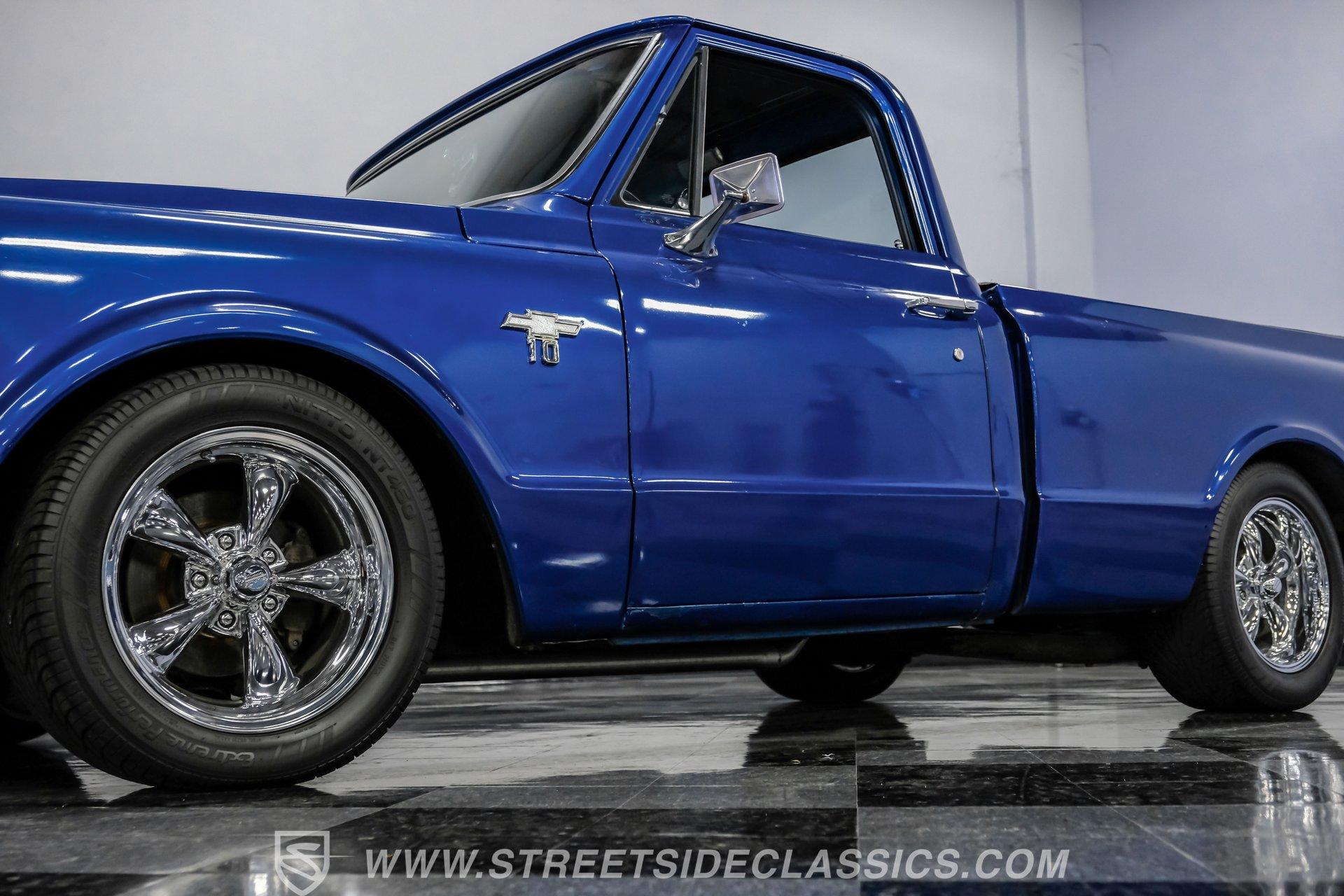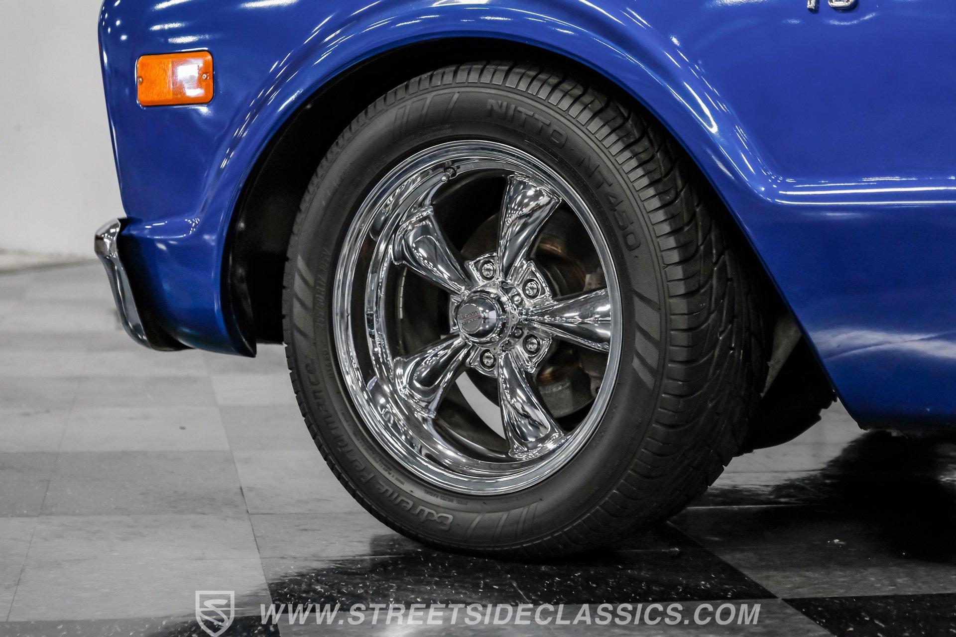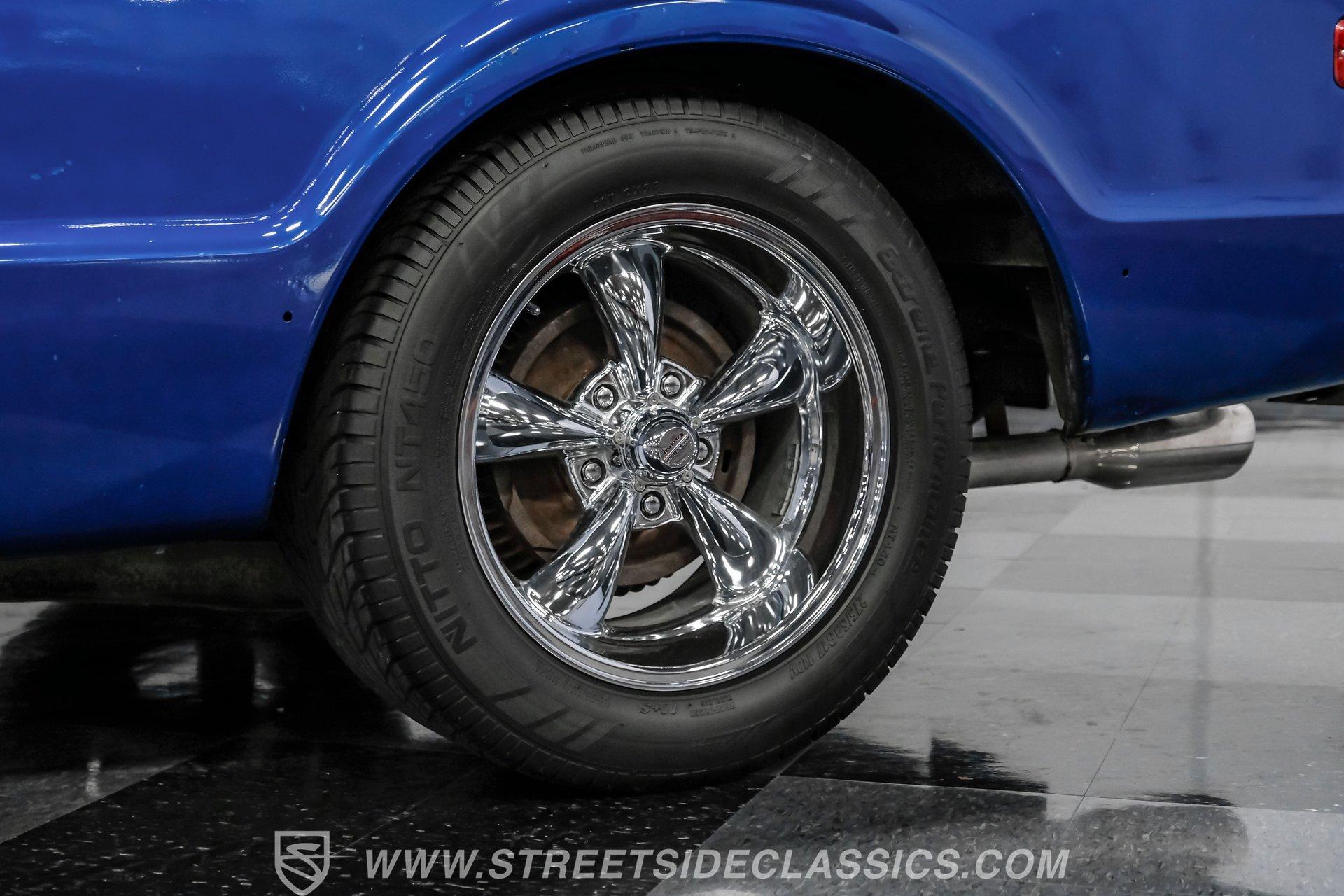 The 1971 Chevrolet C10 is a standout classic-part muscle, part utility, and full of American character. With its V8 rumble, iconic lines, and head turning presence, it captures the essence of a golden era. This example features an older blue repaint with chrome bumpers, a 1967 C10 front clip, and a lowered stance, offering vintage style with unmistakable personality. The interior features a factory-style black vinyl bench seat with added seat belts, Dakota Digital gauges that light up in cool blue, and a unique Kilduff ratchet floor shifter. Kick panels and floor mats have been upgraded for a fresh look, while a Kenwood single-DIN head unit with modern connectivity options keeps your favorite tunes rolling. Door speakers add to the immersive audio experience, making every drive an event. Under the hood, you'll find a robust 350 cubic inch V8, equipped with a Holley 4-barrel carburetor and Edelbrock intake. Paired with a TH350 3-speed automatic transmission and a healthy cam, this C10 offers plenty of muscle for the open road. Power steering and power brakes, including front disc and rear drum, provide confident handling, while a Magnaflow dual exhaust system delivers that unmistakable classic truck sound. HIGHLIGHTS 1967 C10 Front Clip 350 CI V8 Holley 4-Barrel Carburetor with Edelbrock Intake Manifold 3-Speed TH350 Automatic Transmission Power Steering Power Front Disc and Rear Drum Brakes 12-Bolt Rear Axle Lowered Factory-Style Suspension Chrome 17-Inch American Racing Wheels with Nitto Performance Tires Dakota Digital Gauges with Blue Backlighting Kilduff Ratchet Floor Shifter Kenwood AM/FM/CD/USB/Aux Head Unit "Realtruck Tuxedo" Vinyl Bed Cover Folder Of Receipts And Dyno Sheet Included Financing Available Vehicle Protection Plans Available Worldwide Shipping This 1971 Chevrolet C10 blends classic appeal with tasteful upgrades and a spirited V8, making it a fantastic choice for anyone seeking a standout pickup. Don't miss your chance to own a true American classic that's ready for the road and ready to impress. Call, email, or come visit our showroom today!
