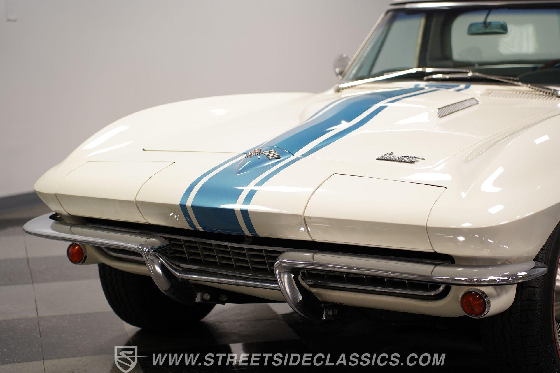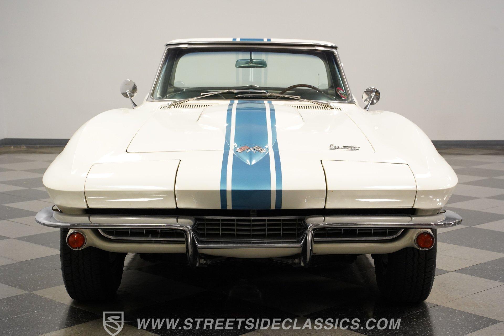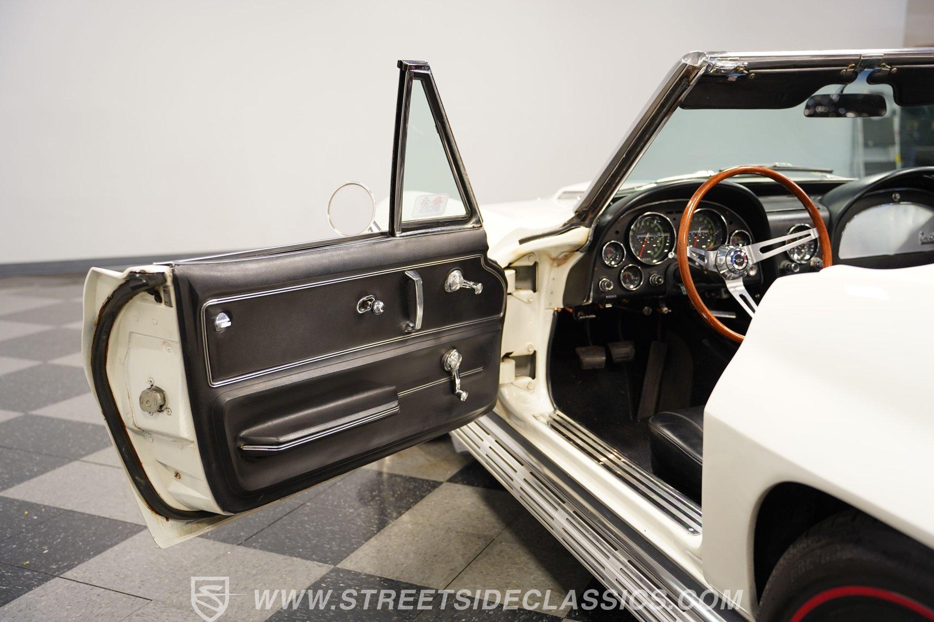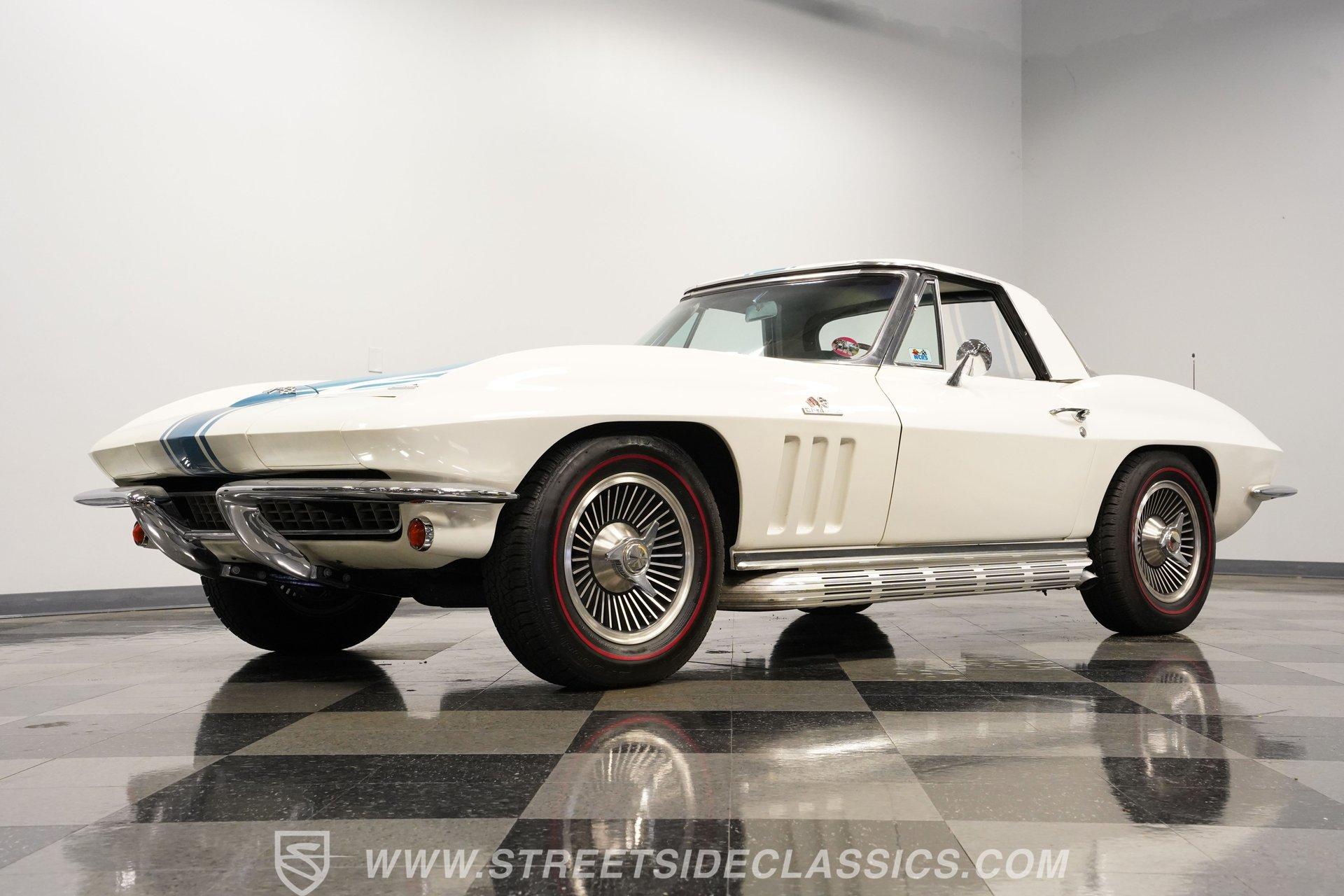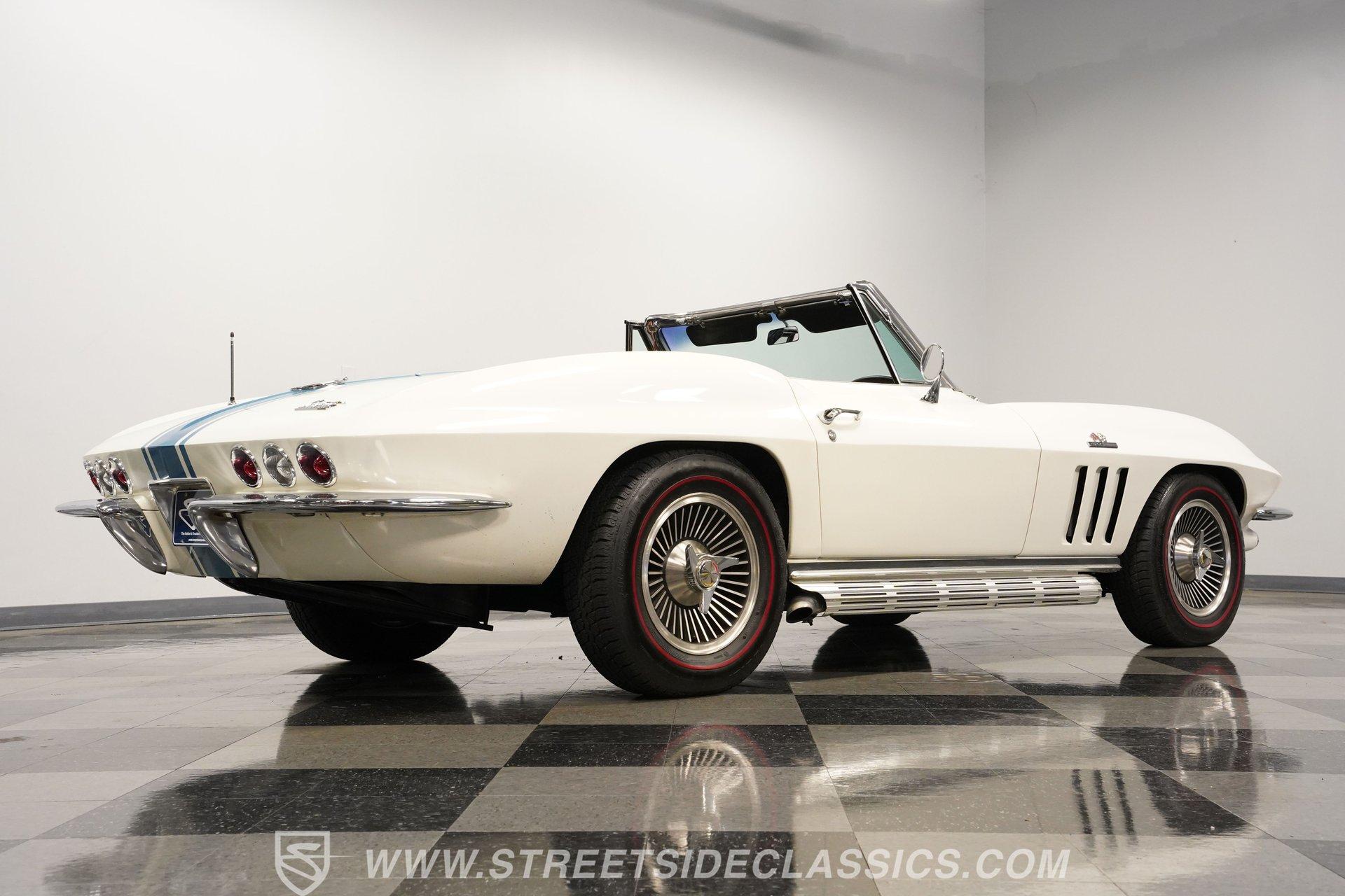 This low-mileage, highly original 1966 Chevrolet Corvette L72 427 Convertible is a rare find. With only 42,222 miles on the odometer and finished in what is believed to be its original Ermine White paint, this car is special. Period modifications include a blue full-length painted center stripe and the addition of two extra tail lights for a total six, which was a popular customization when these cars were new. Factory optional side-mounted exhaust and knock-off wheels wrapped with BF Goodrich Silvertown Redline tires add to this rare Corvette's allure. The black interior appears to be original as well, with the exception of correct replacement carpets, modern retro radio and wood steering wheel. The factory telescopic column helps and make this Stingray comfortable to operate. Additionally, this Corvette is optioned with a factory auxiliary removable hardtop, as well as a folding soft convertible top. Debuting for the 1966 model year, Chevrolet's L72 427 V-8 was a force to be reckoned with. Officially rated at 425 horsepower, its 11.0:1 compression, solid-lifter cam, forged crank, free-flowing rectangular-port cylinder heads, and virtually bulletproof block allowed for a number closer to 450 horsepower, making this one of the most potent engines used by an American automaker in the 1960s. Developed from a series of special Mark IV engines, field-tested by Zora Arkus-Duntov and his team, it was used in Don Yenko's famed Super Camaros and Super Chevelles, and they formed the basis of the GM-built COPO Camaro in 1969. It was especially potent when dropped into the relatively lightweight Corvette. With 42,222 miles, believed actual, this car is accessorized with a potent, highly-desirable, numbers-matching L72 V-8, as well as numbers-matching Muncie M-21 close-ratio four-speed manual transmission, positraction rear axle, F41 special suspension, vacuum power disc brakes, and upgraded HEI ignition system. A full engine rebuild was performed by County Corvette in Pennsylvania, that included bored .030 over, new pistons, hydraulic roller cam, and a new radiator. Engine bay looks largely authentic and period correct with painted valve covers, Winters aluminum intake, Holley carburetor and correct hose clamps. HIGHLIGHTS: 425HP, 427 Cubic Inch Matching Number L72 Engine Matching Number Muncie M21 Close-Ratio 4-Speed Transmission Factory Removable Hardtop and Soft Top Side Mounted Exhaust Knock-Off Wheels Redline Radial Tires F41 Suspension Option NCRS Shipping Data Report Engine Rebuilt by Corvette Specialist Positraction Axle Reproduction Window Sticker Six Tail Lights Custom Painted Center Stripe This desirable and exceptionally preserved 1966 Chevrolet Corvette L72 427 Sting Ray comes with its original owner's manual, reproduction window sticker, receipts, photos, and more. Well optioned and full of mid-sixties character and charm, this ready to drive high-horsepower Corvette presents a rare opportunity to acquire a very special car. Call today!