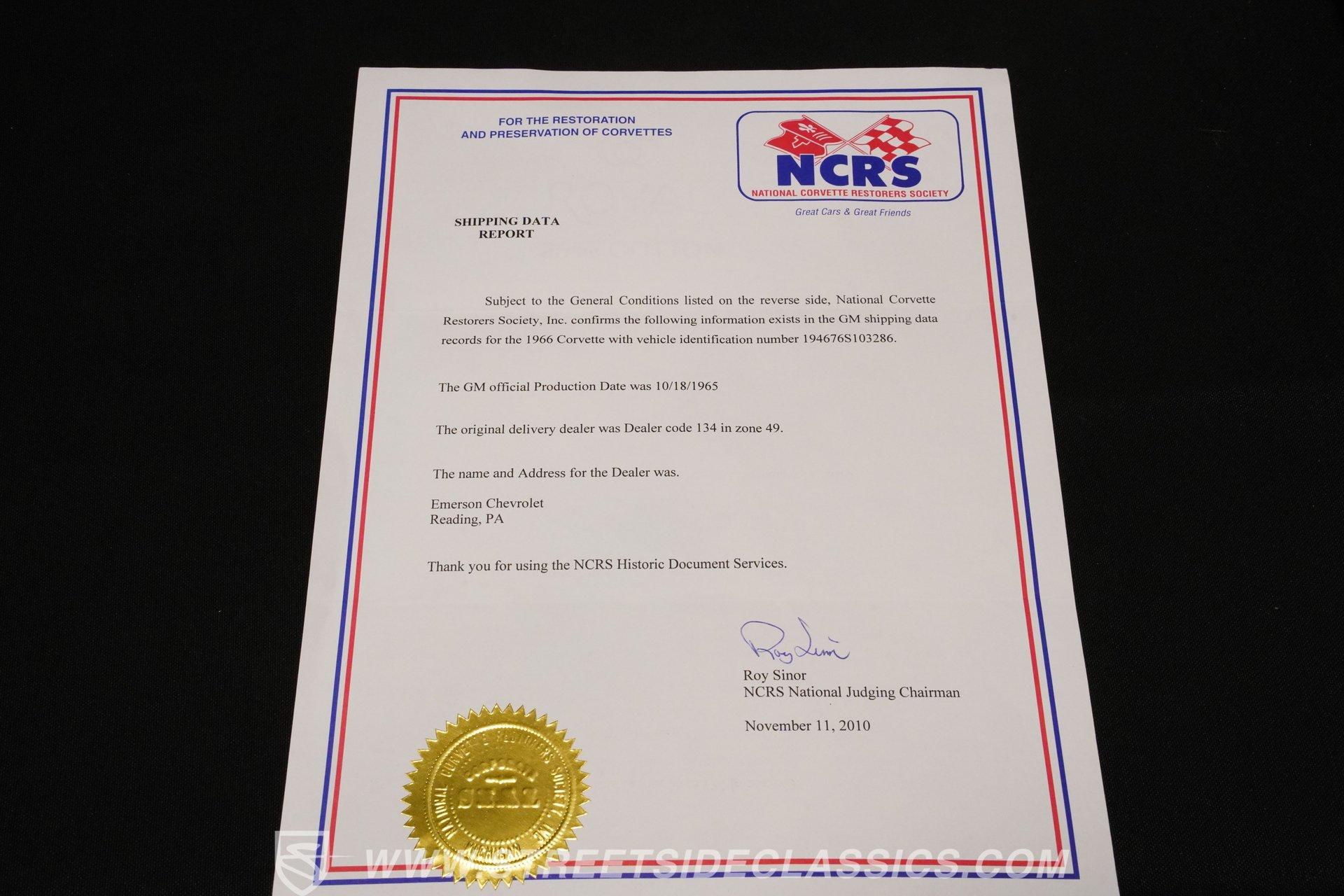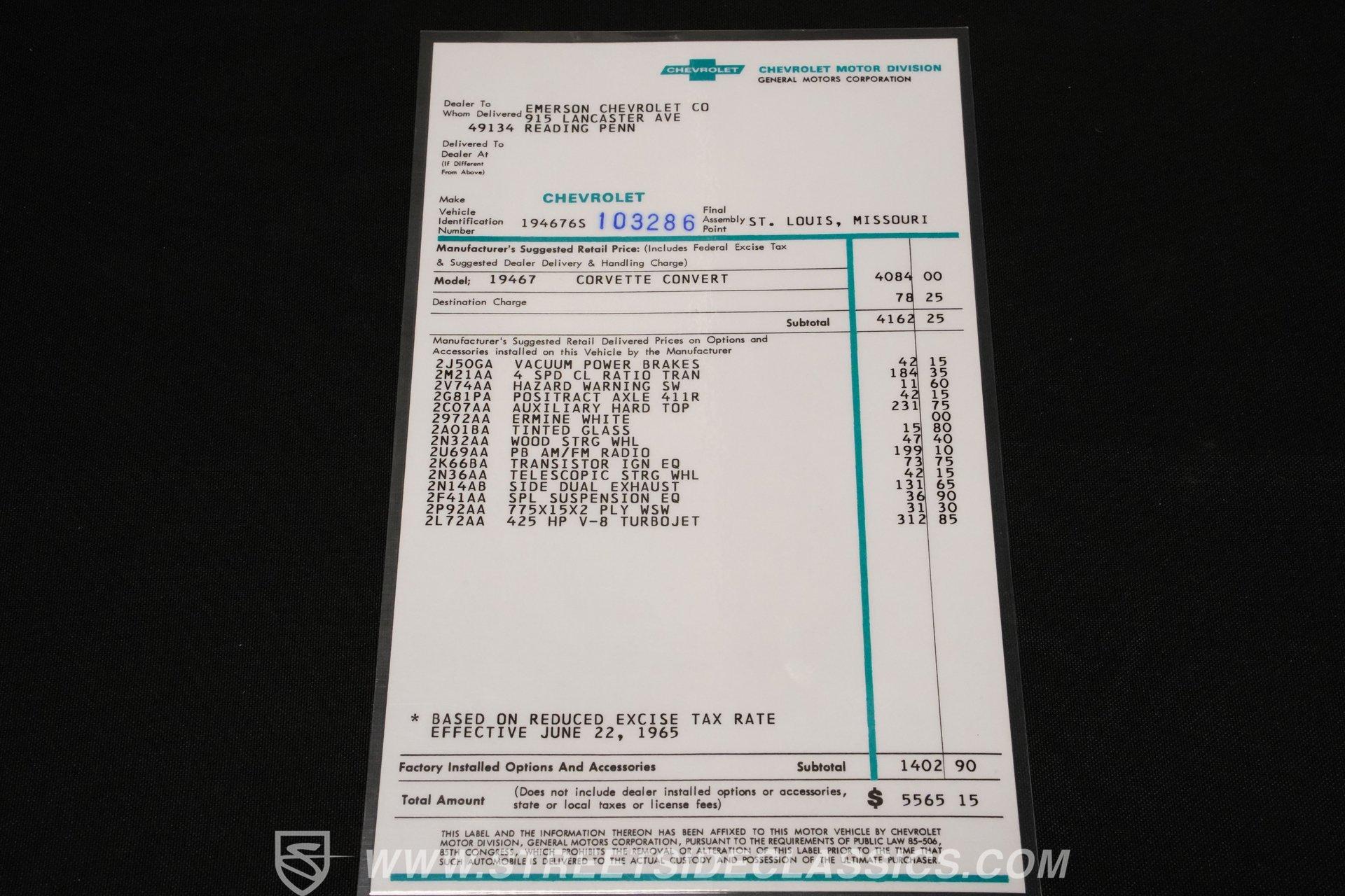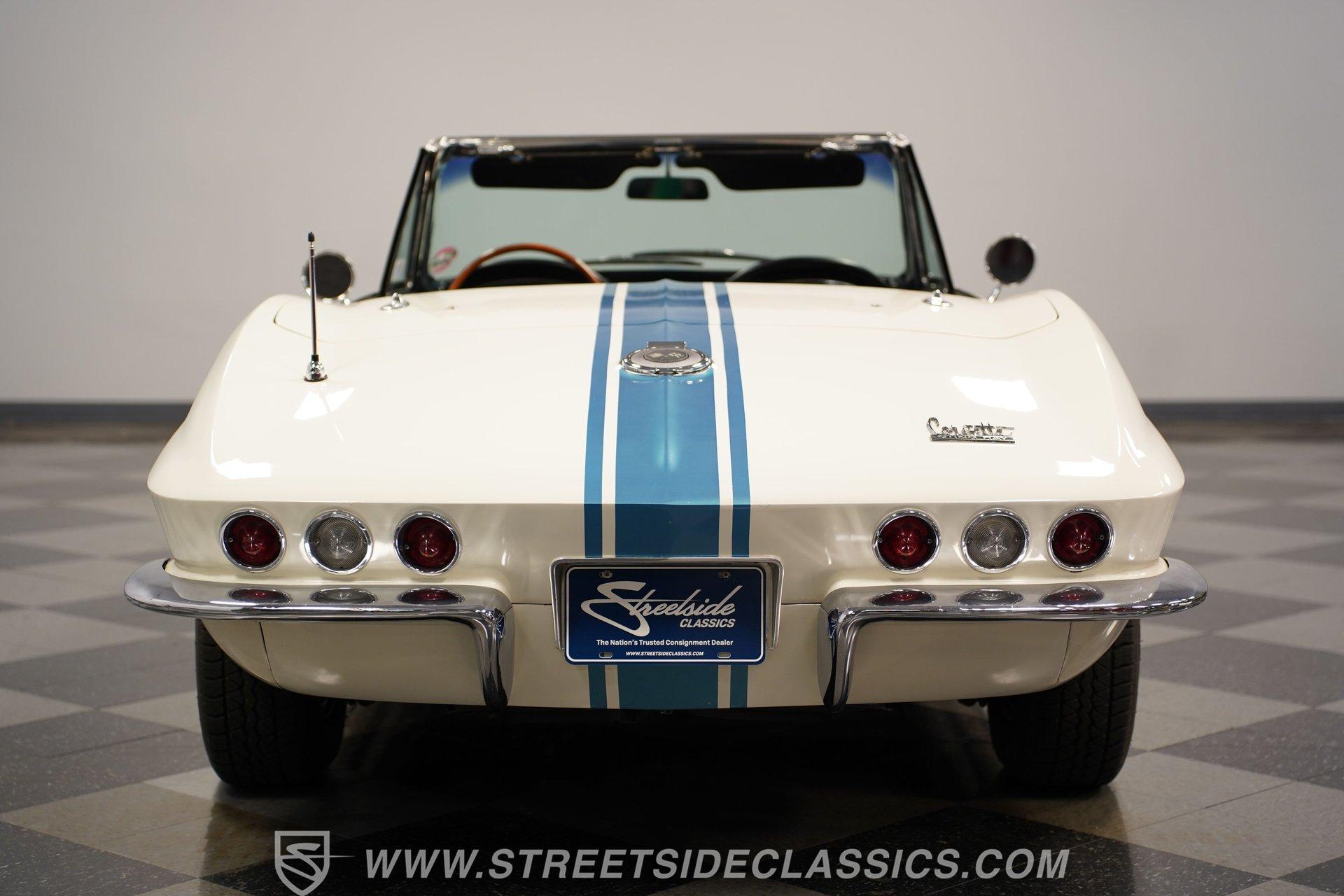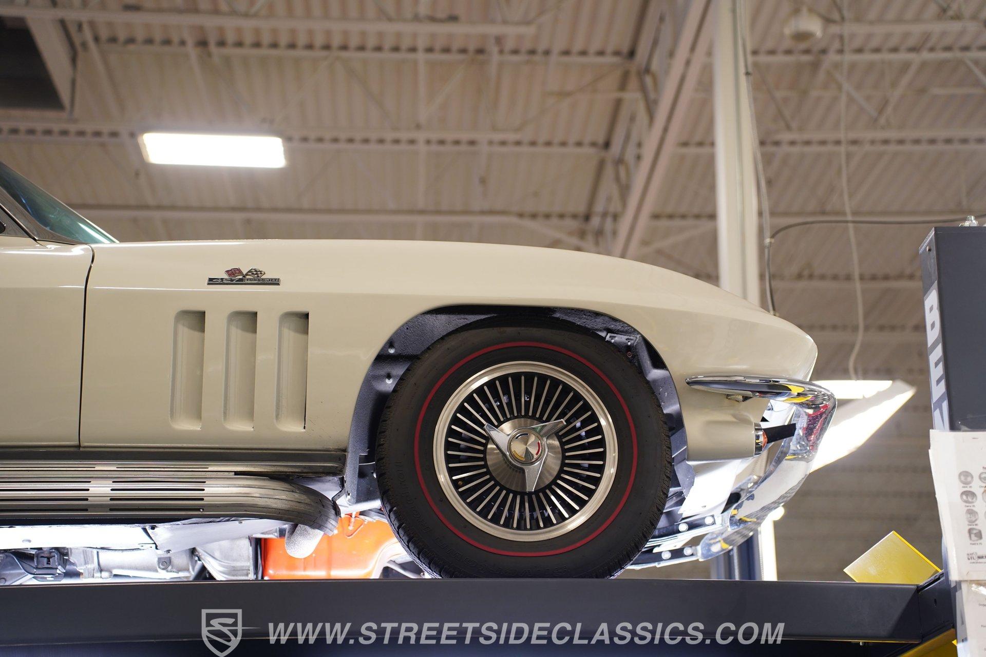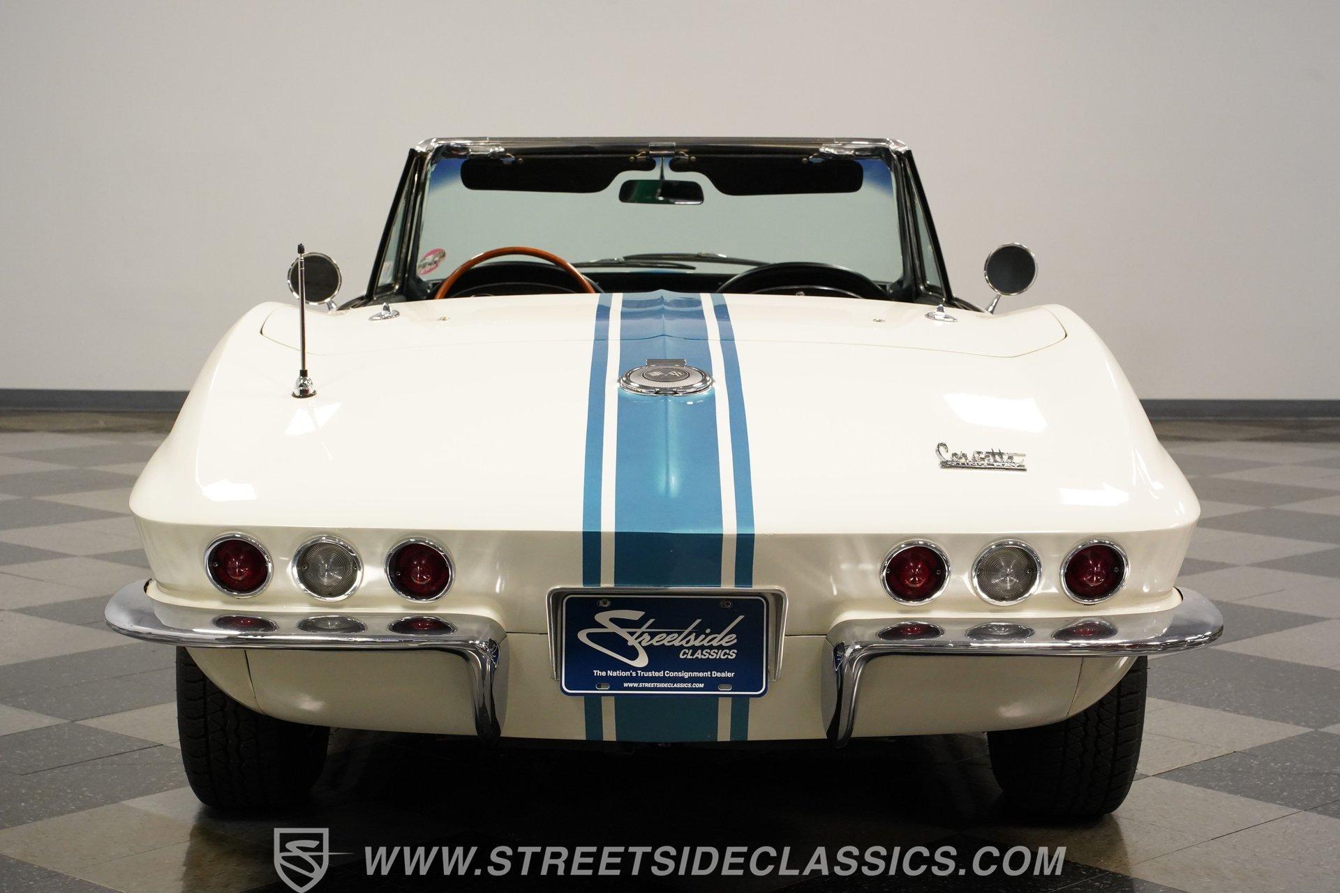 This low-mileage, highly original 1966 Chevrolet Corvette L72 427 Convertible is a rare find. With only 42,222 miles on the odometer and finished in what is believed to be its original Ermine White paint, this car is special. Period modifications include a blue full-length painted center stripe and the addition of two extra tail lights for a total six, which was a popular customization when these cars were new. Factory optional side-mounted exhaust and knock-off wheels wrapped with BF Goodrich Silvertown Redline tires add to this rare Corvette's allure. The black interior appears to be original as well, with the exception of correct replacement carpets, modern retro radio and wood steering wheel. The factory telescopic column helps and make this Stingray comfortable to operate. Additionally, this Corvette is optioned with a factory auxiliary removable hardtop, as well as a folding soft convertible top. Debuting for the 1966 model year, Chevrolet's L72 427 V-8 was a force to be reckoned with. Officially rated at 425 horsepower, its 11.0:1 compression, solid-lifter cam, forged crank, free-flowing rectangular-port cylinder heads, and virtually bulletproof block allowed for a number closer to 450 horsepower, making this one of the most potent engines used by an American automaker in the 1960s. Developed from a series of special Mark IV engines, field-tested by Zora Arkus-Duntov and his team, it was used in Don Yenko's famed Super Camaros and Super Chevelles, and they formed the basis of the GM-built COPO Camaro in 1969. It was especially potent when dropped into the relatively lightweight Corvette. With 42,222 miles, believed actual, this car is accessorized with a potent, highly-desirable, numbers-matching L72 V-8, as well as numbers-matching Muncie M-21 close-ratio four-speed manual transmission, positraction rear axle, F41 special suspension, vacuum power disc brakes, and upgraded HEI ignition system. A full engine rebuild was performed by County Corvette in Pennsylvania, that included bored .030 over, new pistons, hydraulic roller cam, and a new radiator. Engine bay looks largely authentic and period correct with painted valve covers, Winters aluminum intake, Holley carburetor and correct hose clamps. HIGHLIGHTS: 425HP, 427 Cubic Inch Matching Number L72 Engine Matching Number Muncie M21 Close-Ratio 4-Speed Transmission Factory Removable Hardtop and Soft Top Side Mounted Exhaust Knock-Off Wheels Redline Radial Tires F41 Suspension Option NCRS Shipping Data Report Engine Rebuilt by Corvette Specialist Positraction Axle Reproduction Window Sticker Six Tail Lights Custom Painted Center Stripe This desirable and exceptionally preserved 1966 Chevrolet Corvette L72 427 Sting Ray comes with its original owner's manual, reproduction window sticker, receipts, photos, and more. Well optioned and full of mid-sixties character and charm, this ready to drive high-horsepower Corvette presents a rare opportunity to acquire a very special car. Call today!