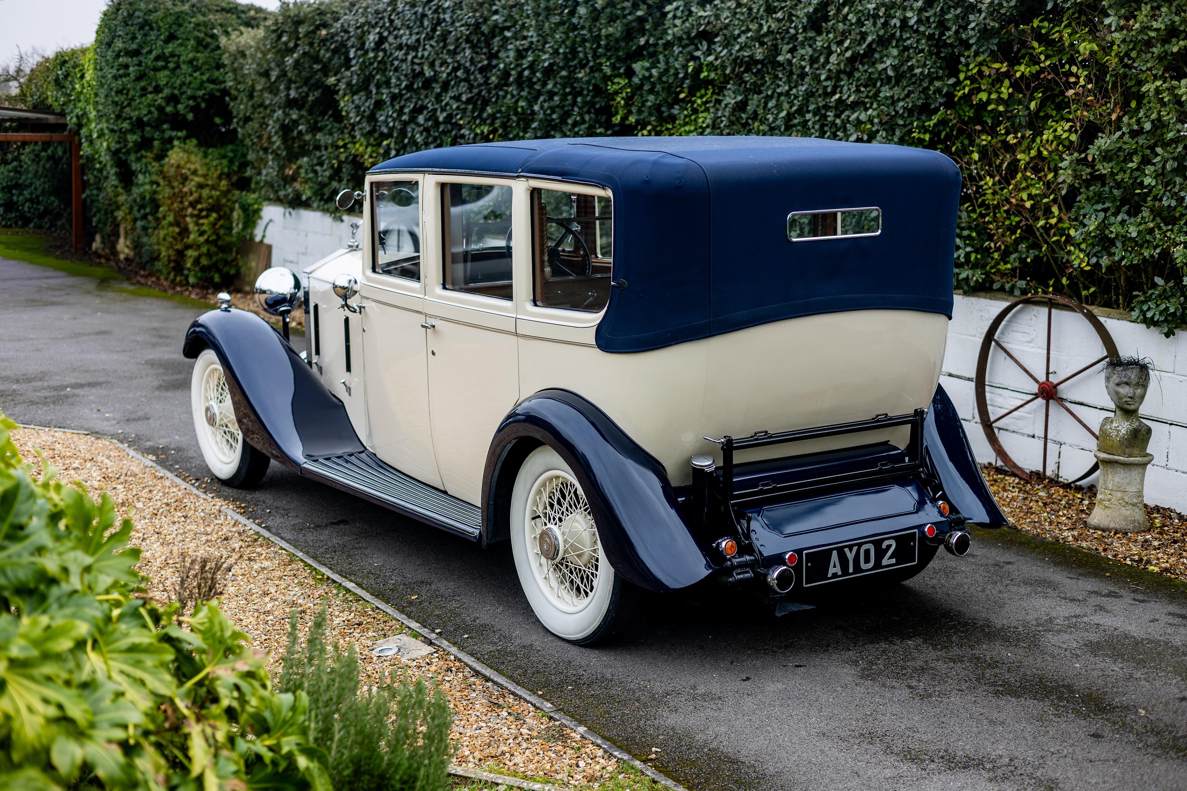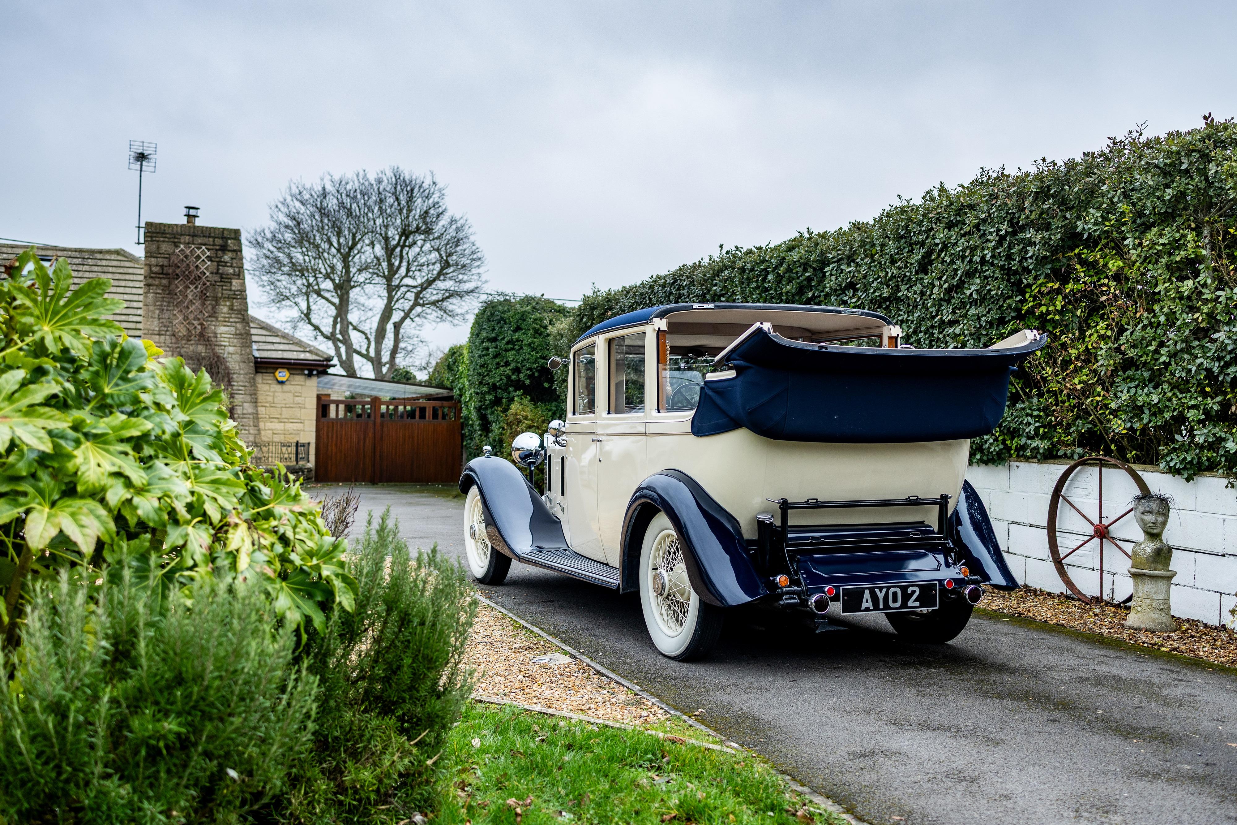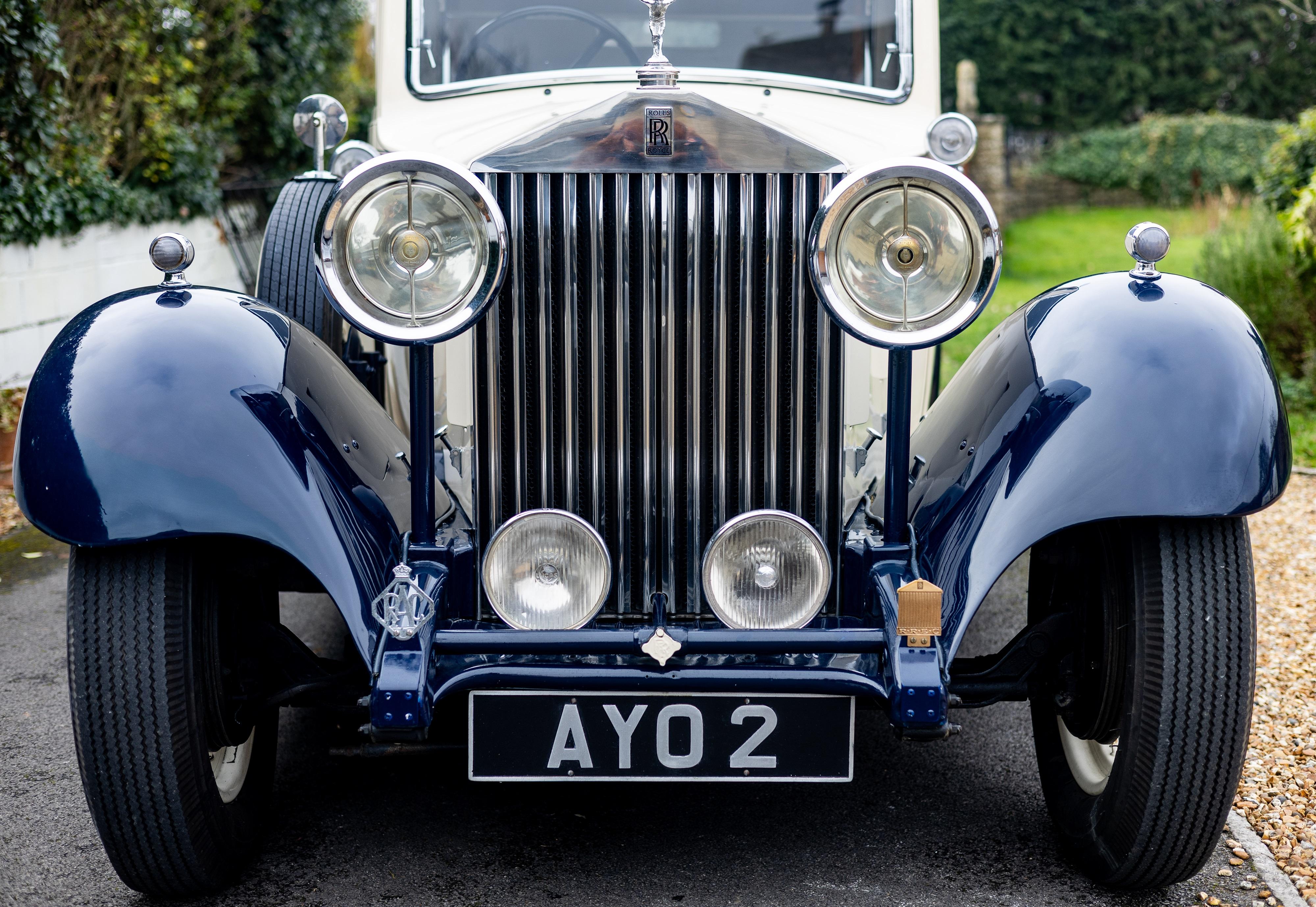 This handsome Landaulette by Barker is presented in cream over Midnight Blue, but its worth mentioning that the cream wrap could be removed to reveal its original colour beneath if one wishes to do so. Its wonderful interior is presented in West of England cloth to the rear, including the two occasional seats and has dark blue leather to the front, providing a nice combination, with black carpets and over rug to finish it off nicely. This Rolls-Royce had spent 25 years in the USA in the famous James C Leake collection. James Leake owned one of the world's largest collections of Rolls-Royce automobiles and founded The Antiques Inc, a museum of classic and vintage cars in Muskogee. He also served as chairman of the International Automobile Hall of Fame. The car has powder coated wire wheels (originally were stainless steel), Lucas driving lights and has a wind-up glass division for privacy. Its body was restored in 2005 by Doug Nixon, and the engine was fully rebuilt in 1998 by Sargeants Of Goudhurst who installed a new high aspect rear diff and the roof was professionally replaced using quality Mercedes-Benz materials. It was rewired in correct colour coded cable provided by Ristes, proper leather gators were fitted, and period style indicators were also fitted. The present owner has had the starter motor refurbished and renewed the clutch. The car has won several awards over the years including best in show at the prestigious Concours D'elegance at Sarlat in 2011. There are copies of photos of the car in the history file showing what the car looked like originally and obviously the Landaulette can be transformed back to its original look at any time. Consigned by James Good