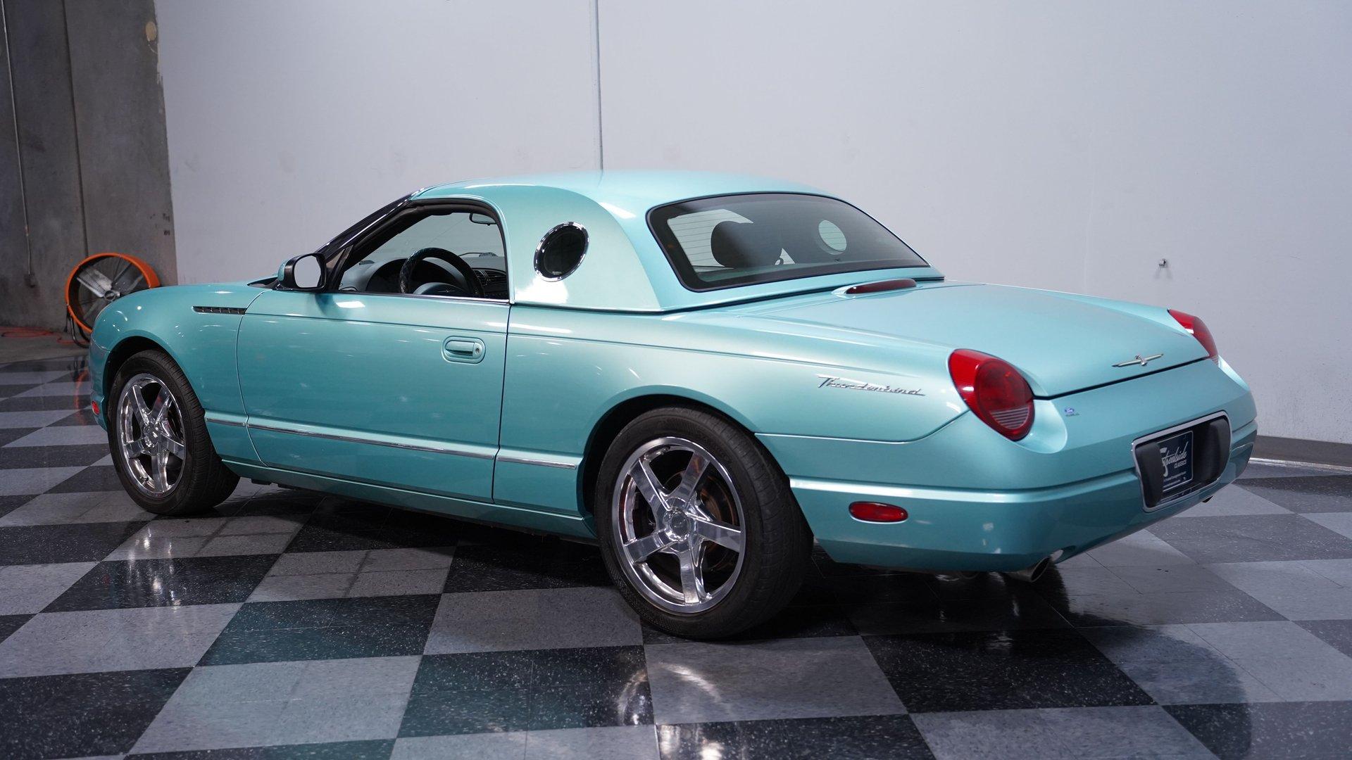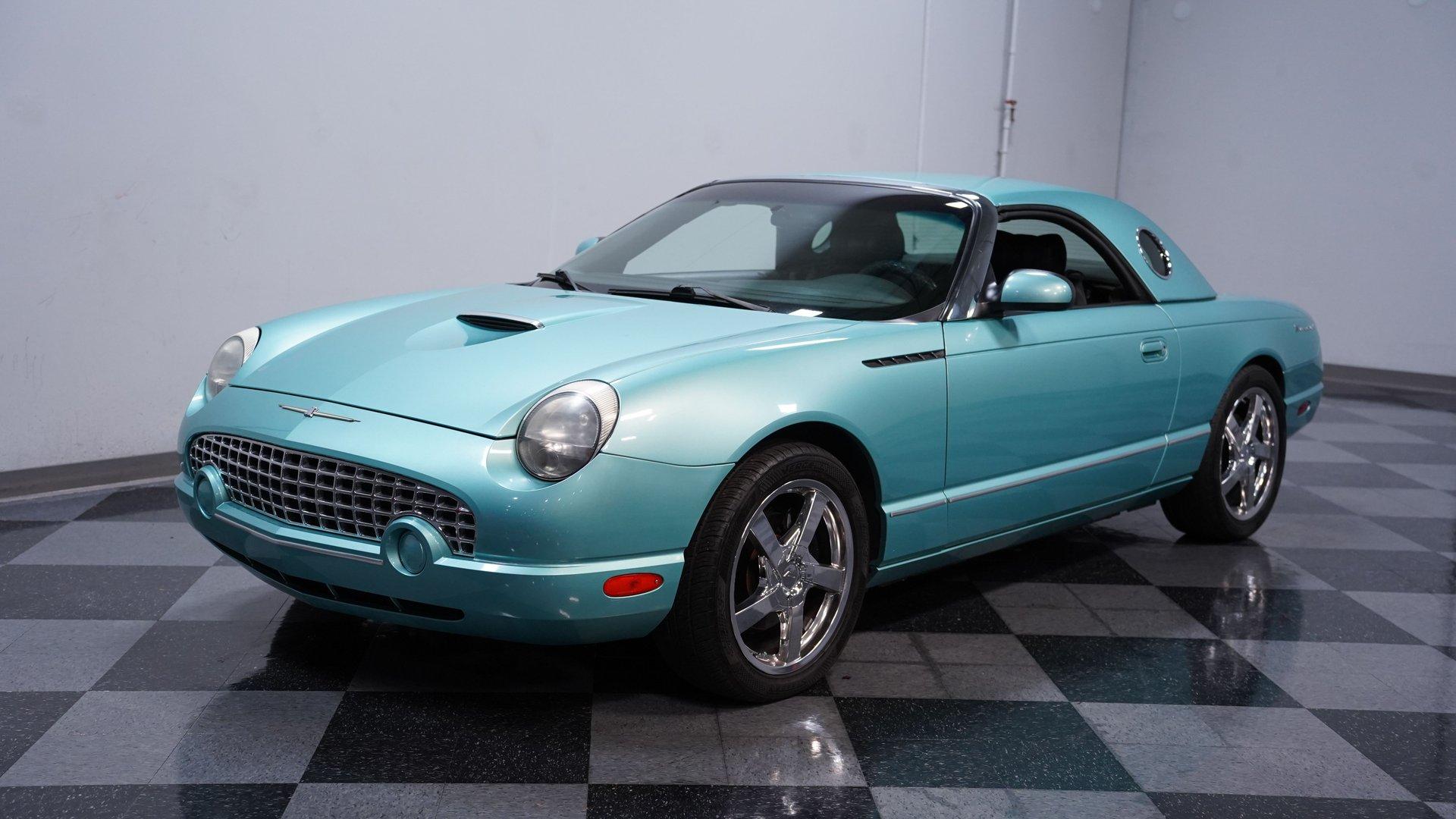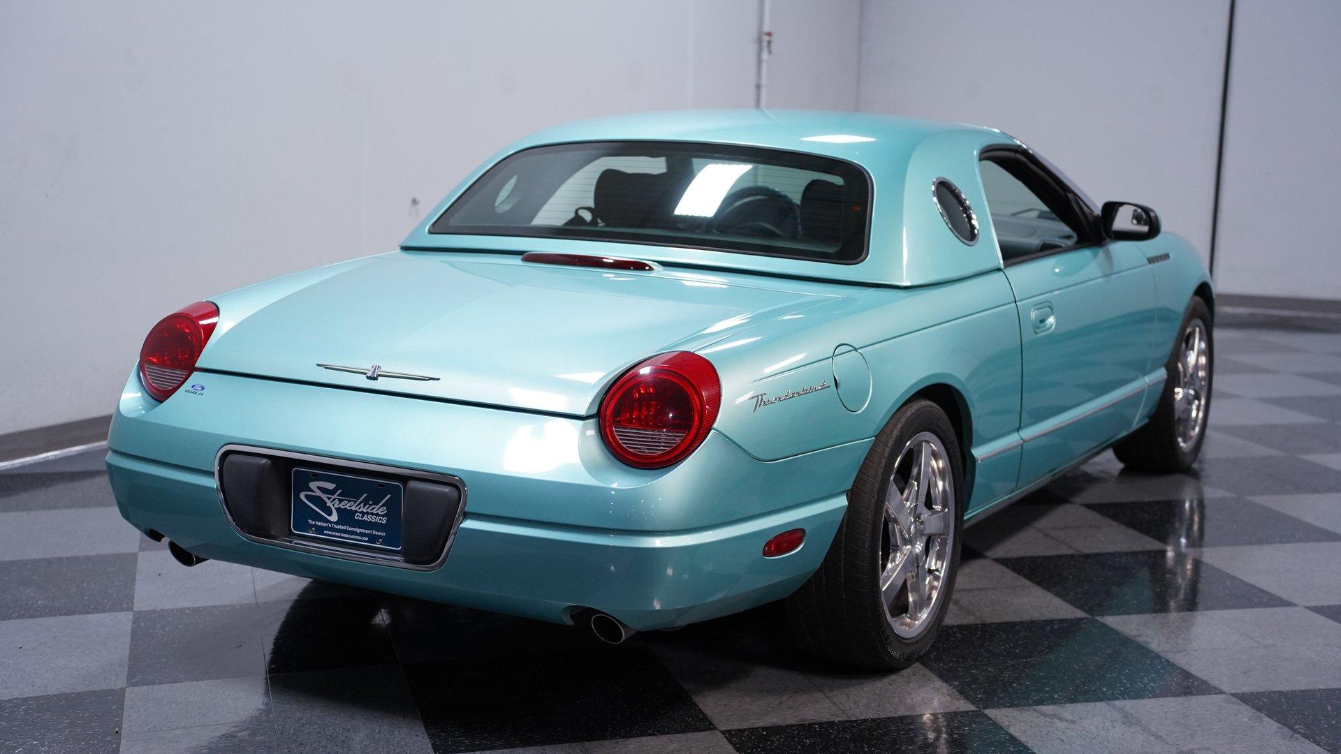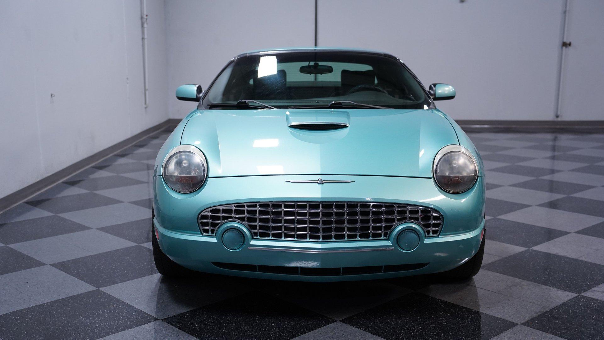 Classic style, luxurious features and V8 power are all what make this 2002 Ford Thunderbird awesome. The fact that this car has only been driven 68,166 miles from new adds to the allure of this beautiful T-Bird. The retro-cool look of this first model year of the final generation Thunderbird has a timeless sense of style. Ford really took the time to integrate the best elements of the first-generation Thunderbird into this design. It can be seen in the long profile, hood scoop, subtle fender vents and afterburner-style tail lights. A set of upgraded 18-inch chrome 5-spoke factory alloy wheels wrapped in 245/45ZR18 performance tires set this bird apart from the flock. This handsome Thunderbird, finished in classic Thunderbird Blue with a Midnight Black interior, features automatic A/C climate control and heated seats, allowing you to drive comfortably with the top down nearly all year round. This car was created to be a terrific cruiser loaded with power windows, power locks, keyless entry/alarm, dual front airbags, a premium AM/FM/6-CD changer stereo and cruise control. The leather seats feel comfy and have a well-respected style with the kind of use that goes with the low mileage. The power driver's seat gets you in the right position to really see nice details such as the steering wheel's classic turquoise streak in the Thunderbird logo that is coordinated with the needles on the gauges. While the looks of the car are meant to be retro-cool, the engine bay is a pure modern motor. It is a fuel-injected DOHC 3.9-liter V8 that fires up readily, idles smoothly and delivers plenty of power when you want it, making it the ideal smooth cruiser from day one. You will love using this Thunderbird to drive near or far with its smooth five-speed automatic transmission, power steering, four-wheel disc brakes and fully-independent suspension. HIGHLIGHTS: 3.9L DOHC V8 Engine 5-Speed Automatic Transmission Fuel Injection Power Disc Brakes Dual Exhaust Thunderbird Blue Exterior Paint Black Convertible Top Removable Hardtop Upgraded 18-inch Wheels Dual Exhaust Outlets Midnight Black Leather Bucket Seats Air Conditioning AM/FM Radio with CD Changer Power Windows This attractive 2002 Ford Thunderbird combines V8 power, advanced engineering, and classic American luxury. The 3.9L V8 engine and automatic transmission create an ideal balance of performance and comfort. The dual-top configuration offers year-round enjoyment. Call today!
