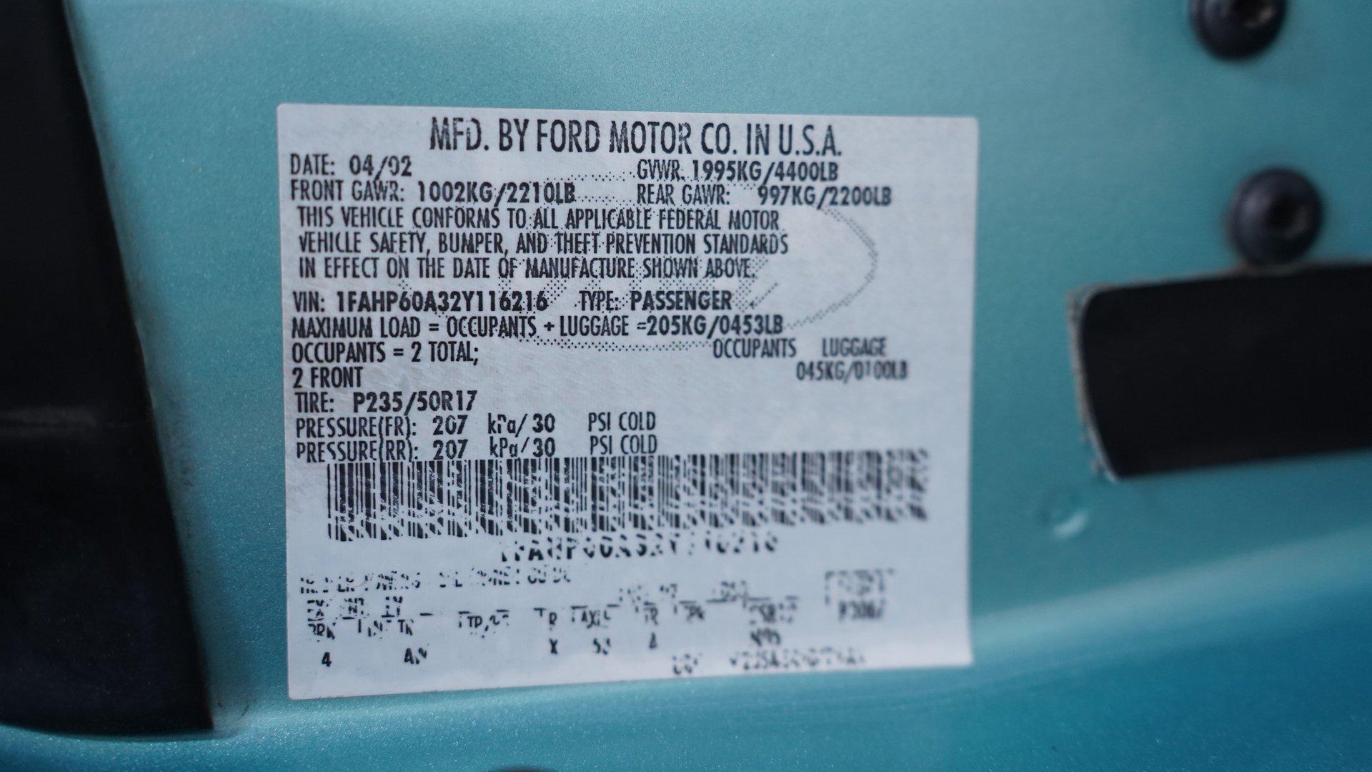 - VIN Code1FAHP60A32Y116216